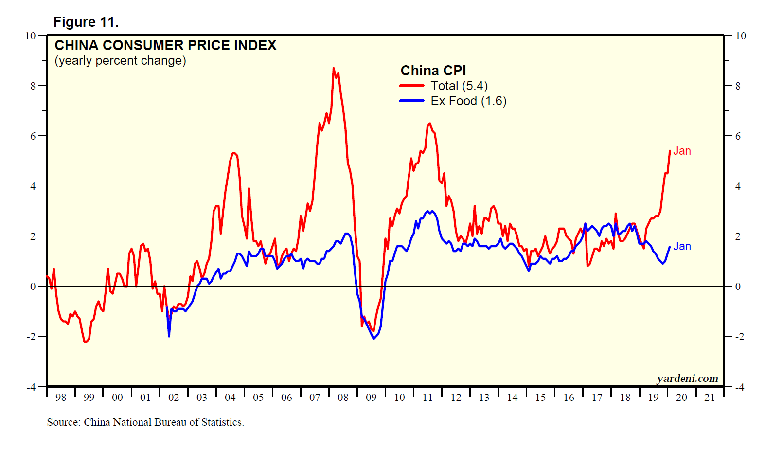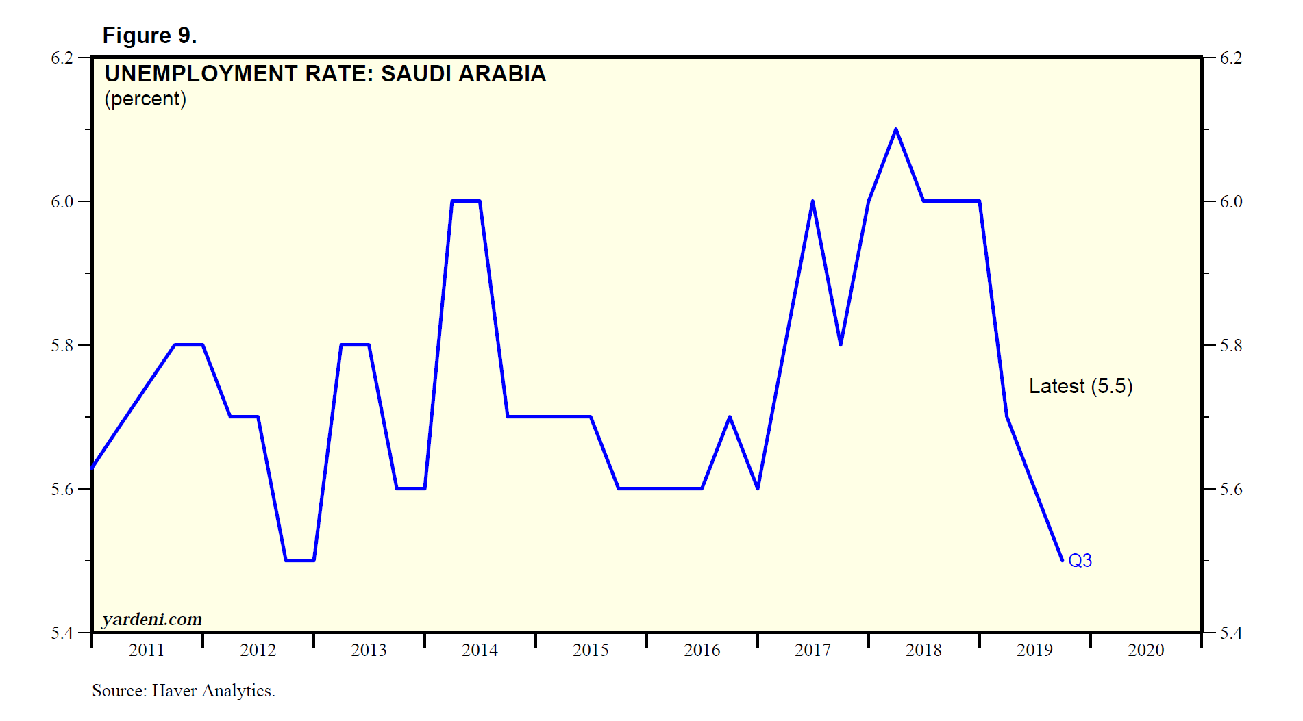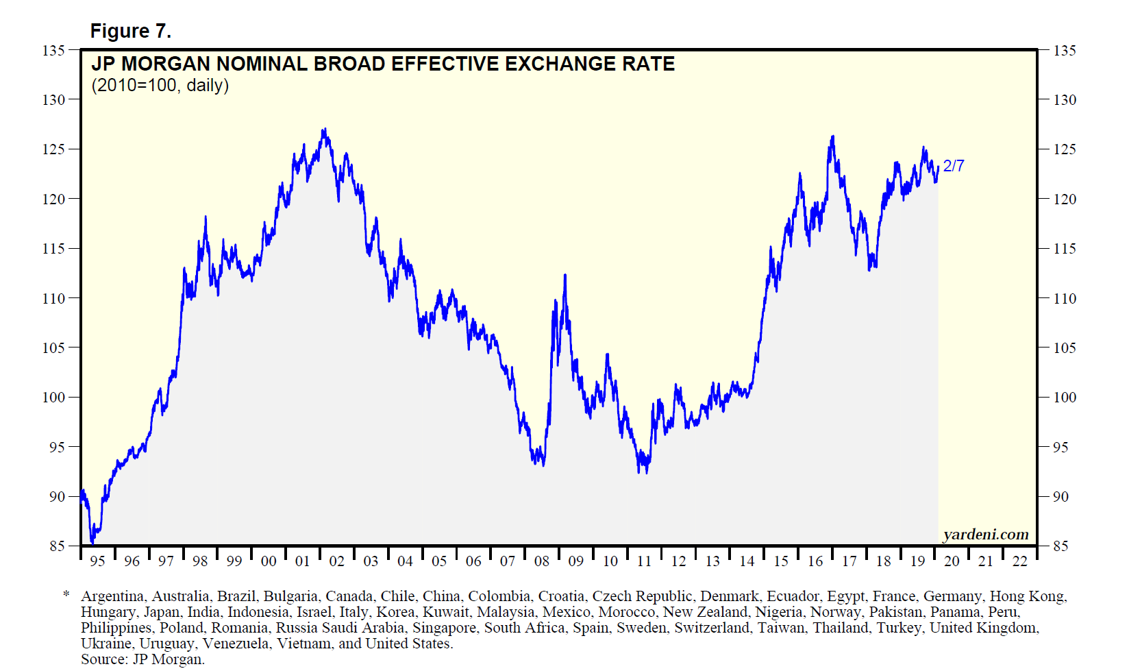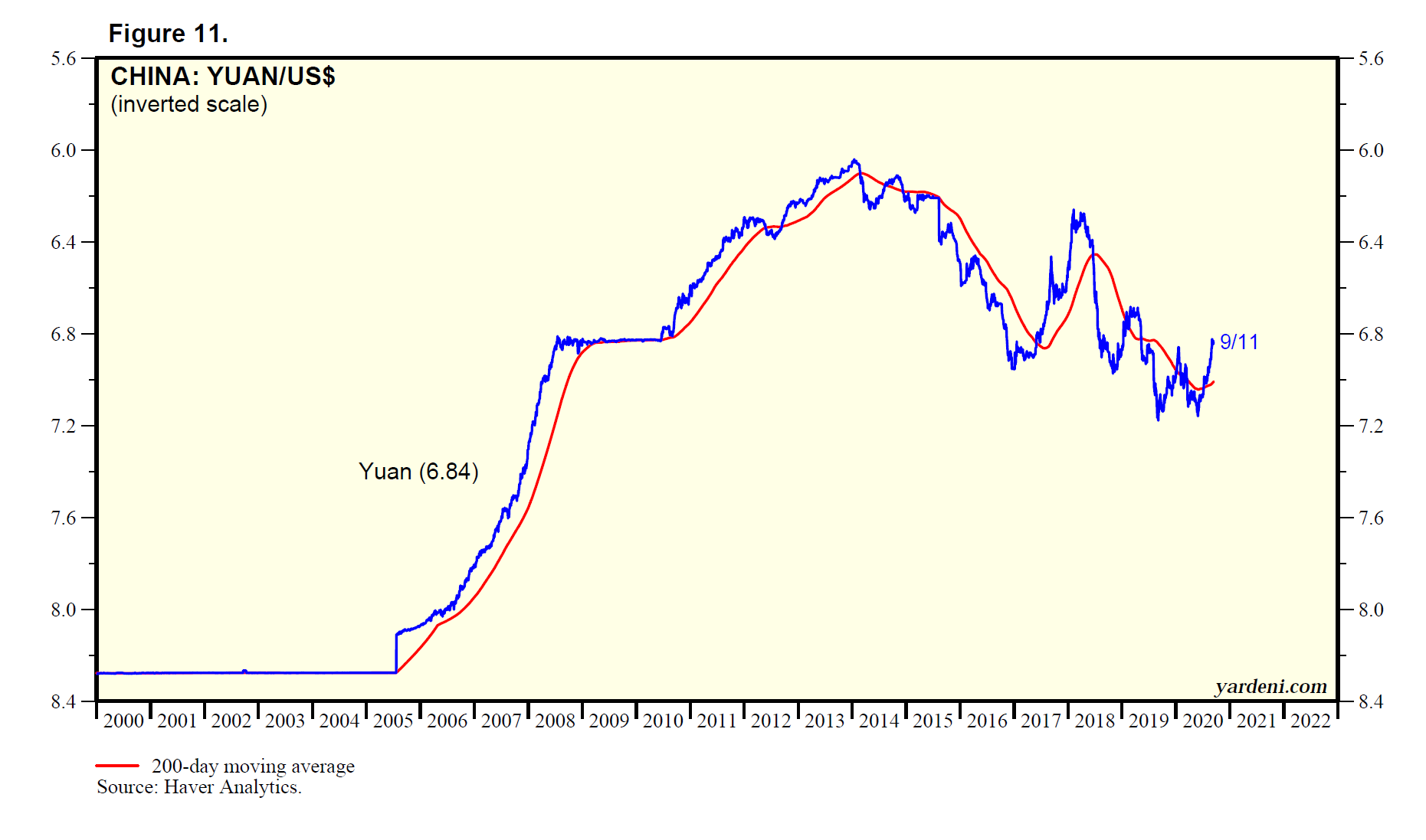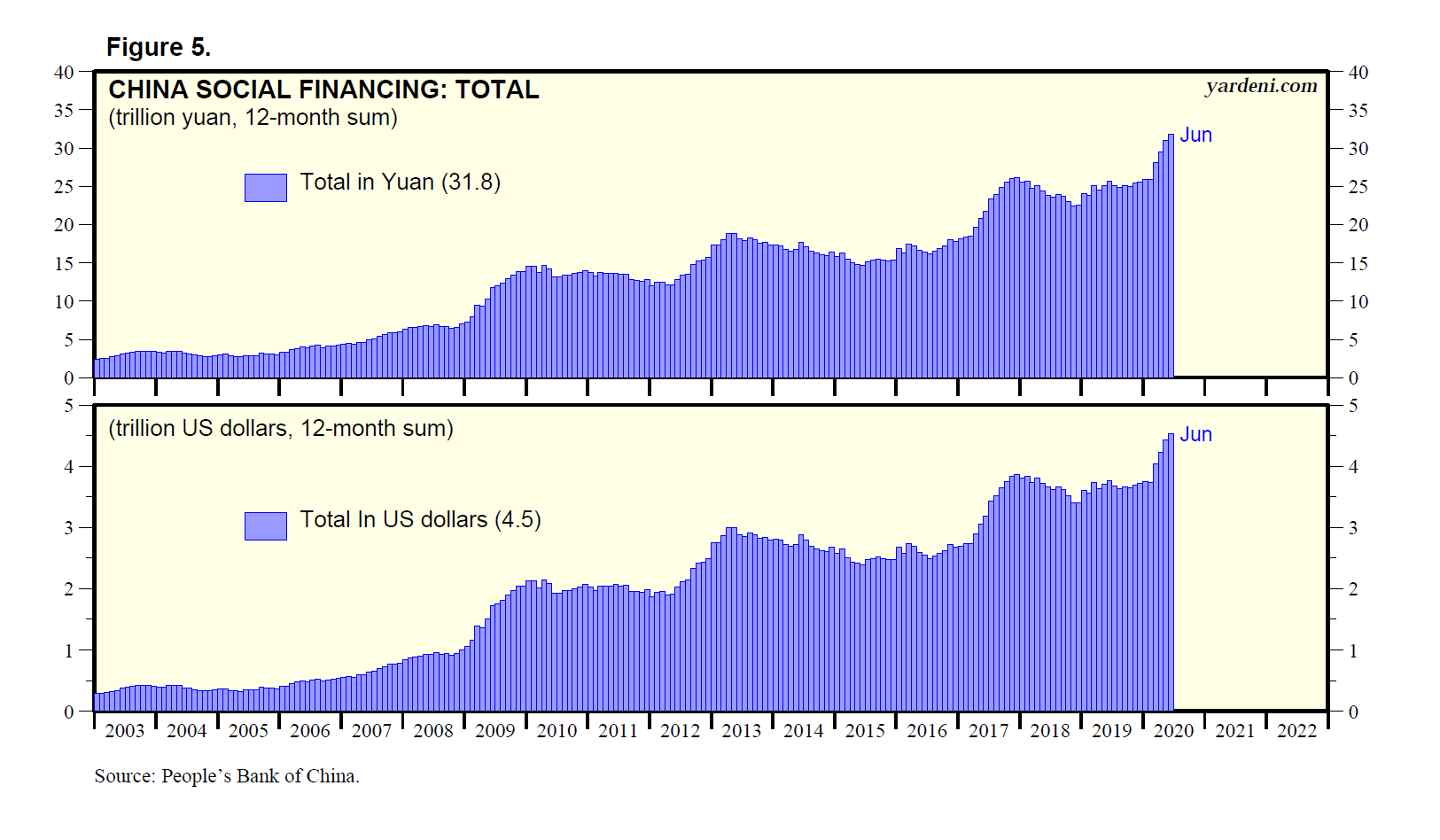 (4) PBOC. As we mentioned yesterday, the PBOC cut bank reserve requirement ratios at the beginning of this year (effective 1/6) to the lowest levels since 2007 (Fig. 7). That action will release about 800 billion yuan ($115 billion). The PBOC has now cut seven times since early 2018 to free up more funds for banks to lend as economic growth slows to the weakest pace in nearly 30 years.