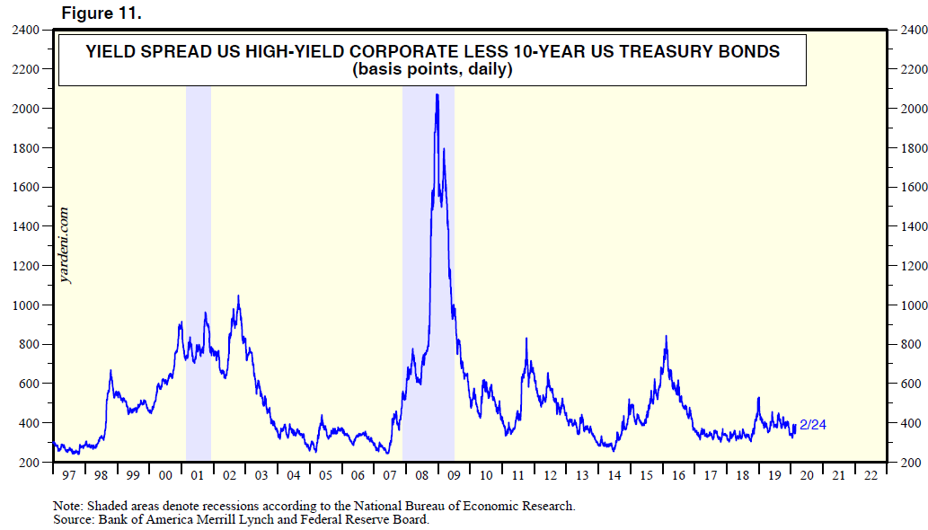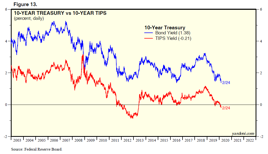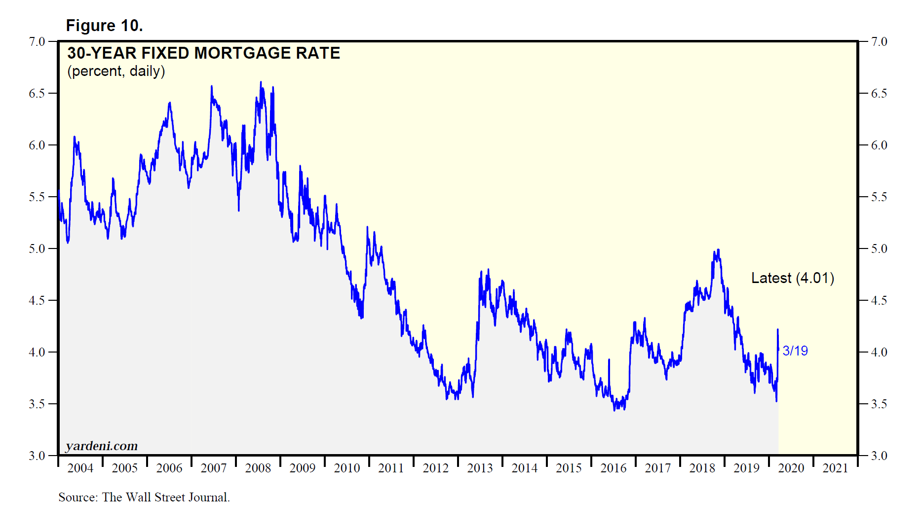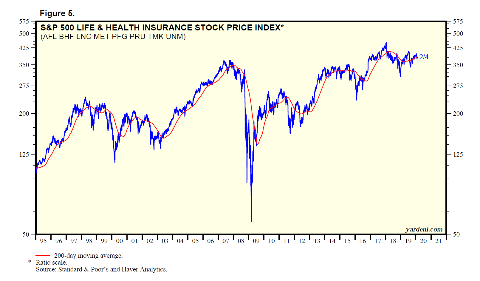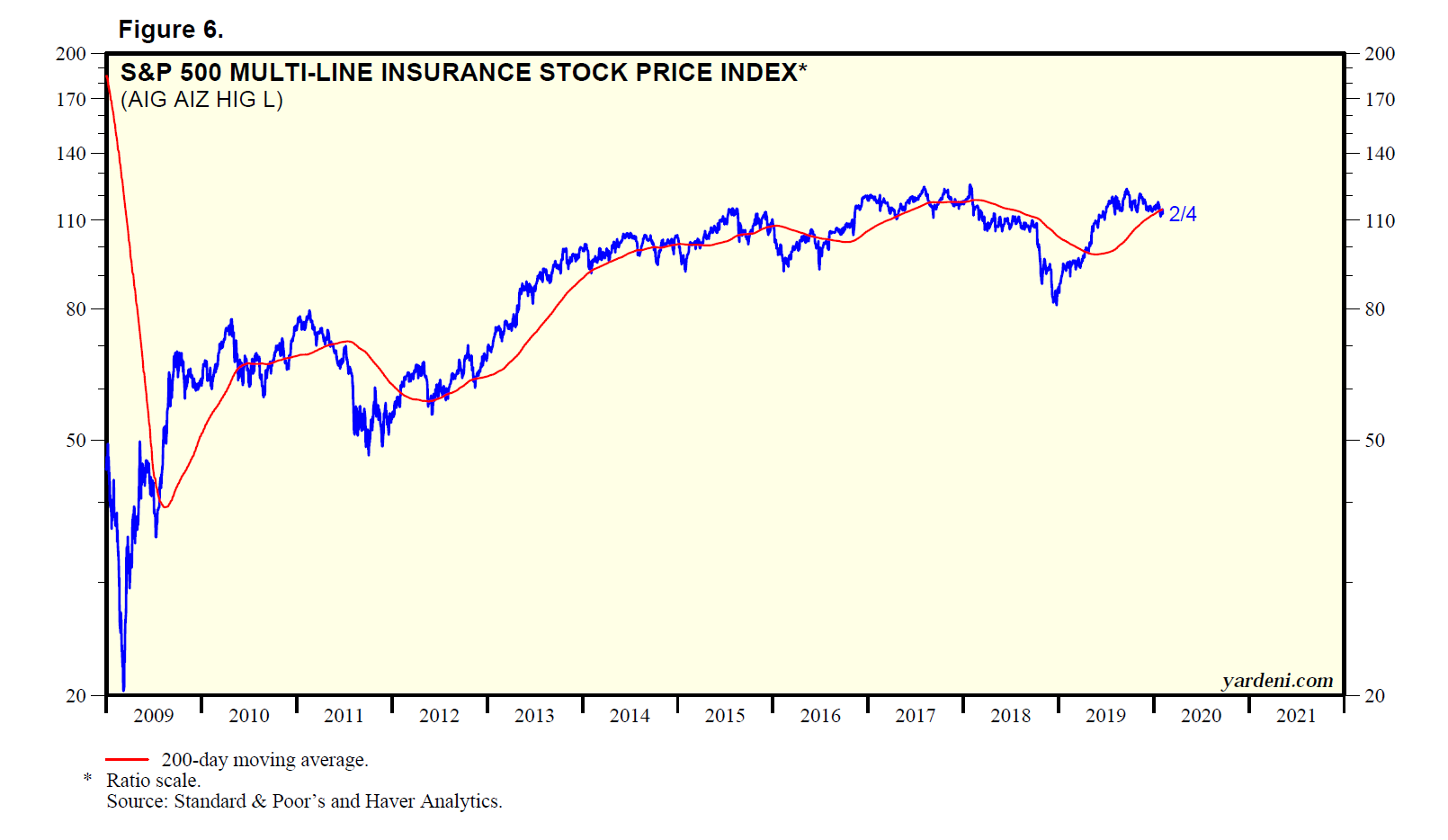 Joe and I have kept a diary of the current bull market’s panic attacks. We count 65 of them. There certainly has been plenty to worry about. Number 65 occurred last year in mid-August when investors feared that the inverted yield curve was signaling an imminent recession (Fig. 5). The second and third rate cuts by the Fed, along with rising bond yields during the fall of last year, put an upward slope on the yield curve and removed its inversion during the summer as a reason to worry. (See US Stock Market Panic Attacks, 2009-2019.)