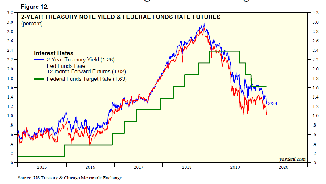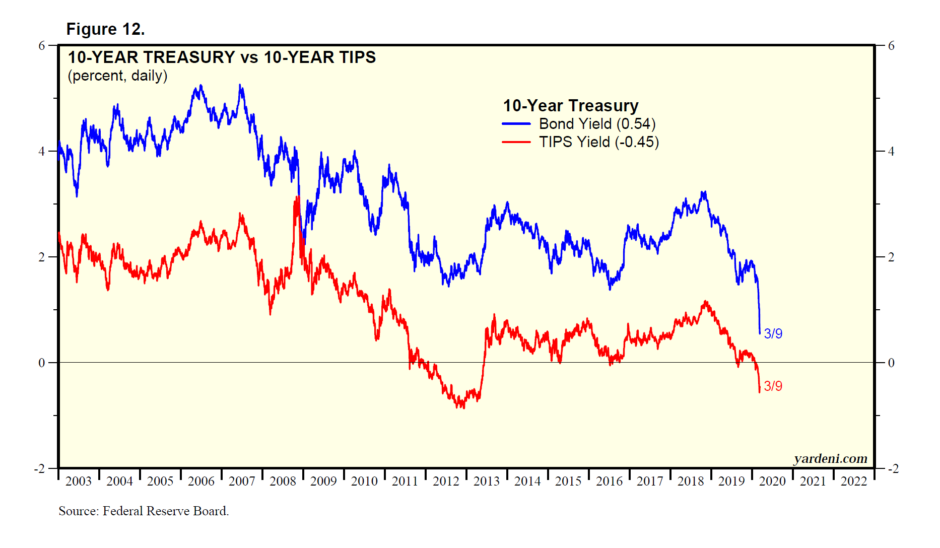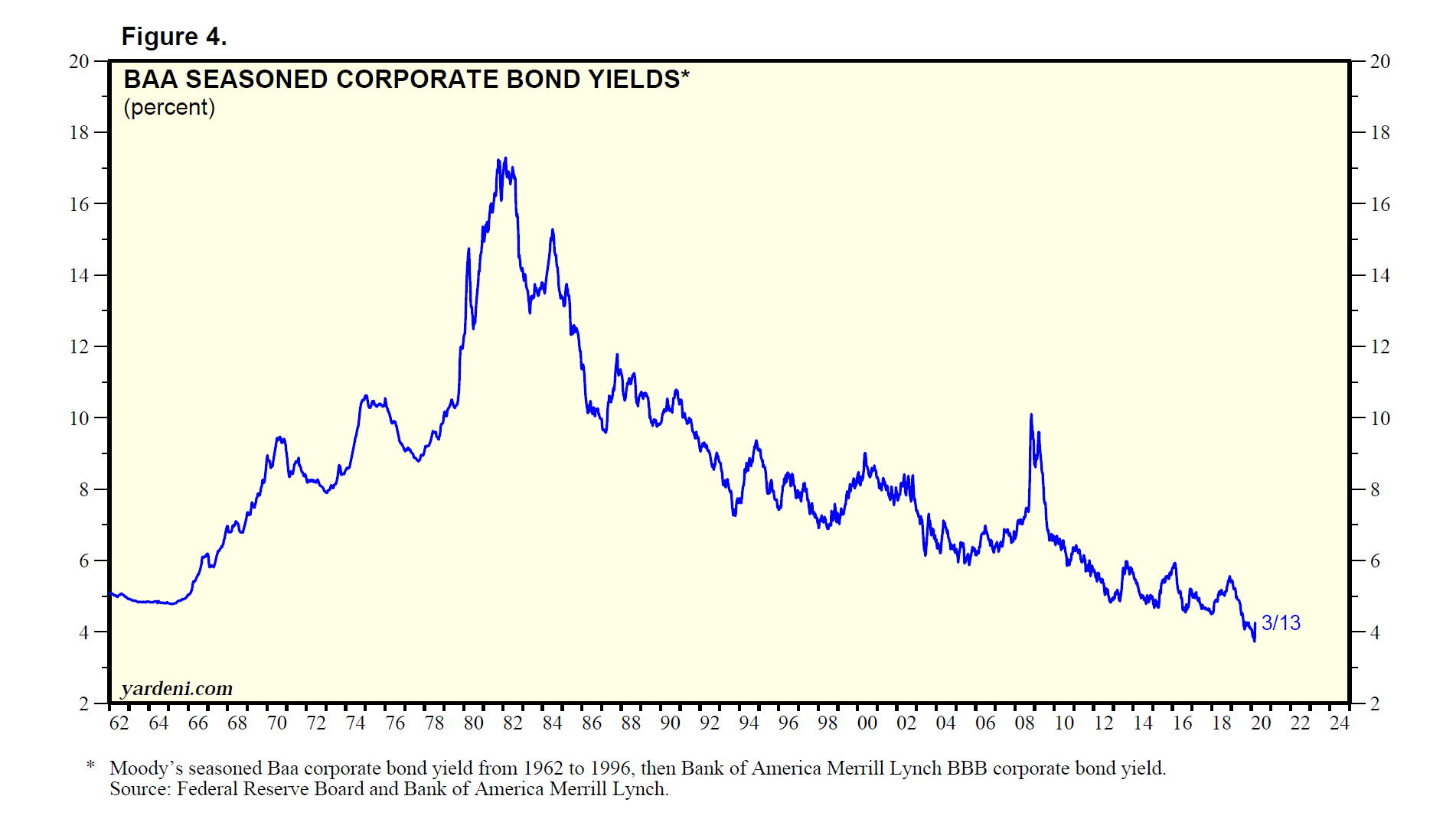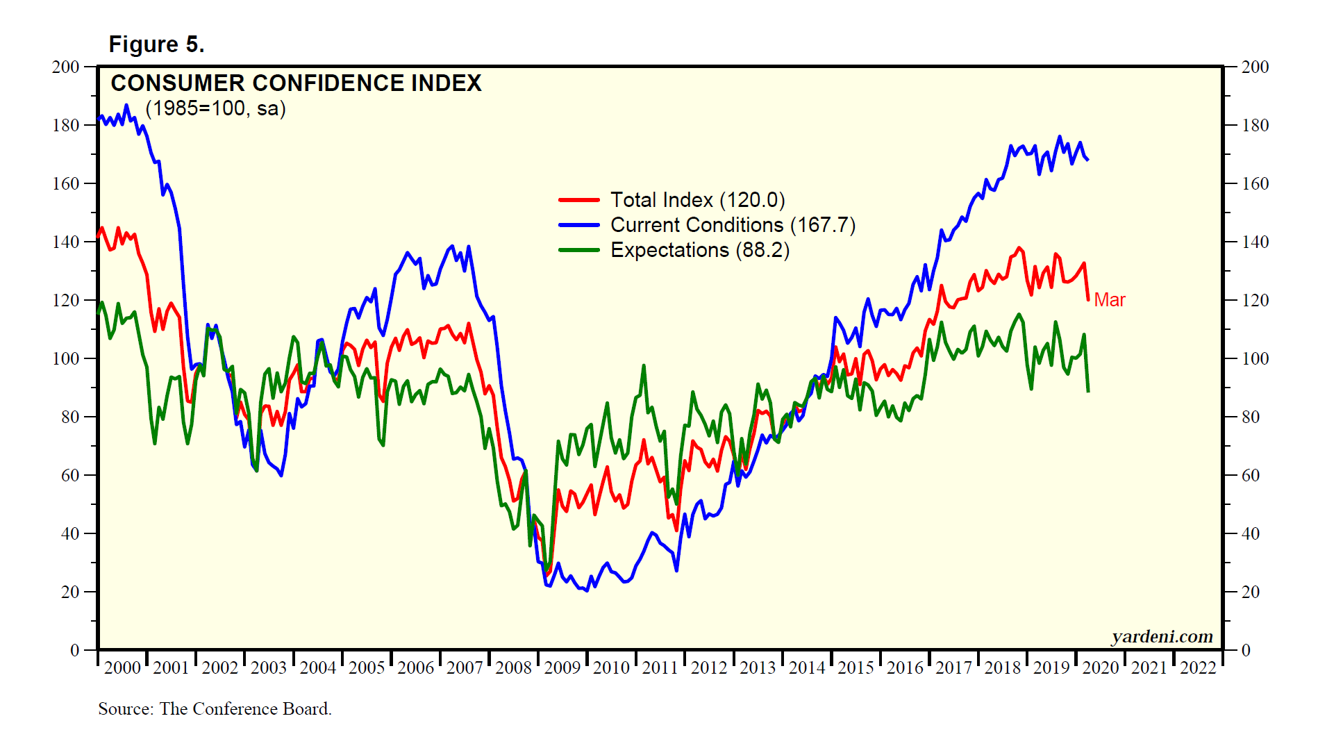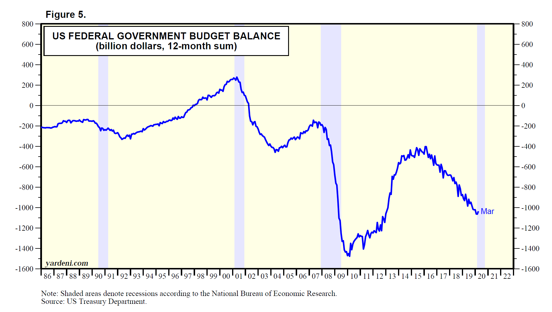 Joe and I have kept a diary of the current bull market’s panic attacks. We count 65 of them. There certainly has been plenty to worry about. Number 65 occurred last year in mid-August when investors feared that the inverted yield curve was signaling an imminent recession (Fig. 5). The second and third rate cuts by the Fed, along with rising bond yields during the fall of last year, put an upward slope on the yield curve and removed its inversion during the summer as a reason to worry. (See US Stock Market Panic Attacks, 2009-2019.)