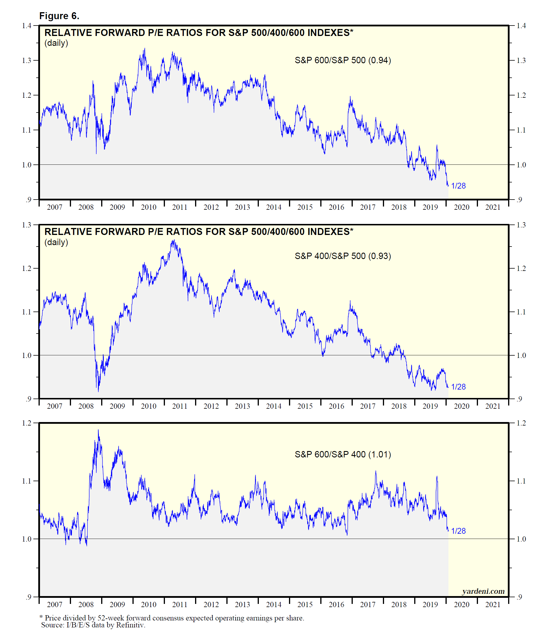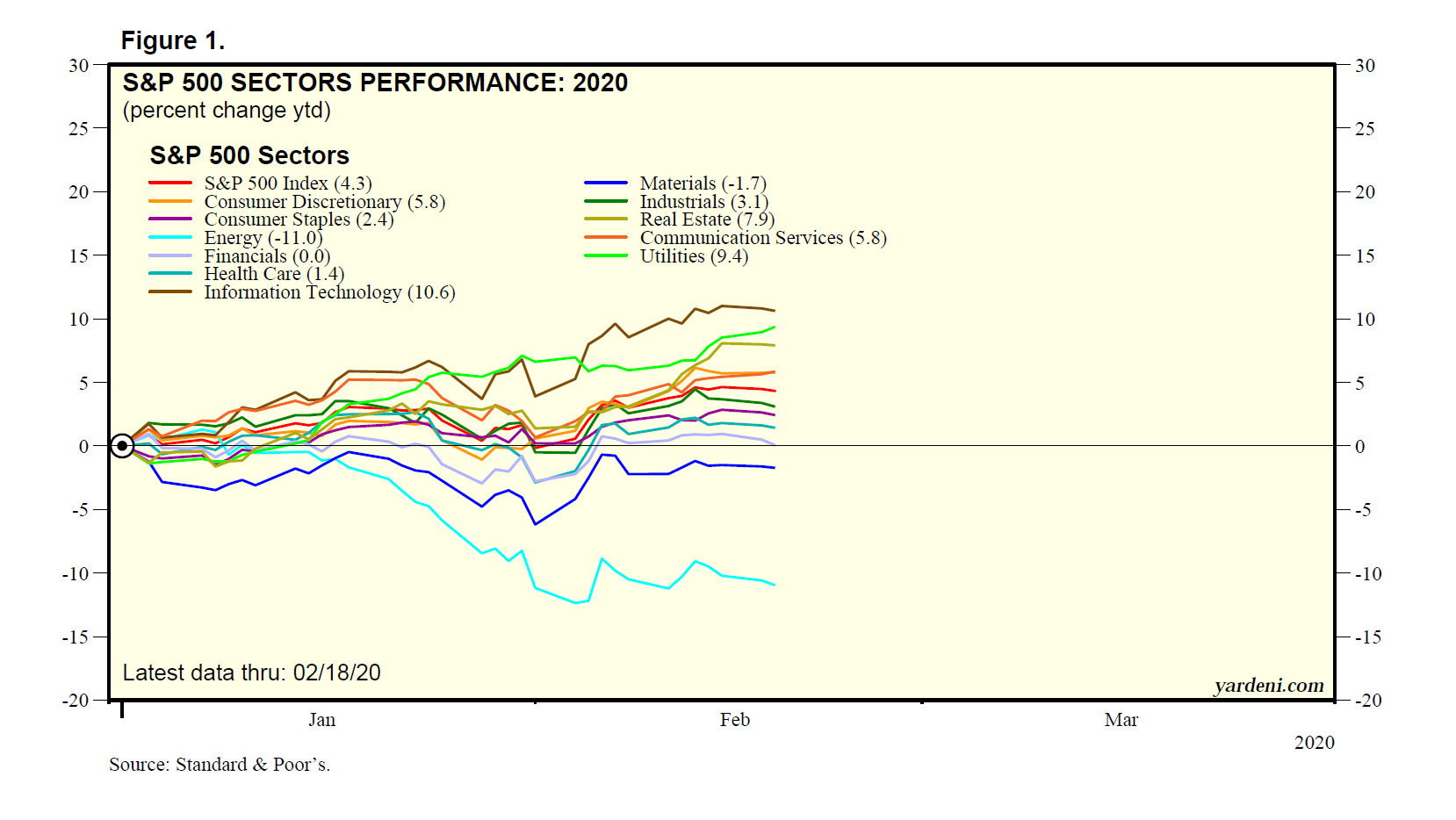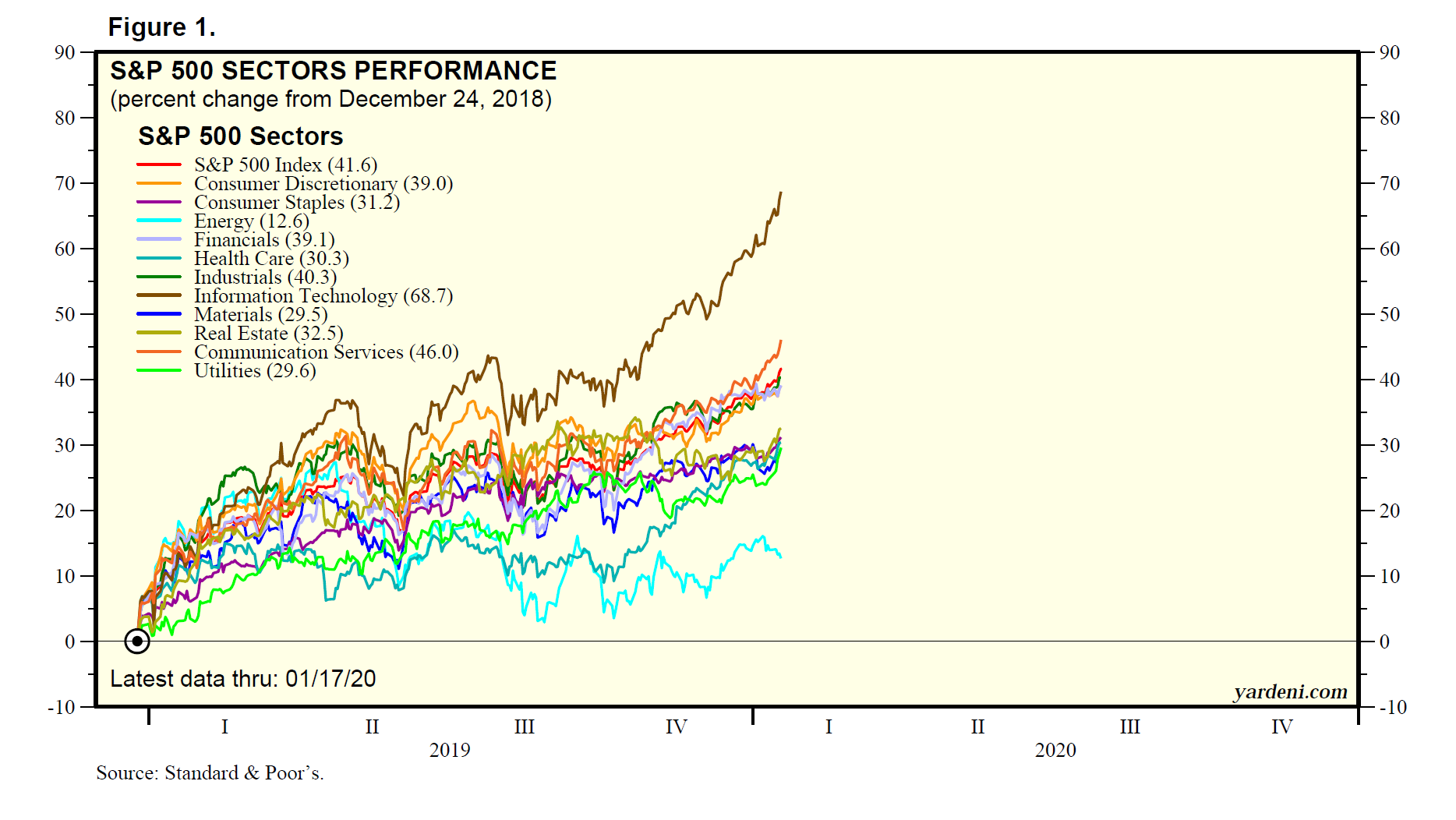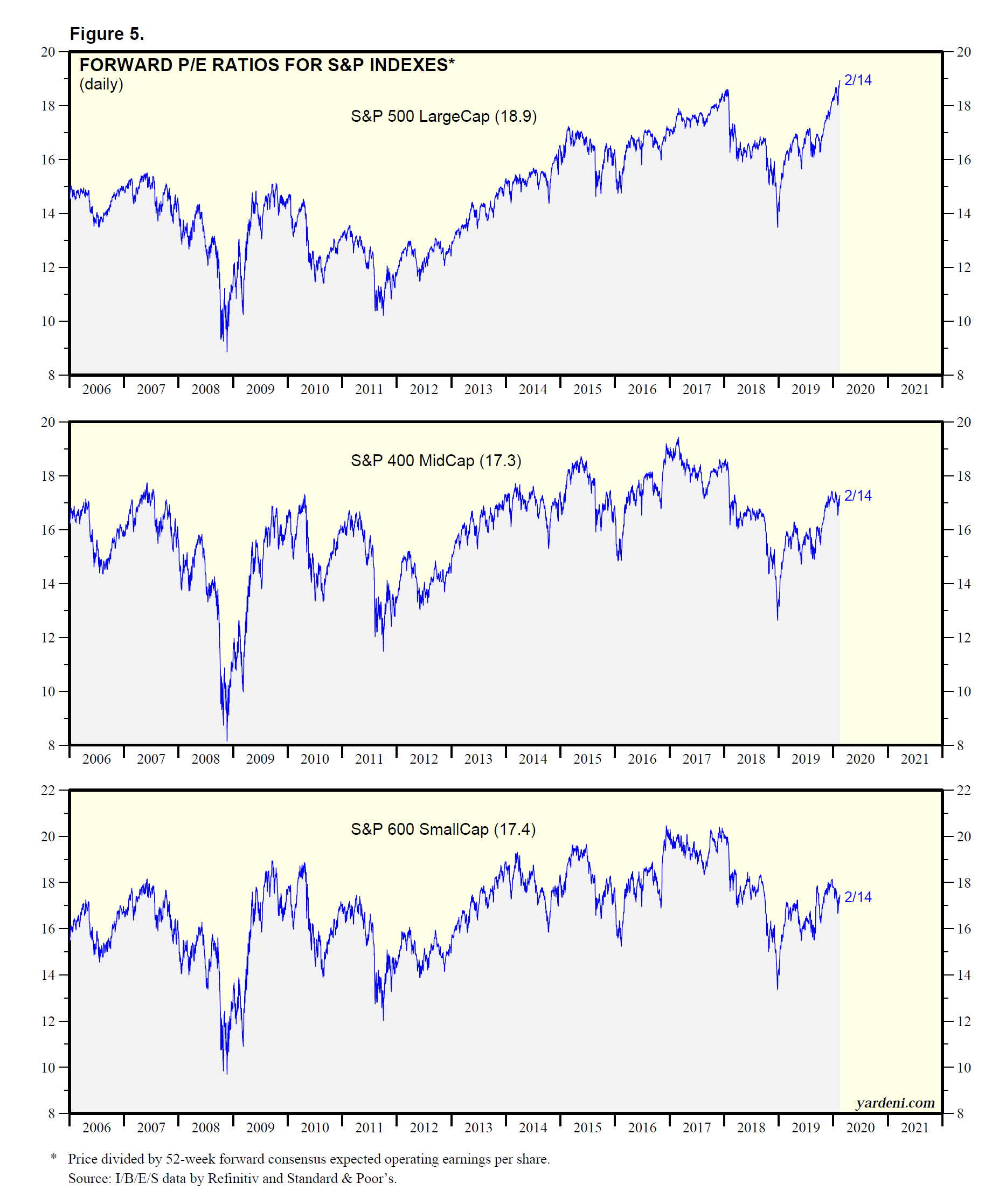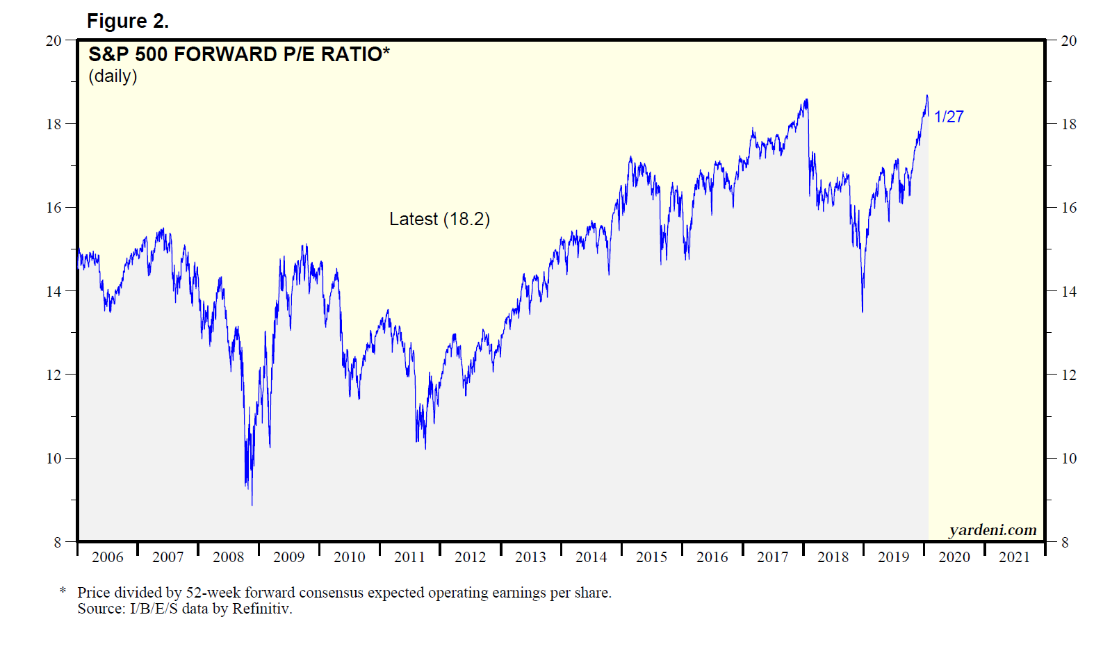 Strategy: Taking Stock of P/Es. In an act of amazing resilience, the S&P 500 remains near record highs even in the wake of skirmishes between the US and Iran. The index’s 28.9% climb last year has left its forward P/E at a lofty 18.2, almost four points higher than it was last year at this time (Fig. 1). Let’s take a look at the S&P 500 sectors’ earnings growth and P/Es to see what looks cheap and expensive as 2020 begins: