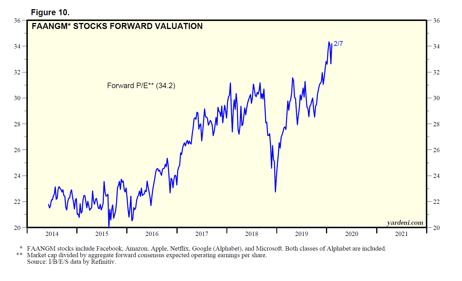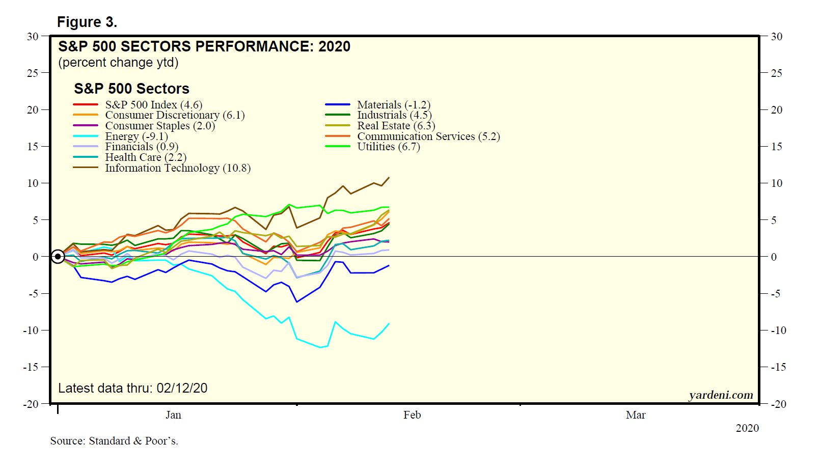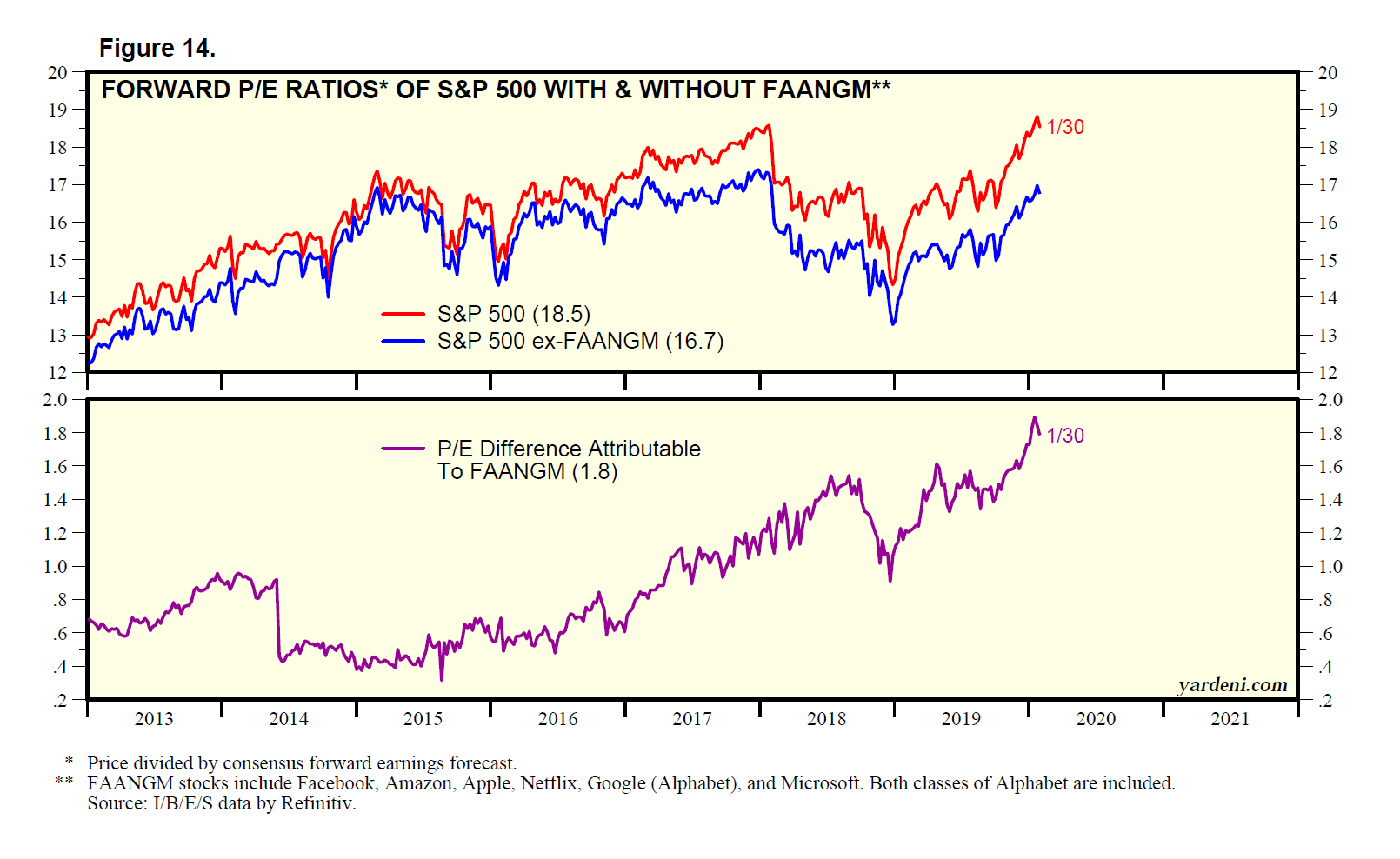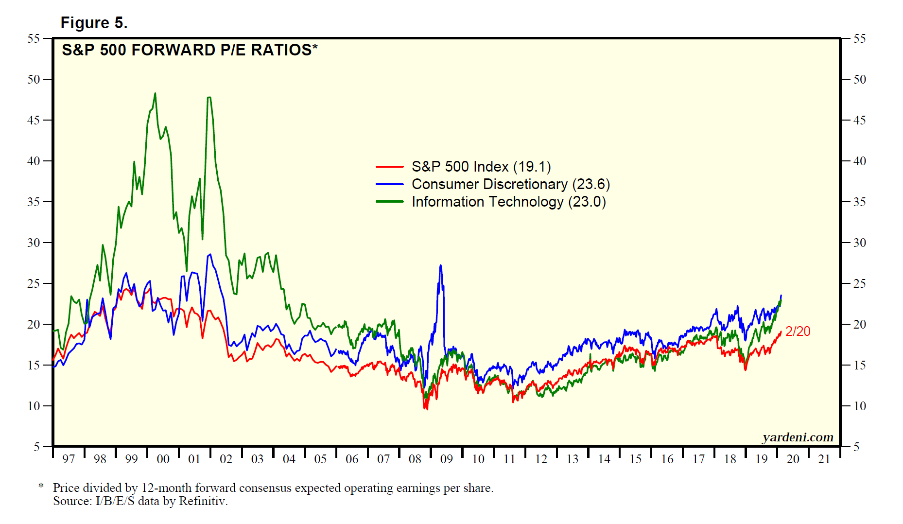 Strategy: Taking Stock of P/Es. In an act of amazing resilience, the S&P 500 remains near record highs even in the wake of skirmishes between the US and Iran. The index’s 28.9% climb last year has left its forward P/E at a lofty 18.2, almost four points higher than it was last year at this time (Fig. 1). Let’s take a look at the S&P 500 sectors’ earnings growth and P/Es to see what looks cheap and expensive as 2020 begins: