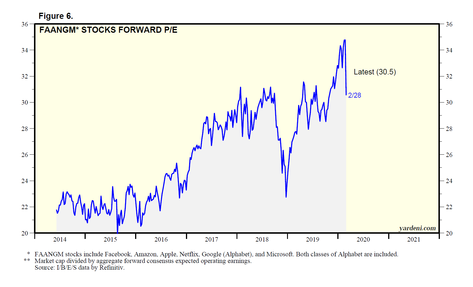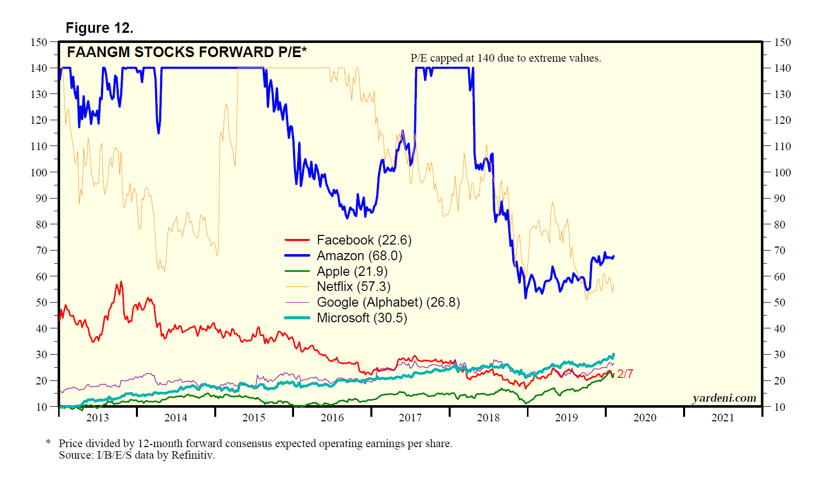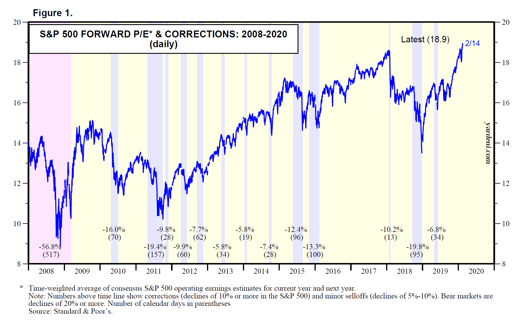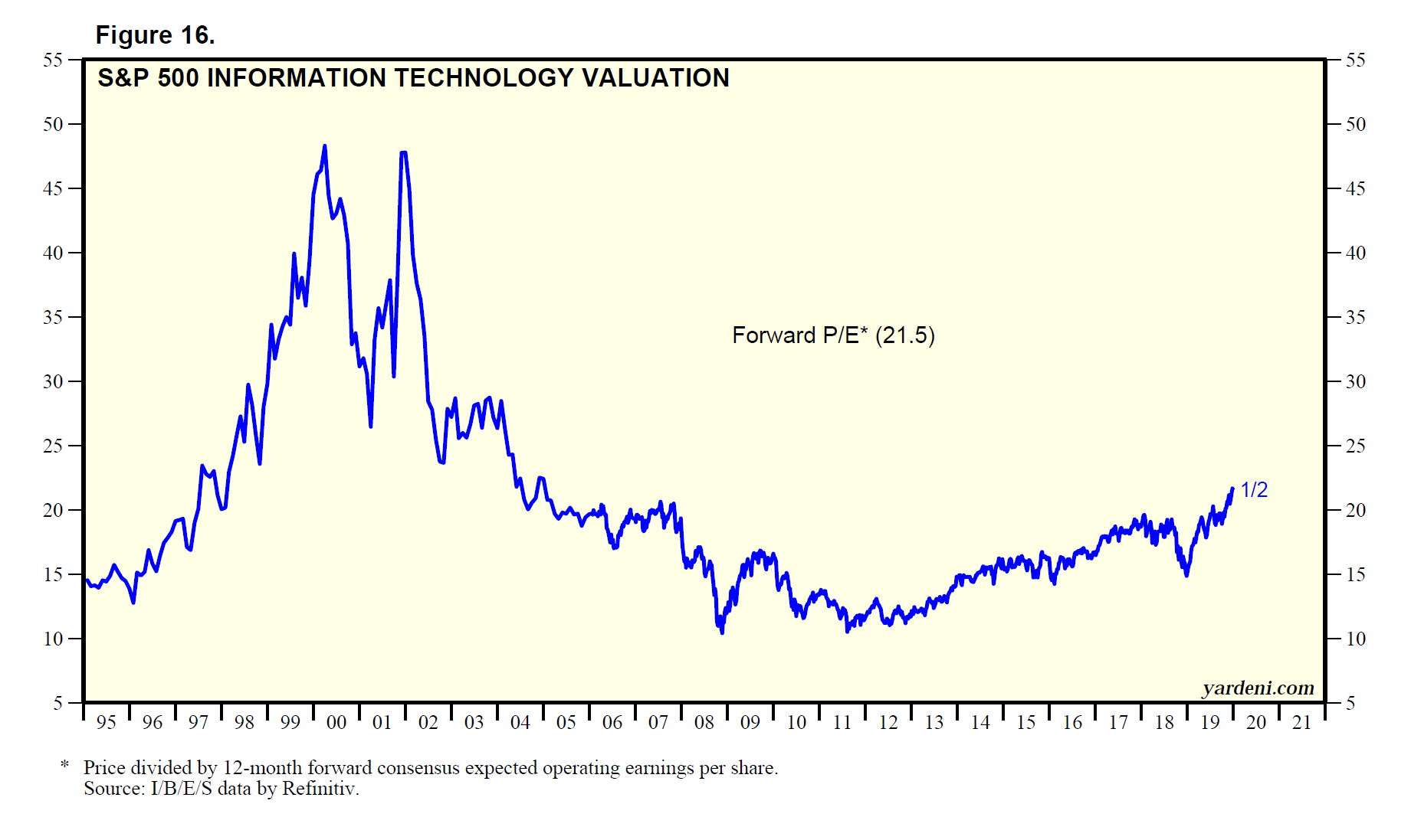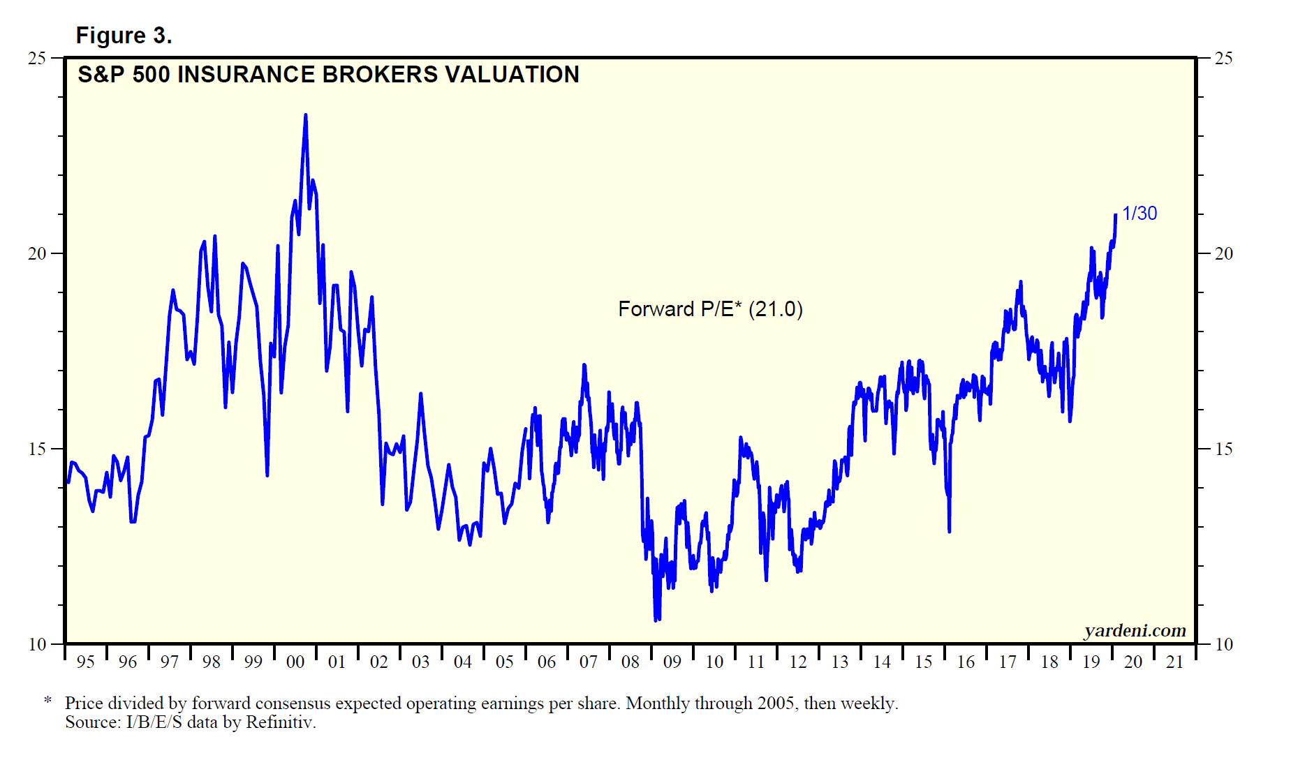 Strategy: Taking Stock of P/Es. In an act of amazing resilience, the S&P 500 remains near record highs even in the wake of skirmishes between the US and Iran. The index’s 28.9% climb last year has left its forward P/E at a lofty 18.2, almost four points higher than it was last year at this time (Fig. 1). Let’s take a look at the S&P 500 sectors’ earnings growth and P/Es to see what looks cheap and expensive as 2020 begins: