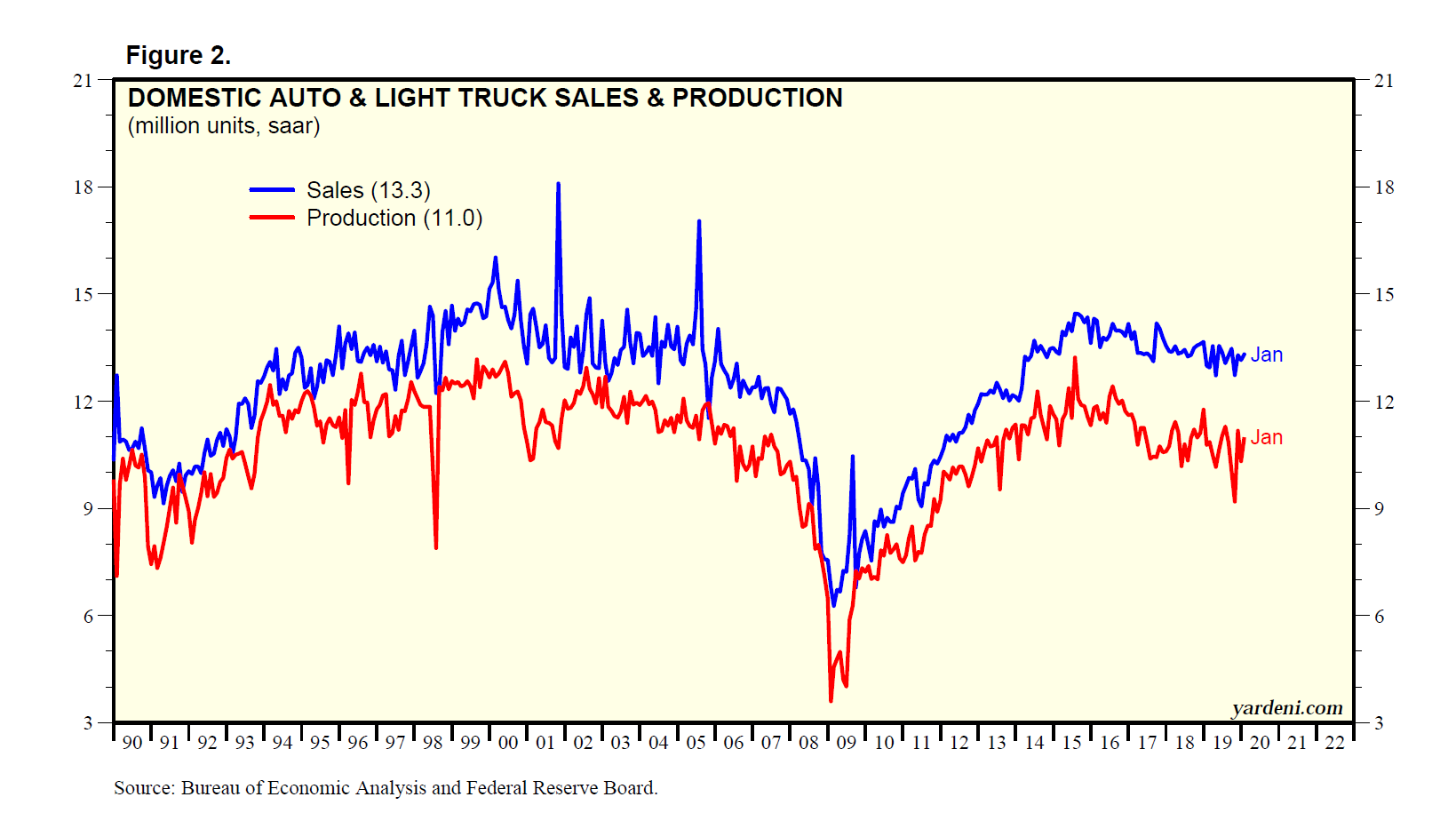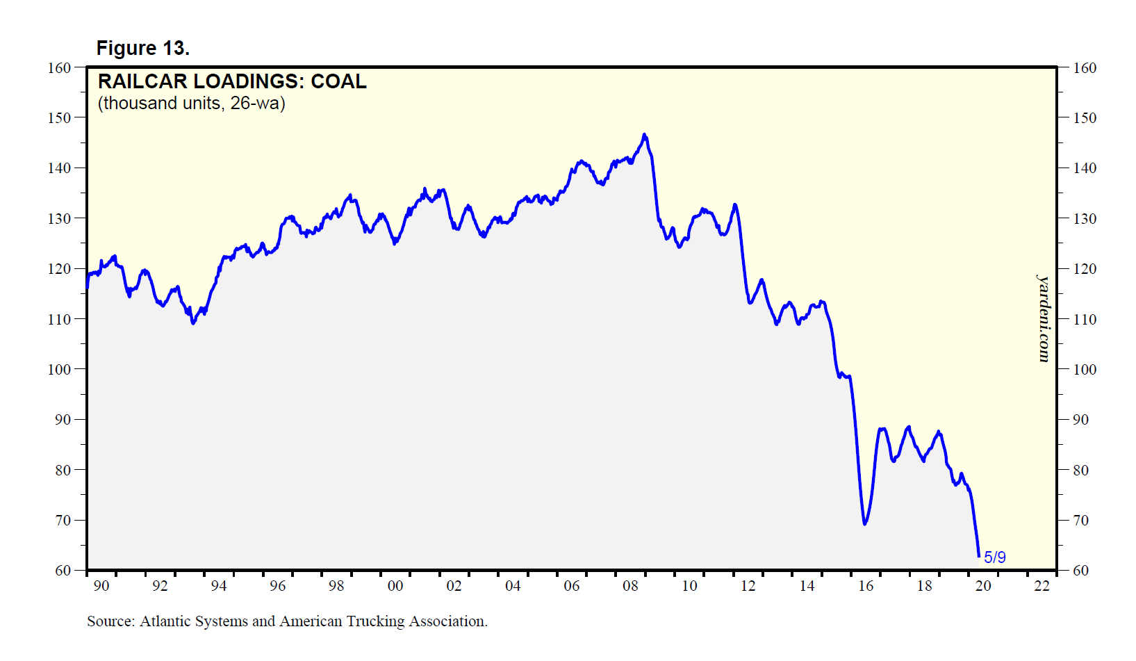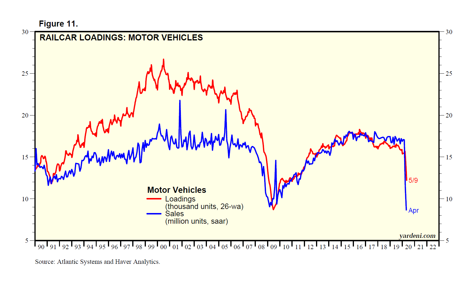 (5) Auto sales. There is a relatively tight fit between sales and railcar loadings of motor vehicles (Fig. 10). The former has stalled around 17.0 million (saar) for the past two years, while the latter has been on a modest downward trend, falling 3.7% y/y through the 12/28/19 week based on the 26-week average.