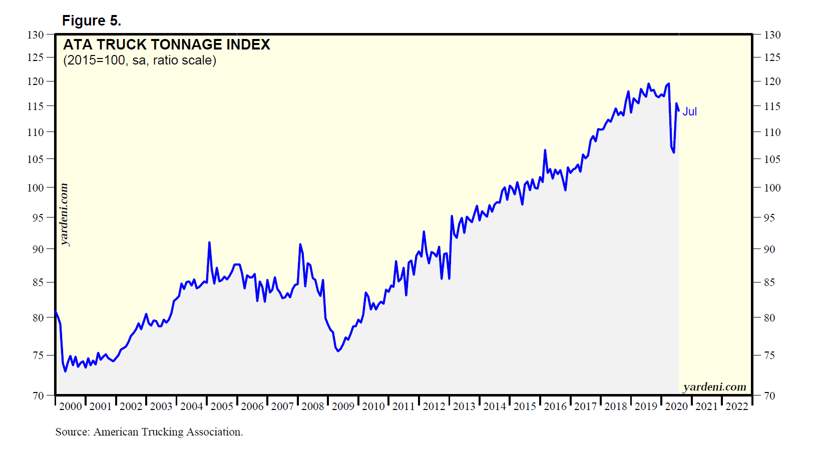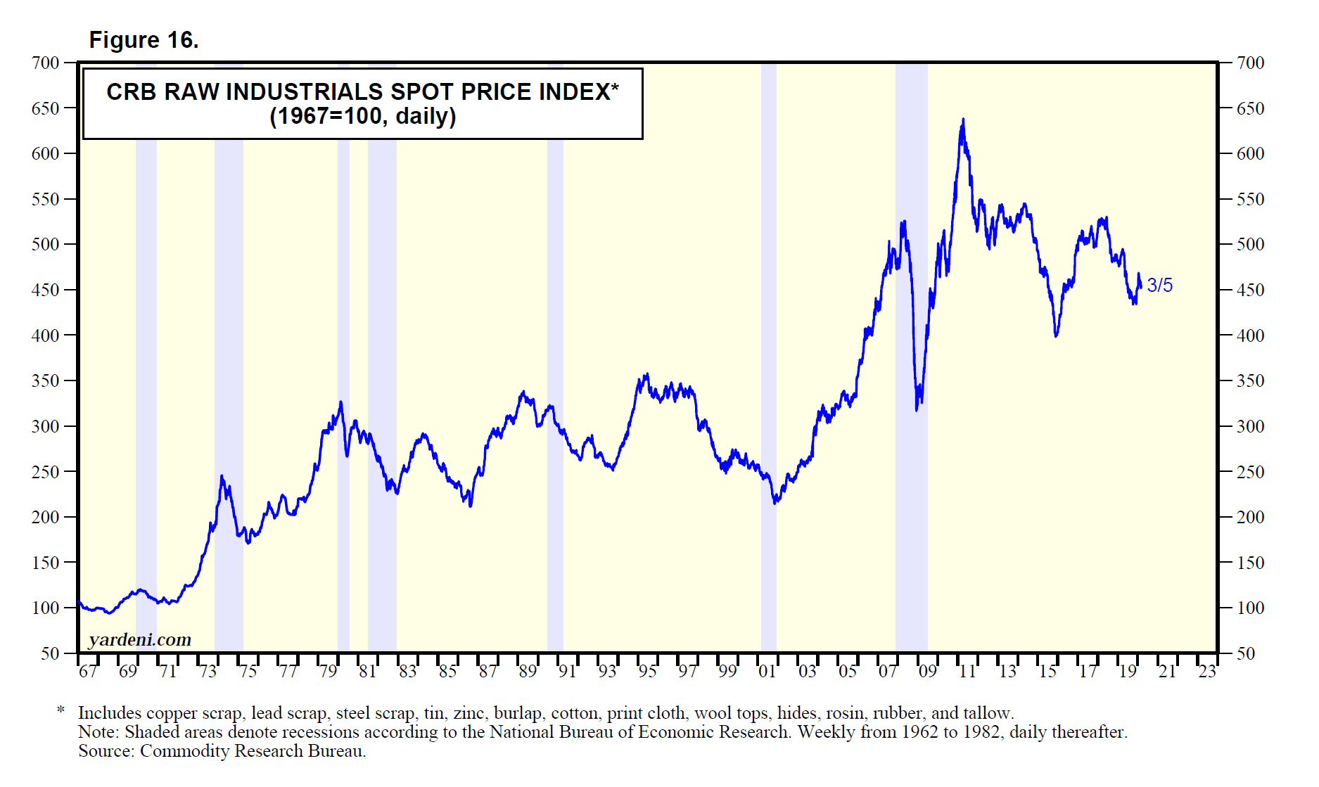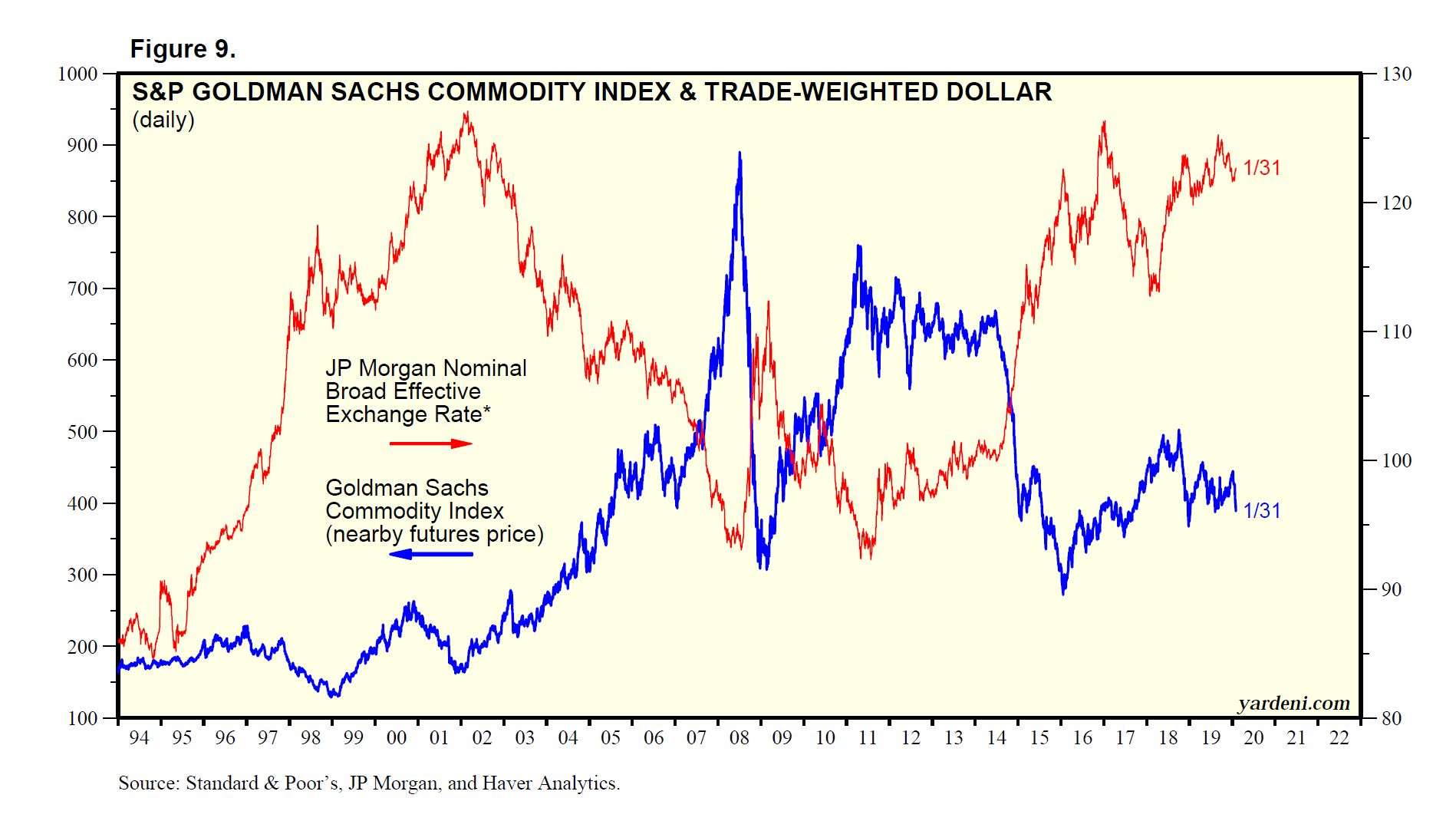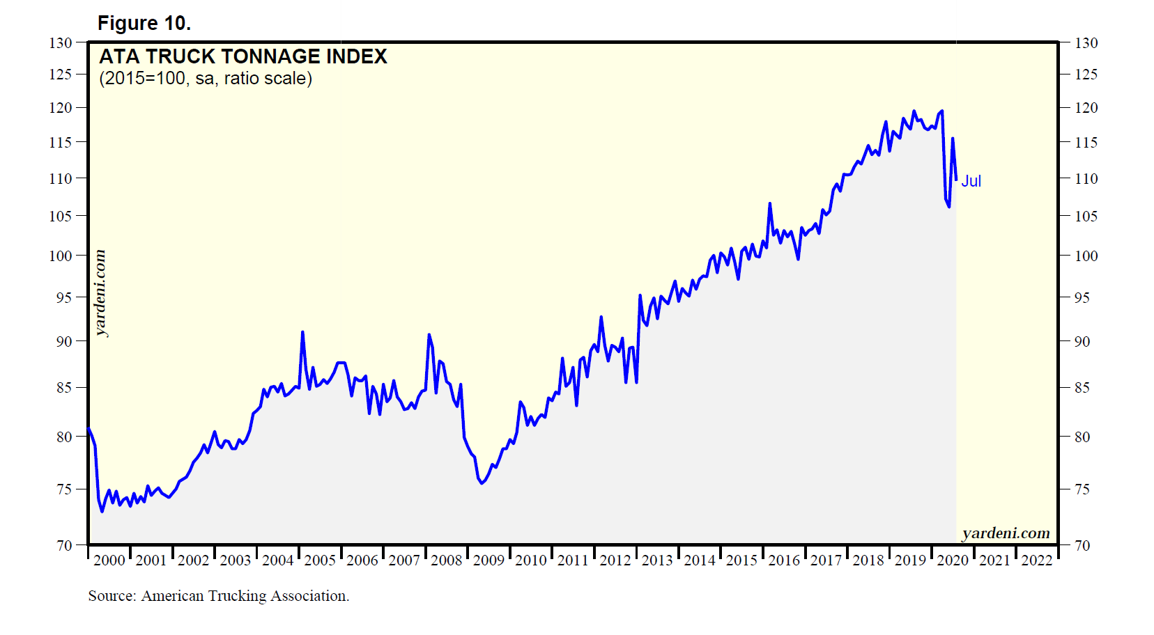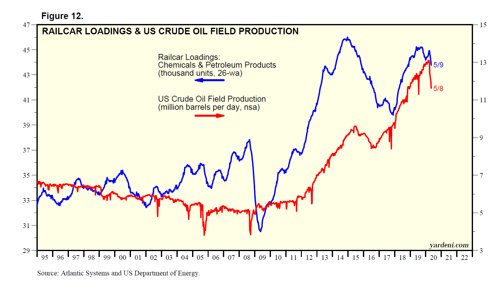 Not surprisingly, there is a good correlation between the y/y growth rate in manufacturing production and the comparable growth rates in both the trucking index and railcar loadings (Fig. 9). The former was down 1.2% during November, while the trucking index (using the three-month average of the series) was up only 1.2% and railcar loadings were down 6.9% during the final week of 2019, based on the 26-week average.