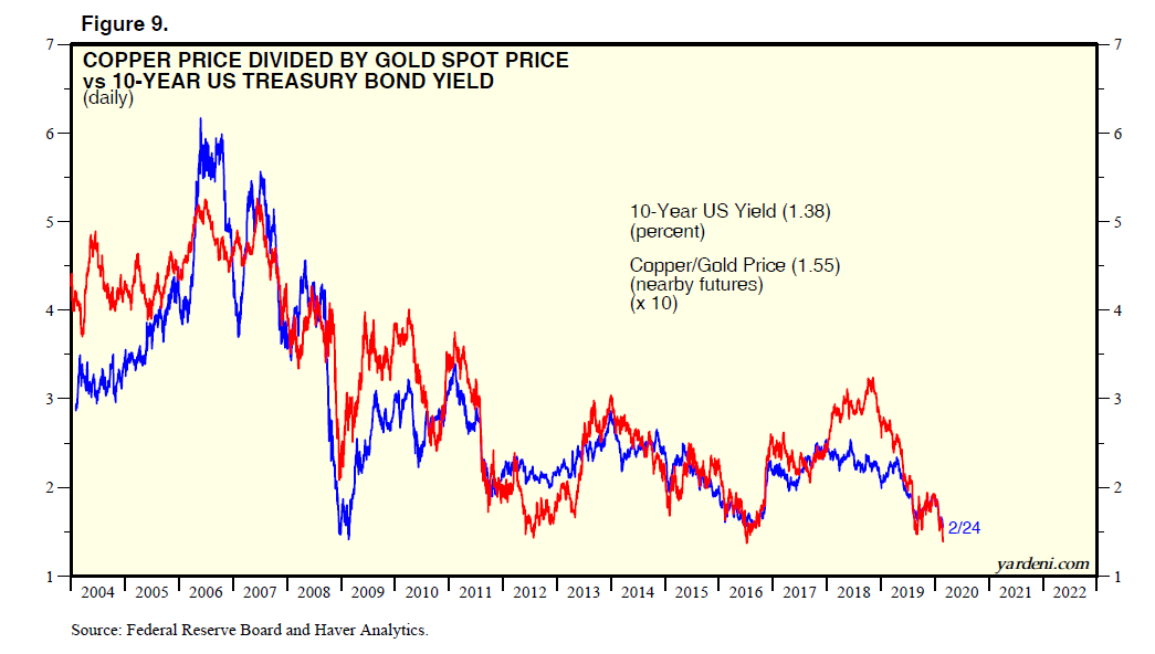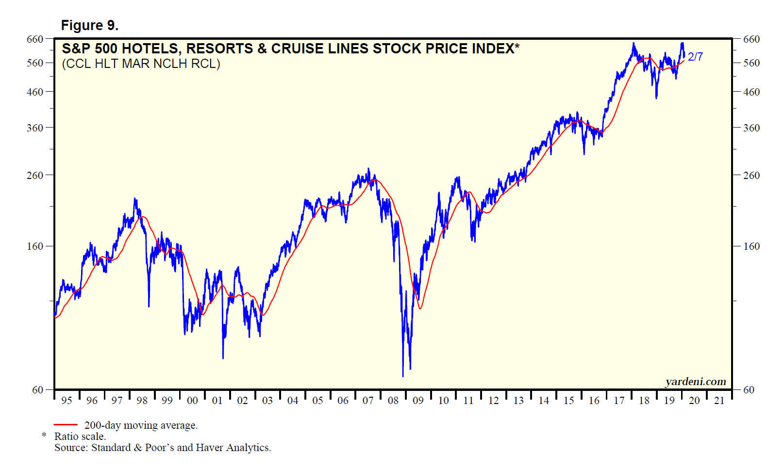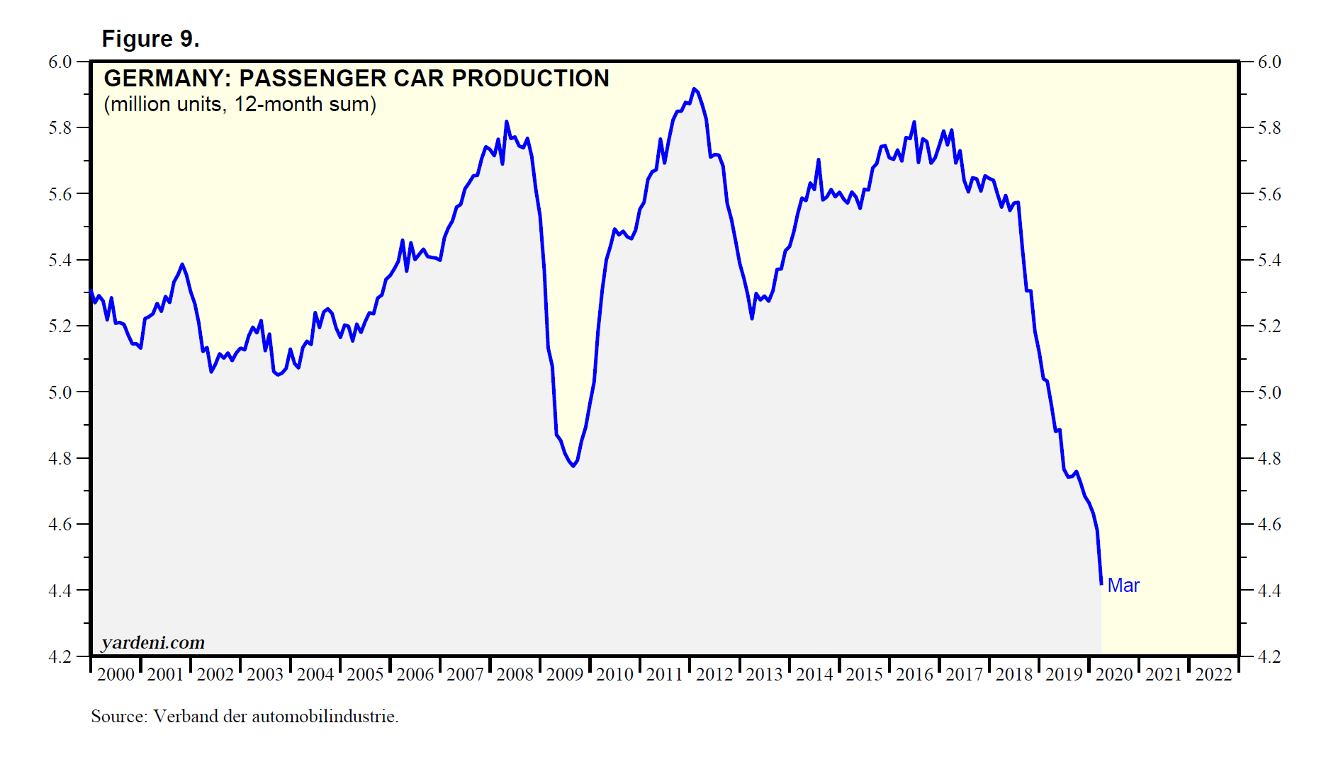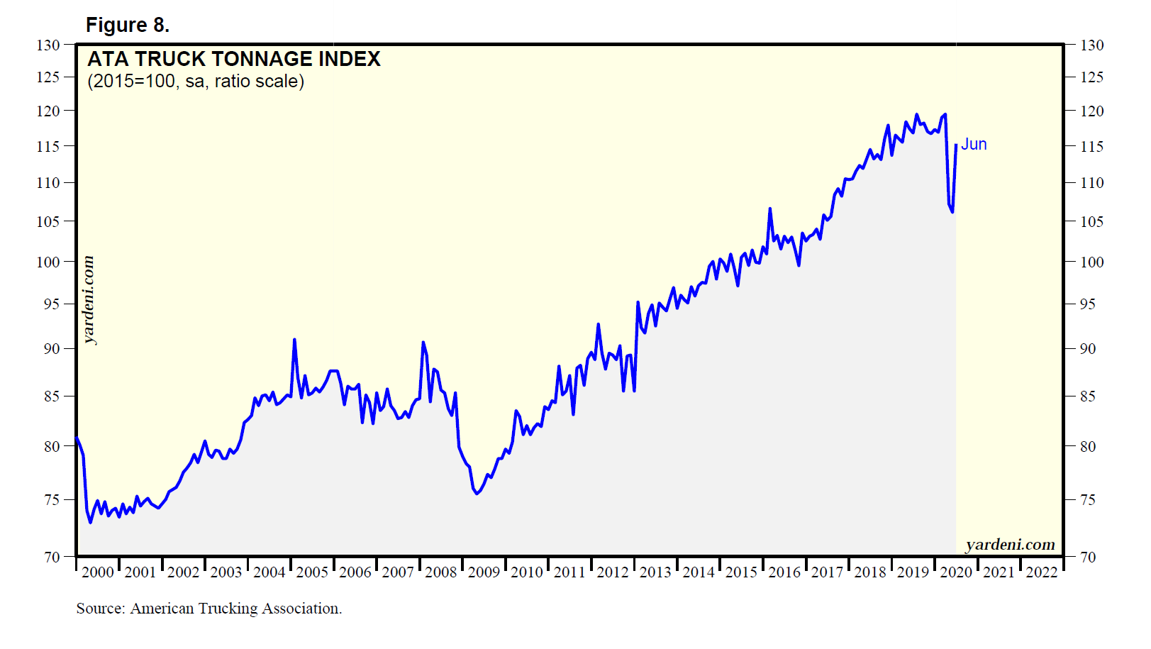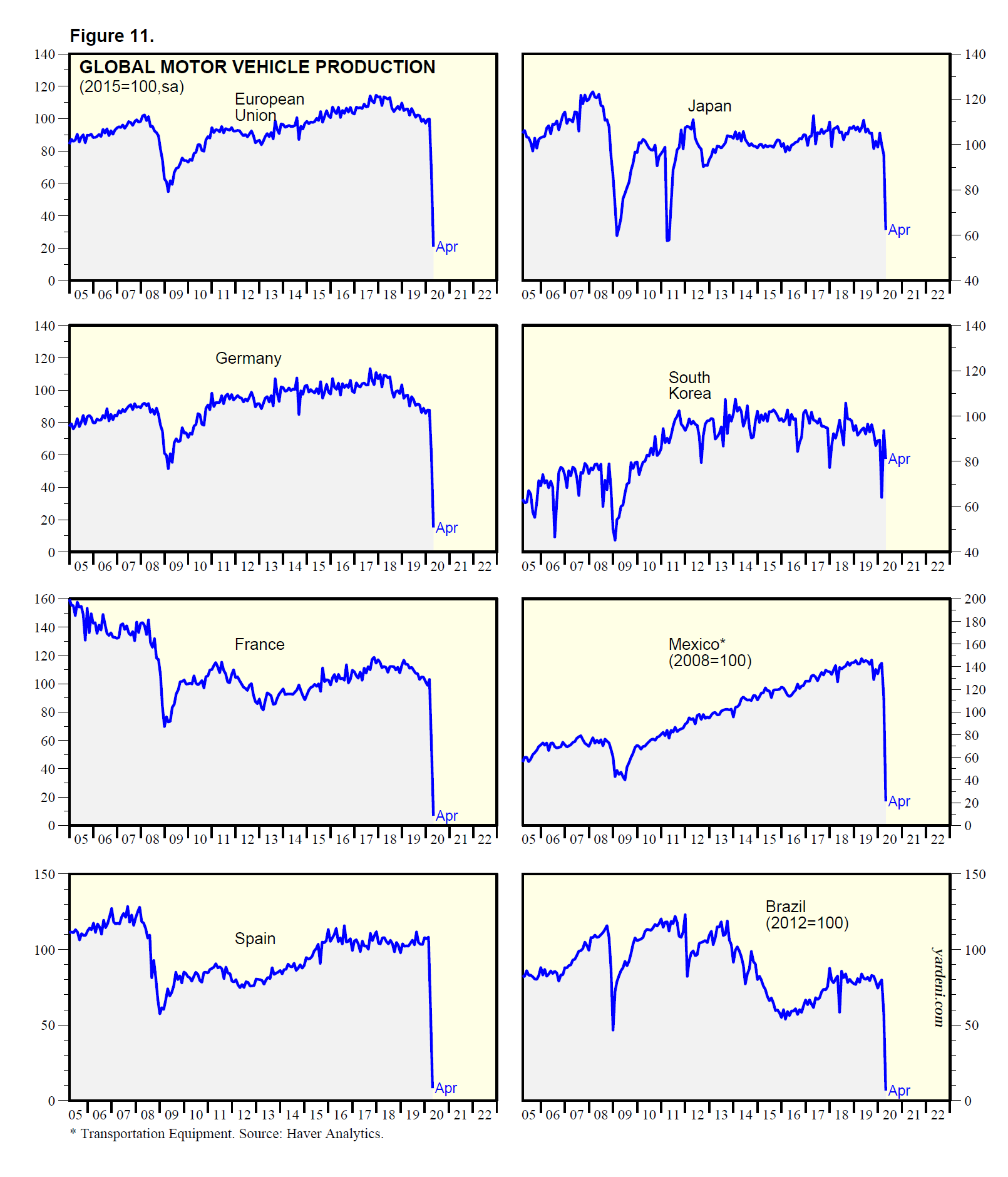 Not surprisingly, there is a good correlation between the y/y growth rate in manufacturing production and the comparable growth rates in both the trucking index and railcar loadings (Fig. 9). The former was down 1.2% during November, while the trucking index (using the three-month average of the series) was up only 1.2% and railcar loadings were down 6.9% during the final week of 2019, based on the 26-week average.