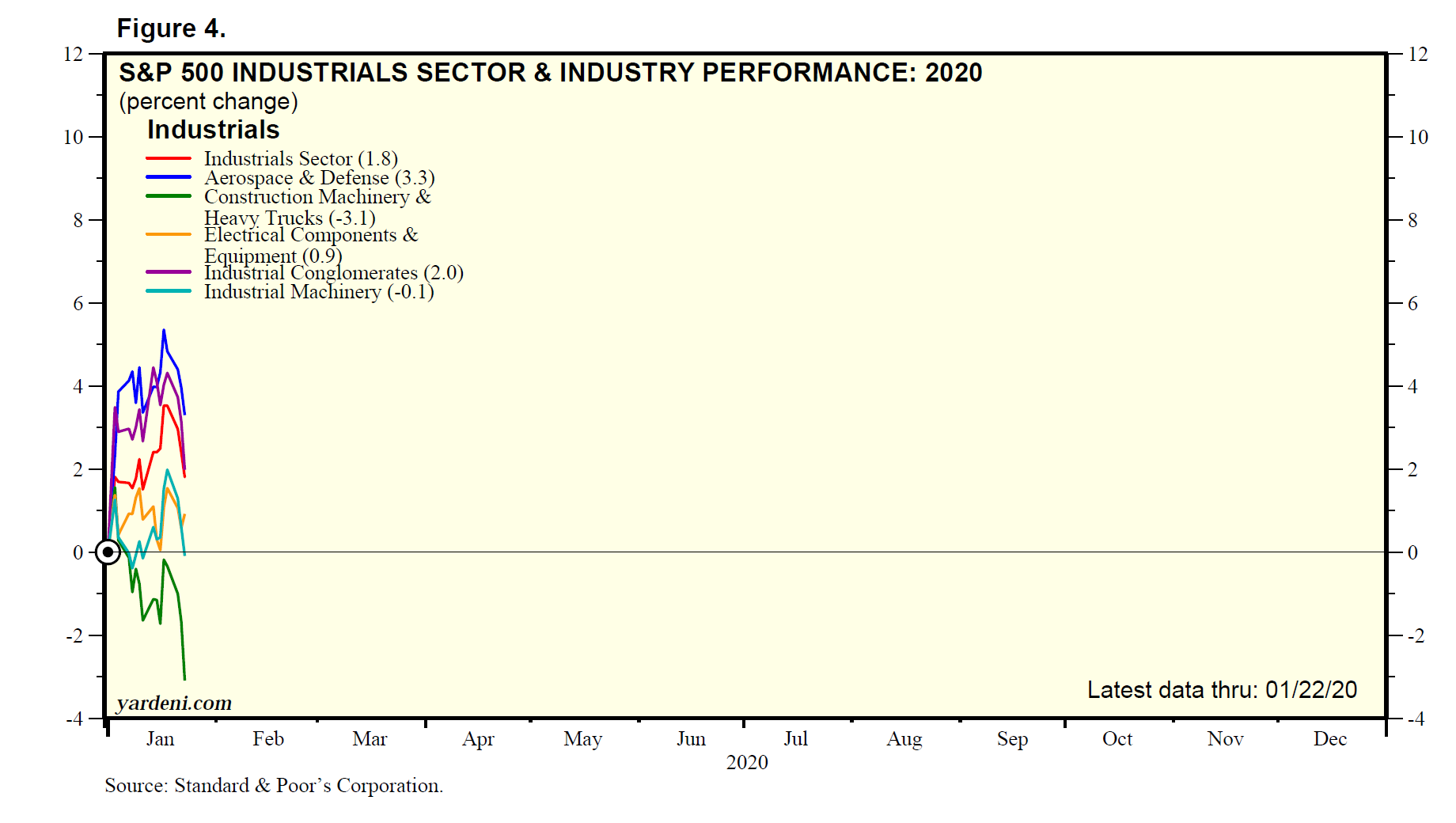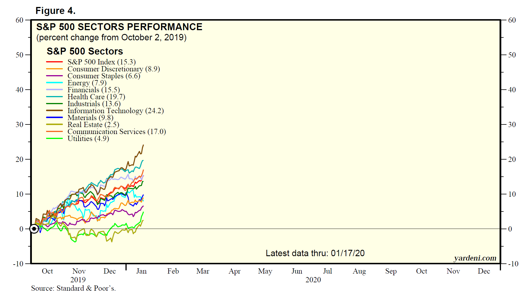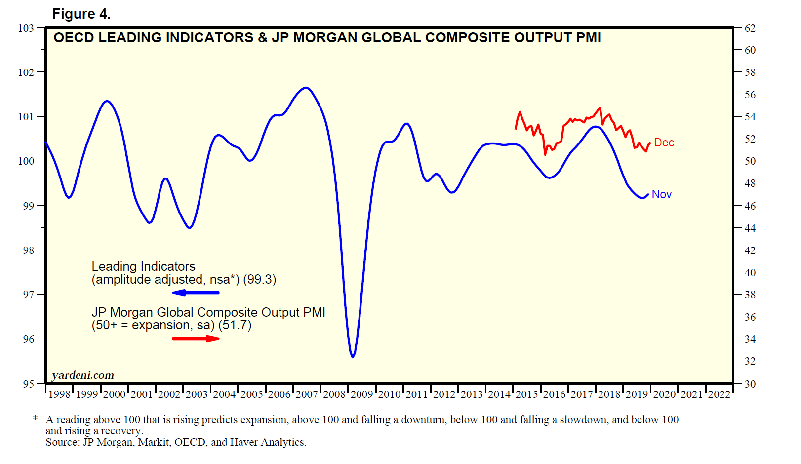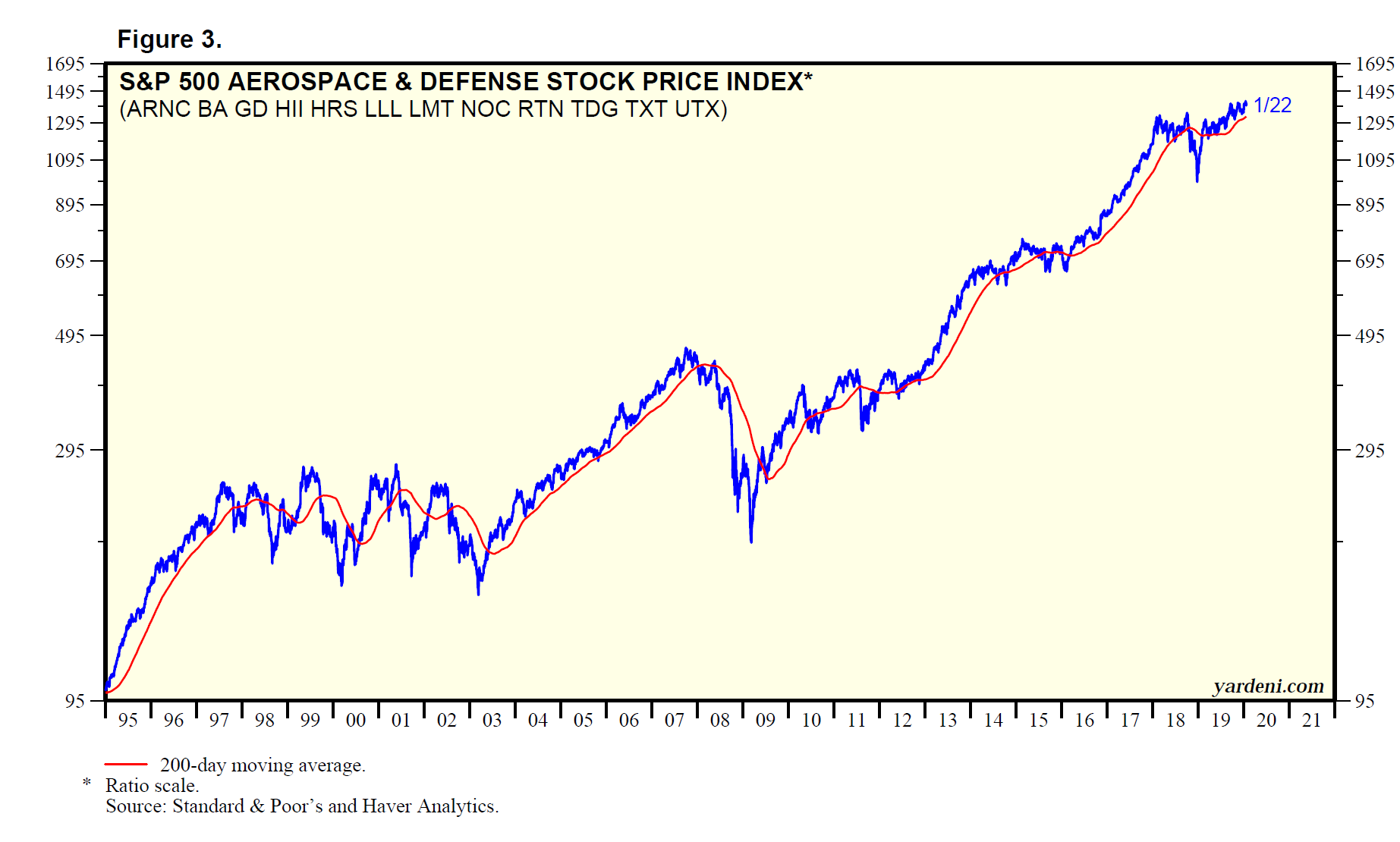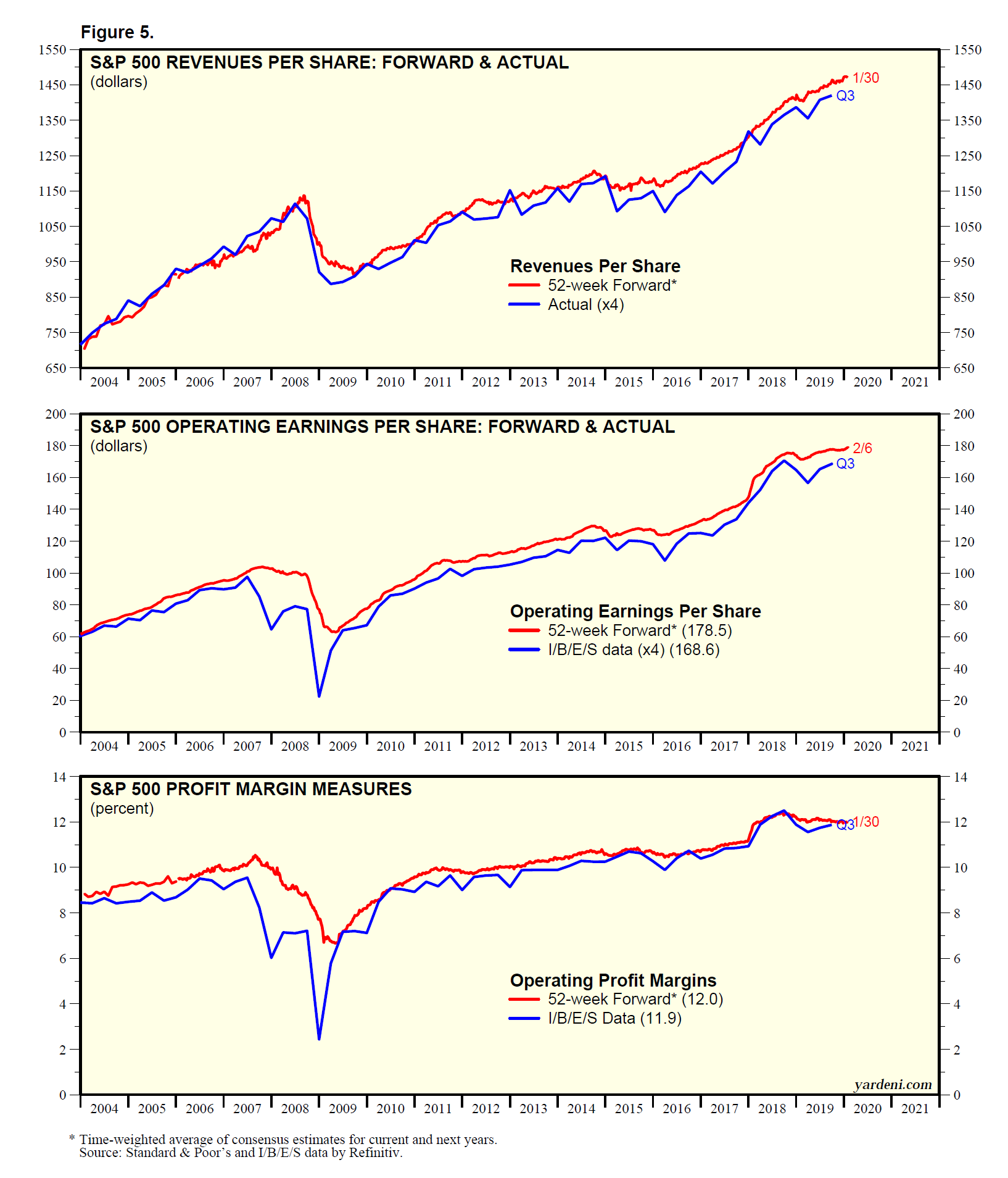 A 9/21/19 CNBC interview with me was titled “Stocks will soar 17% through next year, market bull Ed Yardeni predicts.” That seemed like a stretch back then, which wasn’t that long ago. Since then, the S&P 500 is up 8.1%. A follow-up 11/3/19 CNBC interview with me was titled “A ‘market melt-up’ is becoming a real risk as stocks hit new highs, Wall Street bull Ed Yardeni warns.” If rising tensions between the US and Iran trigger yet another panic attack, then we won’t have to fear an unsustainable meltup scenario. The question is whether we will have to fear a meltdown. We don’t think so. We are sticking with our 3500 target for the end of this year, for now.