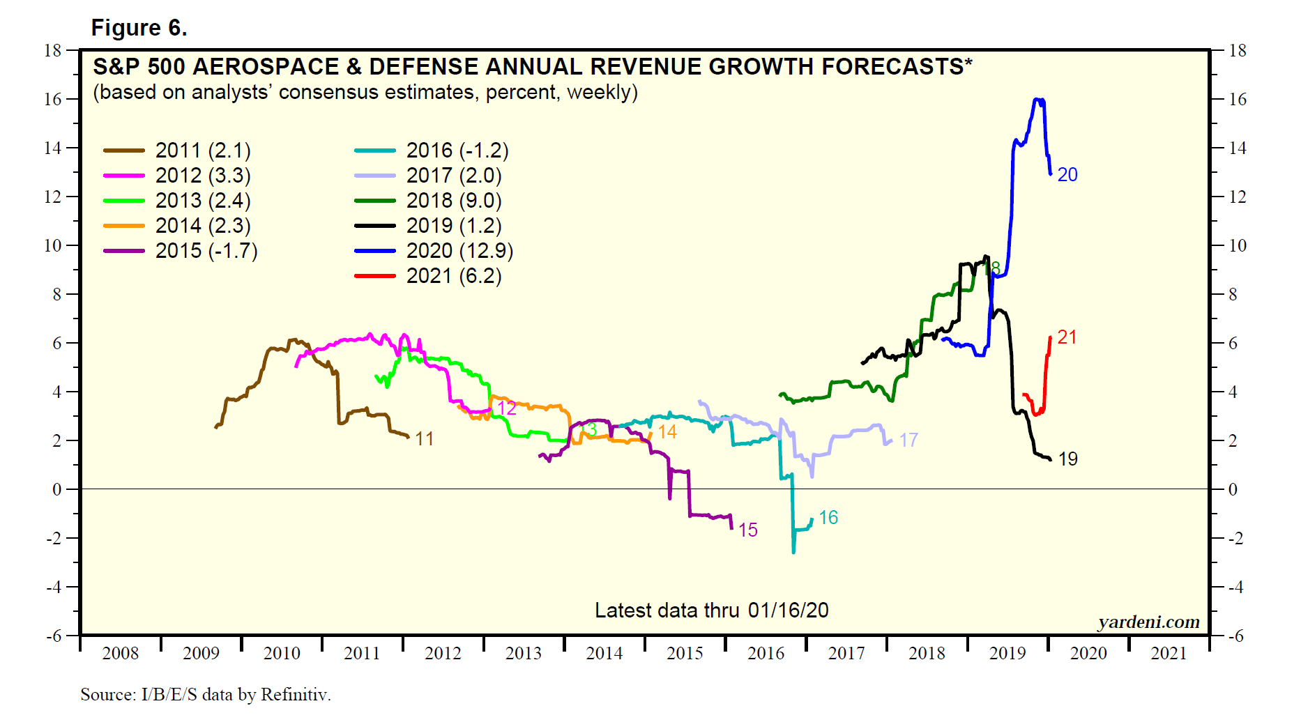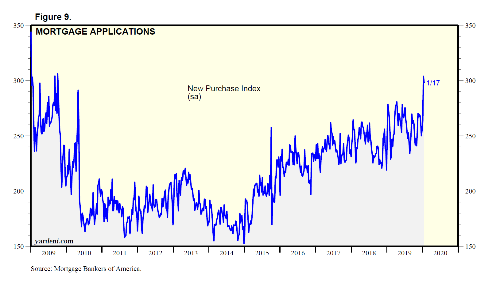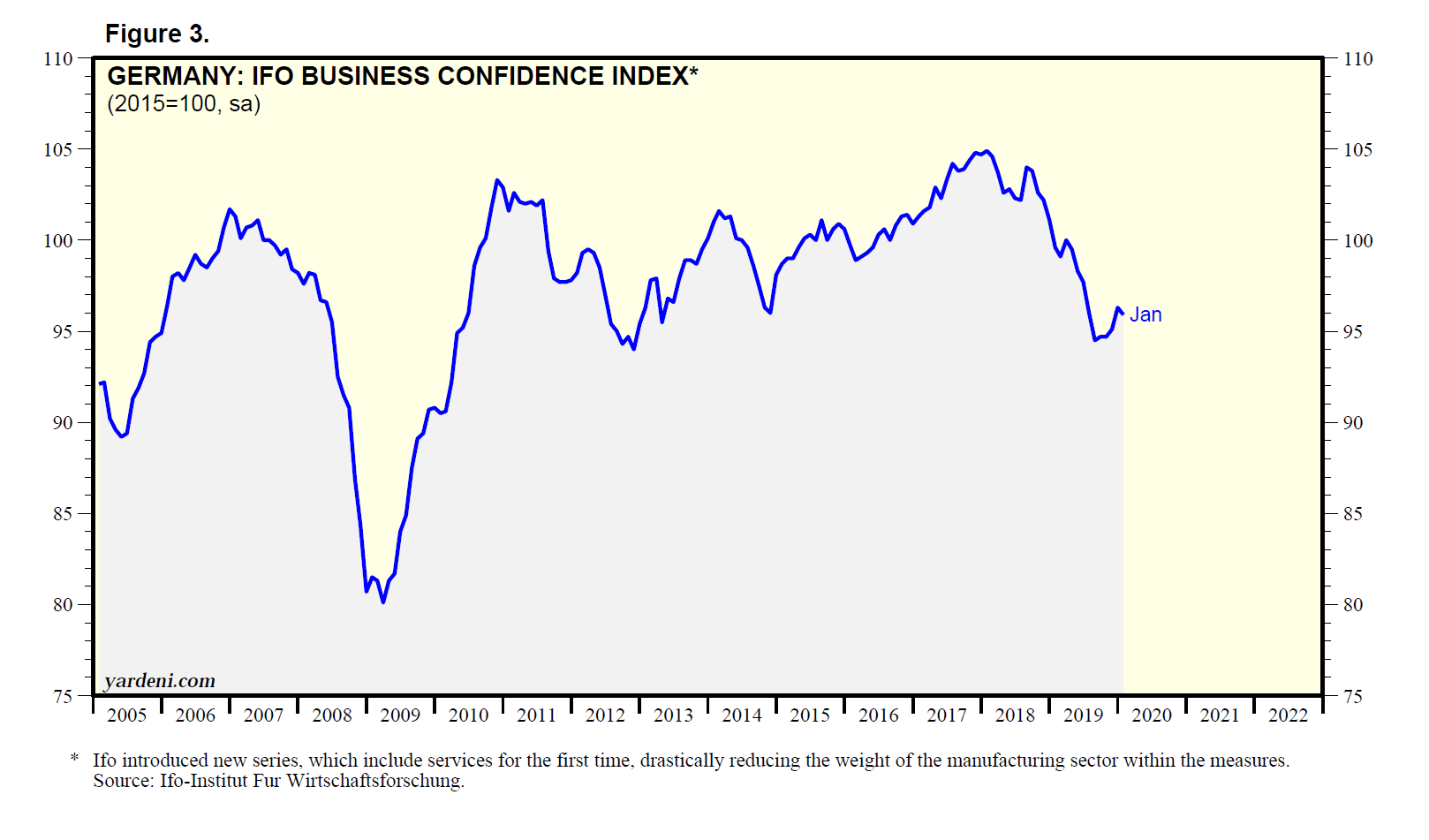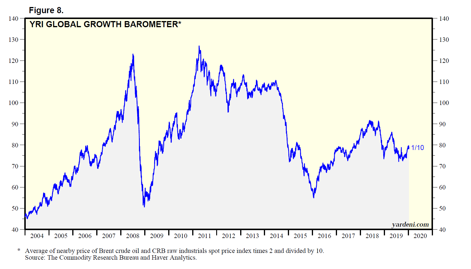 A 9/21/19 CNBC interview with me was titled “Stocks will soar 17% through next year, market bull Ed Yardeni predicts.” That seemed like a stretch back then, which wasn’t that long ago. Since then, the S&P 500 is up 8.1%. A follow-up 11/3/19 CNBC interview with me was titled “A ‘market melt-up’ is becoming a real risk as stocks hit new highs, Wall Street bull Ed Yardeni warns.” If rising tensions between the US and Iran trigger yet another panic attack, then we won’t have to fear an unsustainable meltup scenario. The question is whether we will have to fear a meltdown. We don’t think so. We are sticking with our 3500 target for the end of this year, for now.