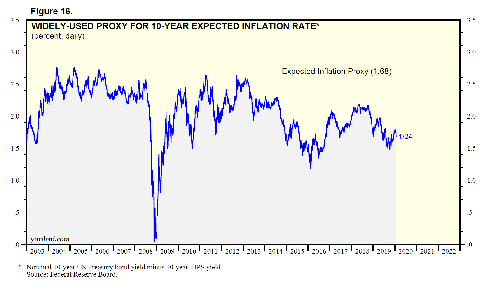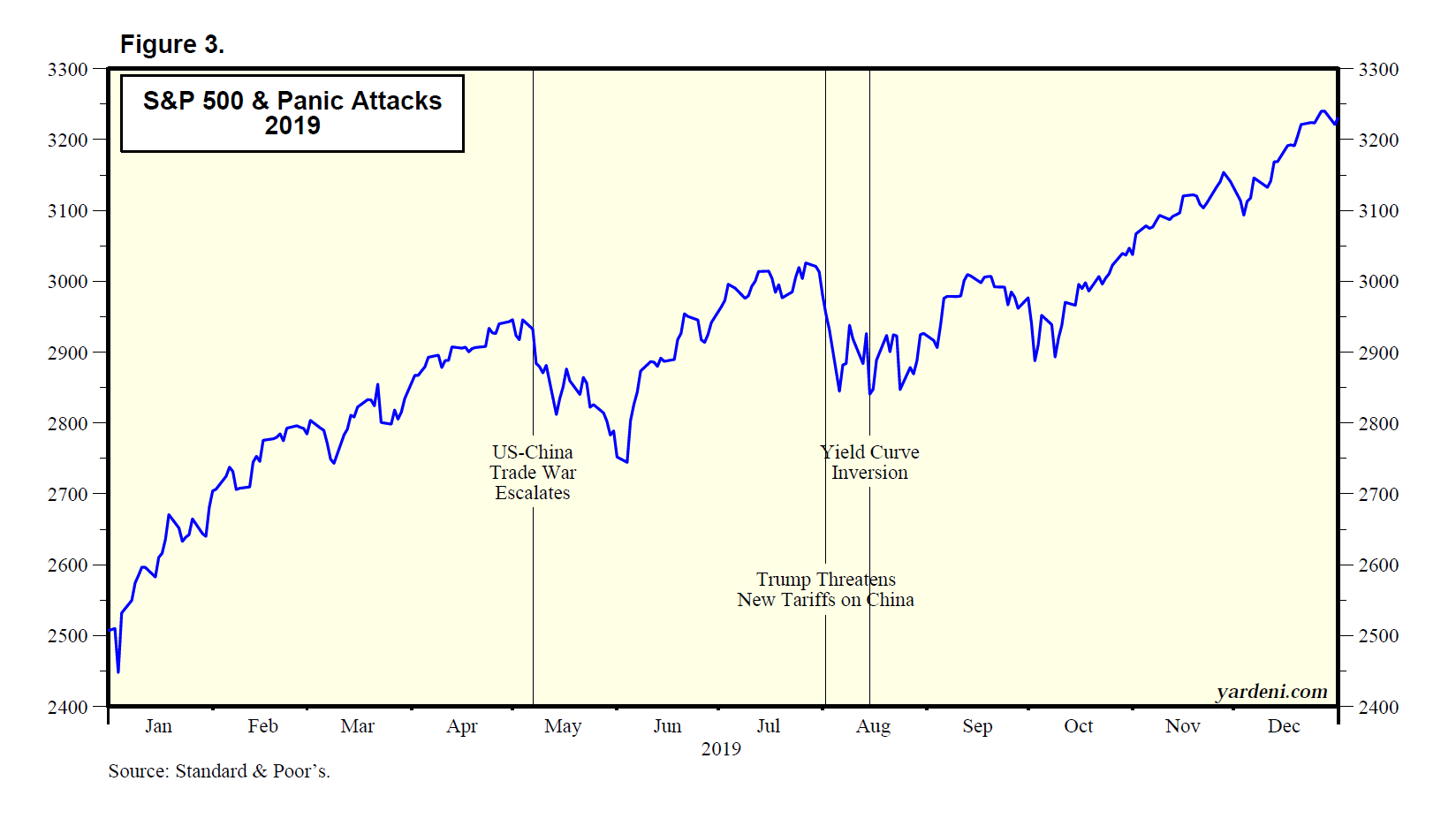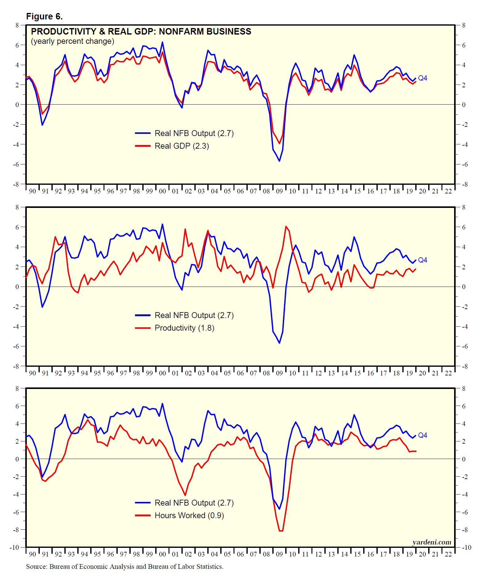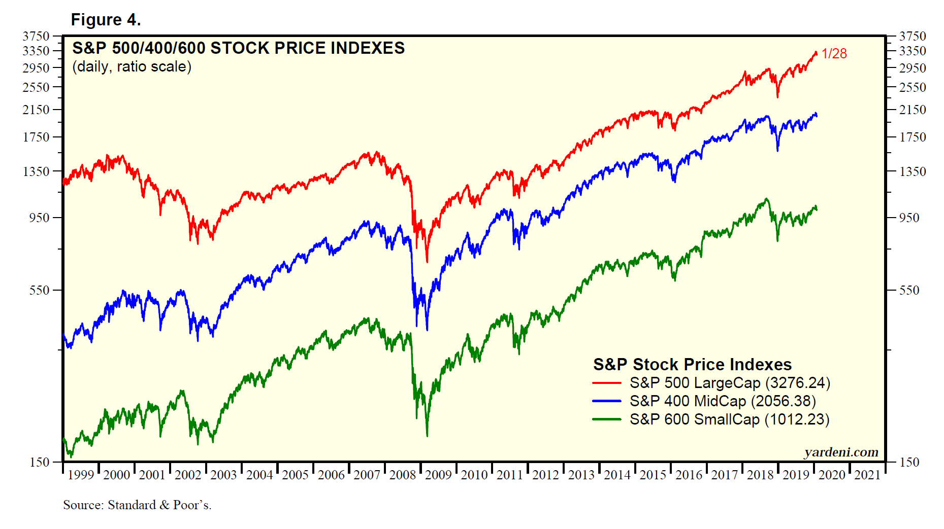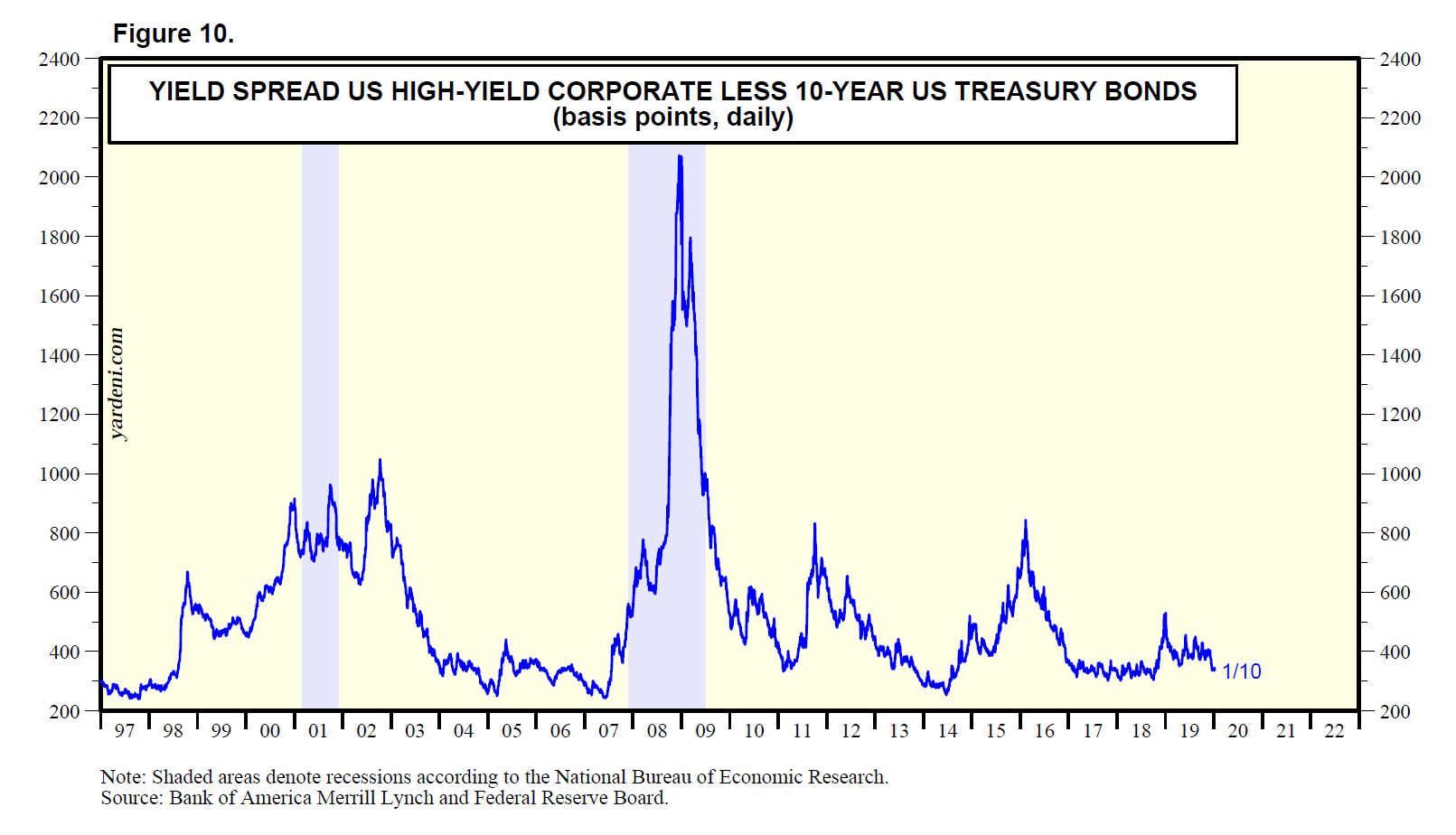 A 9/21/19 CNBC interview with me was titled “Stocks will soar 17% through next year, market bull Ed Yardeni predicts.” That seemed like a stretch back then, which wasn’t that long ago. Since then, the S&P 500 is up 8.1%. A follow-up 11/3/19 CNBC interview with me was titled “A ‘market melt-up’ is becoming a real risk as stocks hit new highs, Wall Street bull Ed Yardeni warns.” If rising tensions between the US and Iran trigger yet another panic attack, then we won’t have to fear an unsustainable meltup scenario. The question is whether we will have to fear a meltdown. We don’t think so. We are sticking with our 3500 target for the end of this year, for now.
