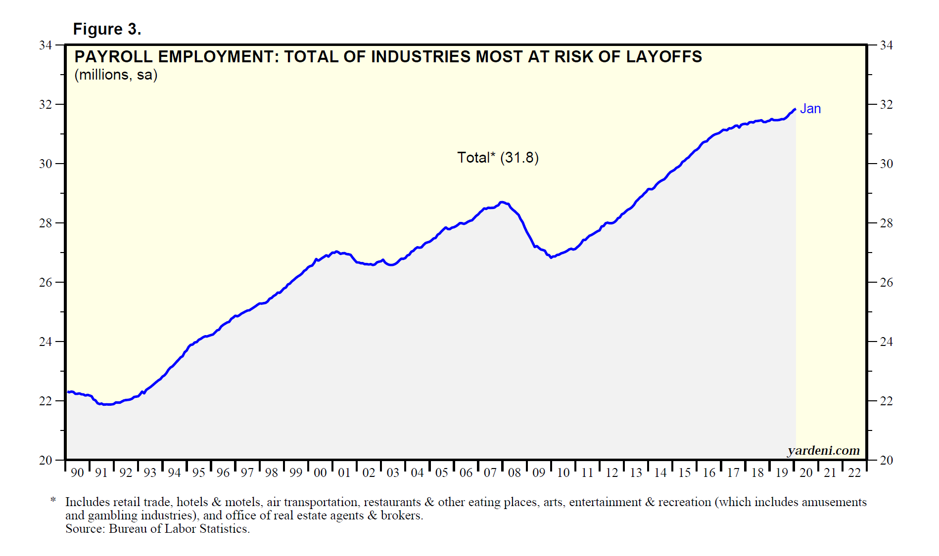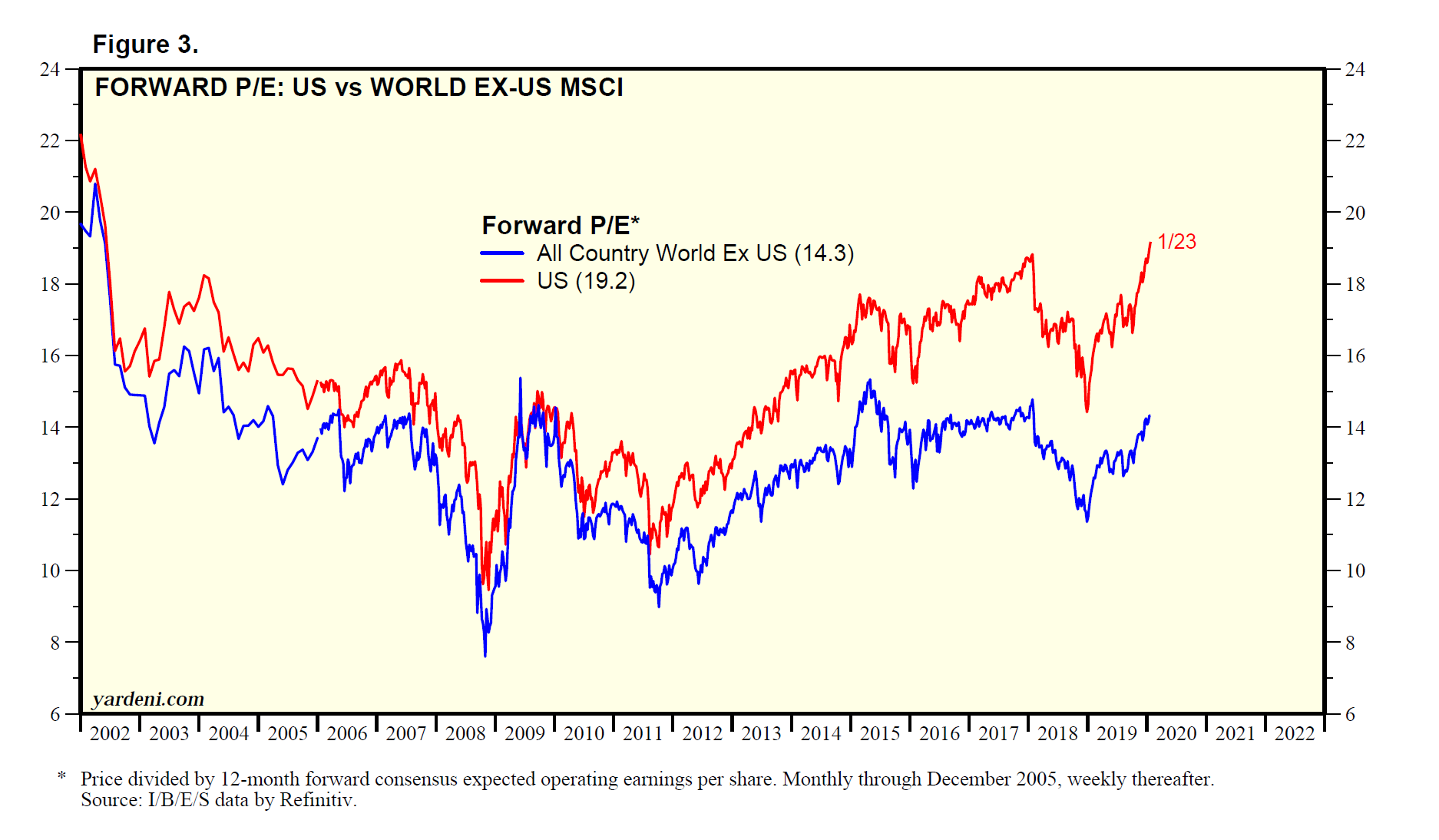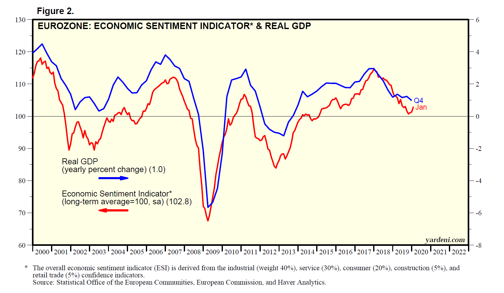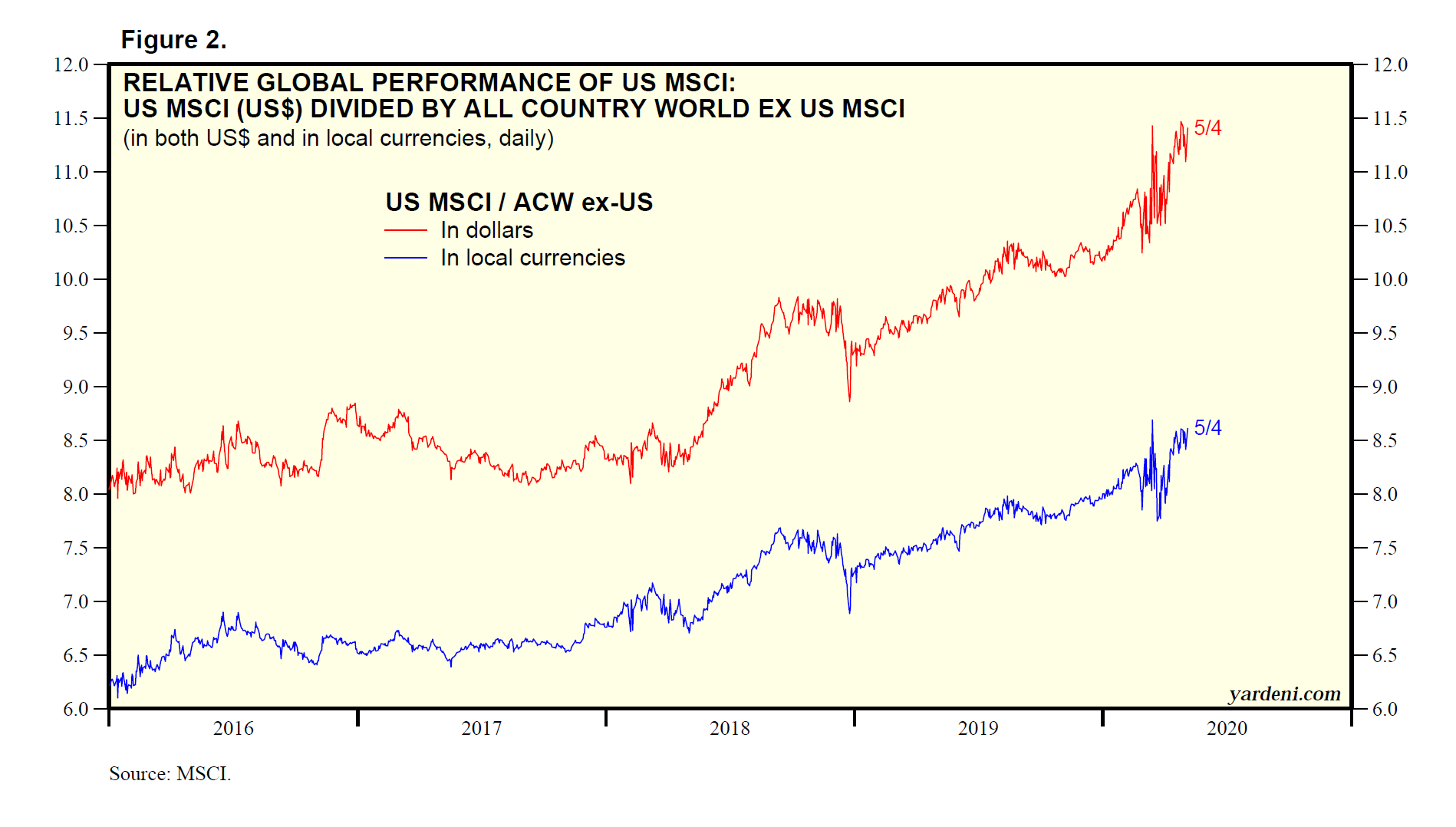 A 9/21/19 CNBC interview with me was titled “Stocks will soar 17% through next year, market bull Ed Yardeni predicts.” That seemed like a stretch back then, which wasn’t that long ago. Since then, the S&P 500 is up 8.1%. A follow-up 11/3/19 CNBC interview with me was titled “A ‘market melt-up’ is becoming a real risk as stocks hit new highs, Wall Street bull Ed Yardeni warns.” If rising tensions between the US and Iran trigger yet another panic attack, then we won’t have to fear an unsustainable meltup scenario. The question is whether we will have to fear a meltdown. We don’t think so. We are sticking with our 3500 target for the end of this year, for now.
