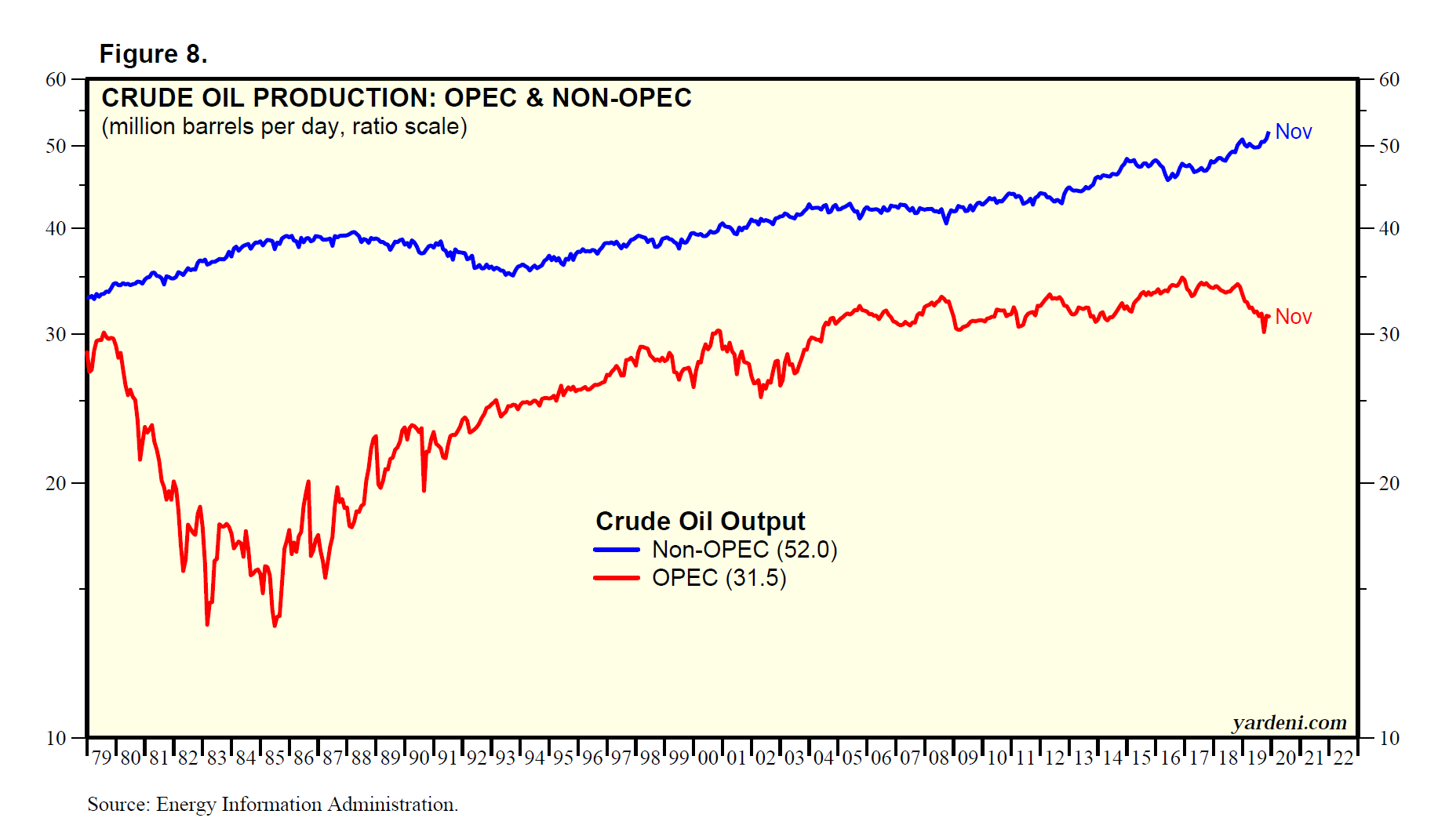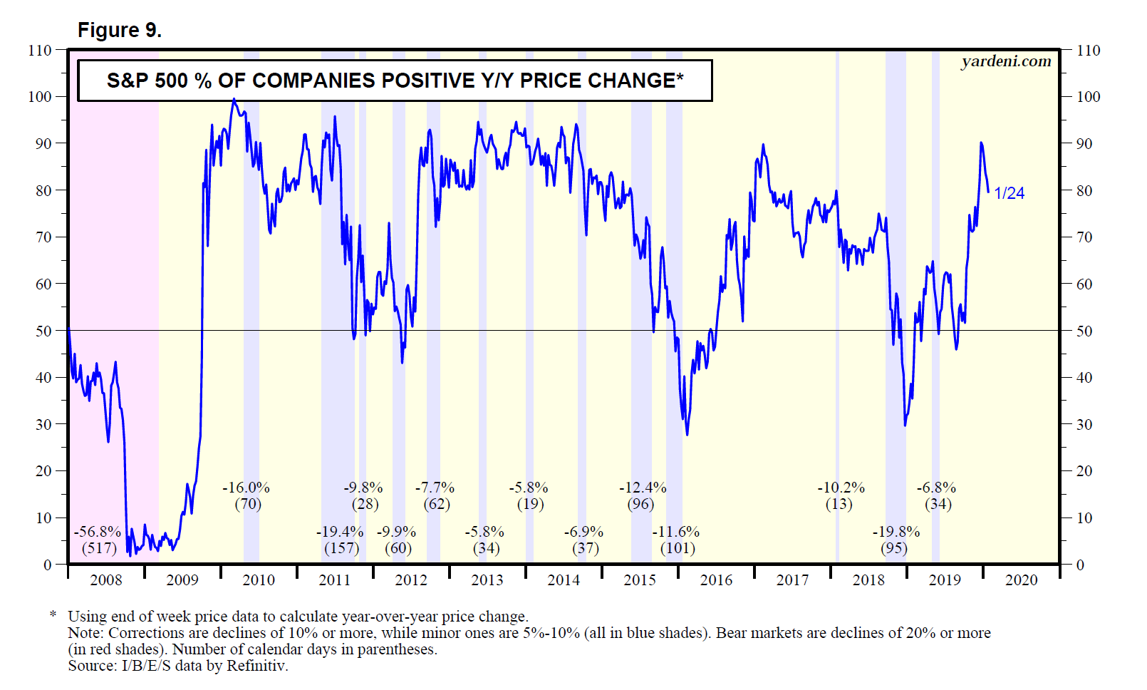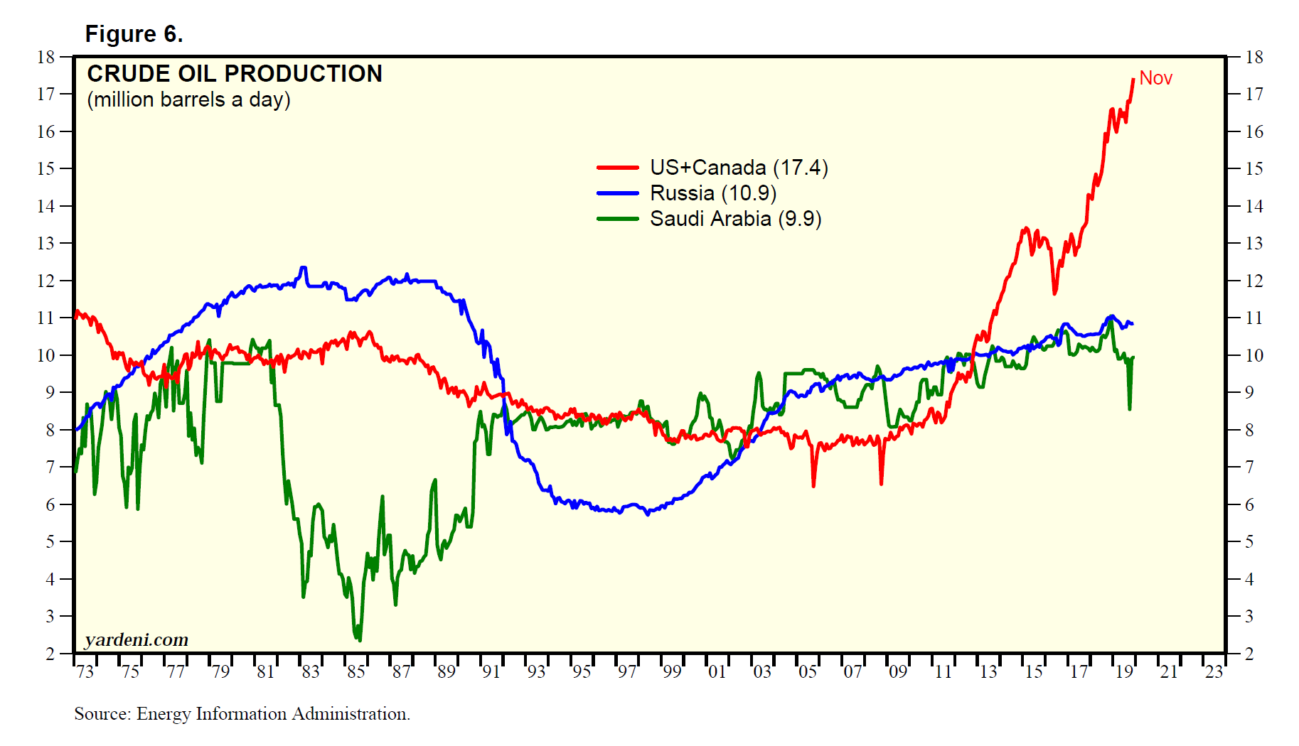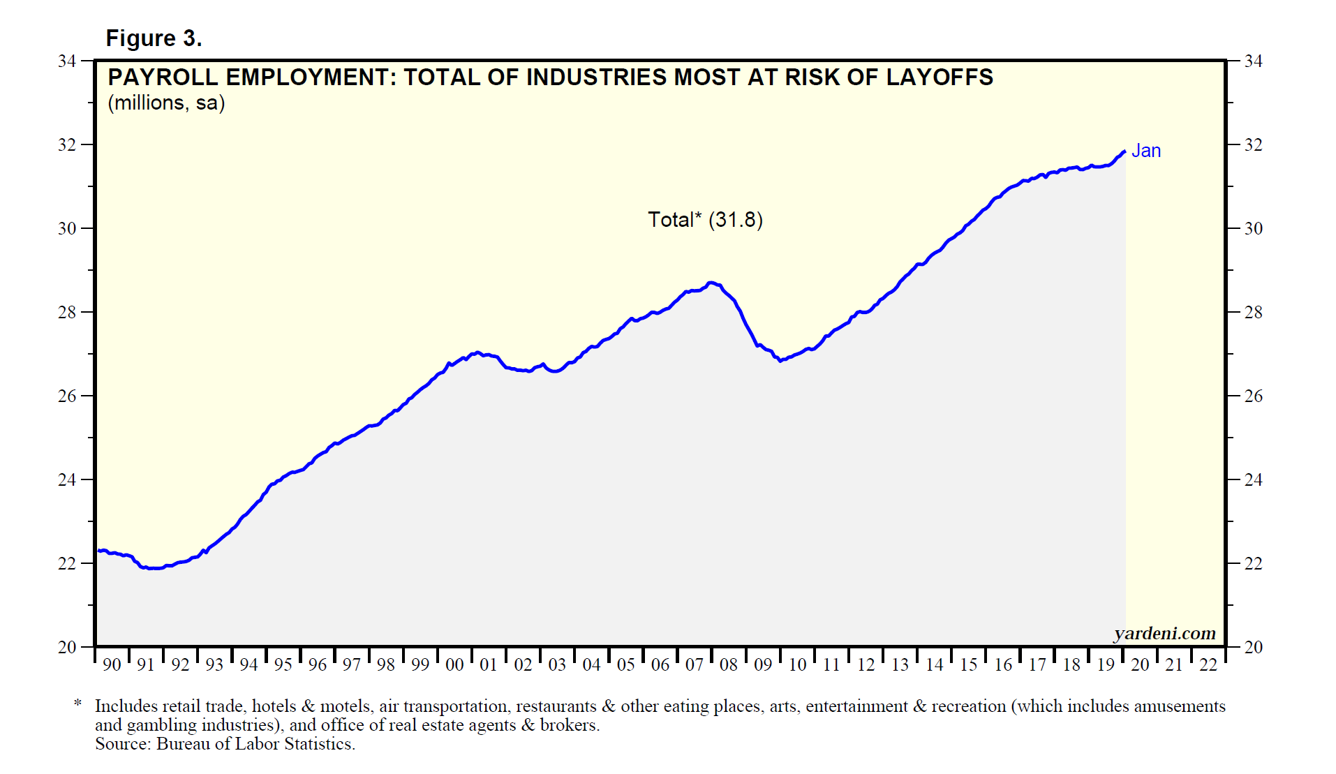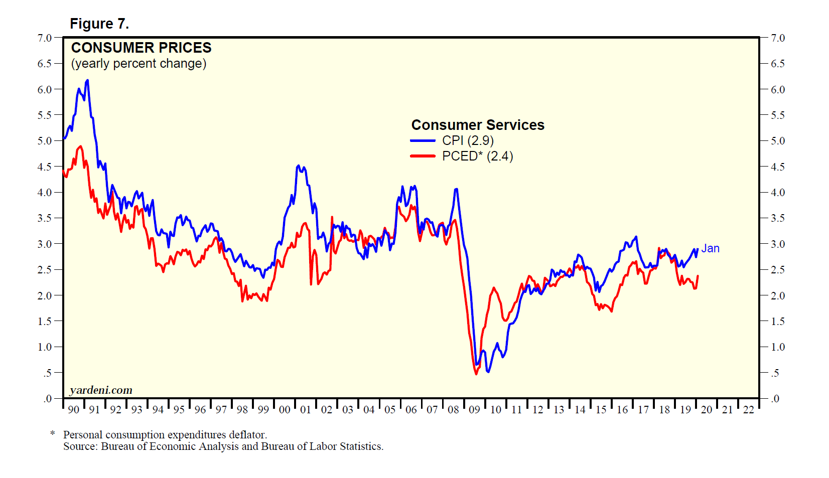 A 9/21/19 CNBC interview with me was titled “Stocks will soar 17% through next year, market bull Ed Yardeni predicts.” That seemed like a stretch back then, which wasn’t that long ago. Since then, the S&P 500 is up 8.1%. A follow-up 11/3/19 CNBC interview with me was titled “A ‘market melt-up’ is becoming a real risk as stocks hit new highs, Wall Street bull Ed Yardeni warns.” If rising tensions between the US and Iran trigger yet another panic attack, then we won’t have to fear an unsustainable meltup scenario. The question is whether we will have to fear a meltdown. We don’t think so. We are sticking with our 3500 target for the end of this year, for now.