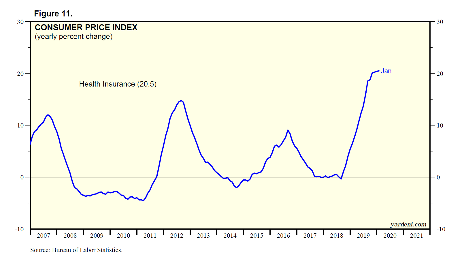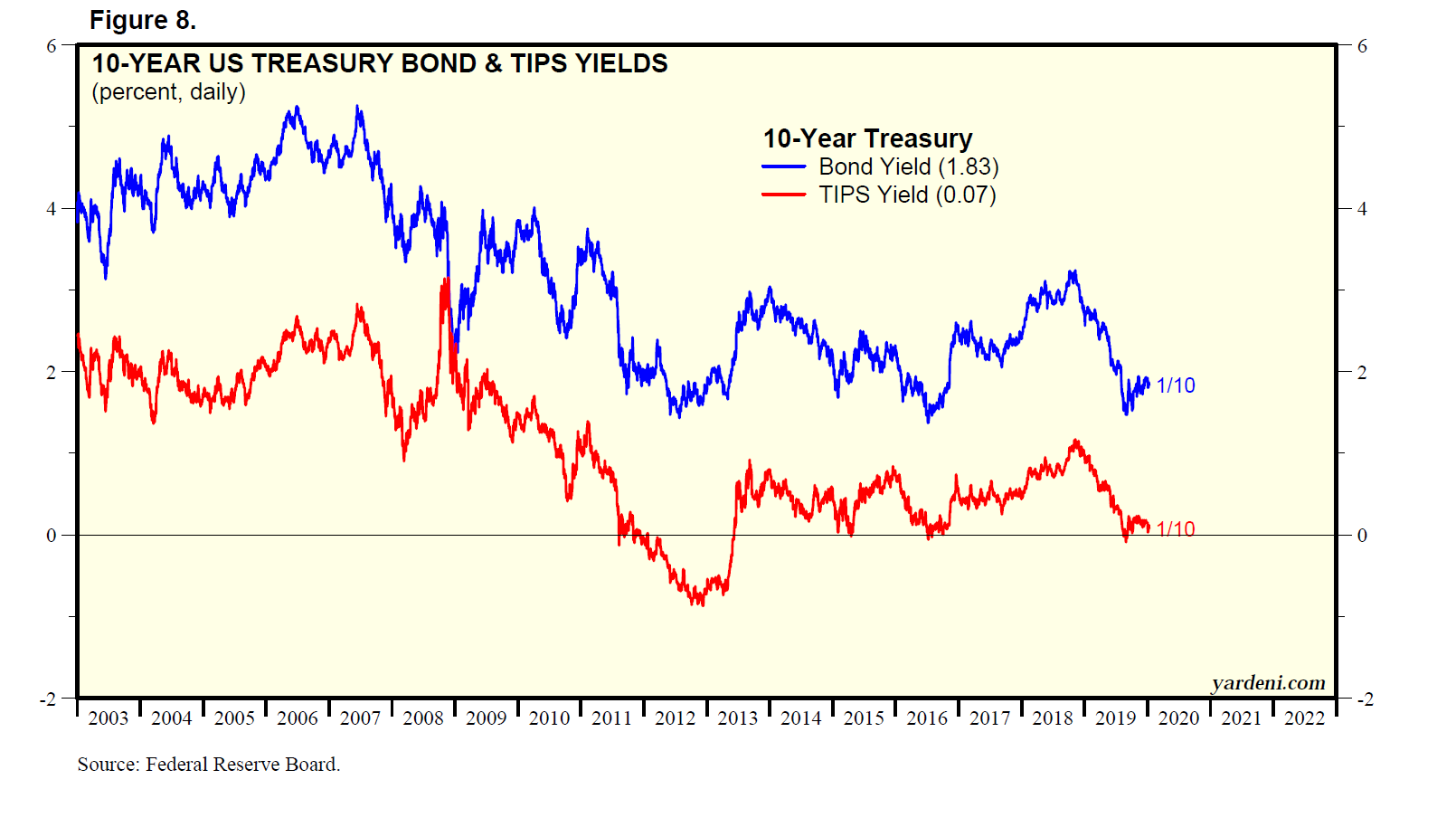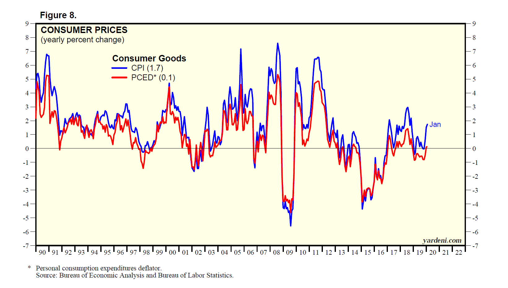 Last year, we projected that the S&P 500 forward P/E would be back a bit over 18.0 by the end of 2020. So that forecast is ahead of schedule too. We don’t have a problem with that given our outlook that both inflation and interest rates will remain low this year. Previously, we noted that the Misery Index, which is the sum of the unemployment rate and the inflation rate, is at historical lows, justifying historically high valuations (Fig. 8).