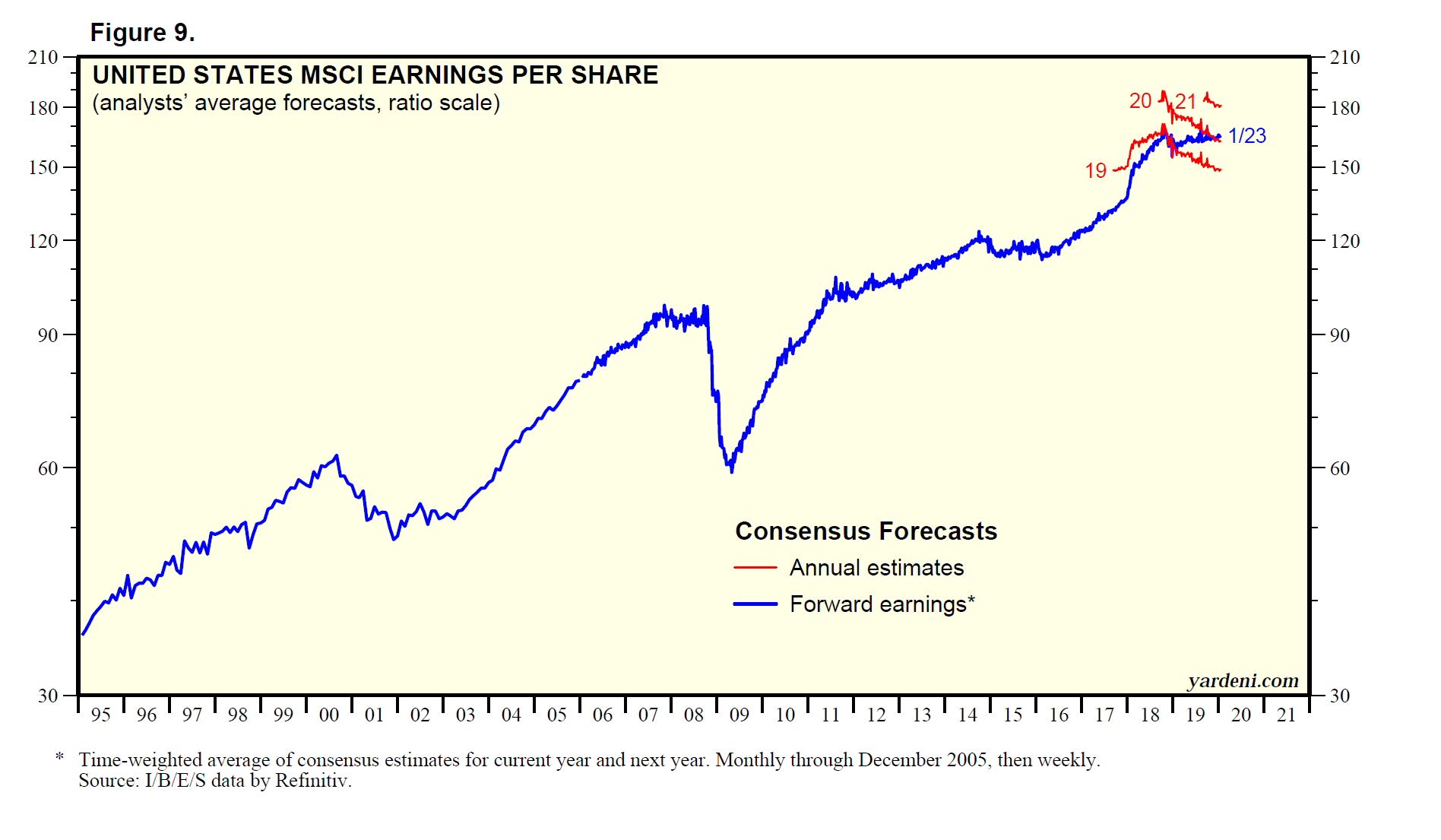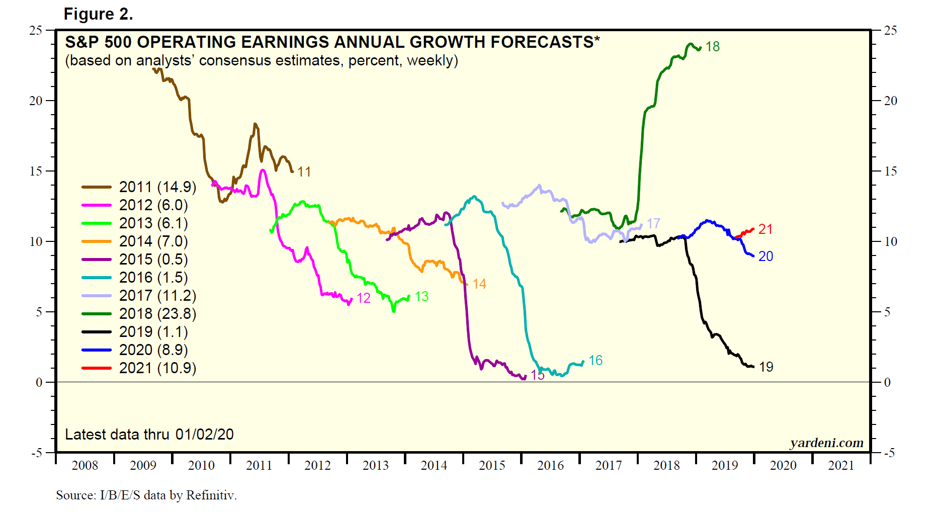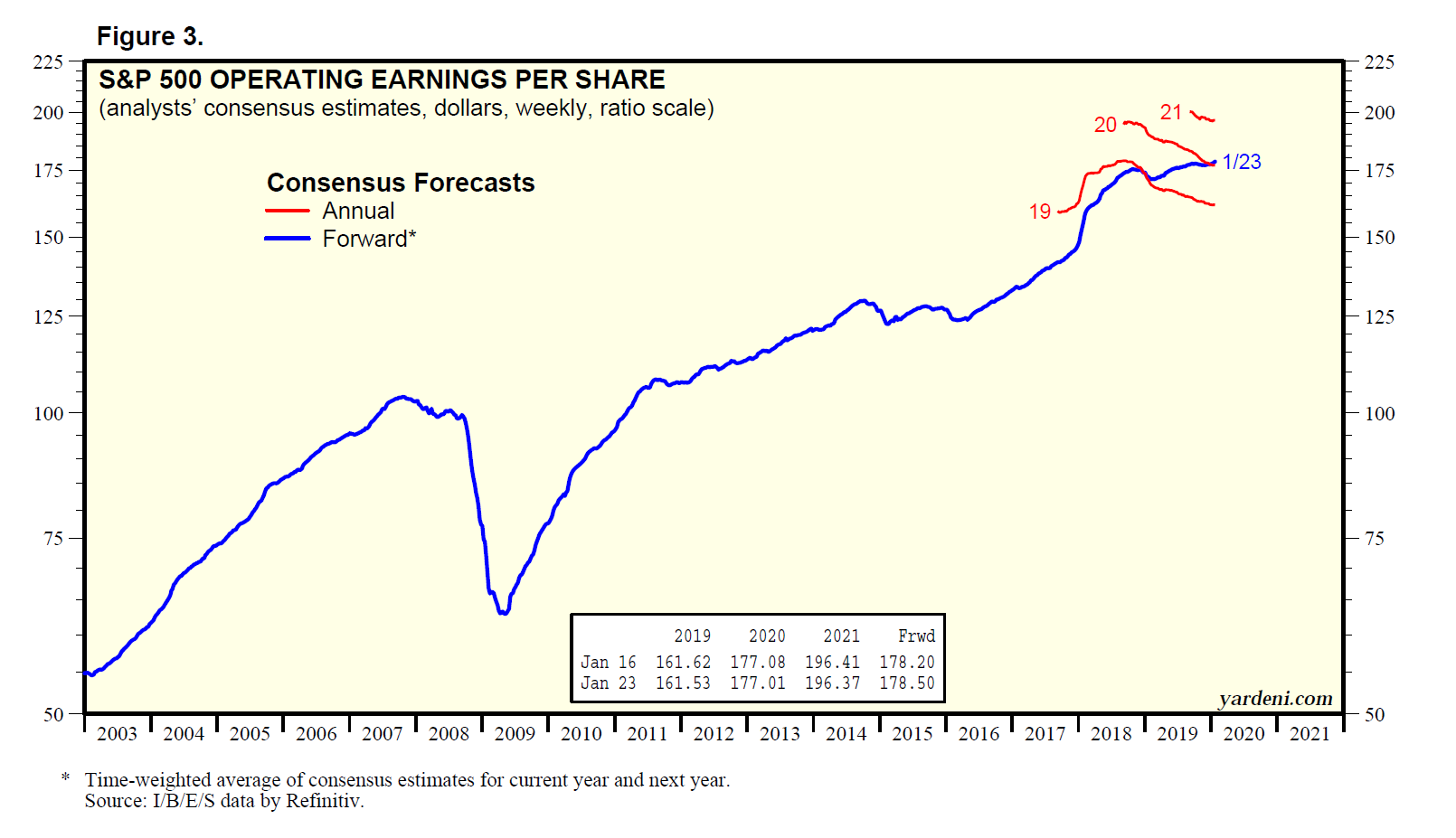 Then again, if Iran builds the new wall of worry for the stock market in 2020, perhaps that will cause the P/E-led rally to stall, buying time for earnings to grow.