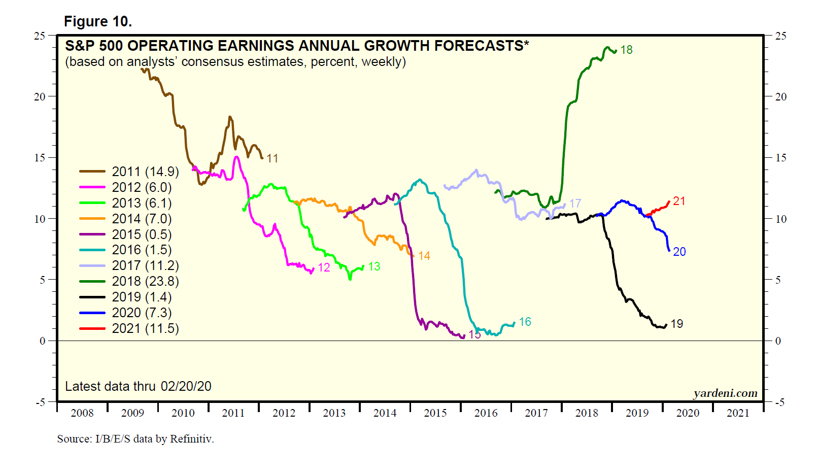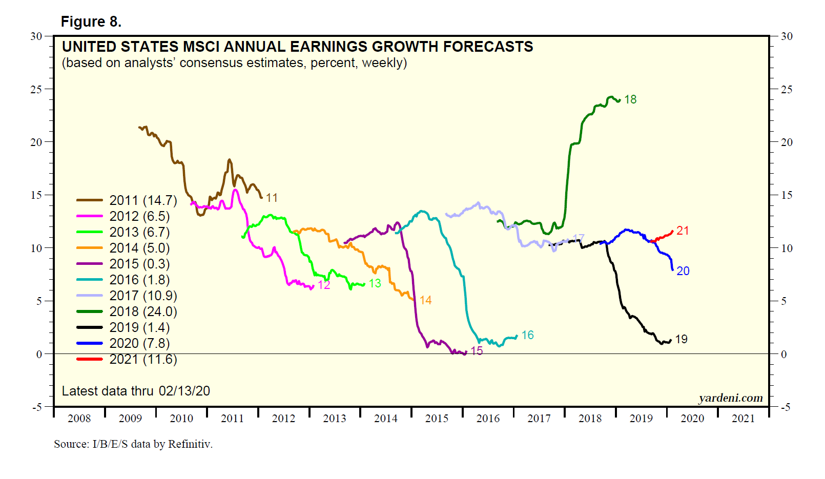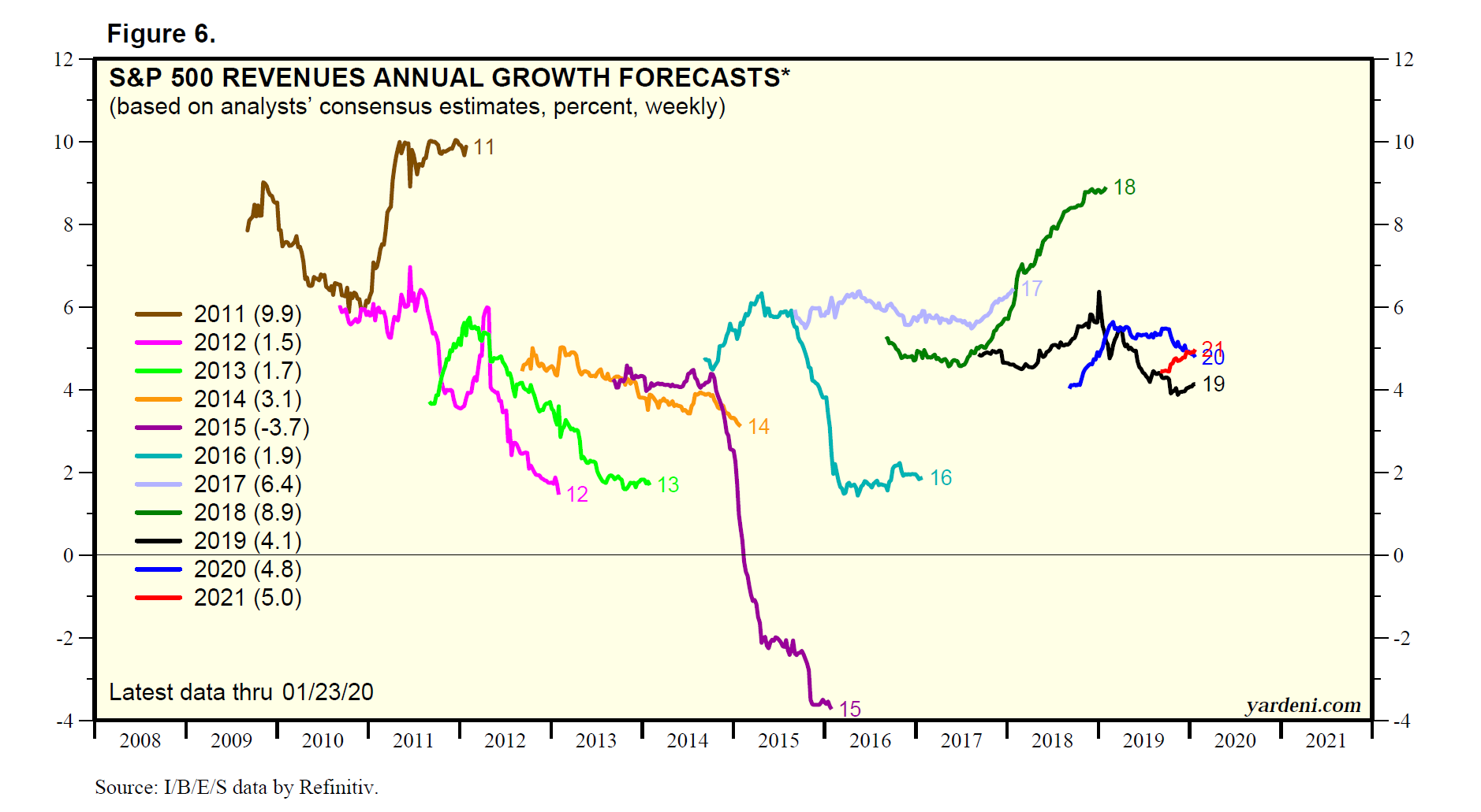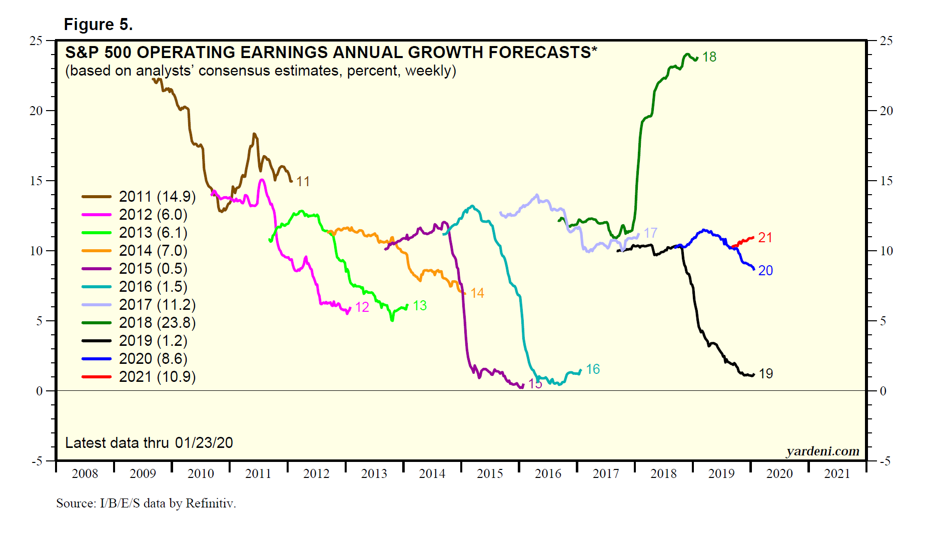 Then again, if Iran builds the new wall of worry for the stock market in 2020, perhaps that will cause the P/E-led rally to stall, buying time for earnings to grow.