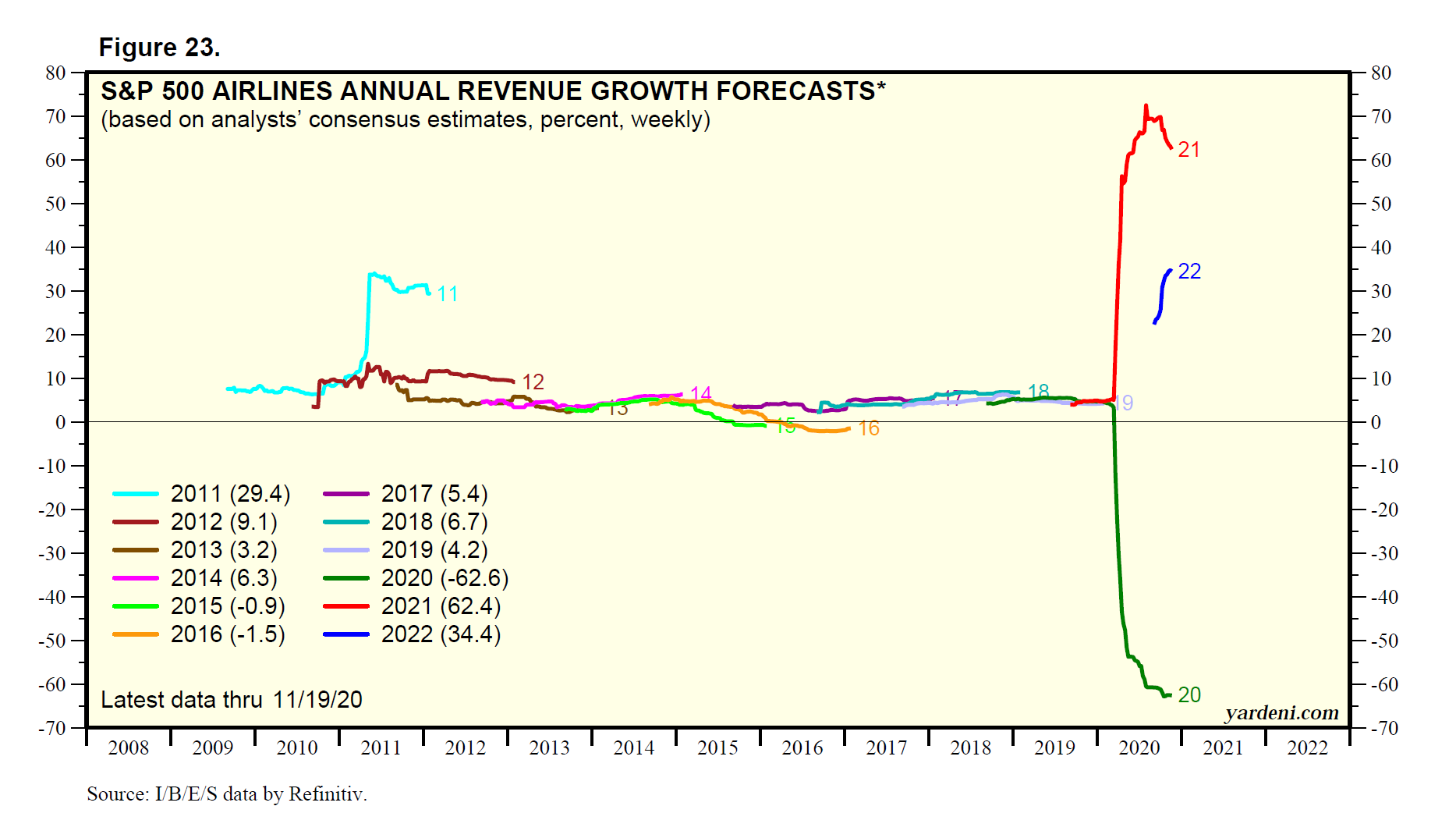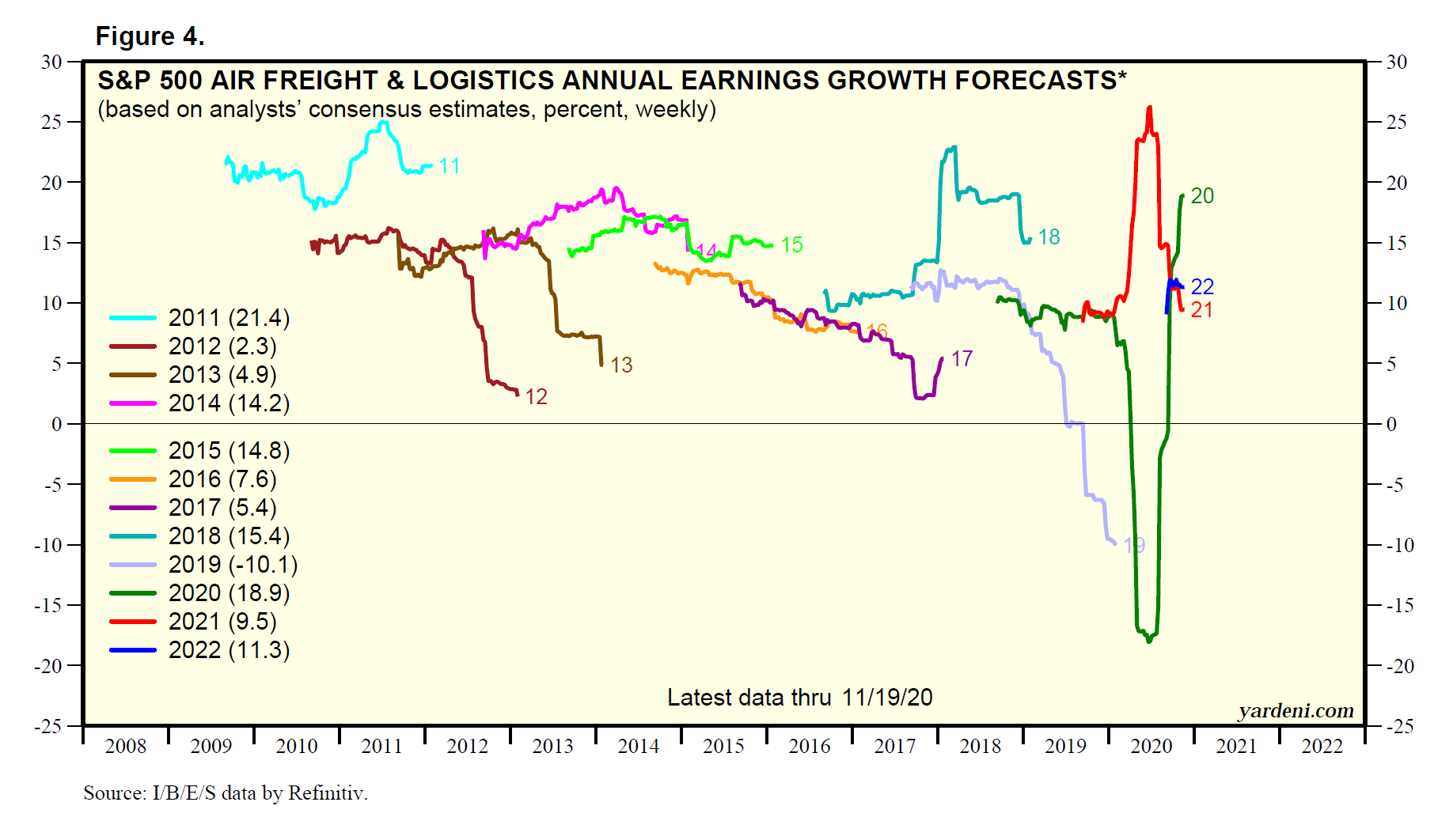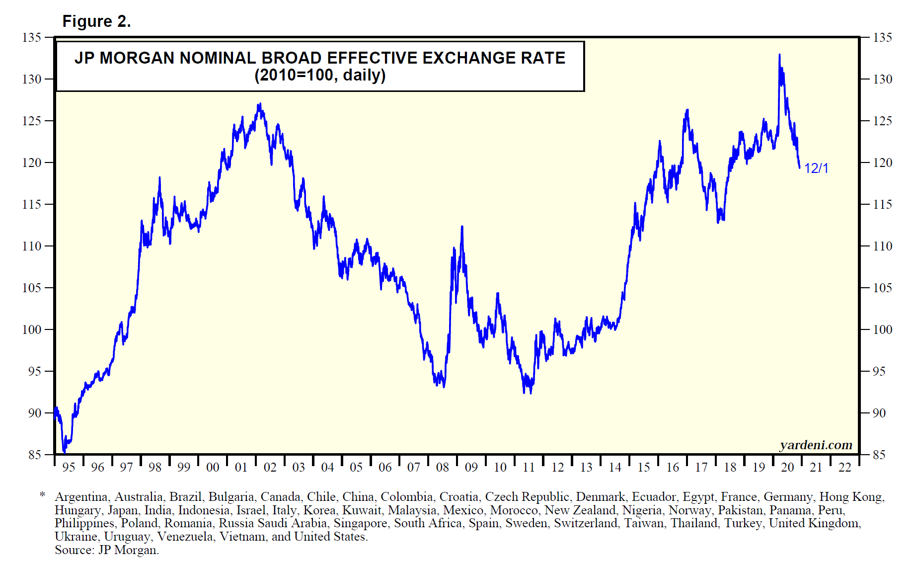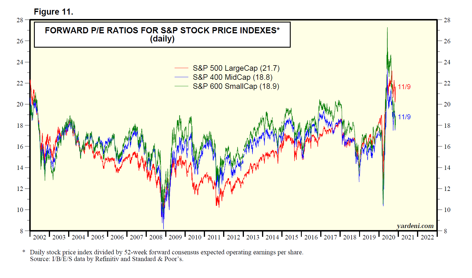Here’s the bad news: If the Democrats win both Senate seats in Georgia on January 5, giving them majority control of the Senate, they are likely to raise the corporate tax rate from 21% to 28%. In that case, we would have to lower our profit margin estimate for 2022, since any tax hike passed next year probably wouldn’t be retroactive to the start of 2021.