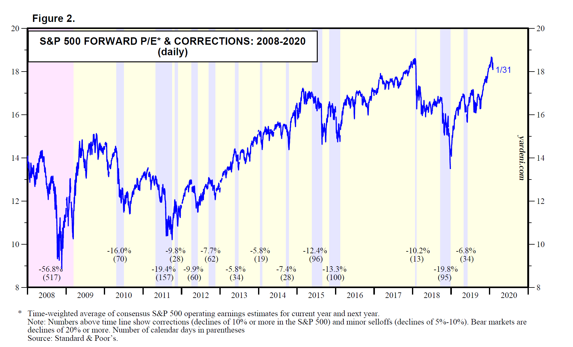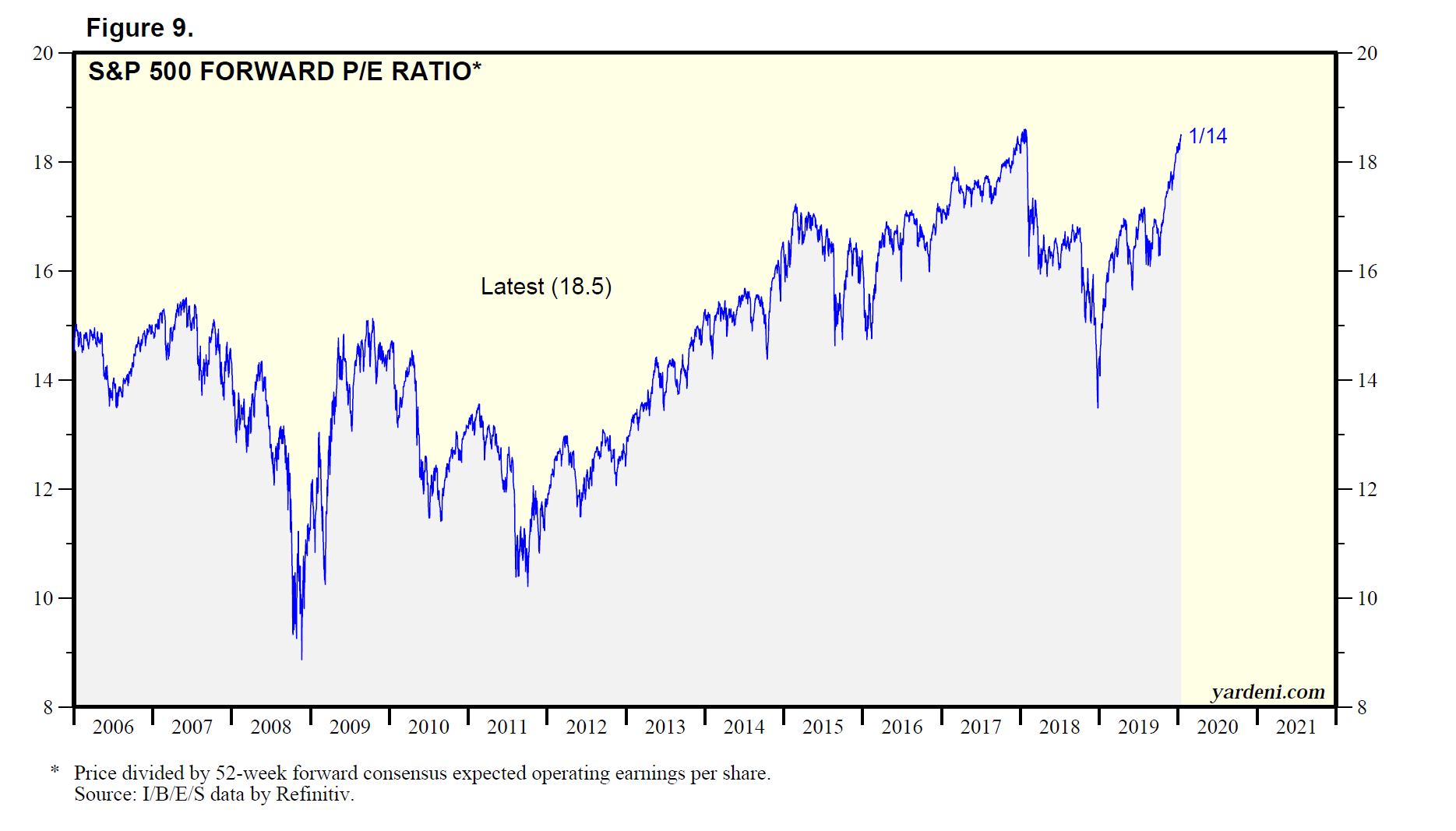 Now, on Thursday, we started the new year and the new decade with nothing to fear but nothing to fear—except, of course, Iran. That could be a problem because the lack of fear seems to be fueling a meltup in valuation multiples. That would be alright with us if the outlook suggested a big jump in earnings this year, which isn’t obvious to us. Then again, Friday might have marked the beginning of Panic Attack #66.