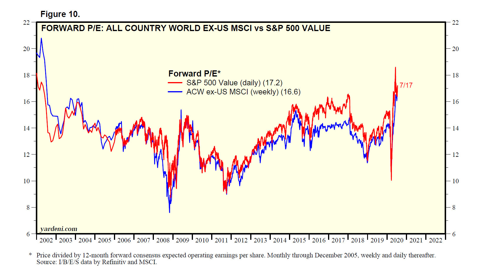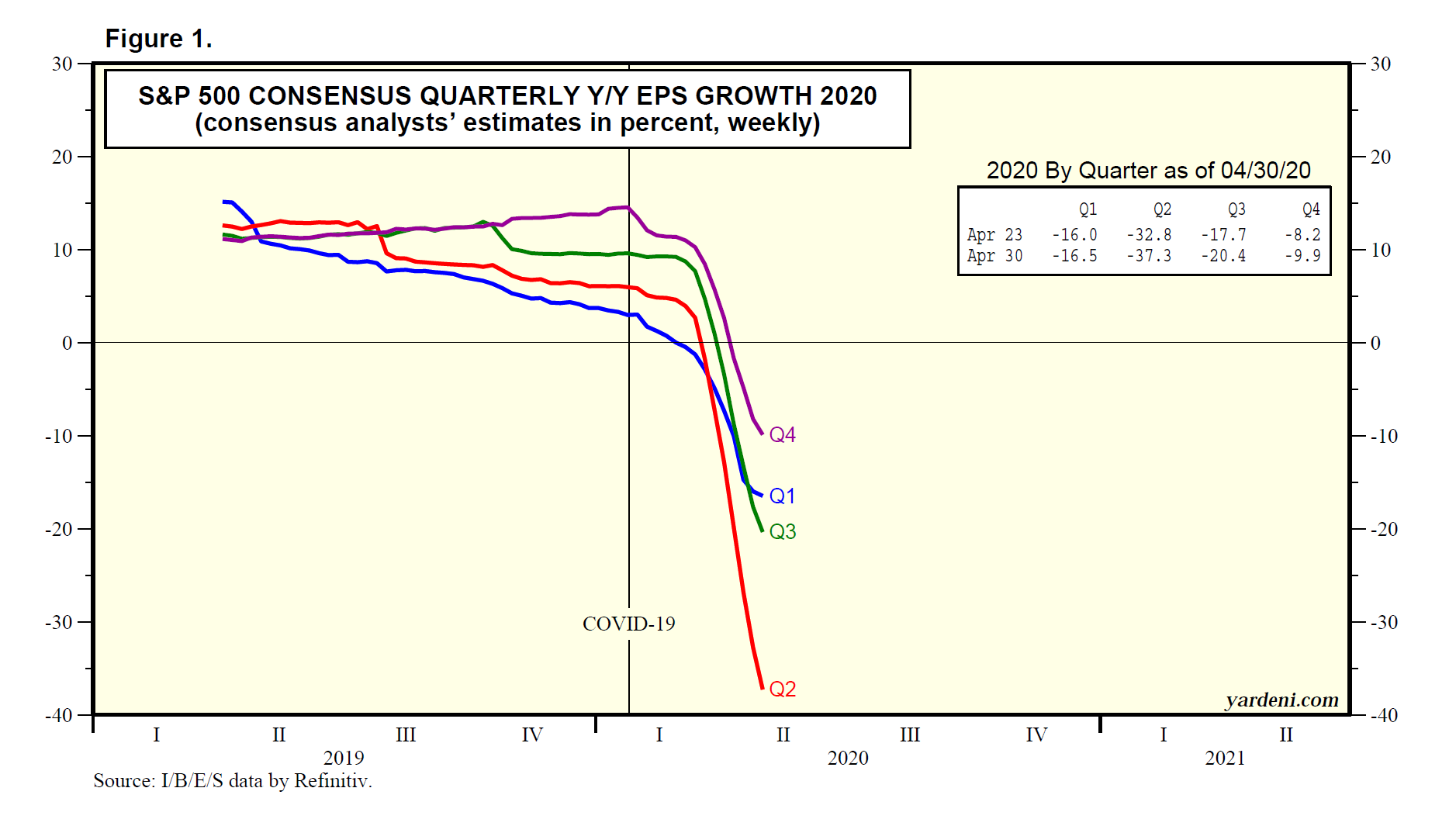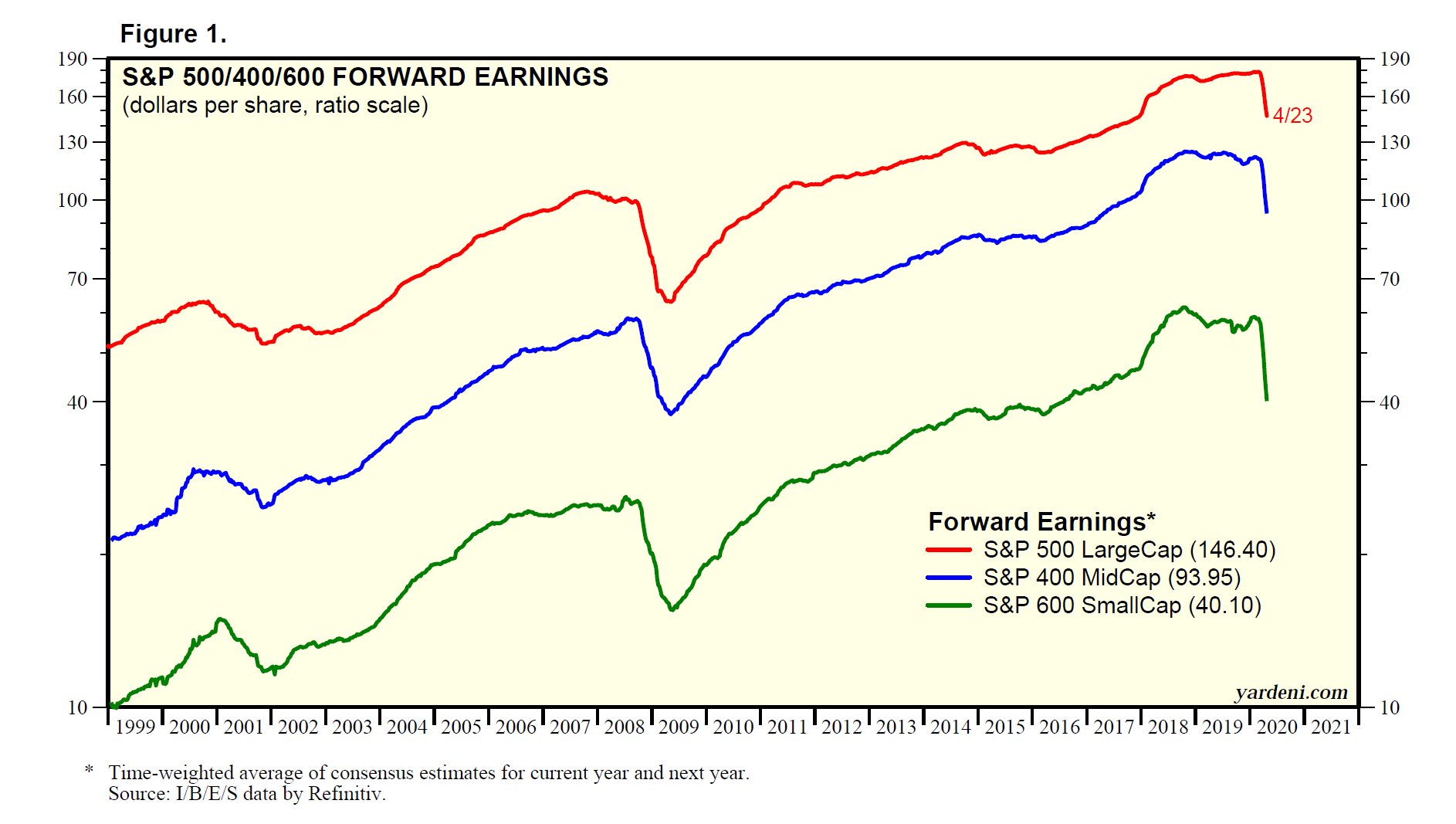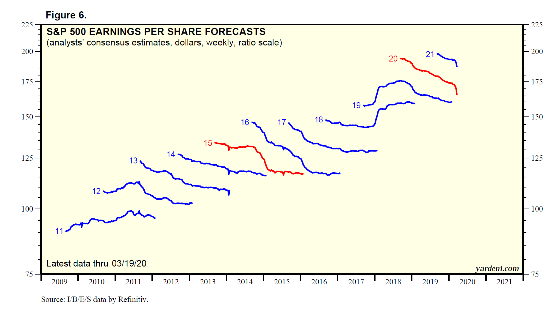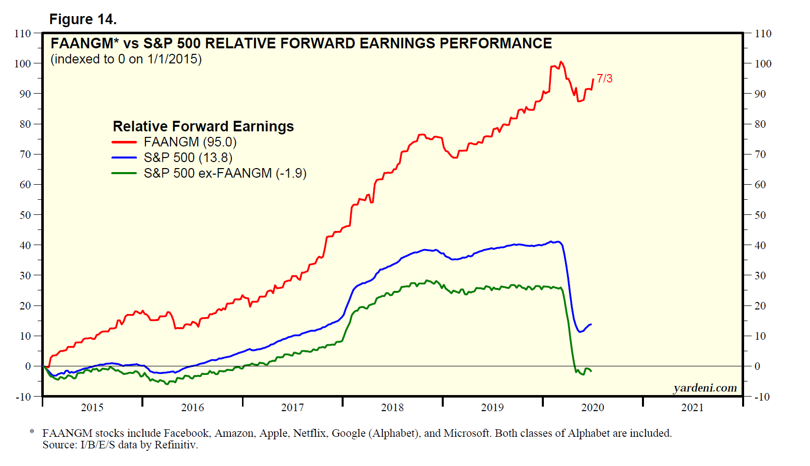 Corporate Finance I: Accounting for Fun & Profits. Yesterday, Joe and I raised our estimates for S&P 500 revenues and earnings per share and profit margins to the following: 2020 ($1,400, $140, 10%), 2021 ($1,545, $170, 11%), and 2022 ($1,625, $195, 12%). As a result, our S&P 500 year-end targets for this year and the next two years are now 3740, 4290, and 4620. (See YRI Earnings Forecasts.)