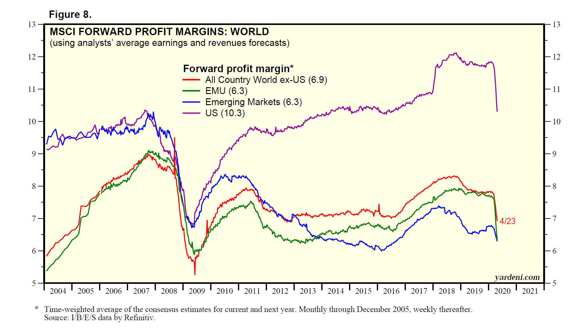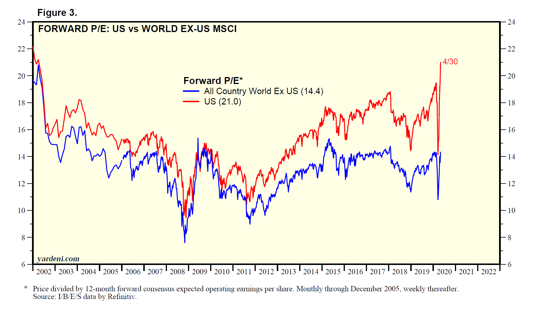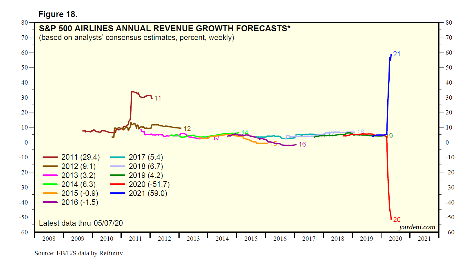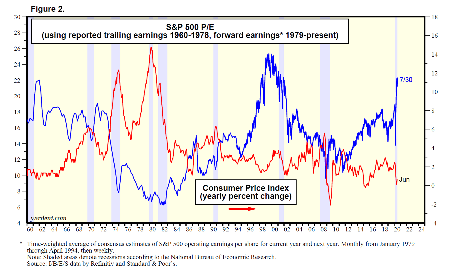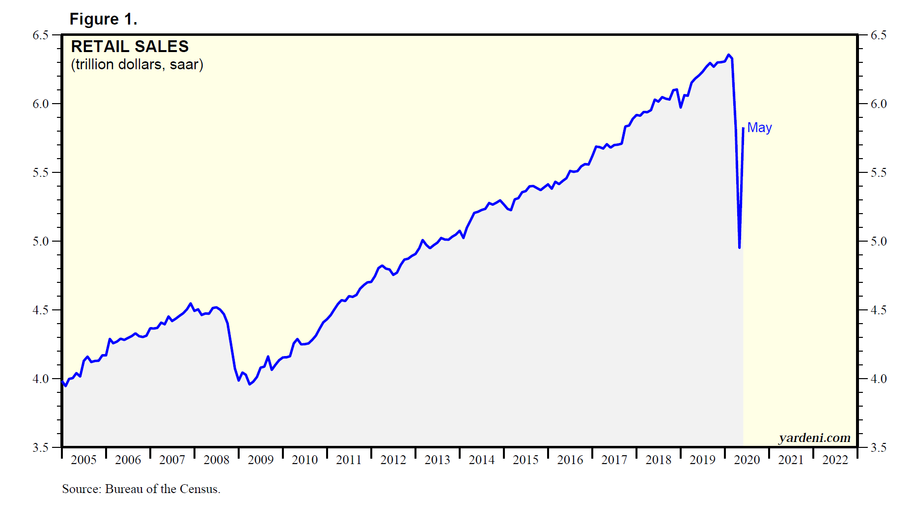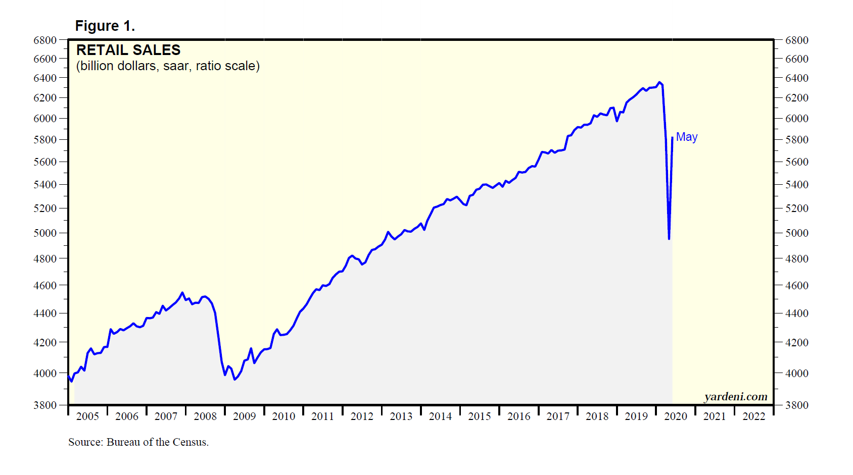 Corporate Finance I: Accounting for Fun & Profits. Yesterday, Joe and I raised our estimates for S&P 500 revenues and earnings per share and profit margins to the following: 2020 ($1,400, $140, 10%), 2021 ($1,545, $170, 11%), and 2022 ($1,625, $195, 12%). As a result, our S&P 500 year-end targets for this year and the next two years are now 3740, 4290, and 4620. (See YRI Earnings Forecasts.)