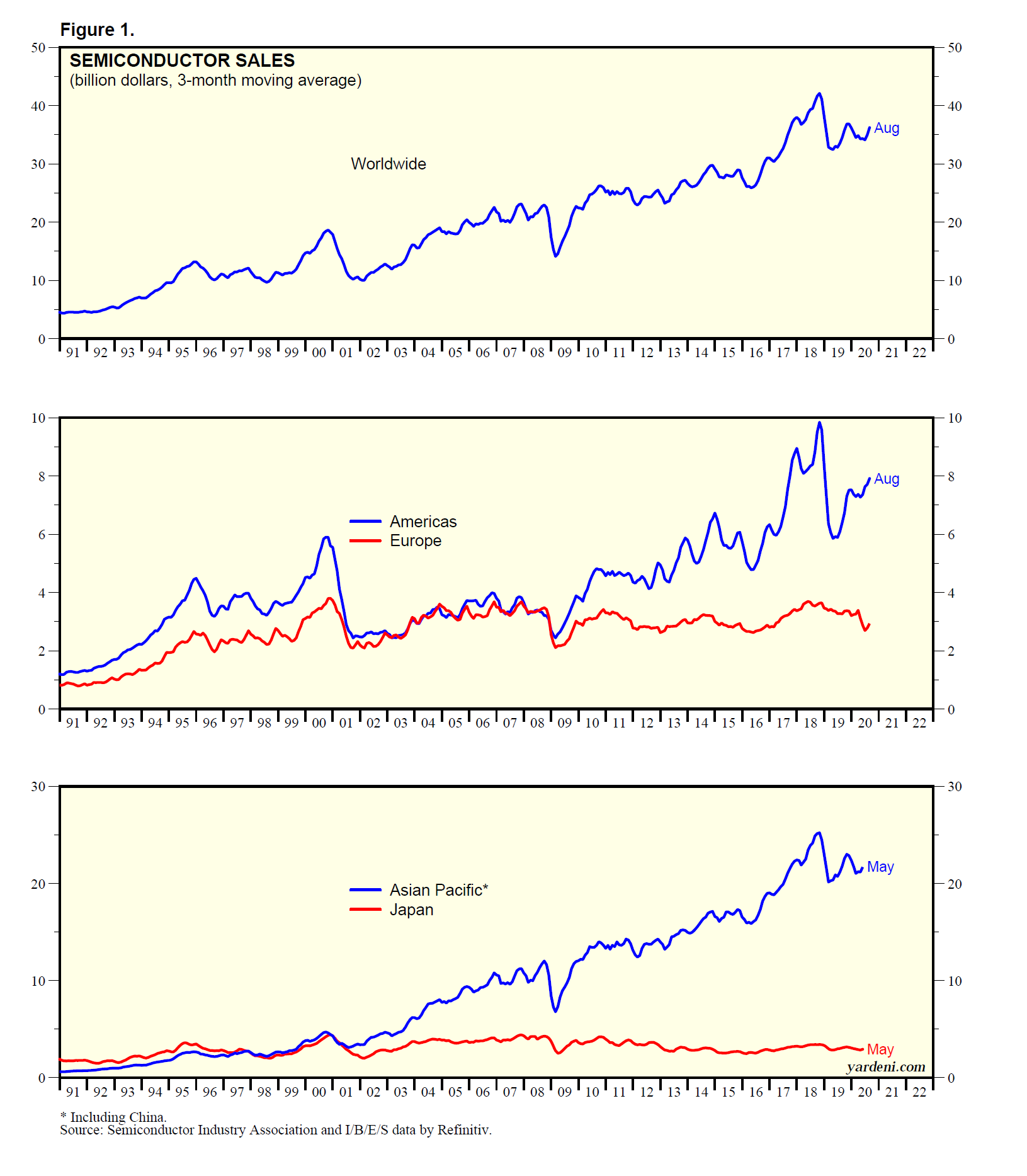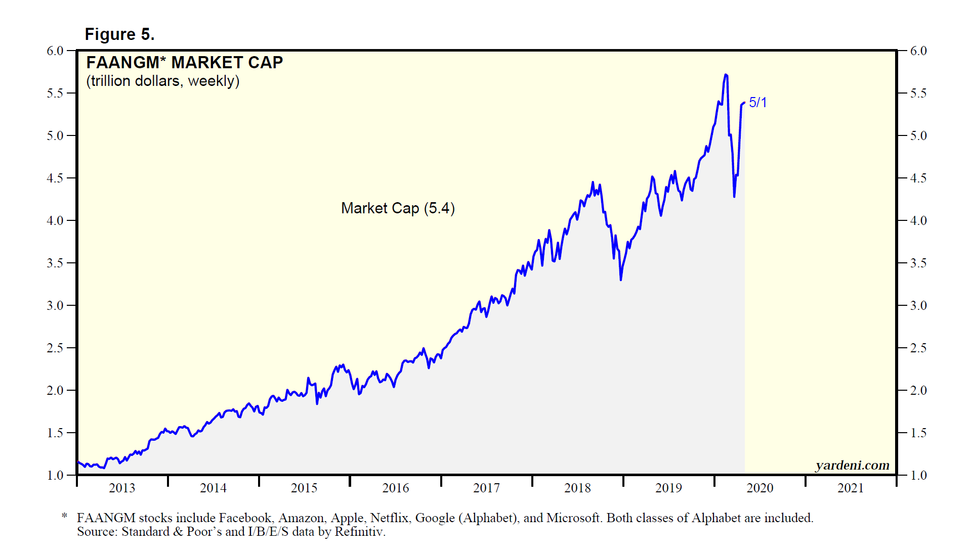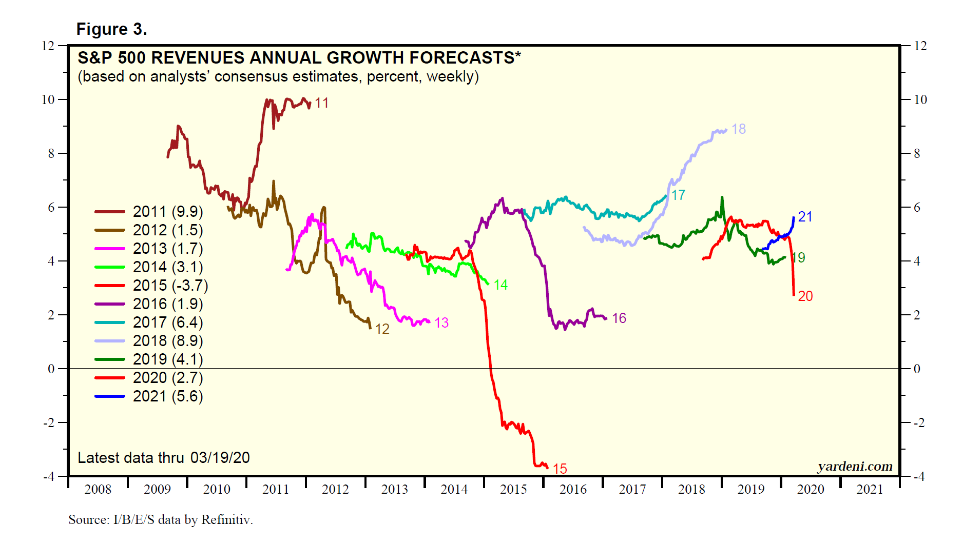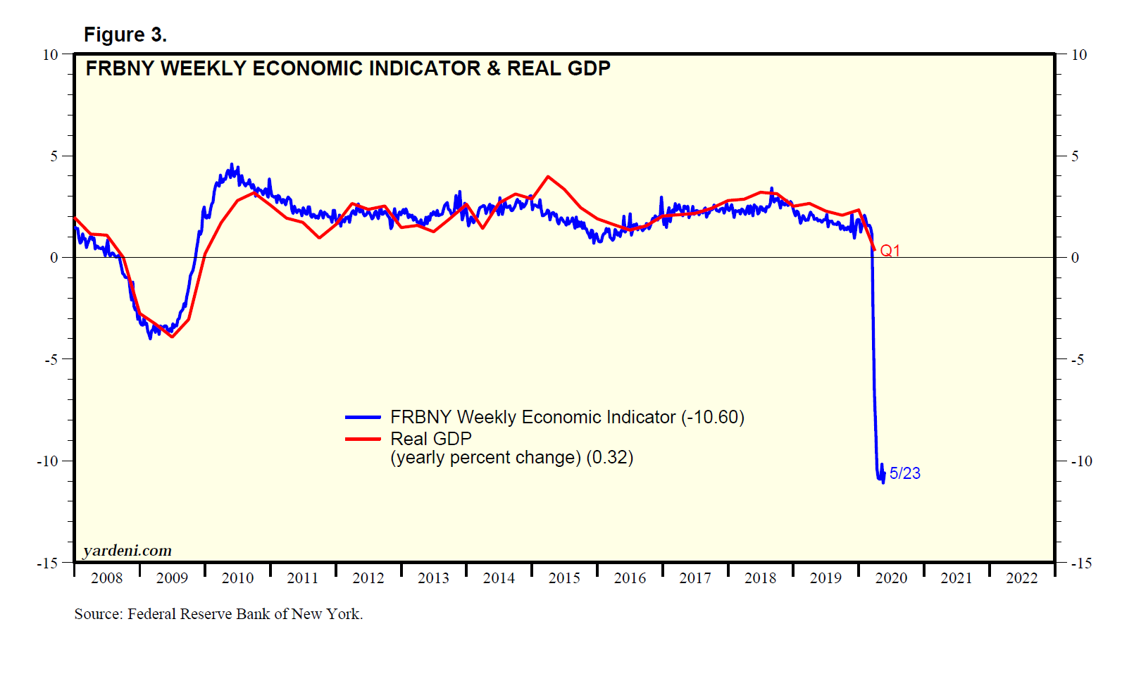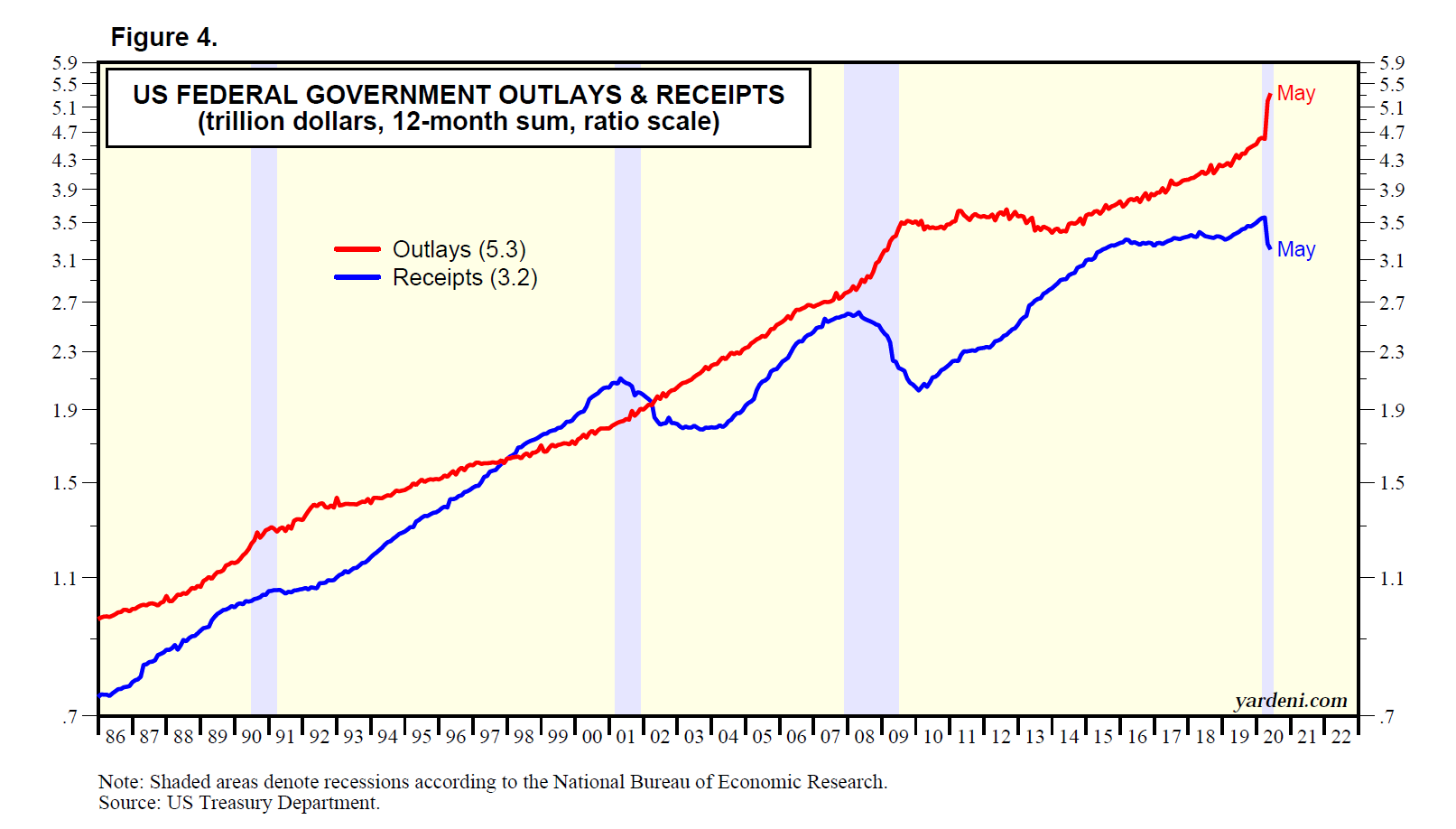 Corporate Finance I: Accounting for Fun & Profits. Yesterday, Joe and I raised our estimates for S&P 500 revenues and earnings per share and profit margins to the following: 2020 ($1,400, $140, 10%), 2021 ($1,545, $170, 11%), and 2022 ($1,625, $195, 12%). As a result, our S&P 500 year-end targets for this year and the next two years are now 3740, 4290, and 4620. (See YRI Earnings Forecasts.)