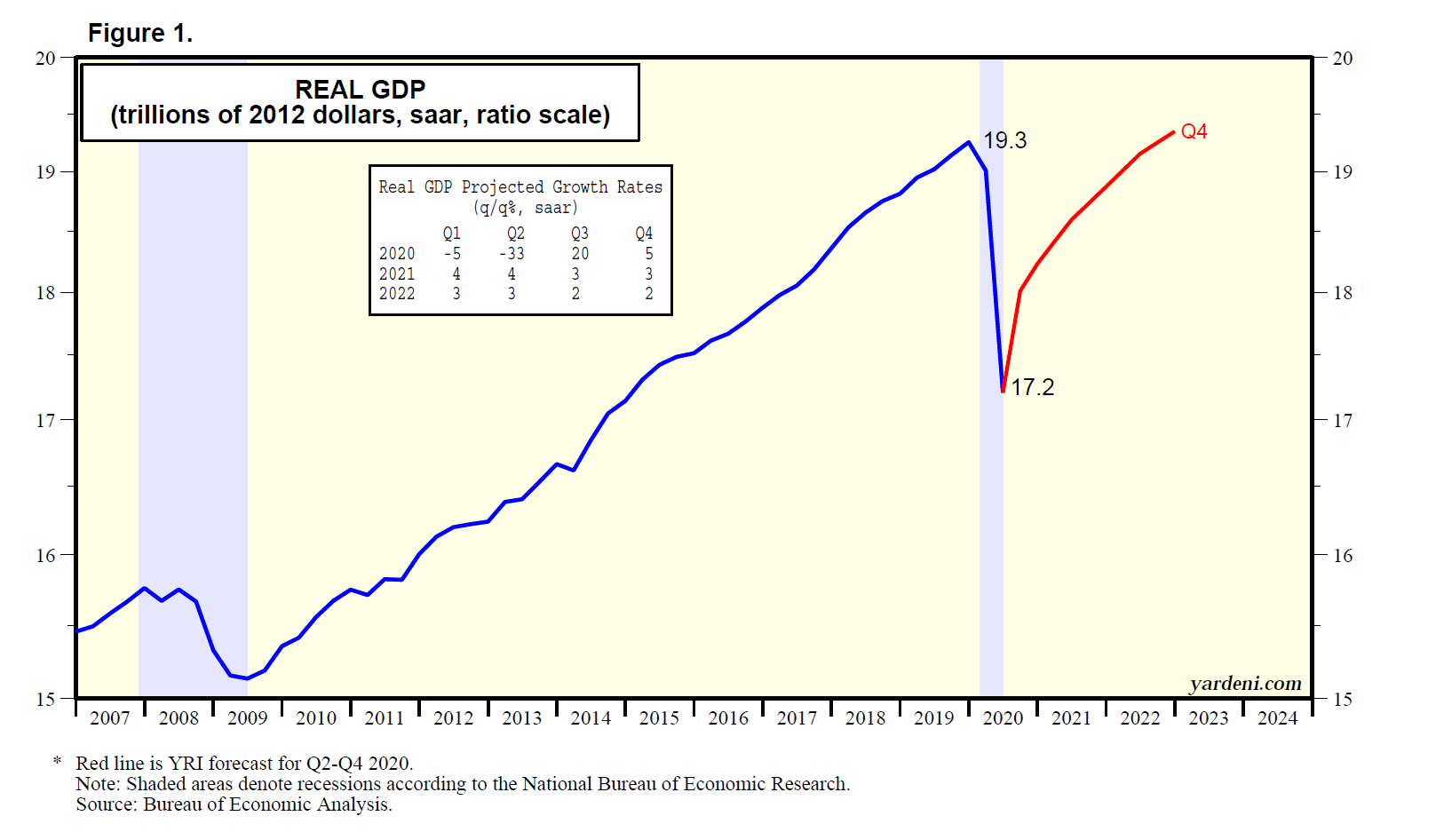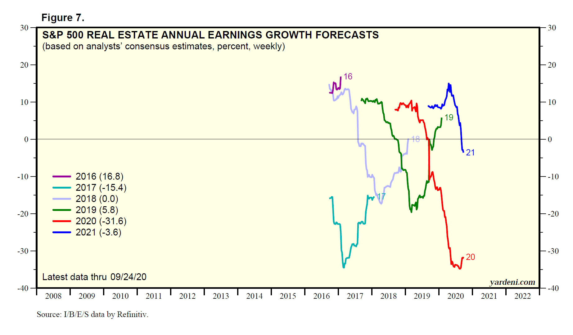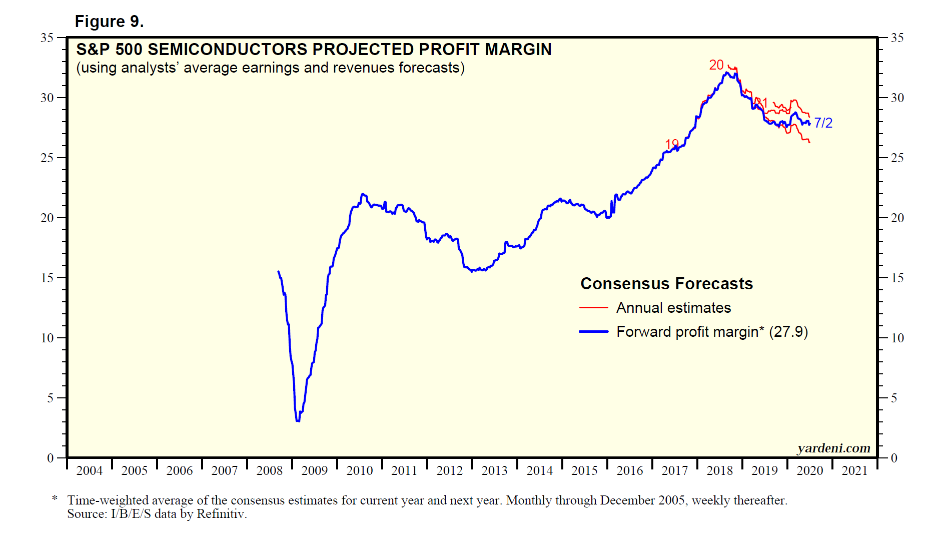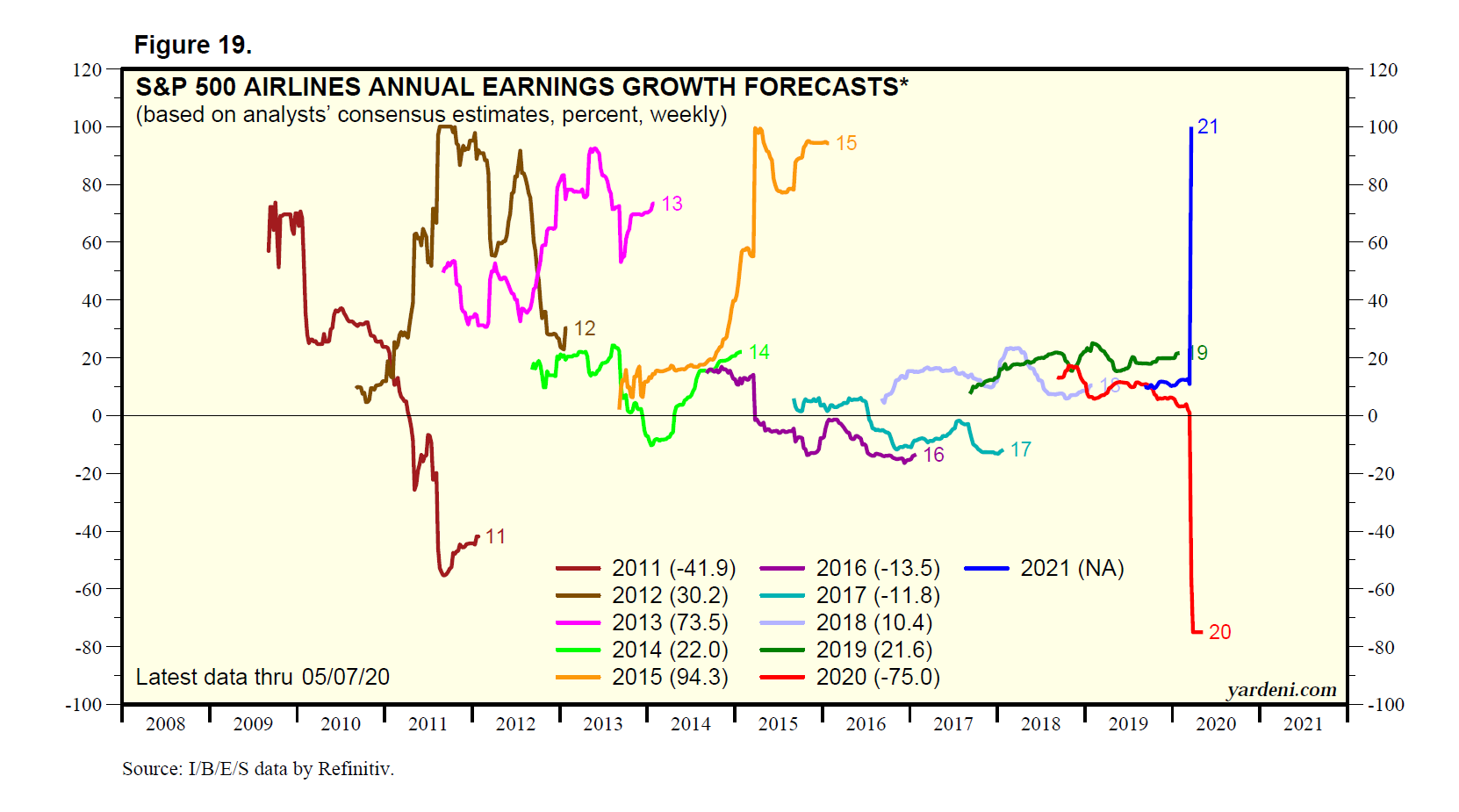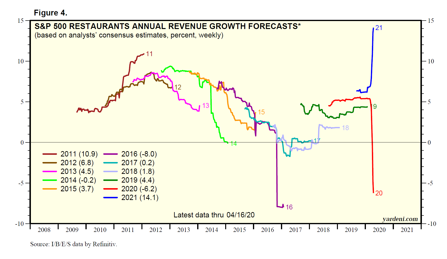 Corporate Finance I: Accounting for Fun & Profits. Yesterday, Joe and I raised our estimates for S&P 500 revenues and earnings per share and profit margins to the following: 2020 ($1,400, $140, 10%), 2021 ($1,545, $170, 11%), and 2022 ($1,625, $195, 12%). As a result, our S&P 500 year-end targets for this year and the next two years are now 3740, 4290, and 4620. (See YRI Earnings Forecasts.)