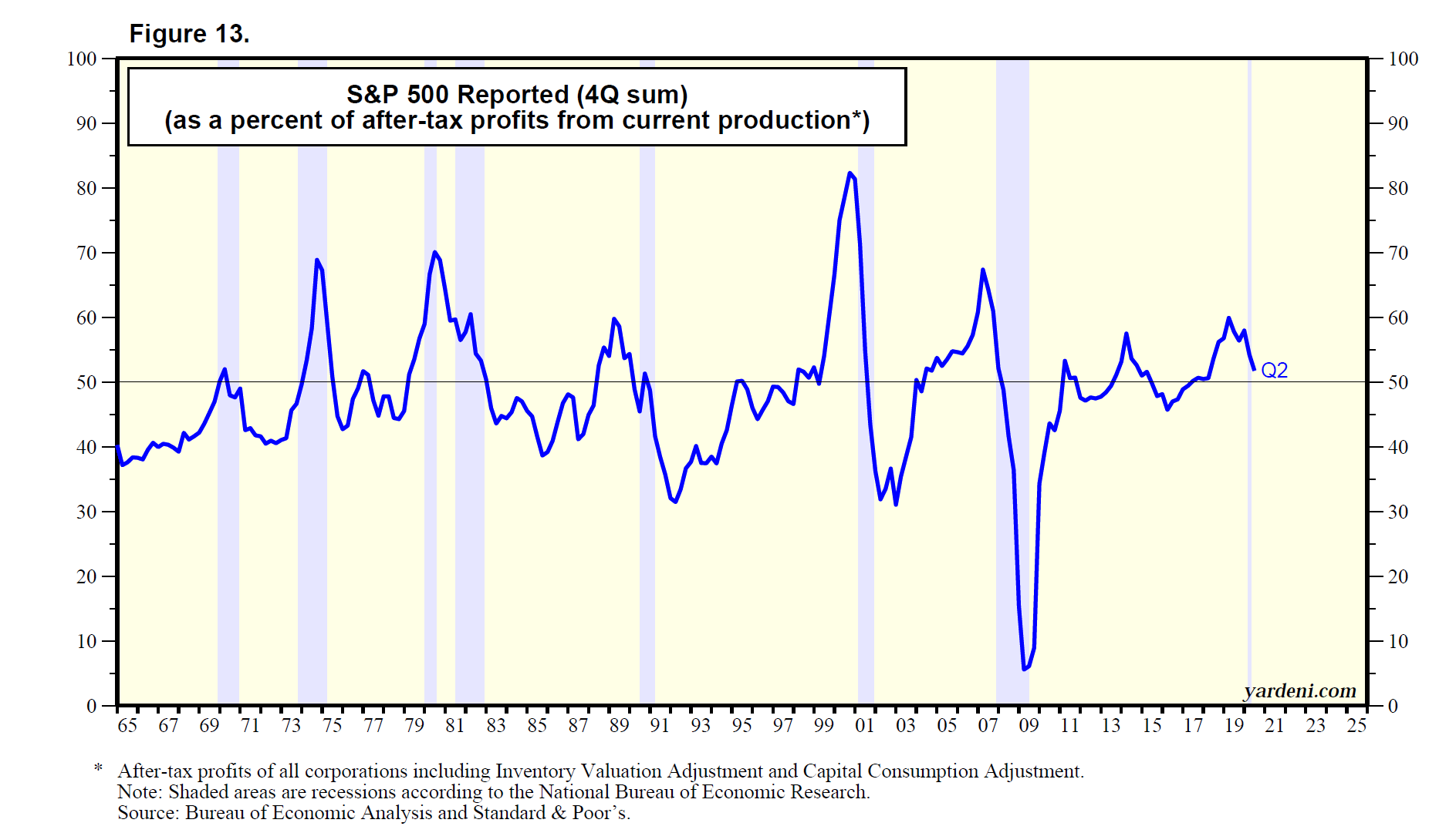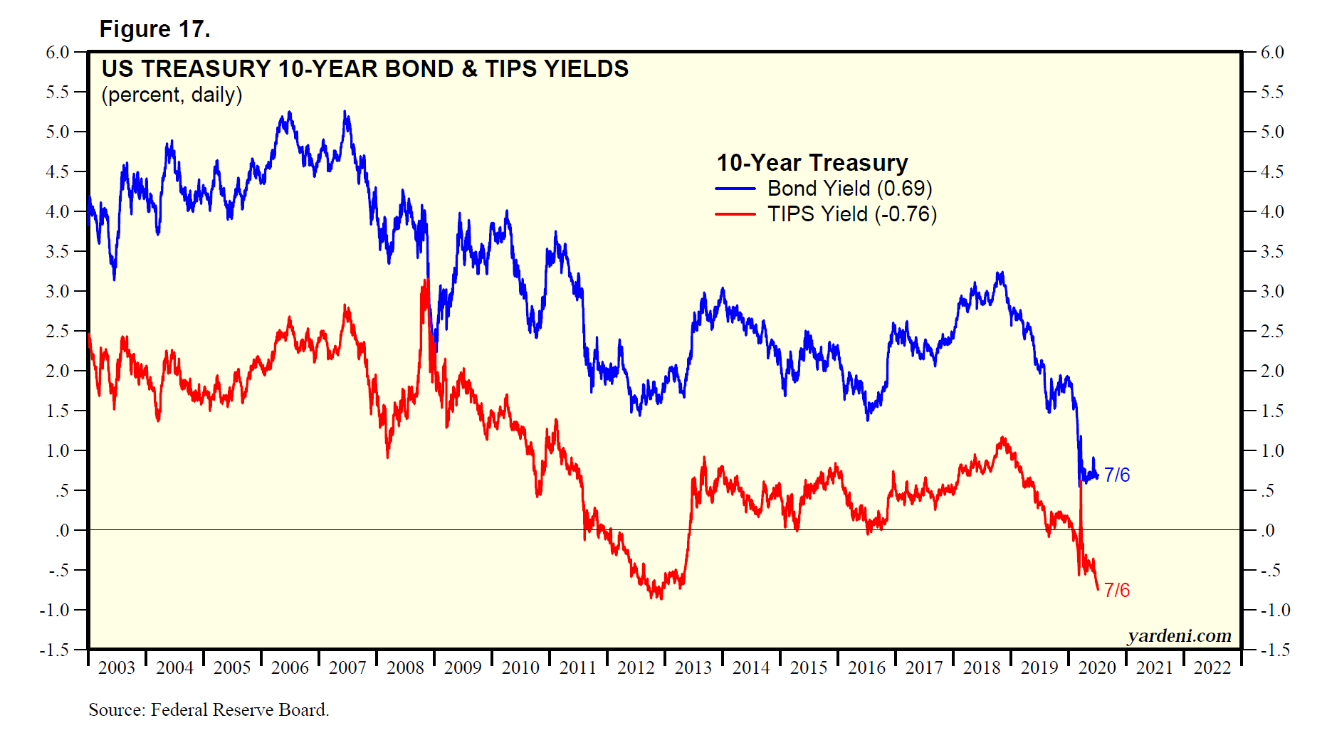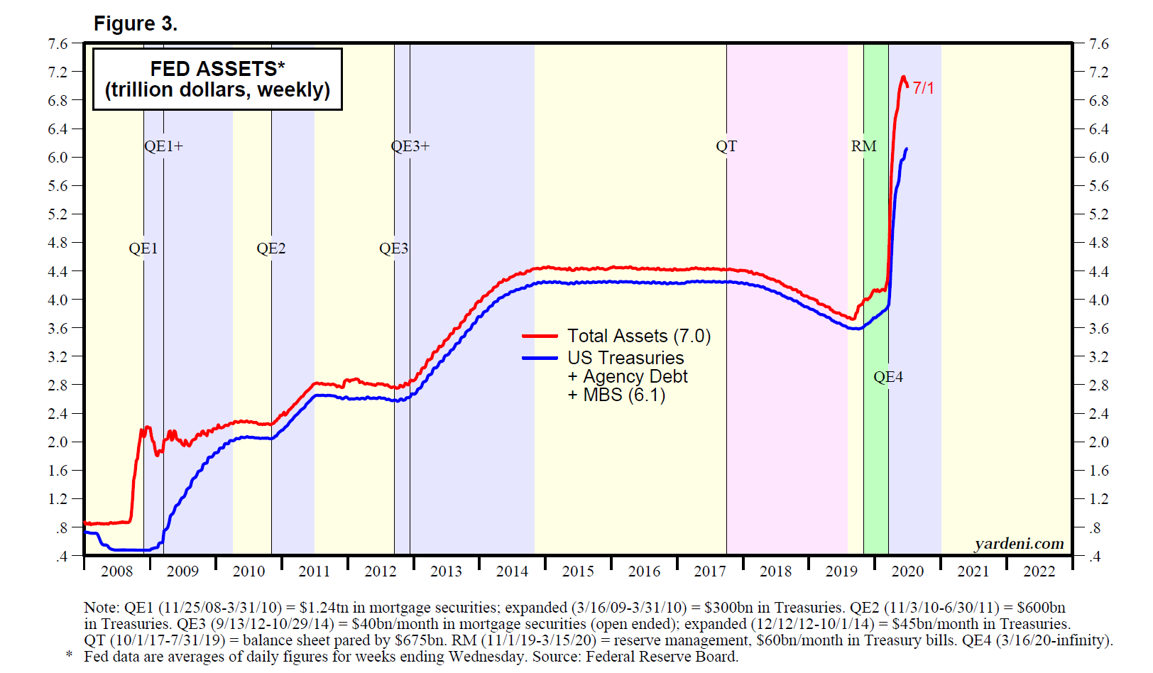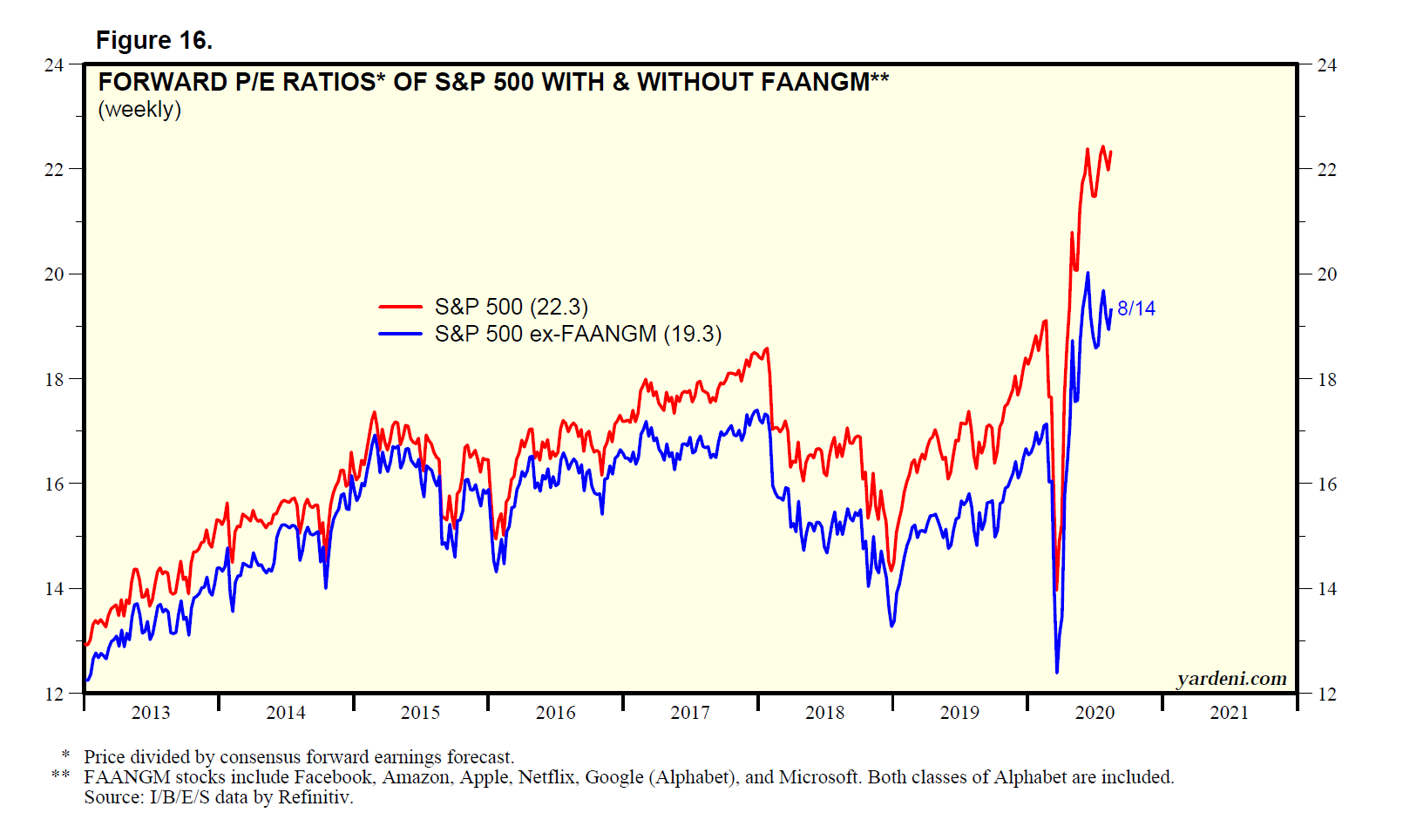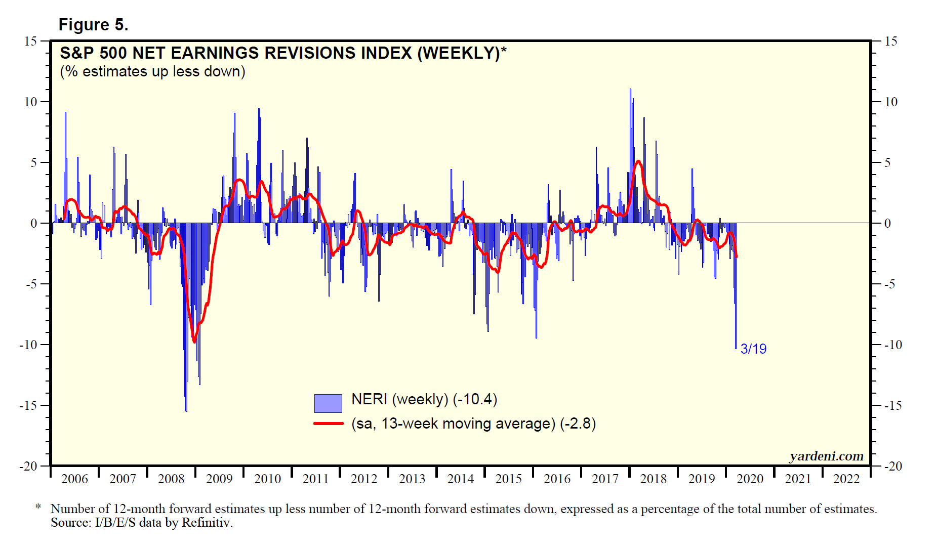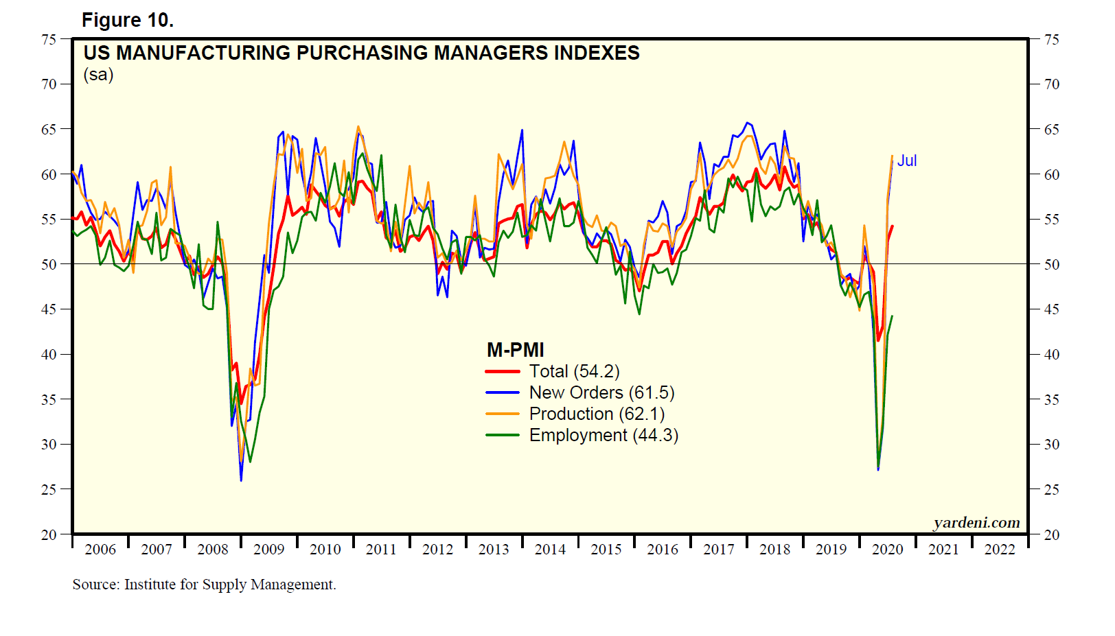 Corporate Finance I: Accounting for Fun & Profits. Yesterday, Joe and I raised our estimates for S&P 500 revenues and earnings per share and profit margins to the following: 2020 ($1,400, $140, 10%), 2021 ($1,545, $170, 11%), and 2022 ($1,625, $195, 12%). As a result, our S&P 500 year-end targets for this year and the next two years are now 3740, 4290, and 4620. (See YRI Earnings Forecasts.)