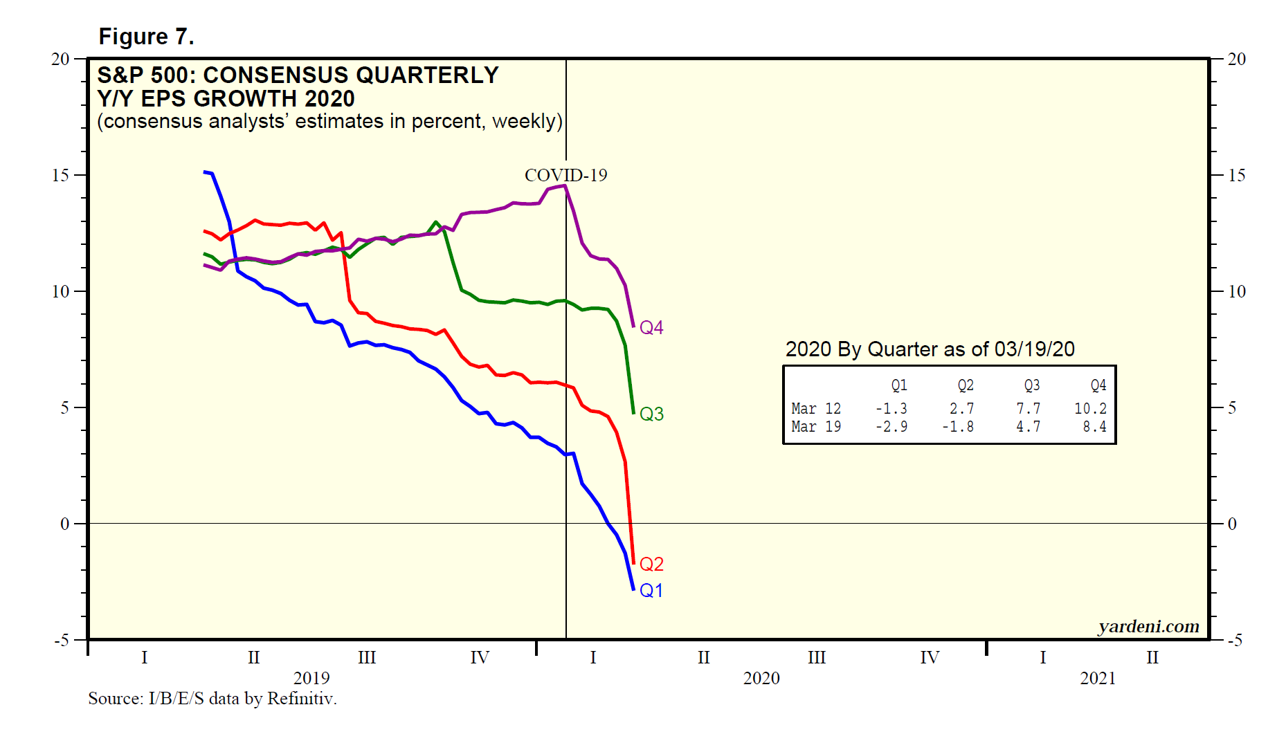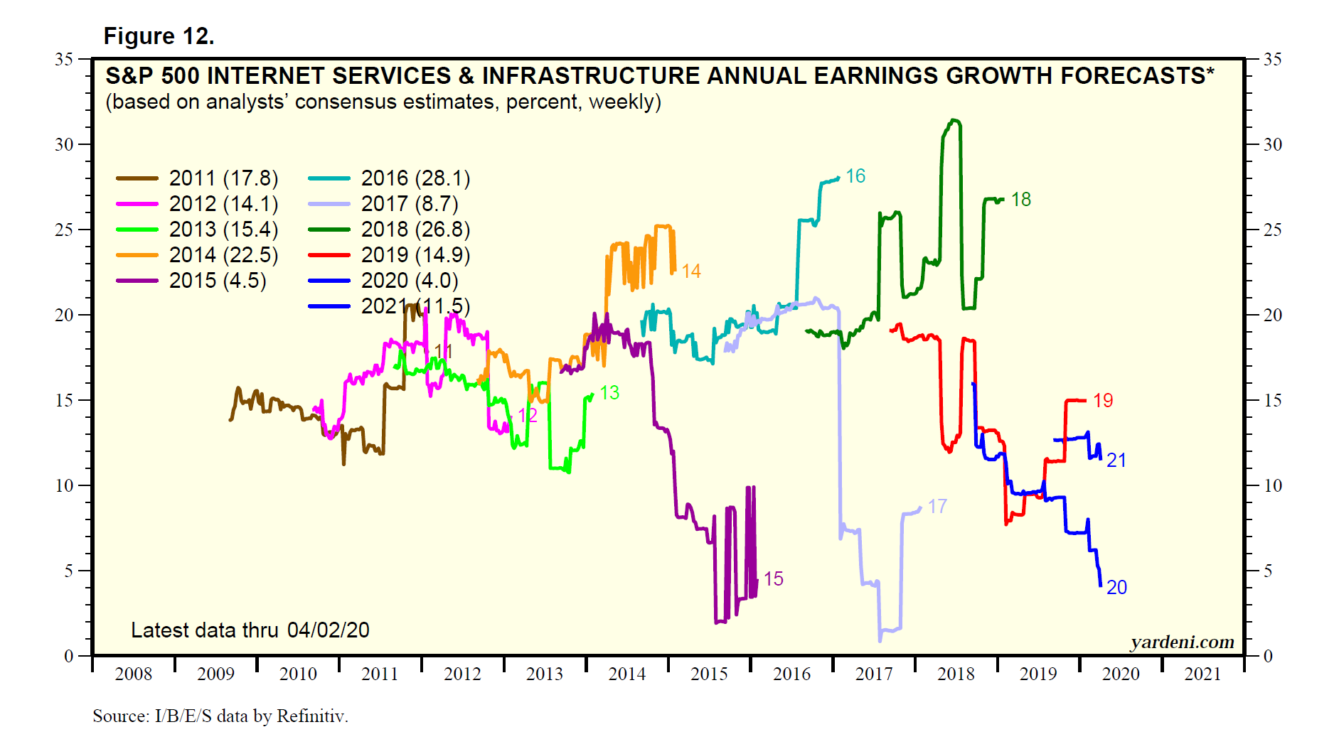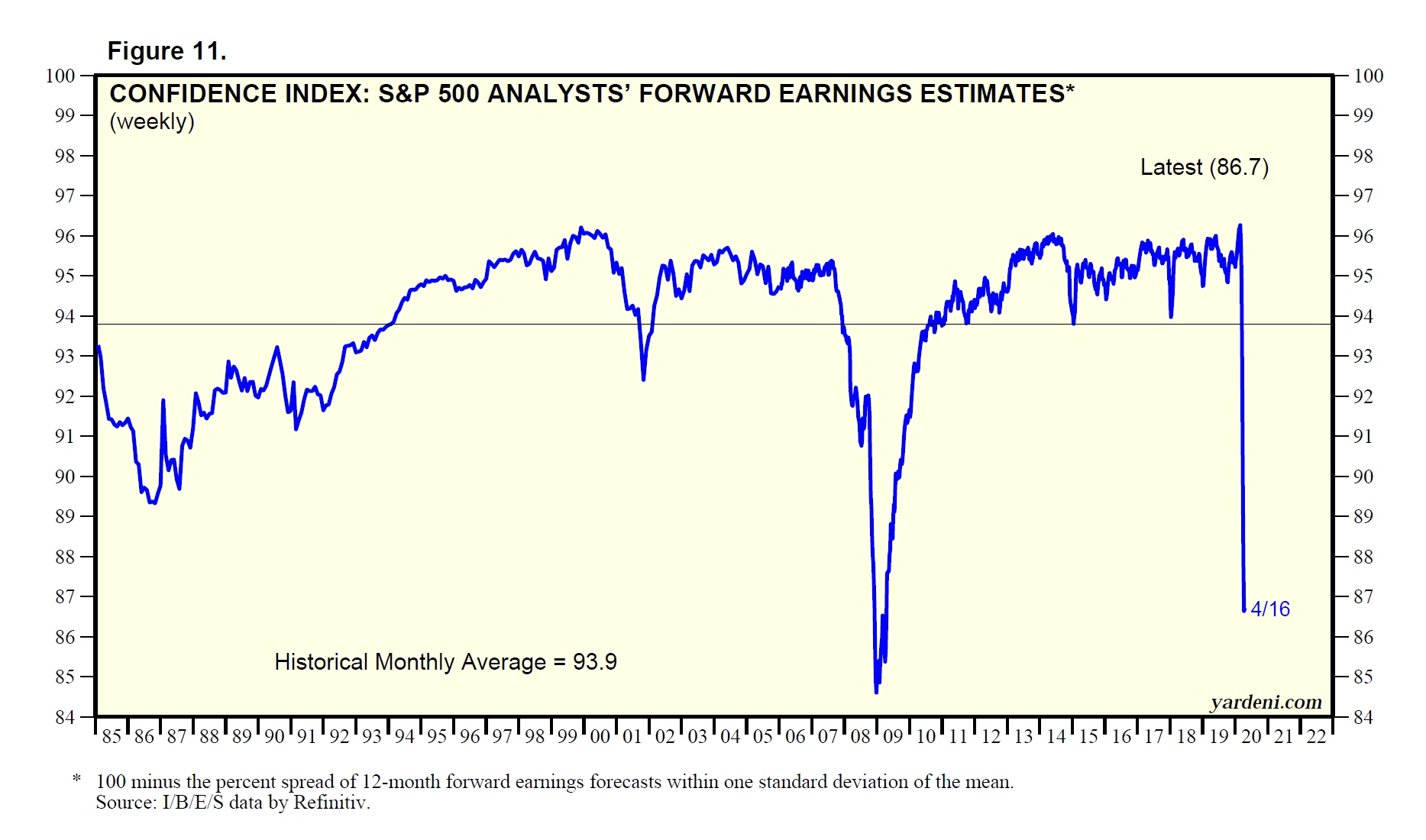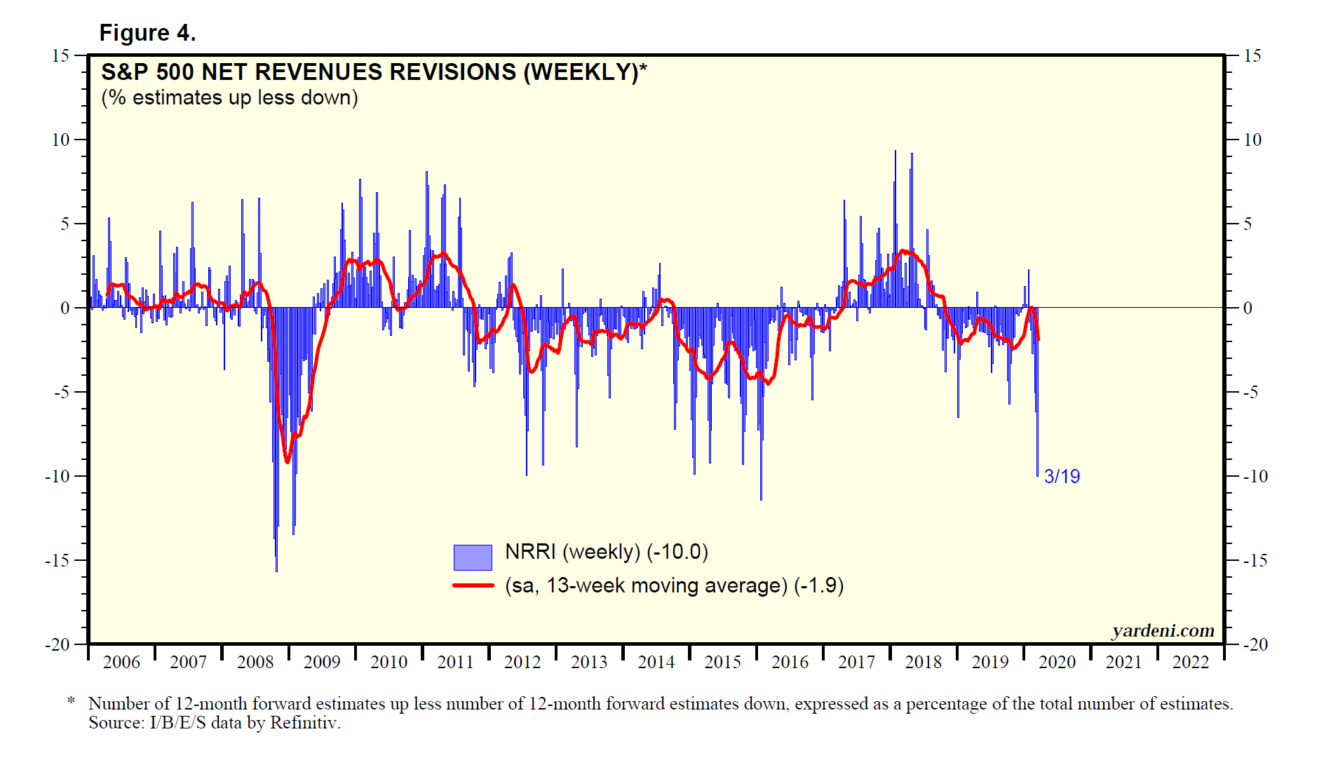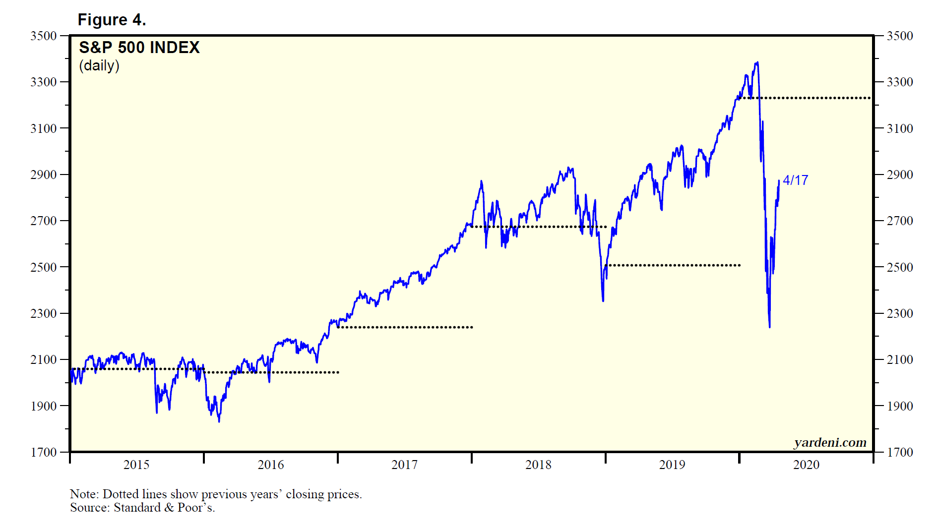 Corporate Finance I: Accounting for Fun & Profits. Yesterday, Joe and I raised our estimates for S&P 500 revenues and earnings per share and profit margins to the following: 2020 ($1,400, $140, 10%), 2021 ($1,545, $170, 11%), and 2022 ($1,625, $195, 12%). As a result, our S&P 500 year-end targets for this year and the next two years are now 3740, 4290, and 4620. (See YRI Earnings Forecasts.)
