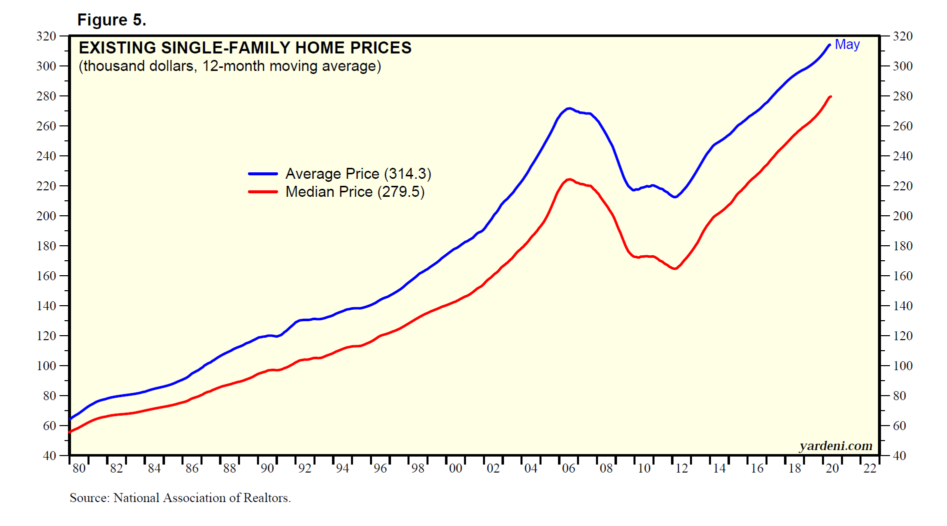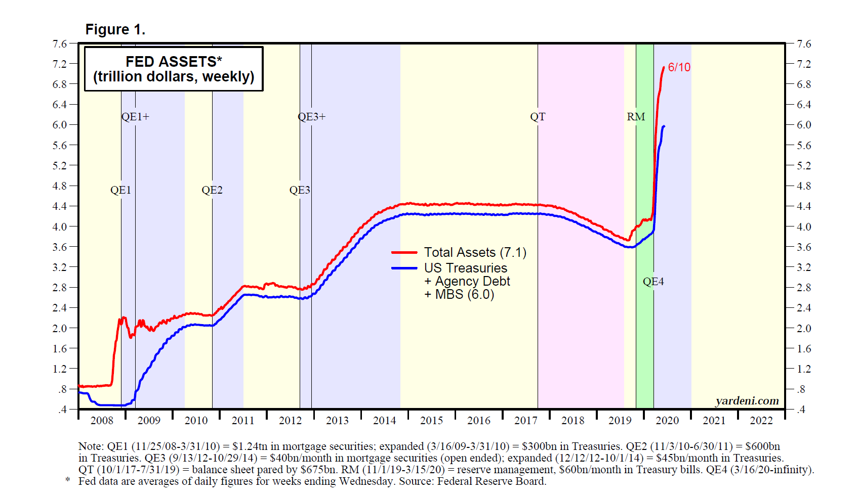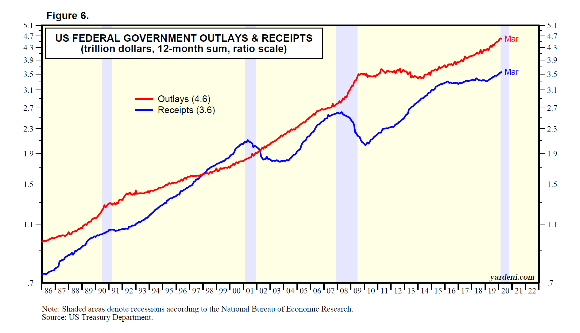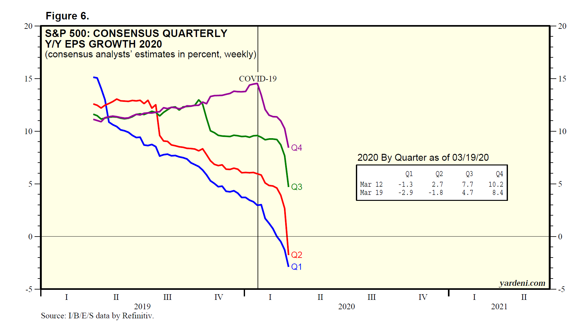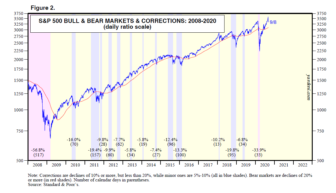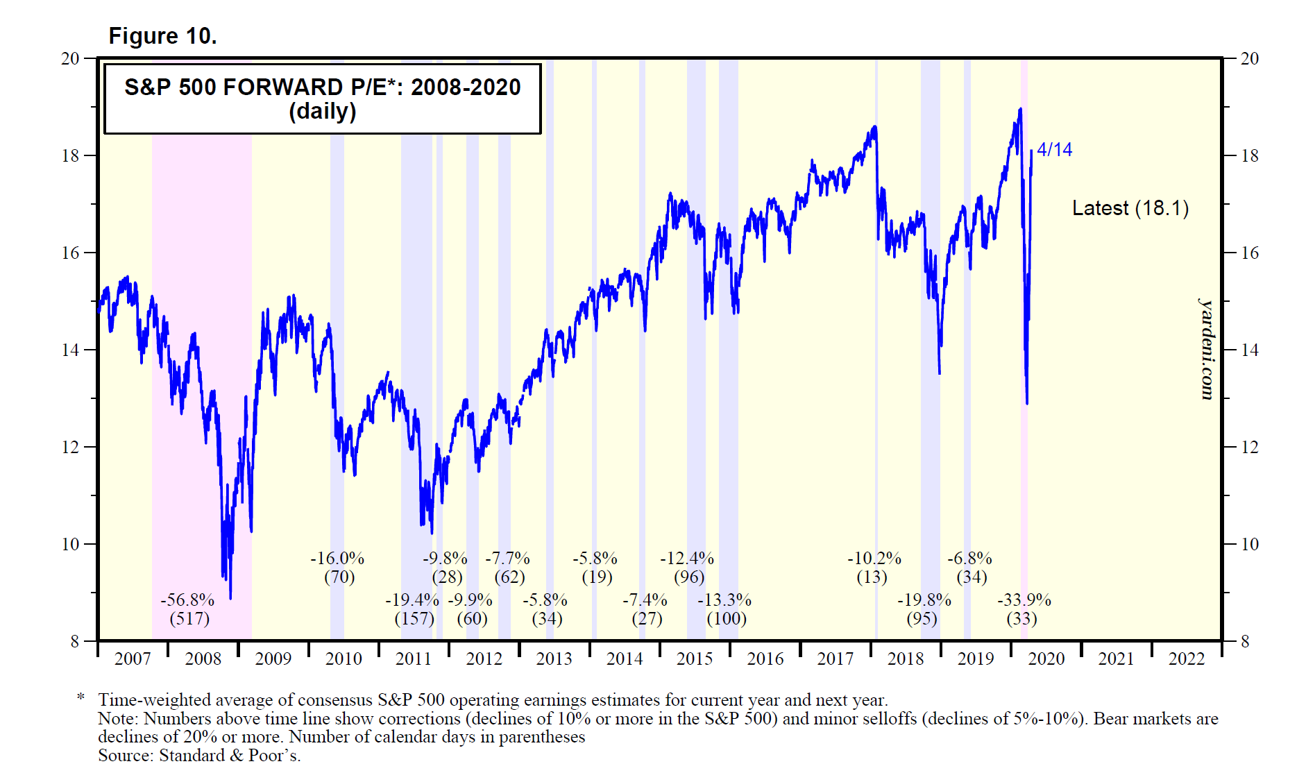 Corporate Finance I: Accounting for Fun & Profits. Yesterday, Joe and I raised our estimates for S&P 500 revenues and earnings per share and profit margins to the following: 2020 ($1,400, $140, 10%), 2021 ($1,545, $170, 11%), and 2022 ($1,625, $195, 12%). As a result, our S&P 500 year-end targets for this year and the next two years are now 3740, 4290, and 4620. (See YRI Earnings Forecasts.)