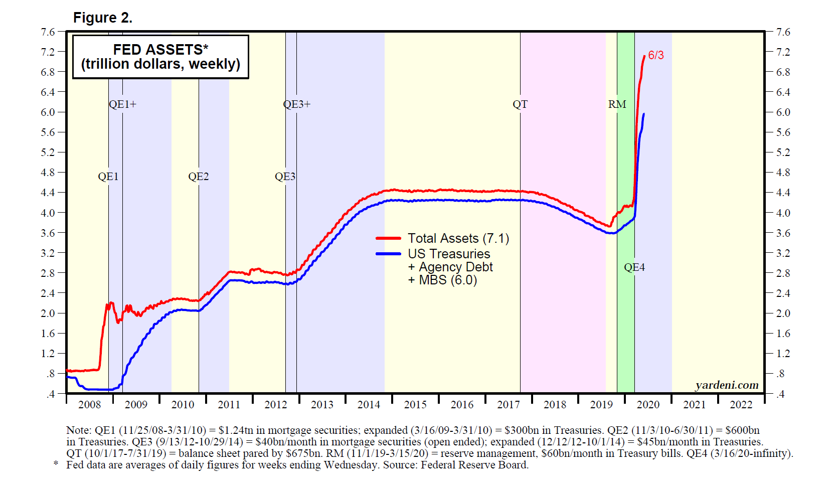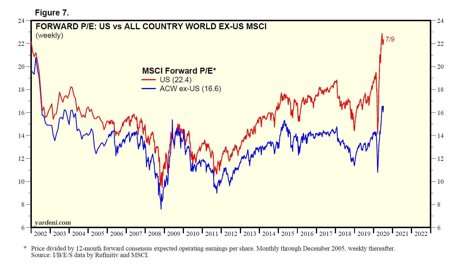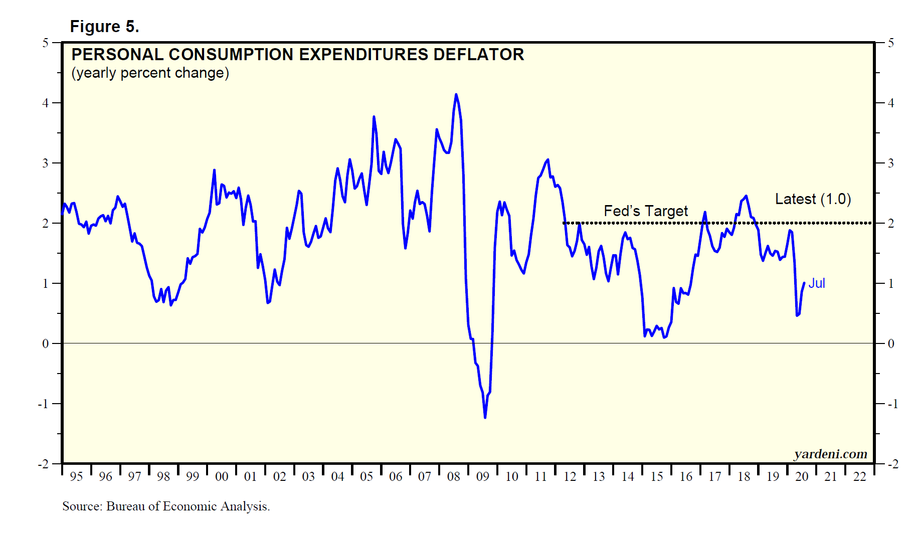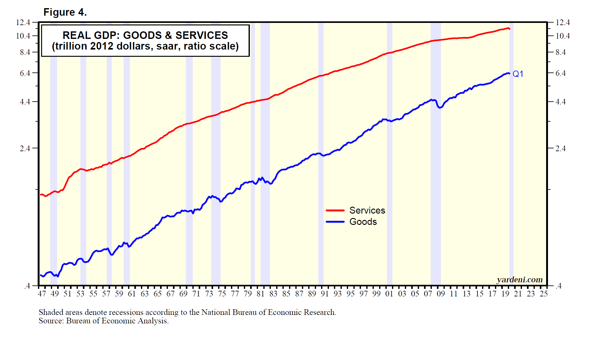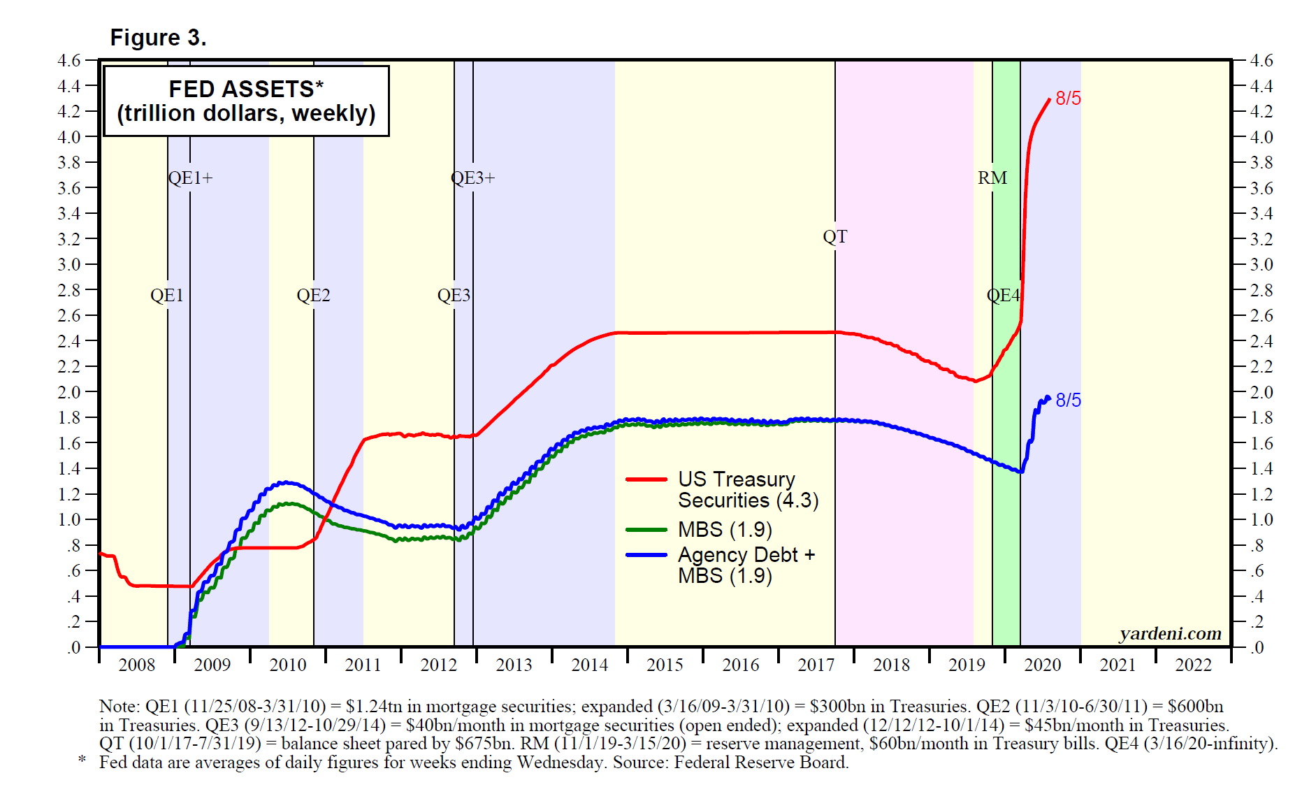 Corporate Finance I: Accounting for Fun & Profits. Yesterday, Joe and I raised our estimates for S&P 500 revenues and earnings per share and profit margins to the following: 2020 ($1,400, $140, 10%), 2021 ($1,545, $170, 11%), and 2022 ($1,625, $195, 12%). As a result, our S&P 500 year-end targets for this year and the next two years are now 3740, 4290, and 4620. (See YRI Earnings Forecasts.)