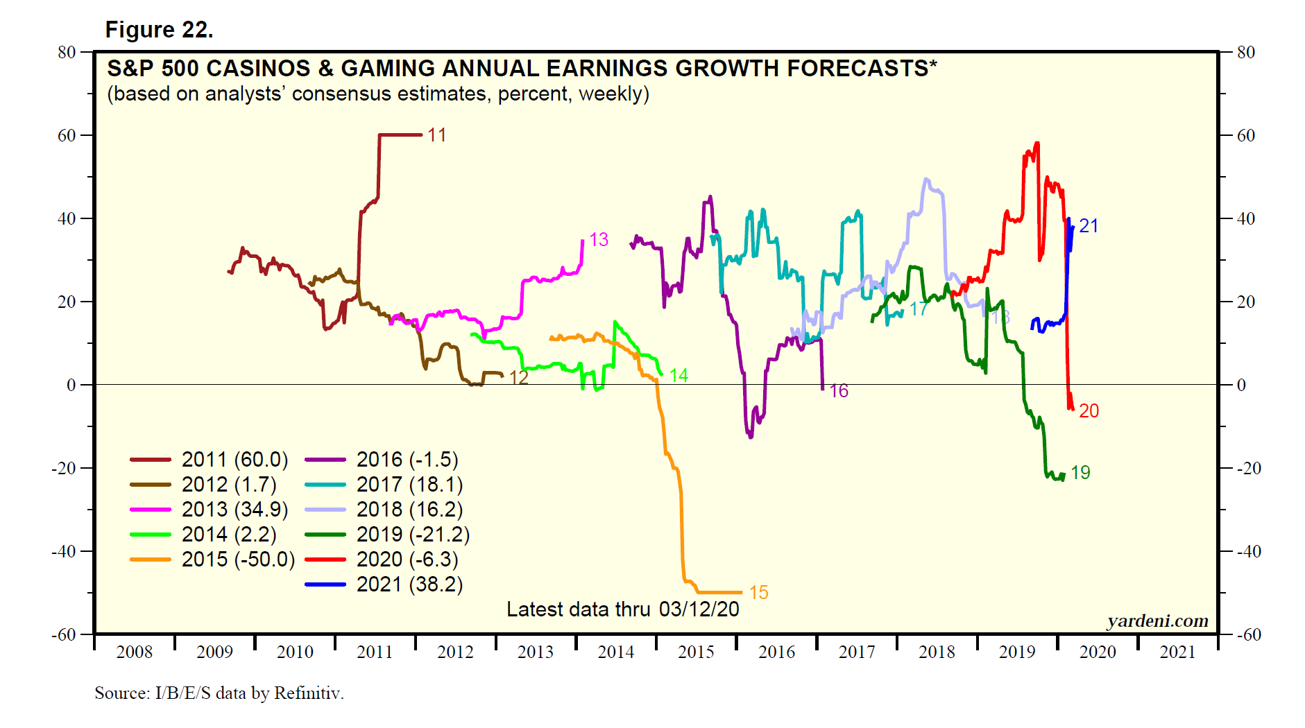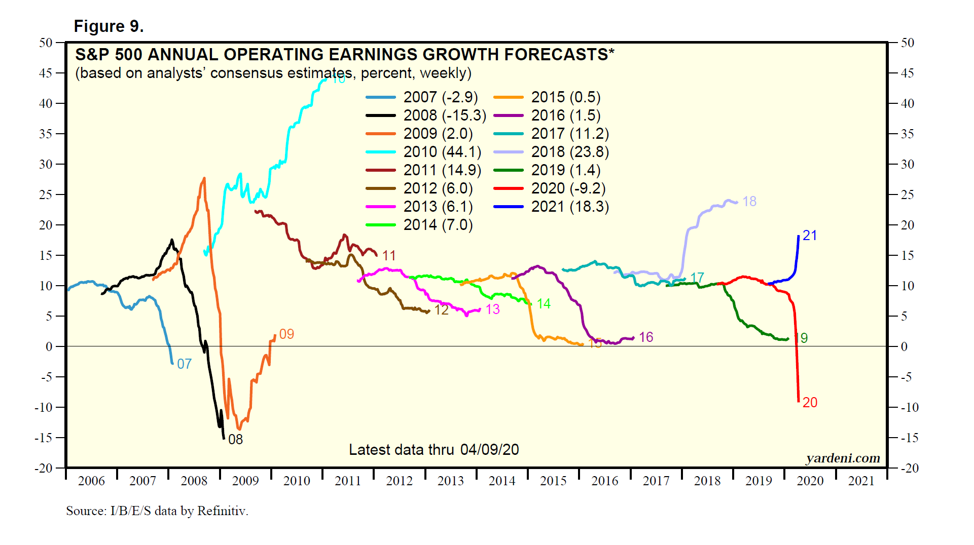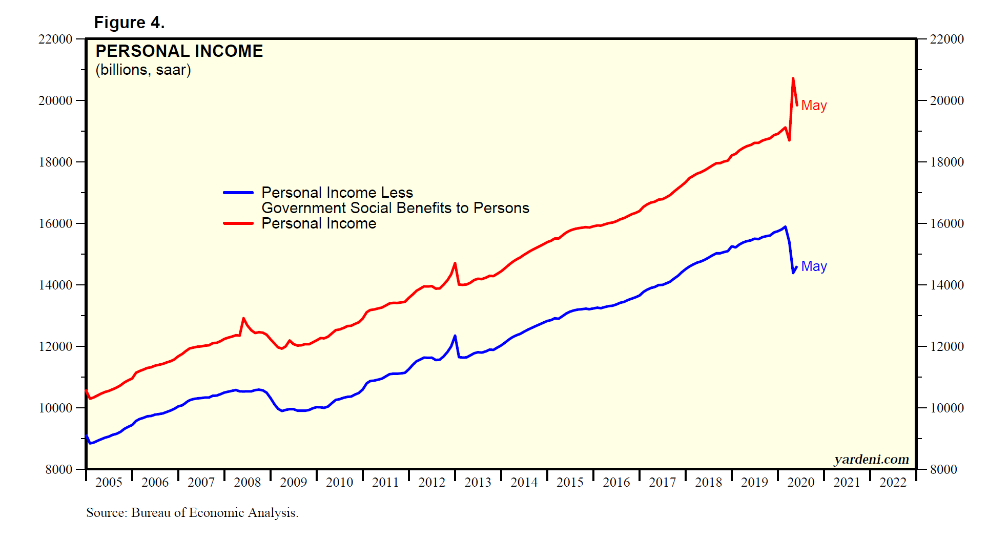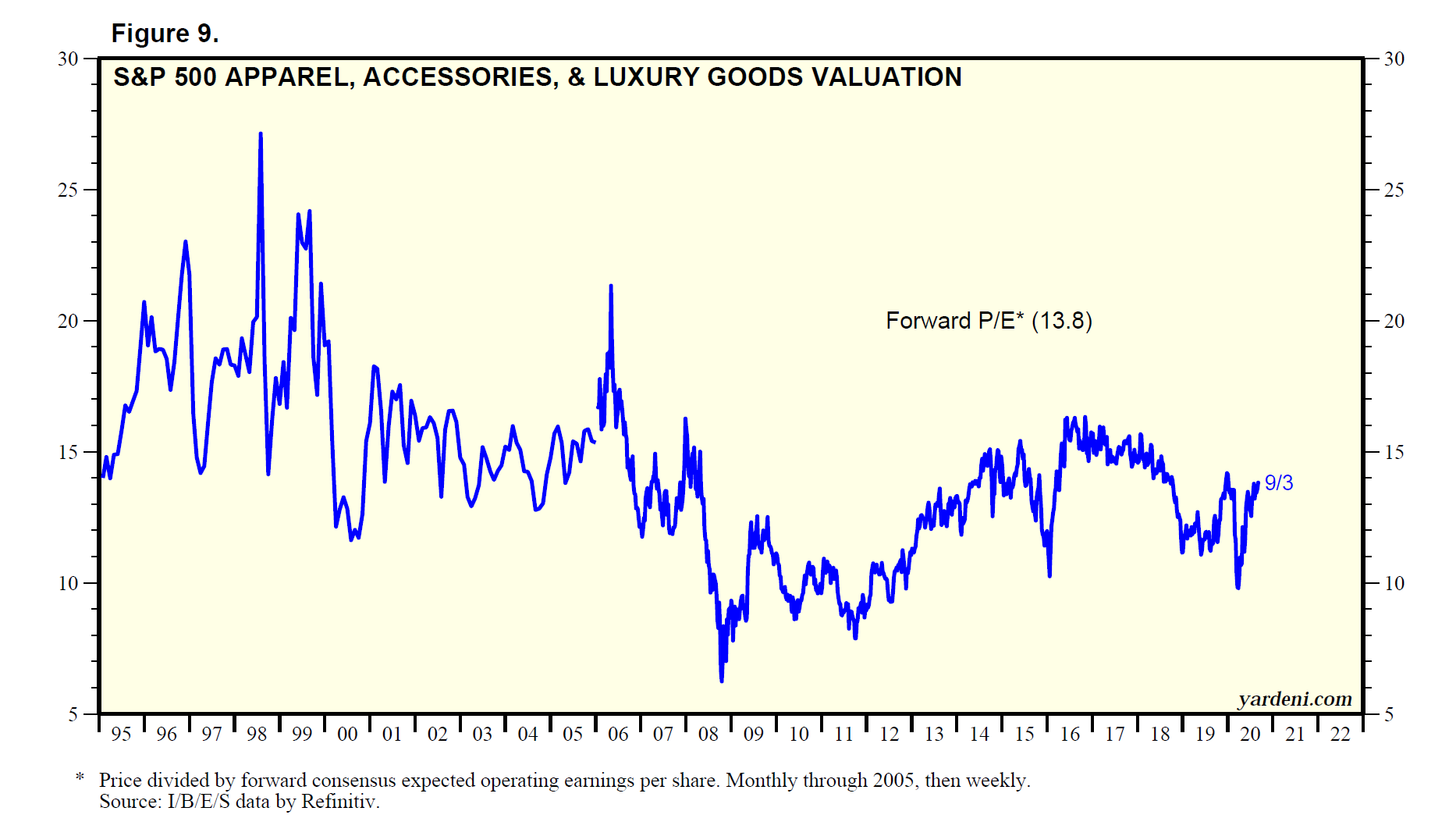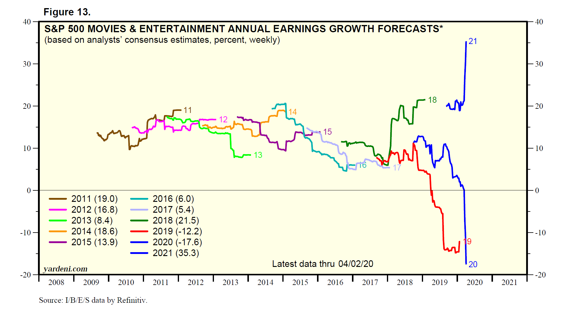 Corporate Finance I: Accounting for Fun & Profits. Yesterday, Joe and I raised our estimates for S&P 500 revenues and earnings per share and profit margins to the following: 2020 ($1,400, $140, 10%), 2021 ($1,545, $170, 11%), and 2022 ($1,625, $195, 12%). As a result, our S&P 500 year-end targets for this year and the next two years are now 3740, 4290, and 4620. (See YRI Earnings Forecasts.)