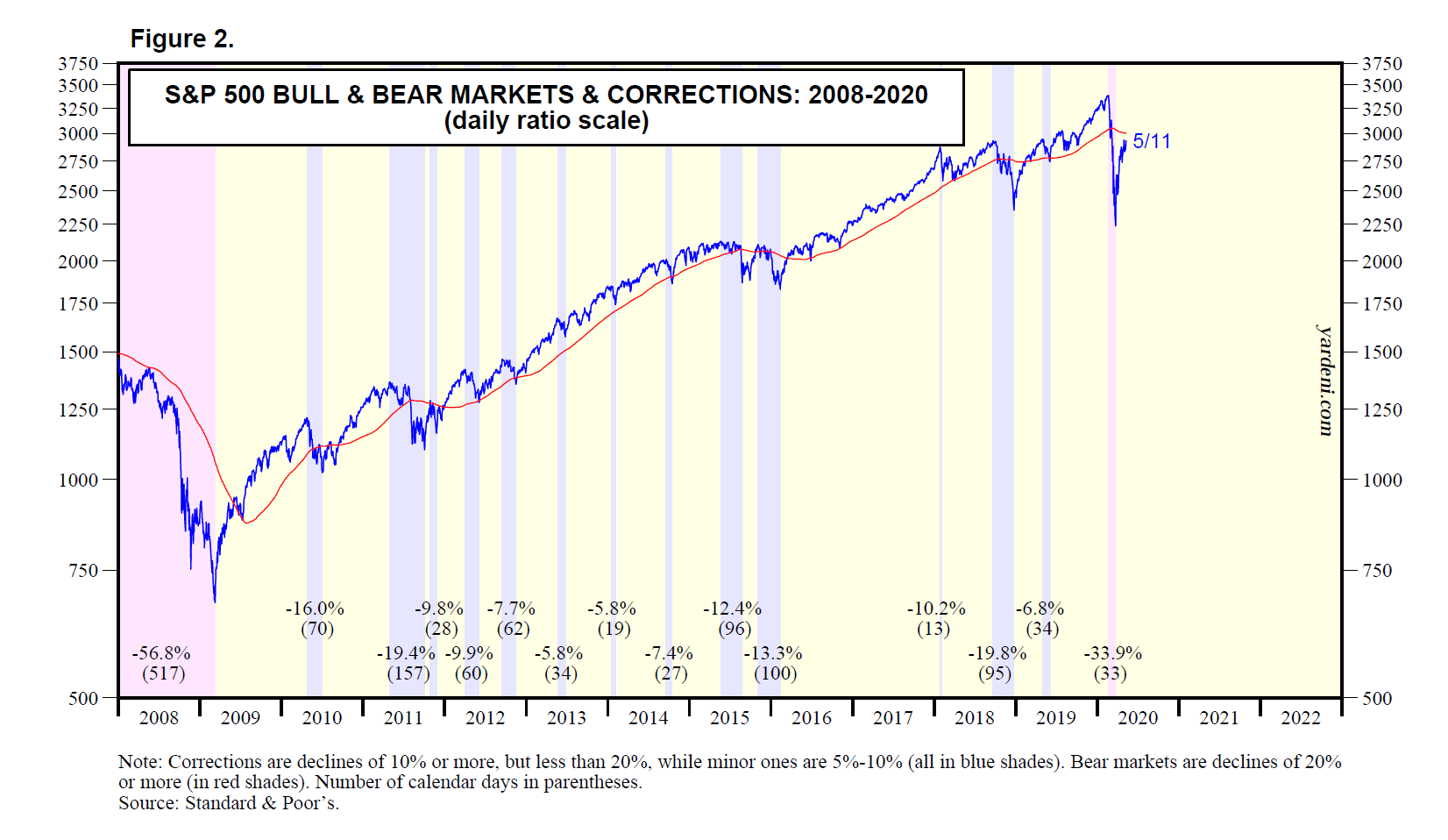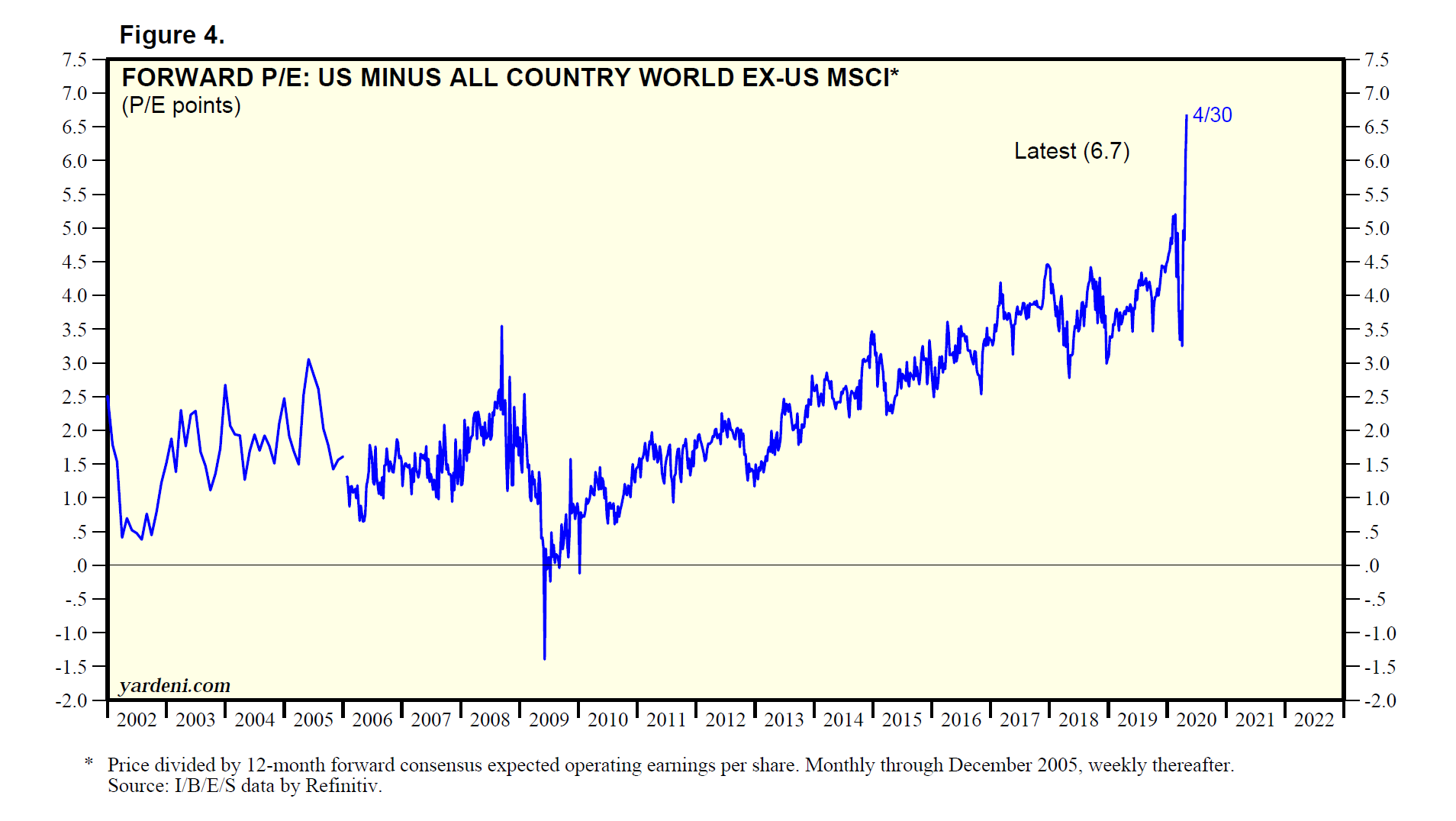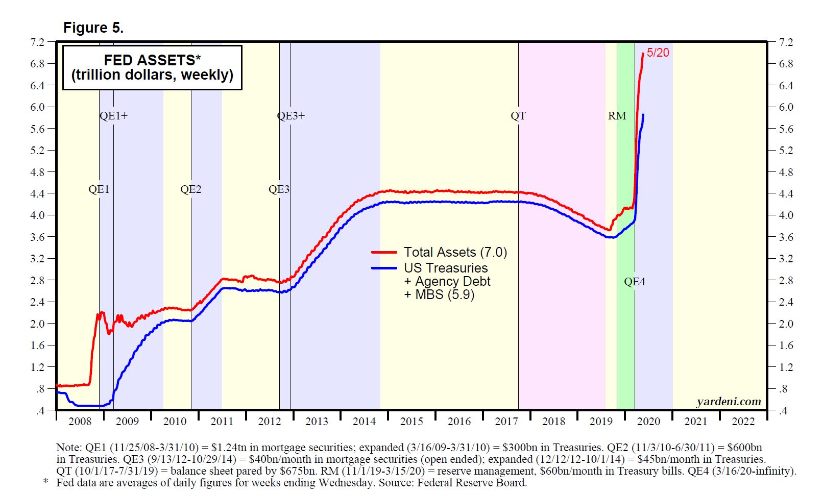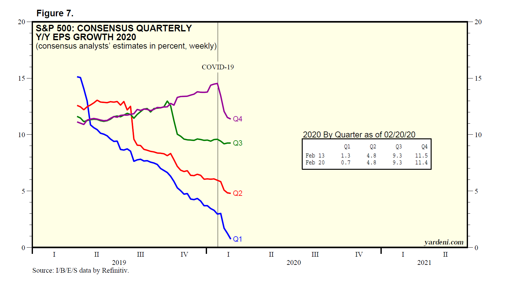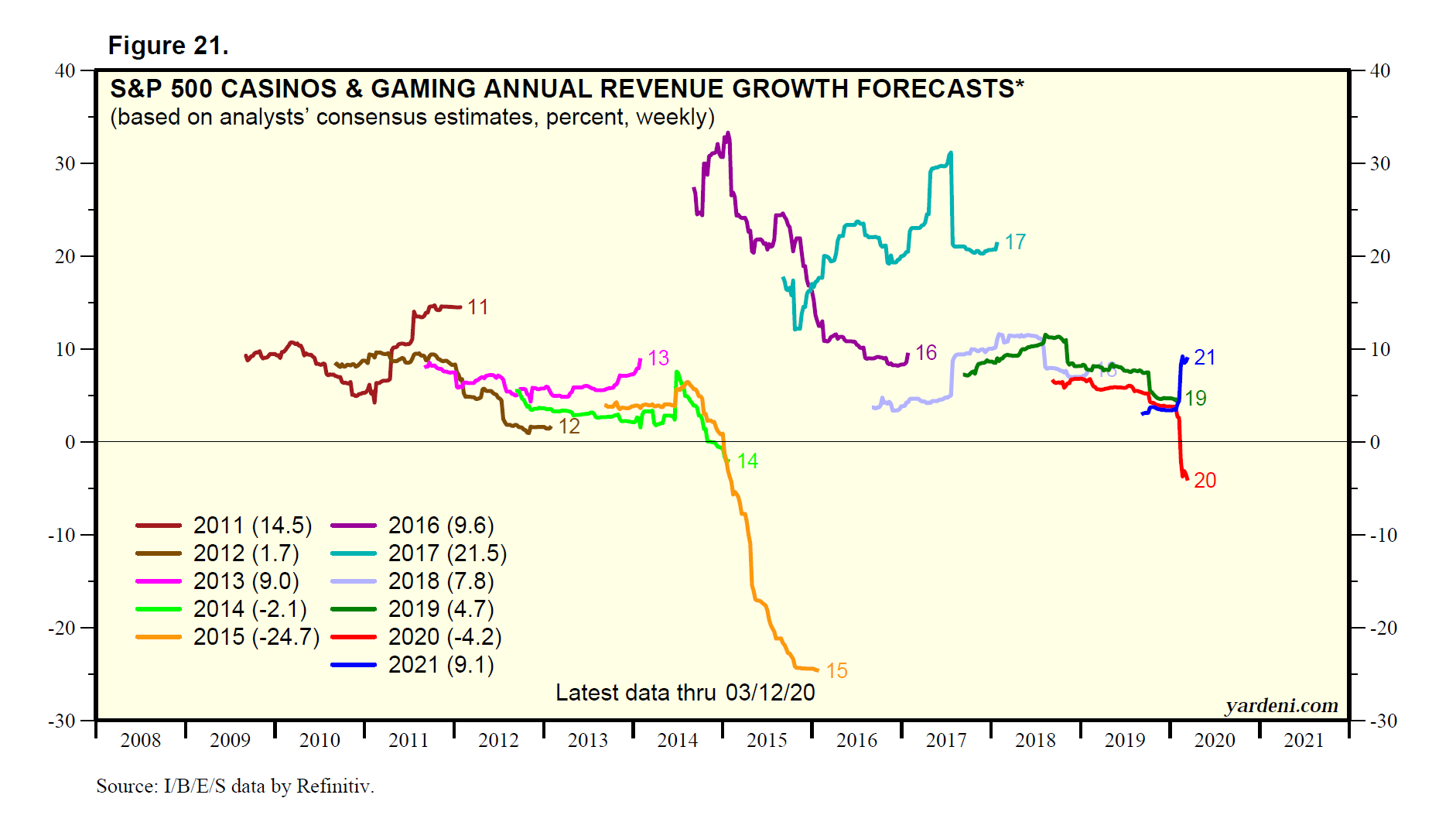 Corporate Finance I: Accounting for Fun & Profits. Yesterday, Joe and I raised our estimates for S&P 500 revenues and earnings per share and profit margins to the following: 2020 ($1,400, $140, 10%), 2021 ($1,545, $170, 11%), and 2022 ($1,625, $195, 12%). As a result, our S&P 500 year-end targets for this year and the next two years are now 3740, 4290, and 4620. (See YRI Earnings Forecasts.)