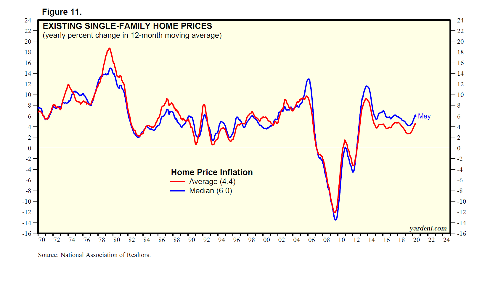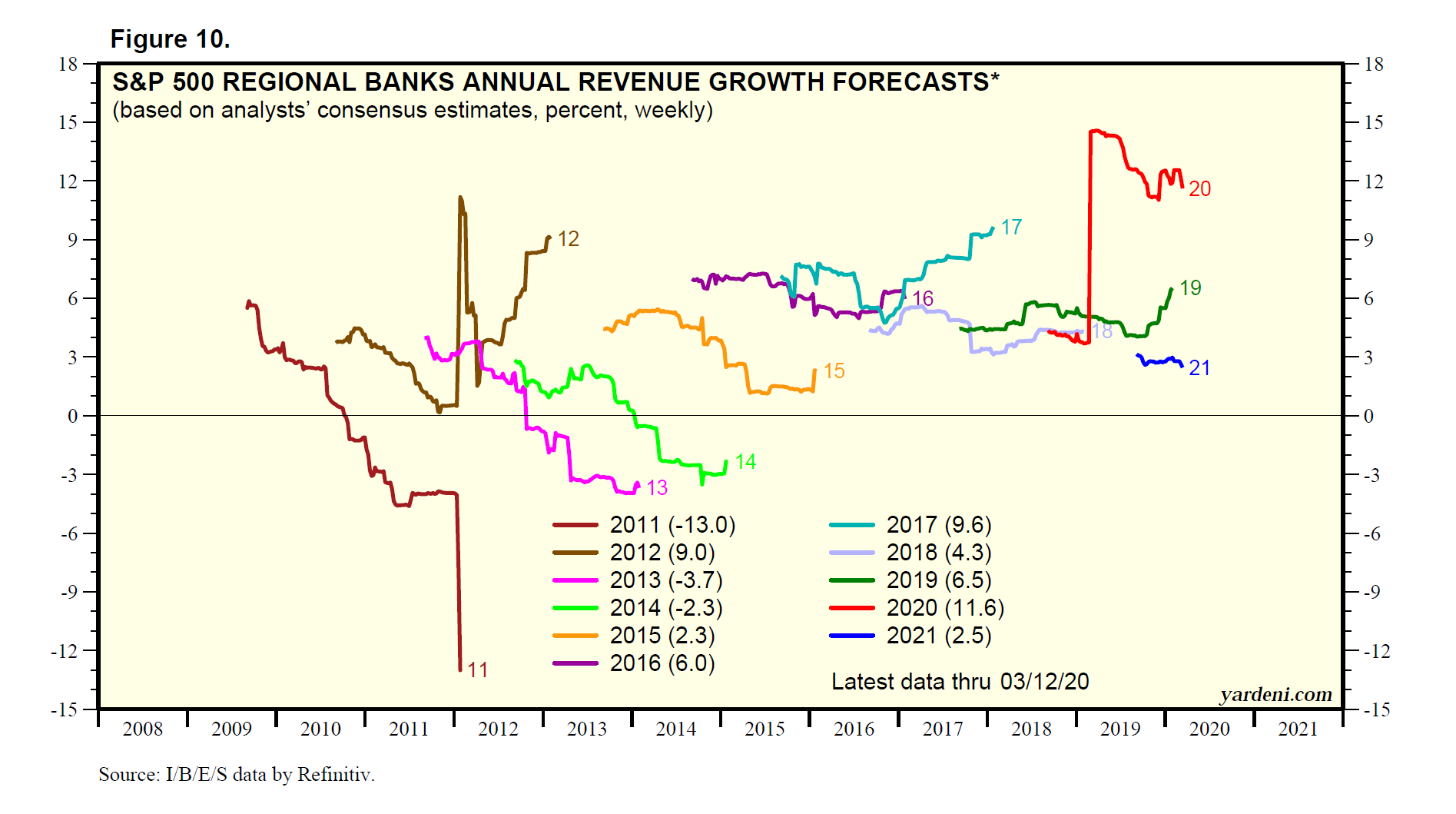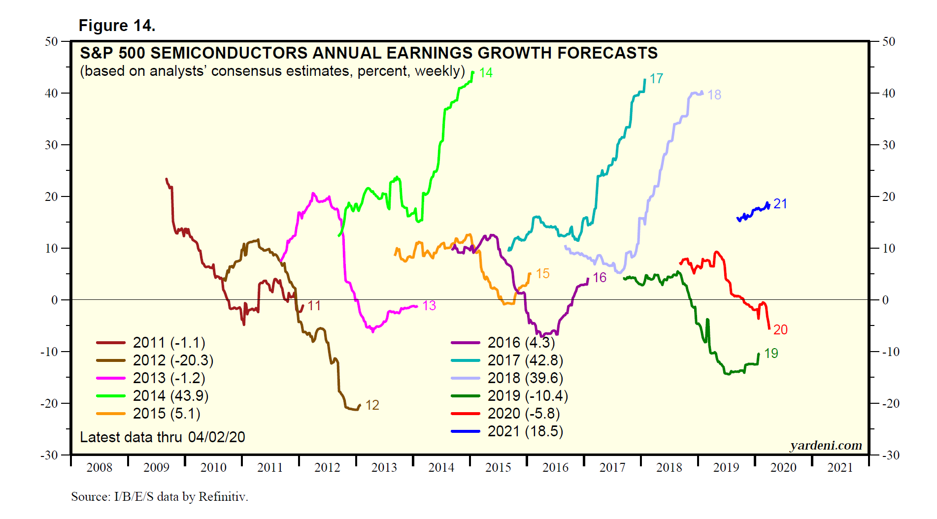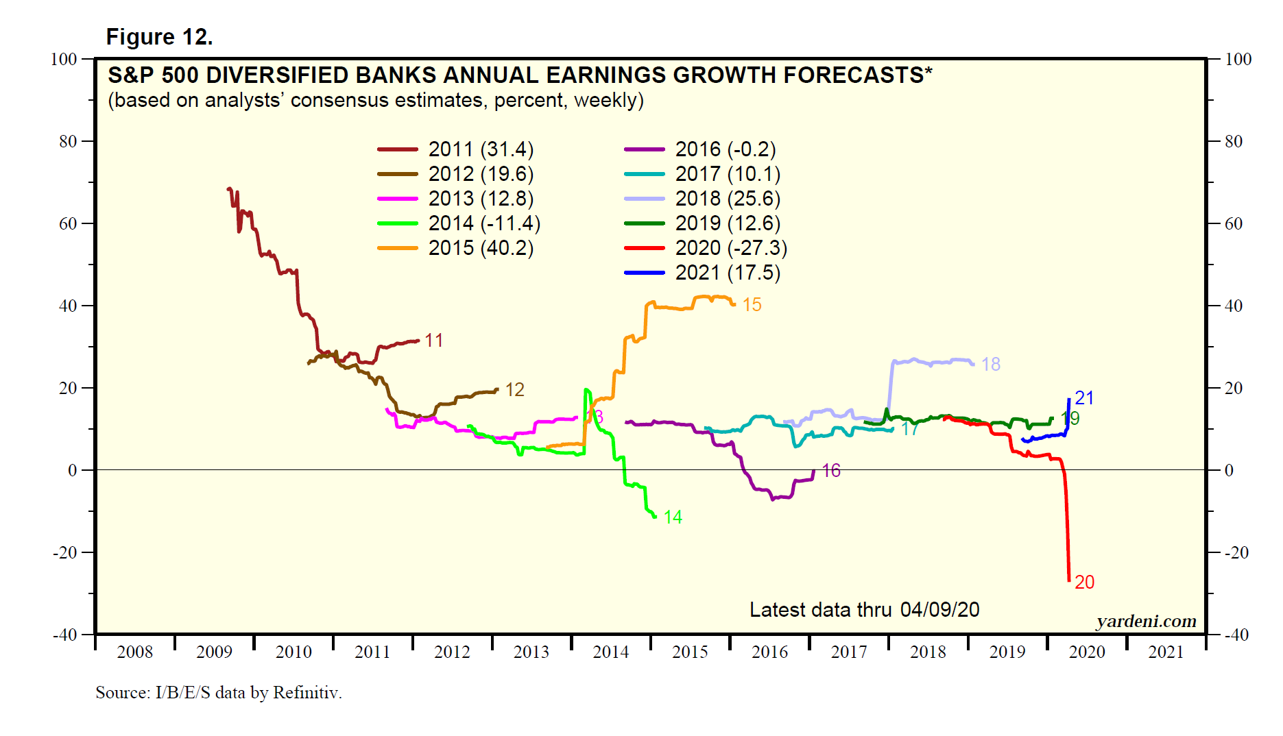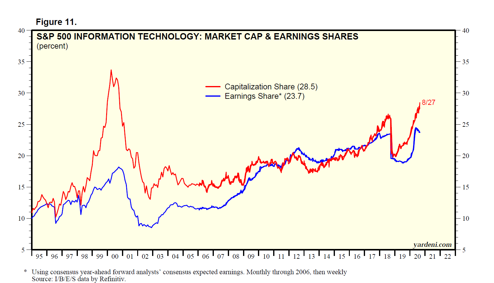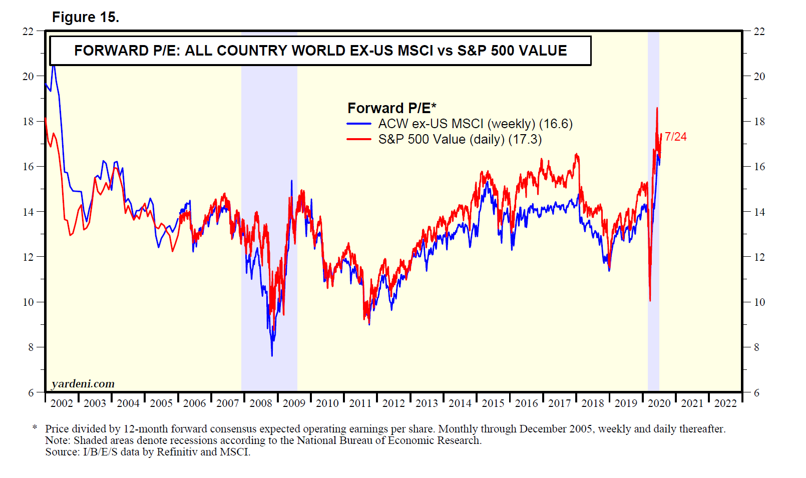 Corporate Finance I: Accounting for Fun & Profits. Yesterday, Joe and I raised our estimates for S&P 500 revenues and earnings per share and profit margins to the following: 2020 ($1,400, $140, 10%), 2021 ($1,545, $170, 11%), and 2022 ($1,625, $195, 12%). As a result, our S&P 500 year-end targets for this year and the next two years are now 3740, 4290, and 4620. (See YRI Earnings Forecasts.)
