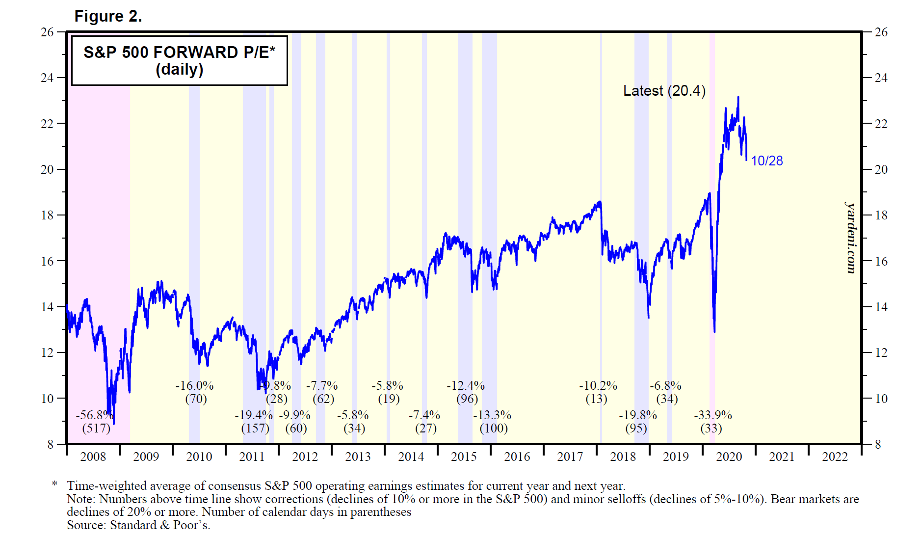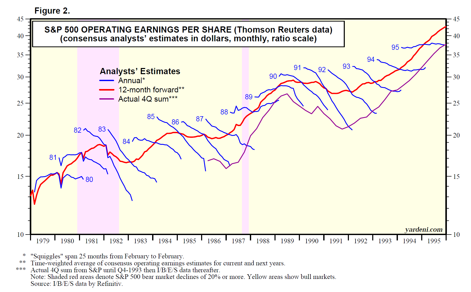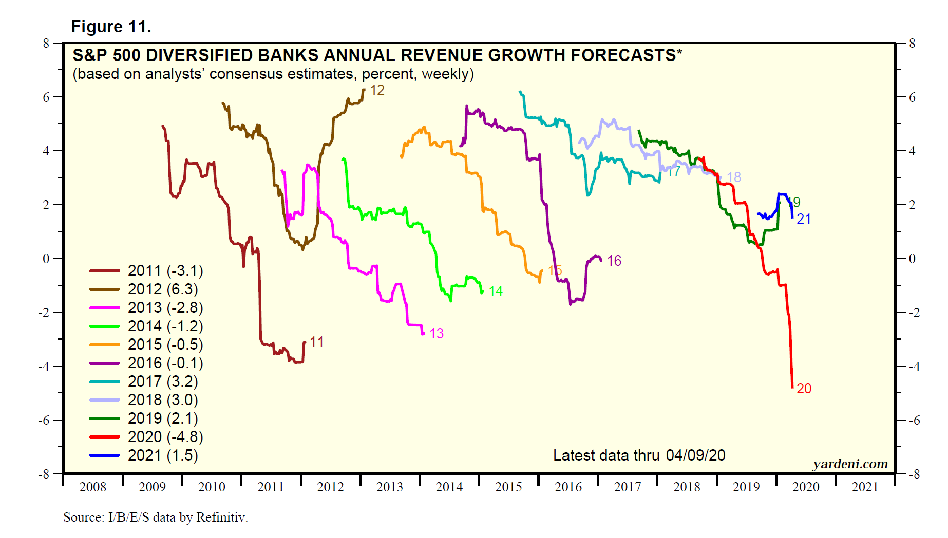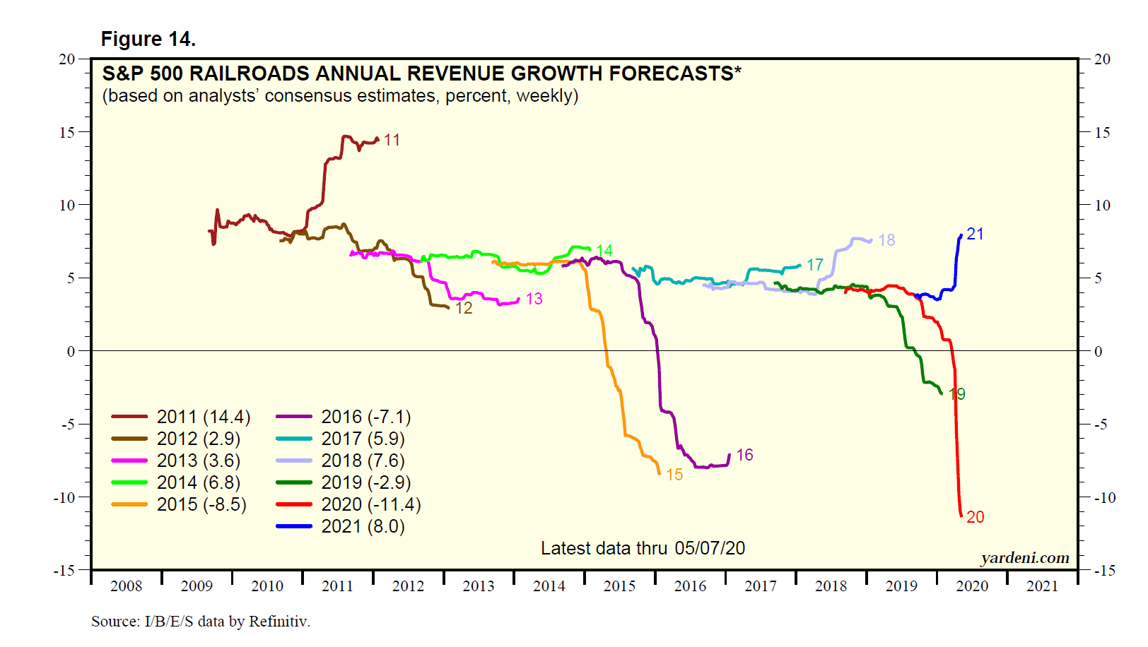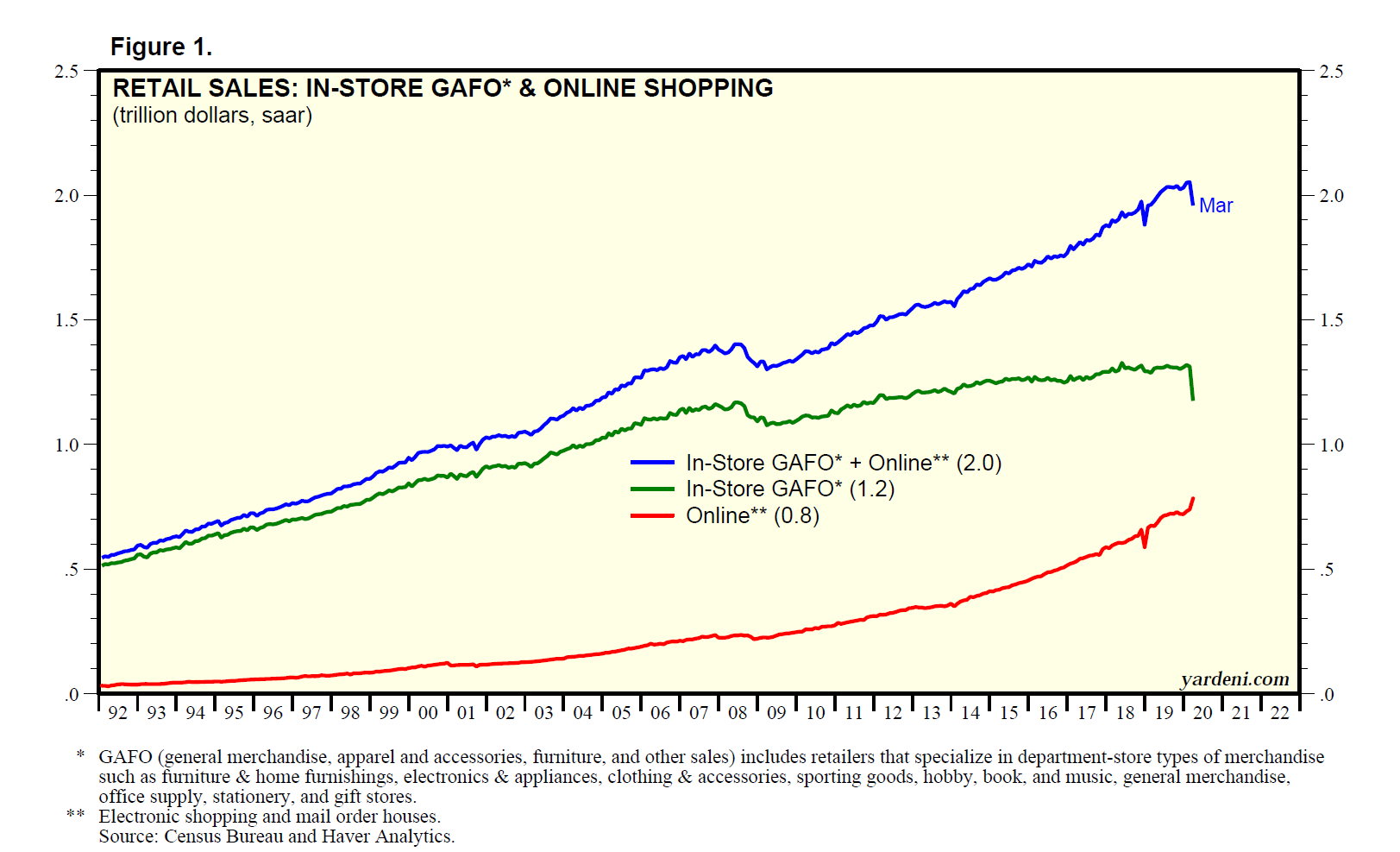 Corporate Finance I: Accounting for Fun & Profits. Yesterday, Joe and I raised our estimates for S&P 500 revenues and earnings per share and profit margins to the following: 2020 ($1,400, $140, 10%), 2021 ($1,545, $170, 11%), and 2022 ($1,625, $195, 12%). As a result, our S&P 500 year-end targets for this year and the next two years are now 3740, 4290, and 4620. (See YRI Earnings Forecasts.)