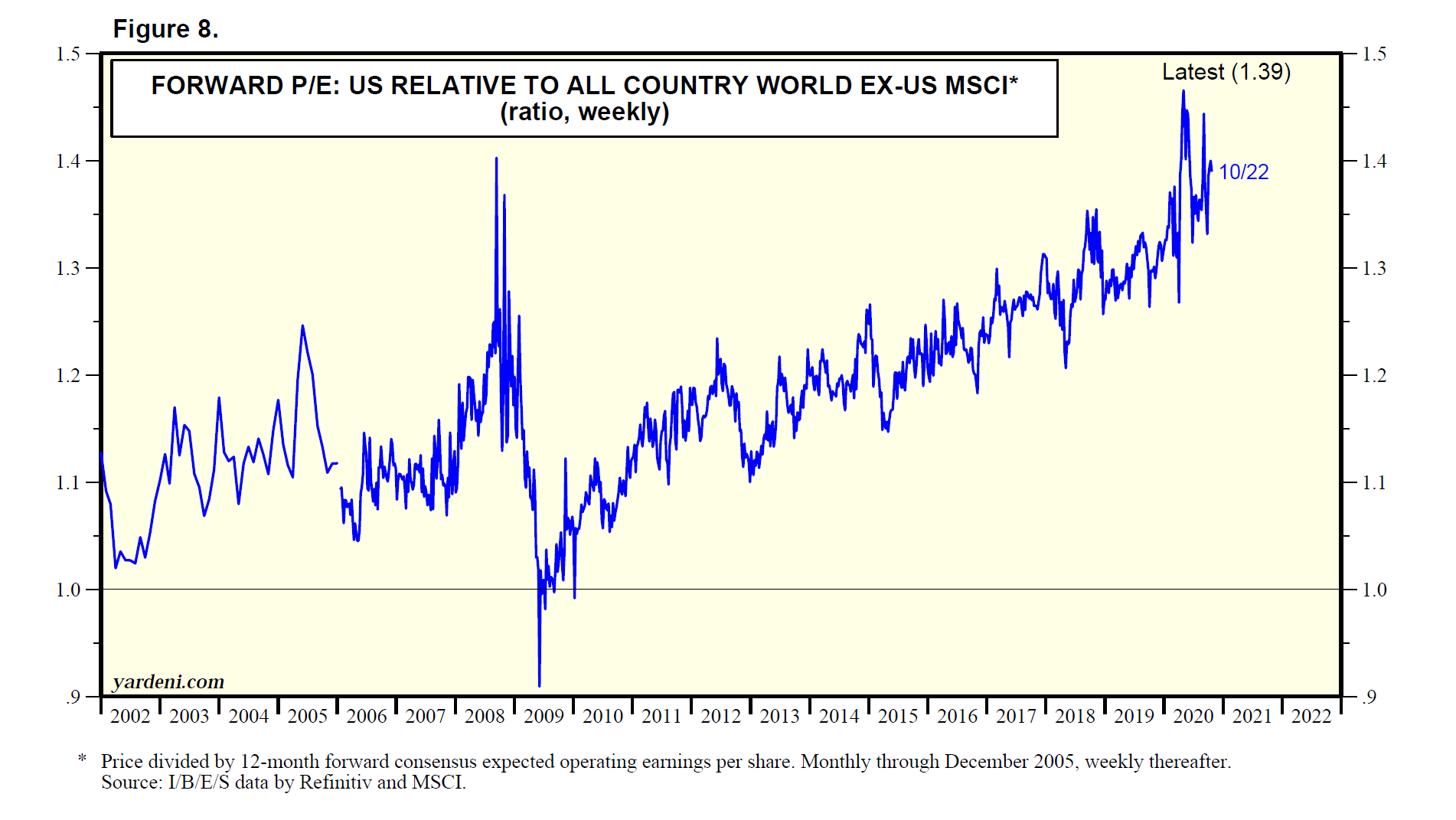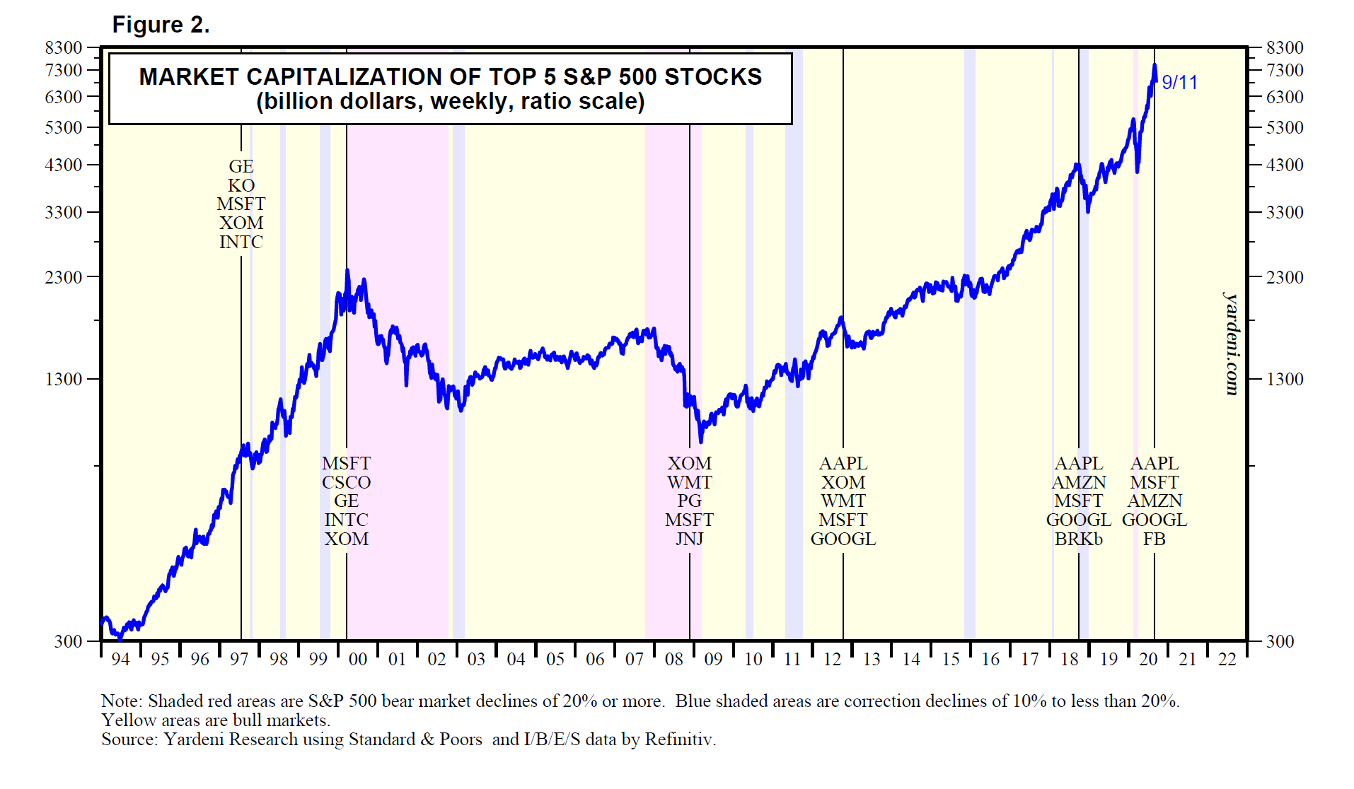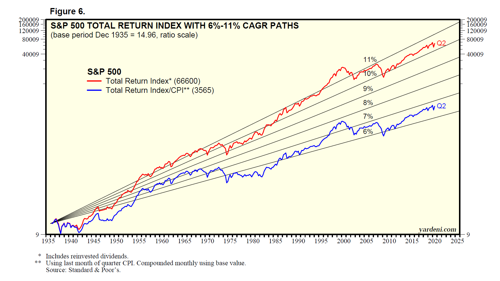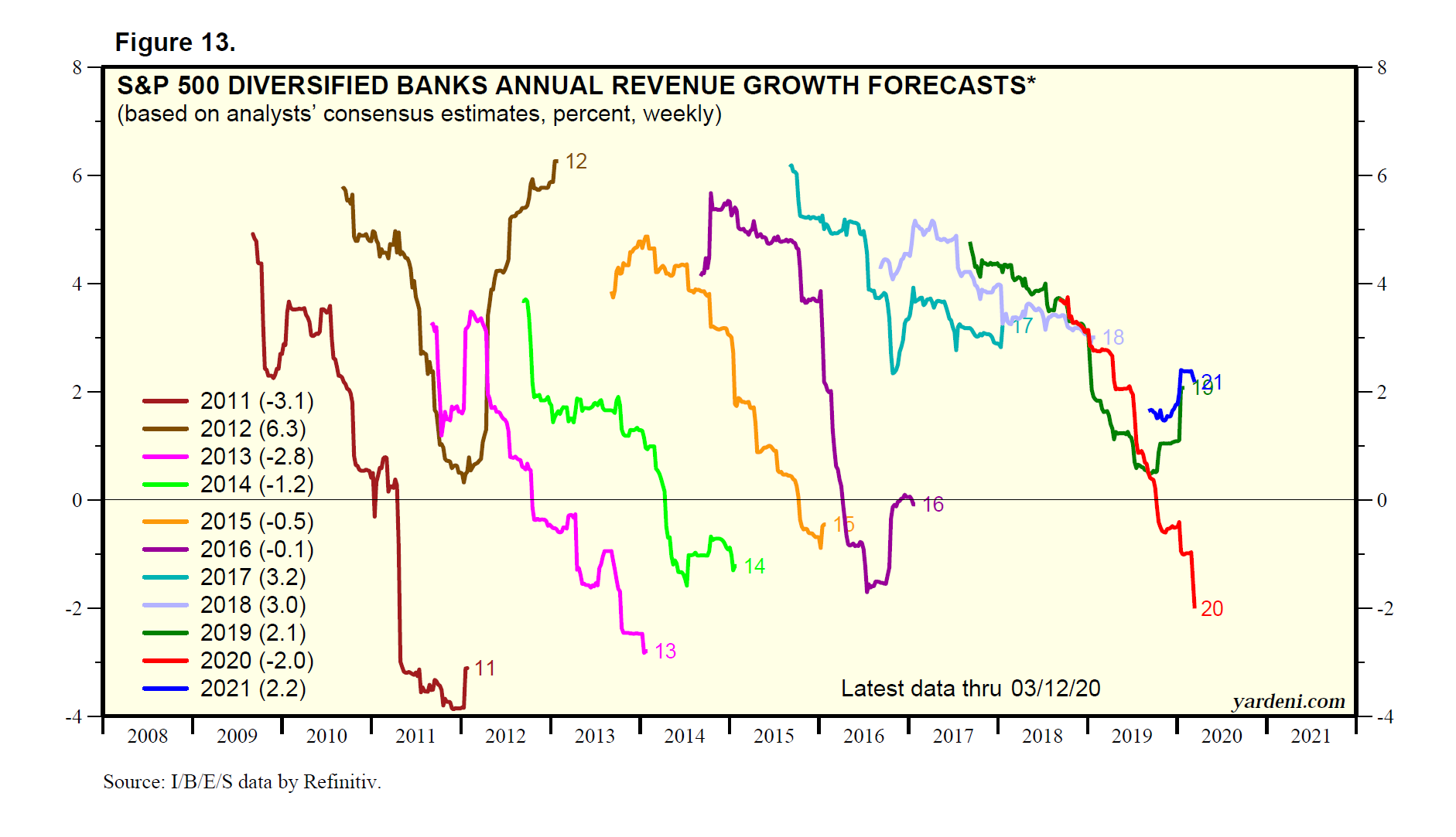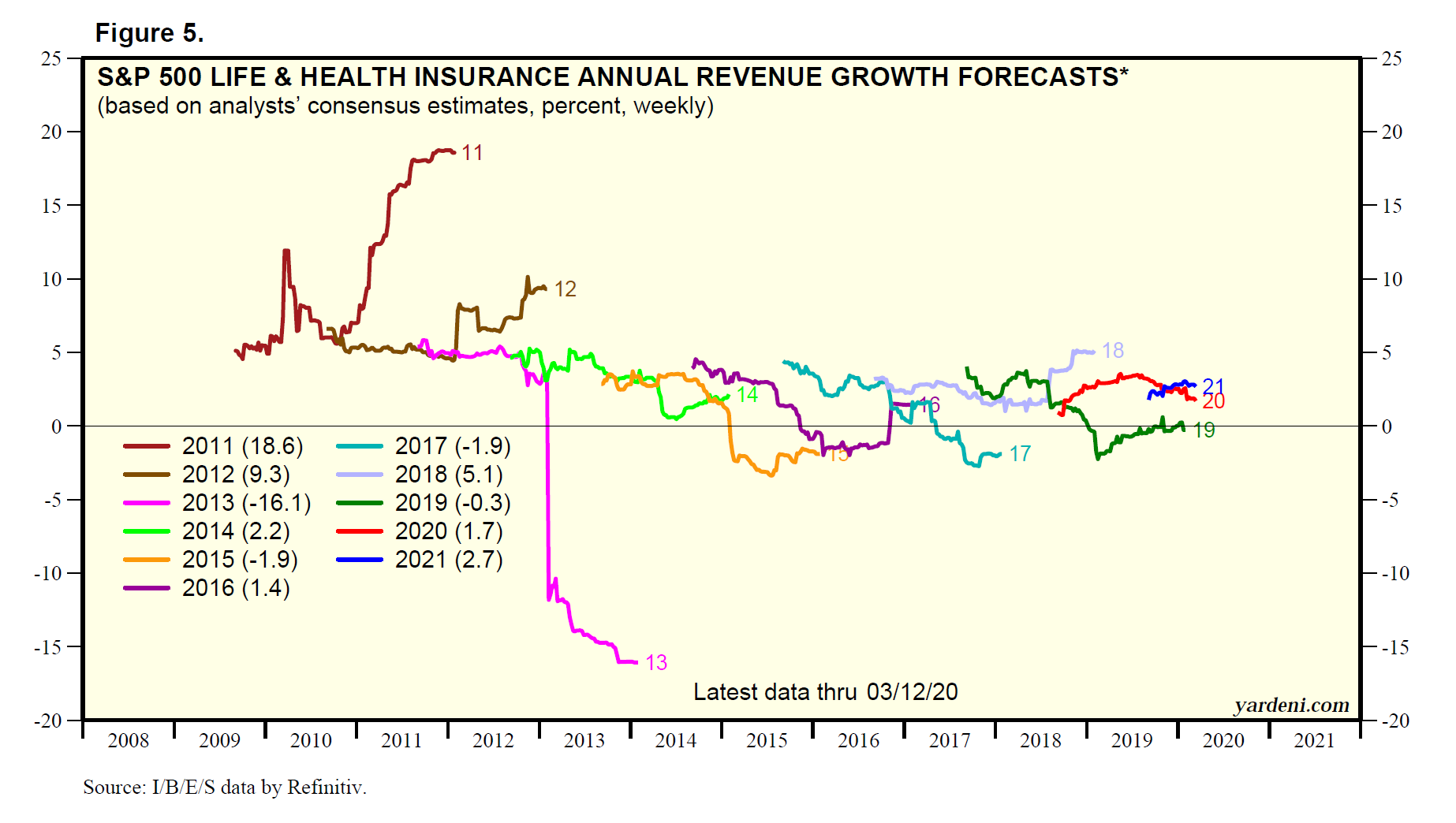 Corporate Finance I: Accounting for Fun & Profits. Yesterday, Joe and I raised our estimates for S&P 500 revenues and earnings per share and profit margins to the following: 2020 ($1,400, $140, 10%), 2021 ($1,545, $170, 11%), and 2022 ($1,625, $195, 12%). As a result, our S&P 500 year-end targets for this year and the next two years are now 3740, 4290, and 4620. (See YRI Earnings Forecasts.)