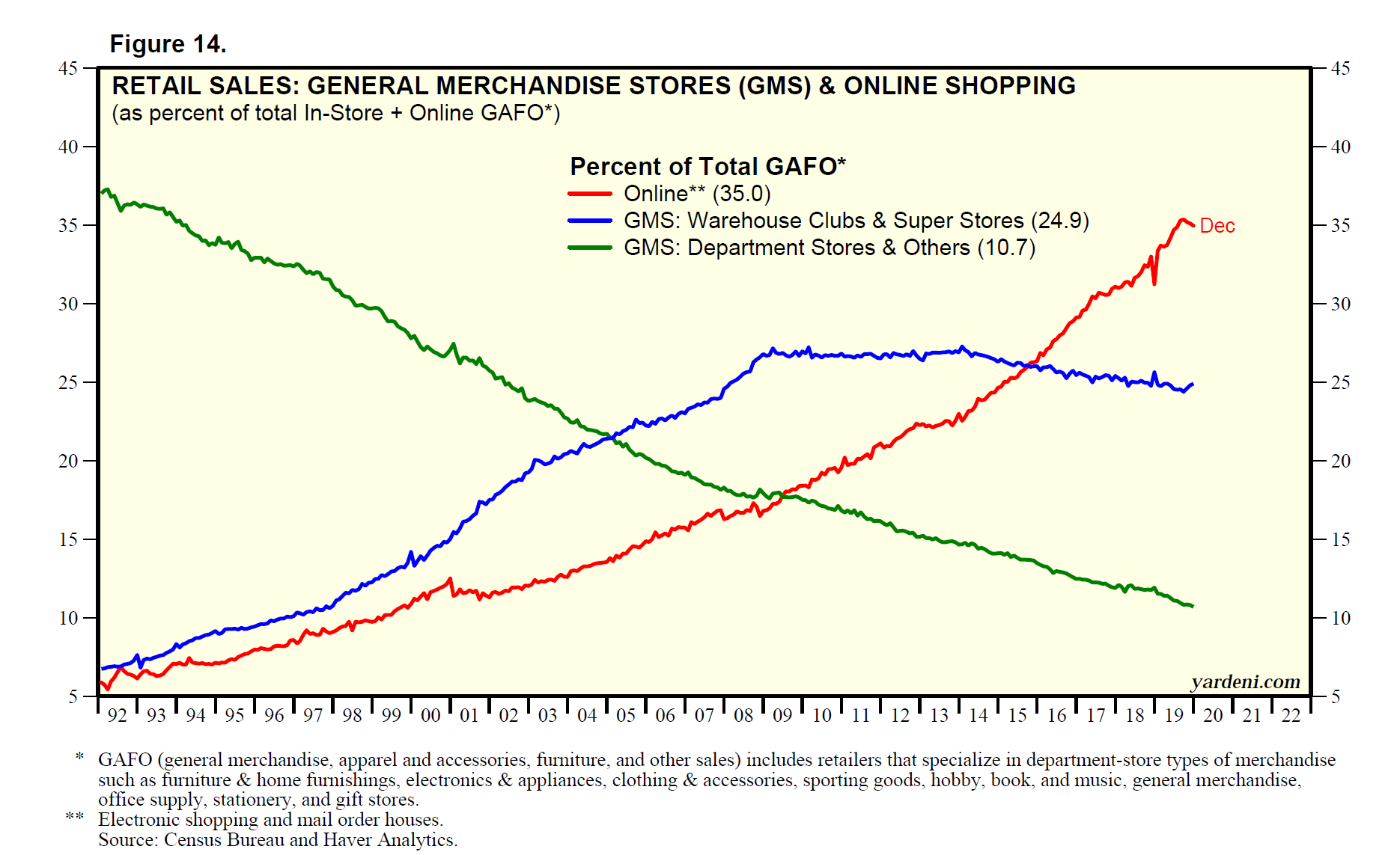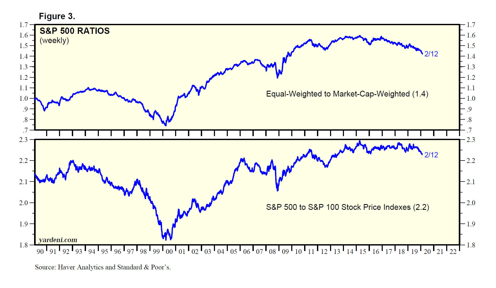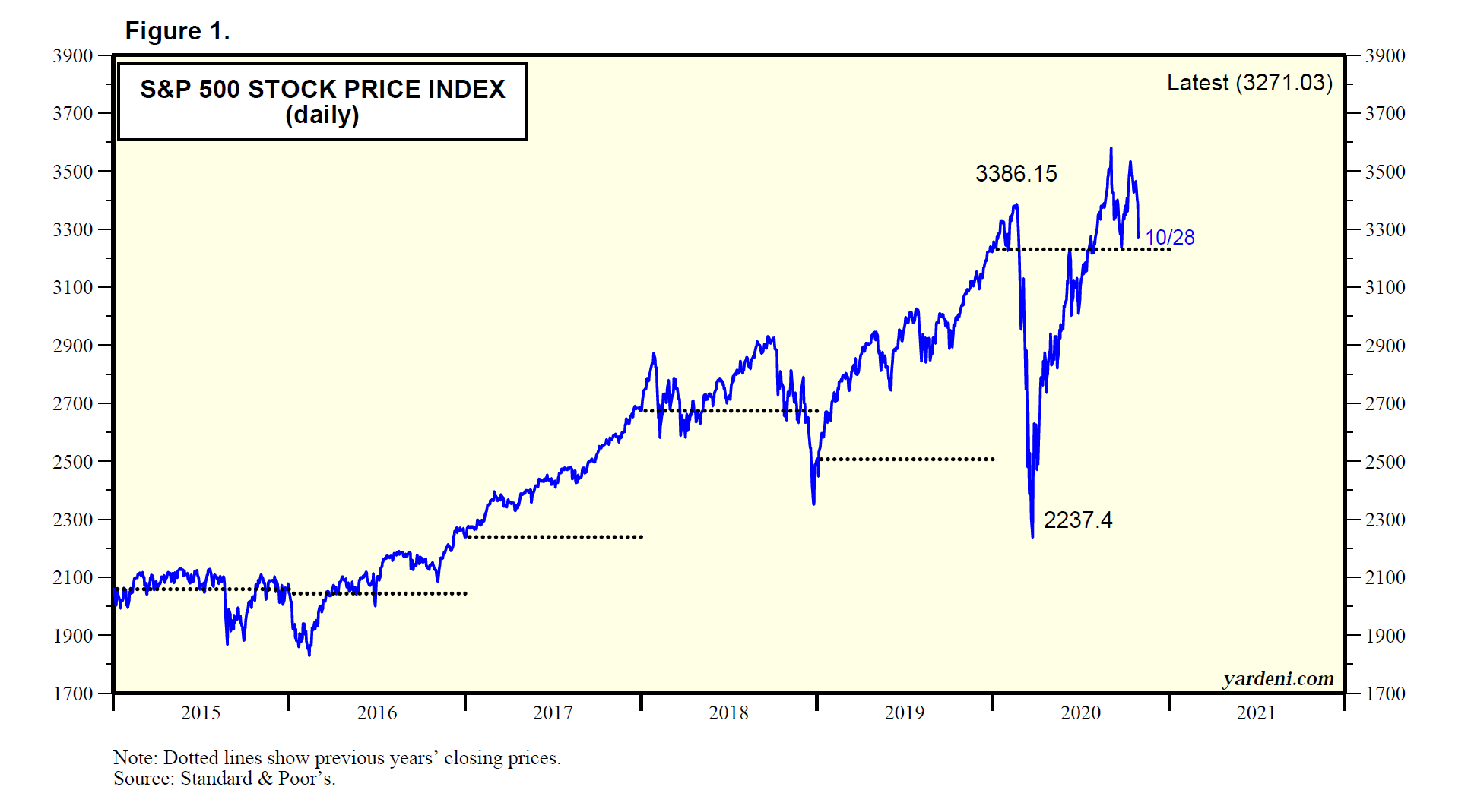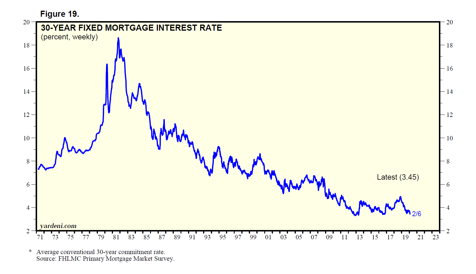 You might recall that Joe and I predicted that the S&P 500 would get to 3100 by the end of 2018 and 3500 by the end of 2019. We got close, with a record high during 2018 of 2930.75 on 9/20. But then the market took a 19.8% dive through 12/24/18. So we pushed out our 3100 target to the end of last year and our 3500 target to the end of this year. The first target arrived ahead of our revised schedule, on 11/15 last year. The second target may occur well ahead of schedule since the S&P 500 needs only to increase by 8.2% to get to 3500.