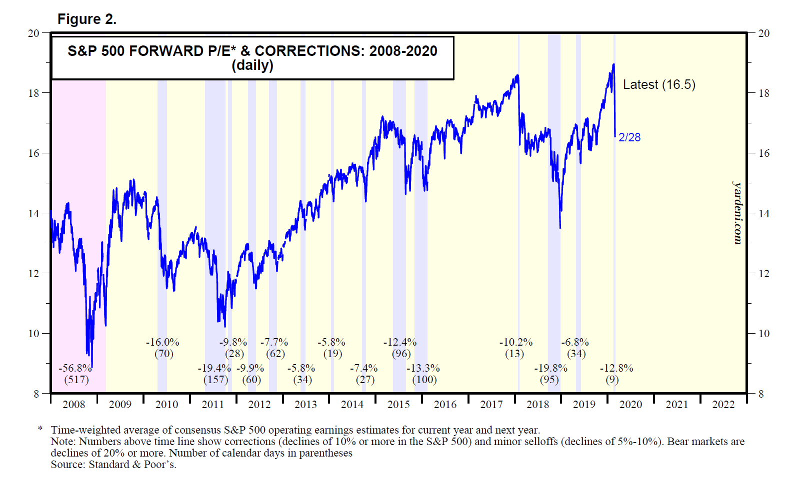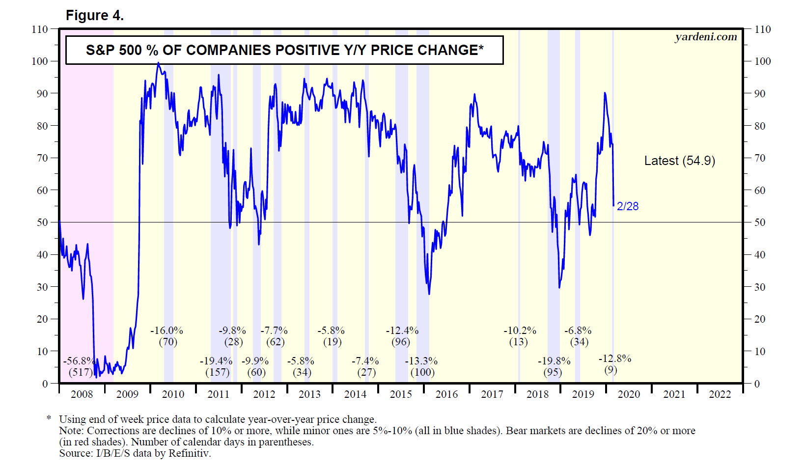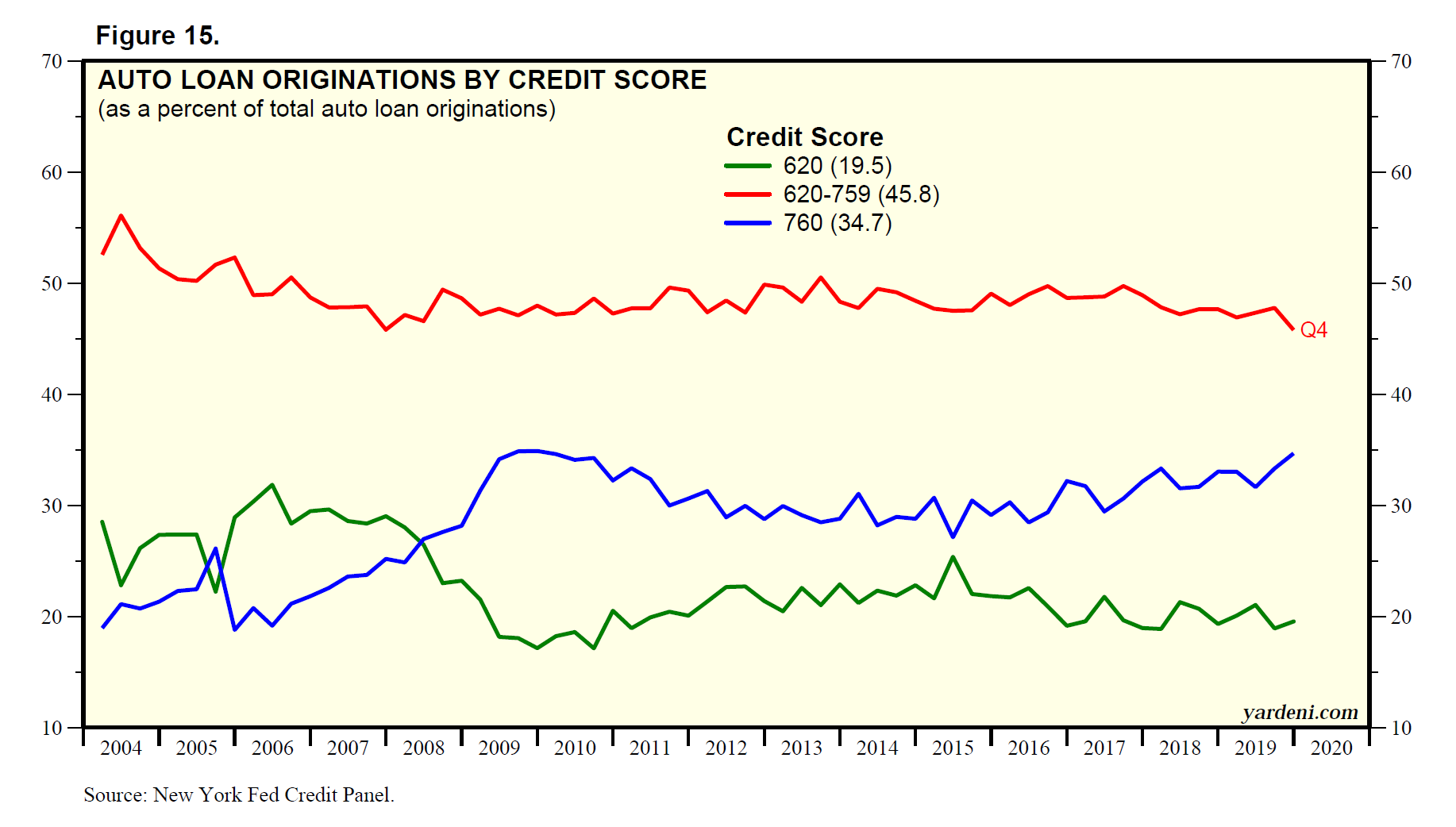 The problem with P/E-led meltups is that they tend to set the stage for meltdowns, i.e., either nasty corrections or bear markets. Since we don’t expect that either a spike in oil prices or a garden-variety meltdown in stock prices will cause a recession this year, any selloff is more likely to be a correction than a bear market and yet another buying opportunity. If we saw signs of a credit crunch, then we would worry about a recession and a bear market.