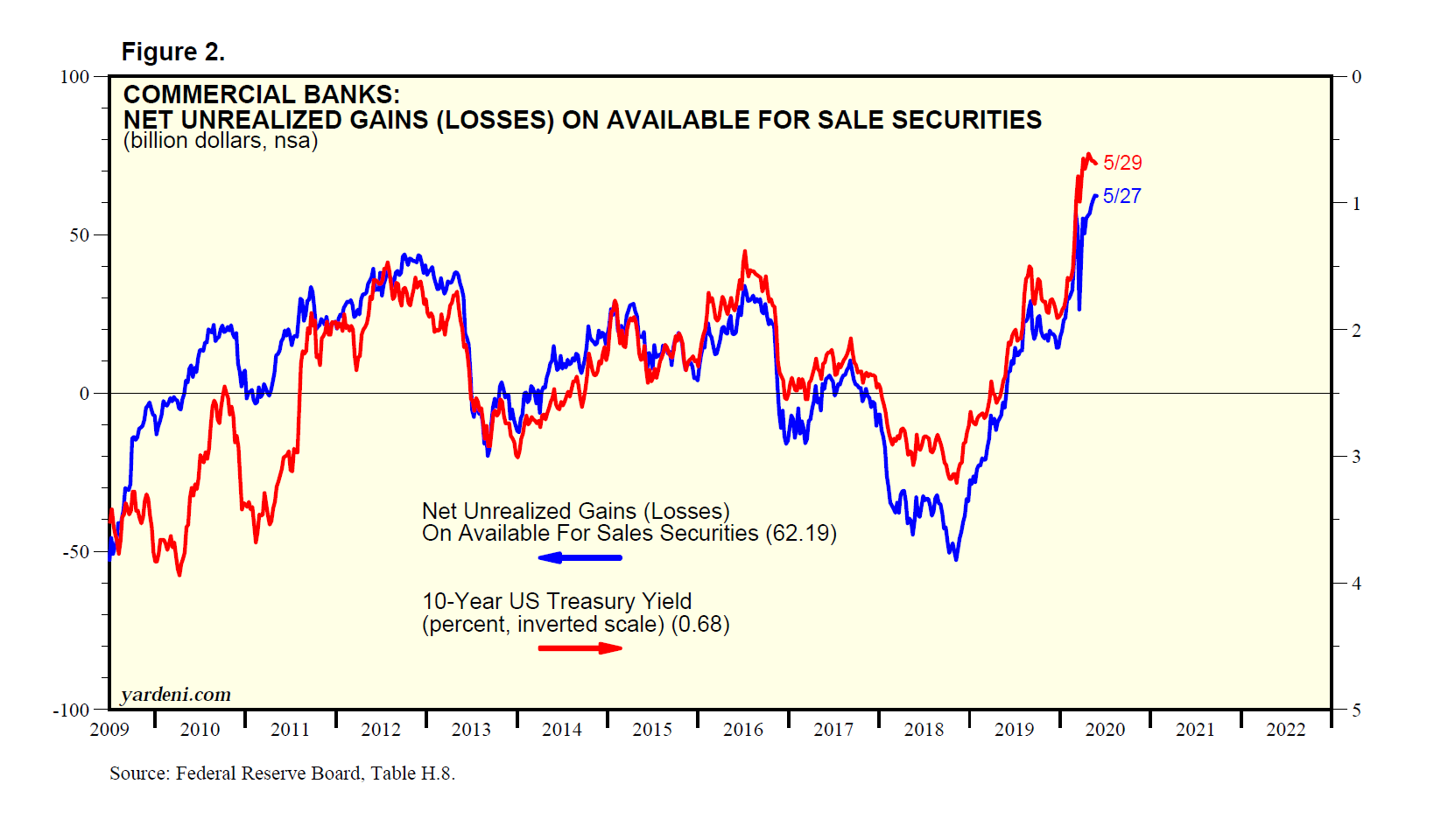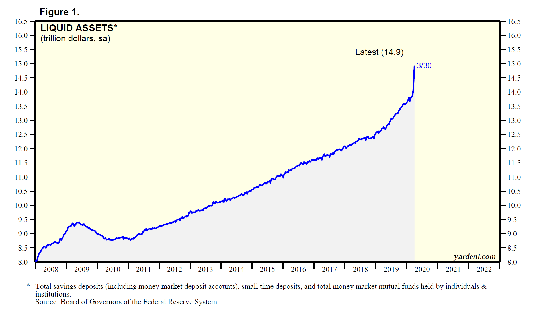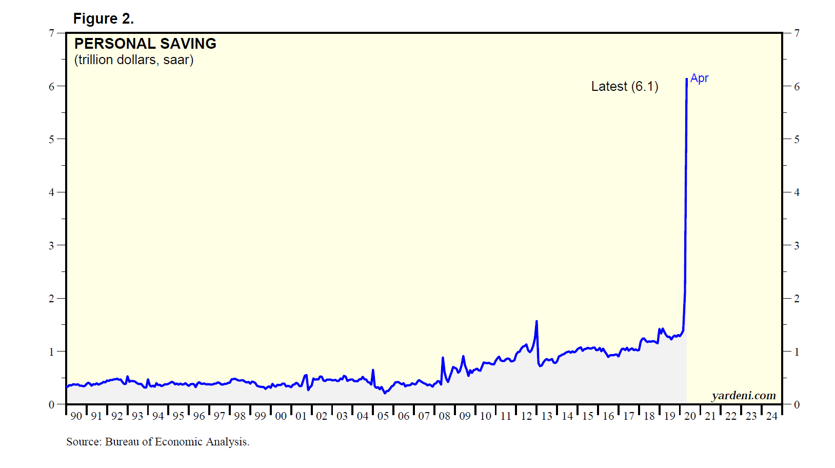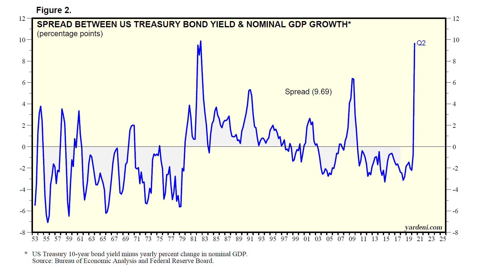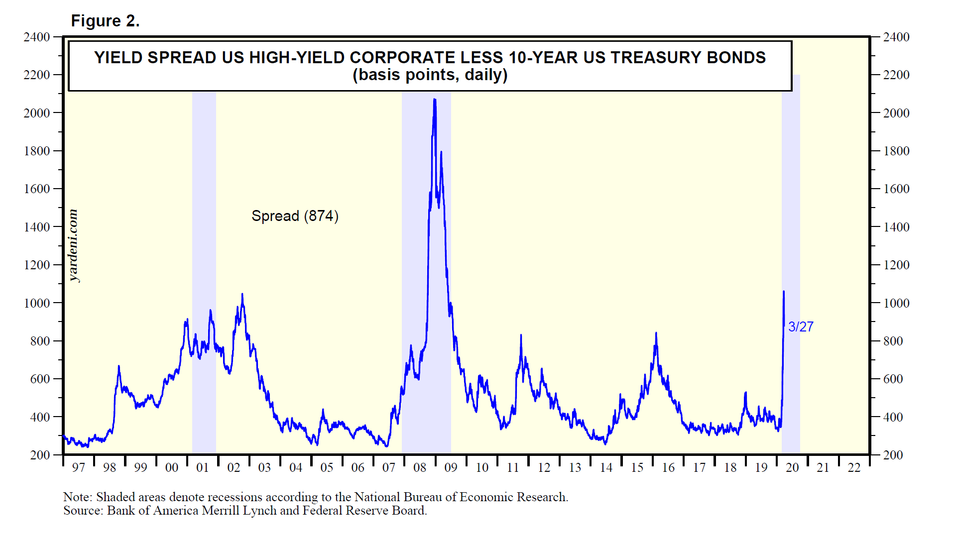 Nonfinancial corporate business debt jumped during Q1 as many companies cashed in their bank lines of credit during March, fearing a credit crunch. When the Fed dramatically eased credit conditions later that month, they scrambled to issue bonds, both to raise cash and to refinance debt at record-low interest rates. Here are some specific figures: