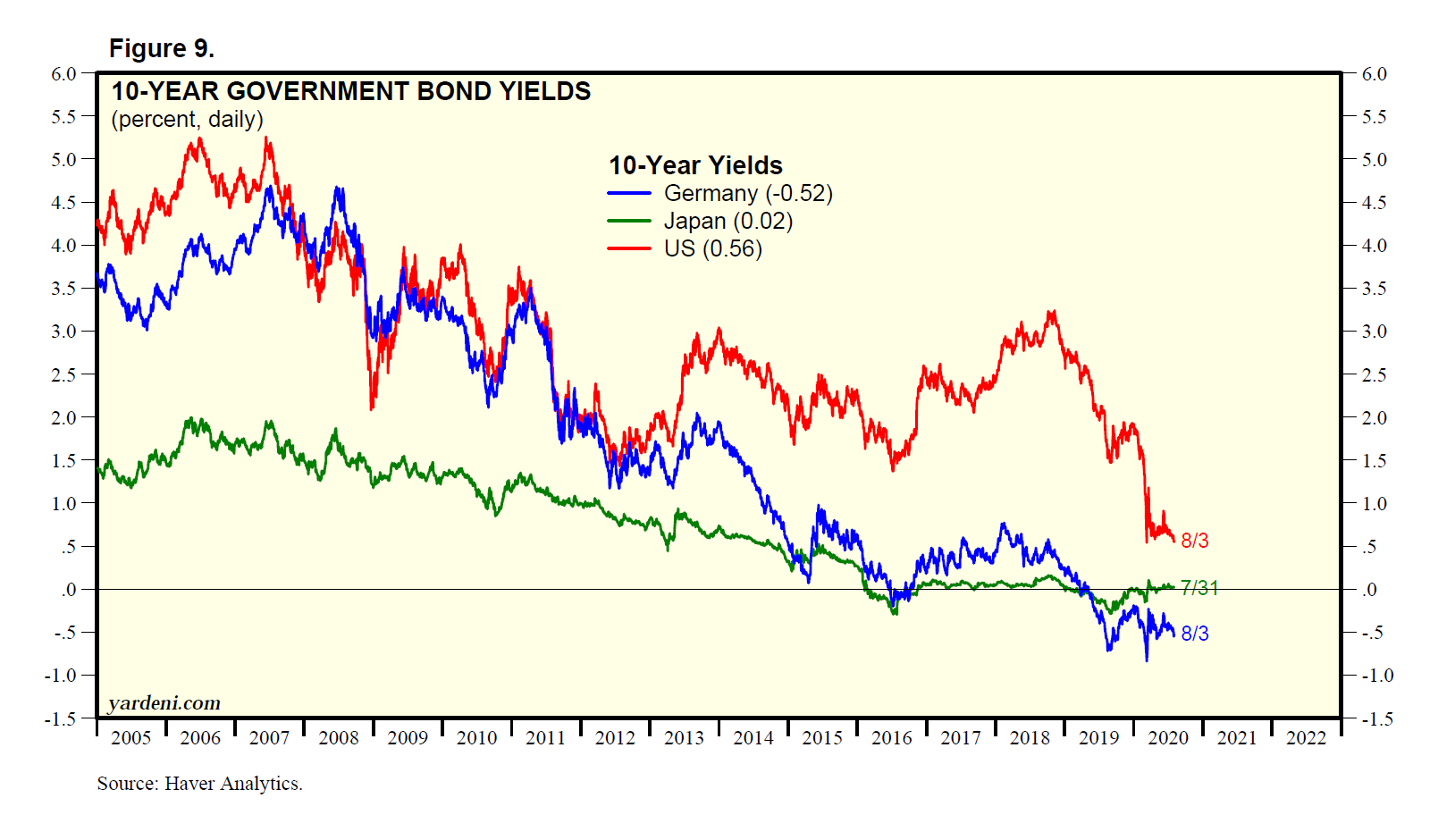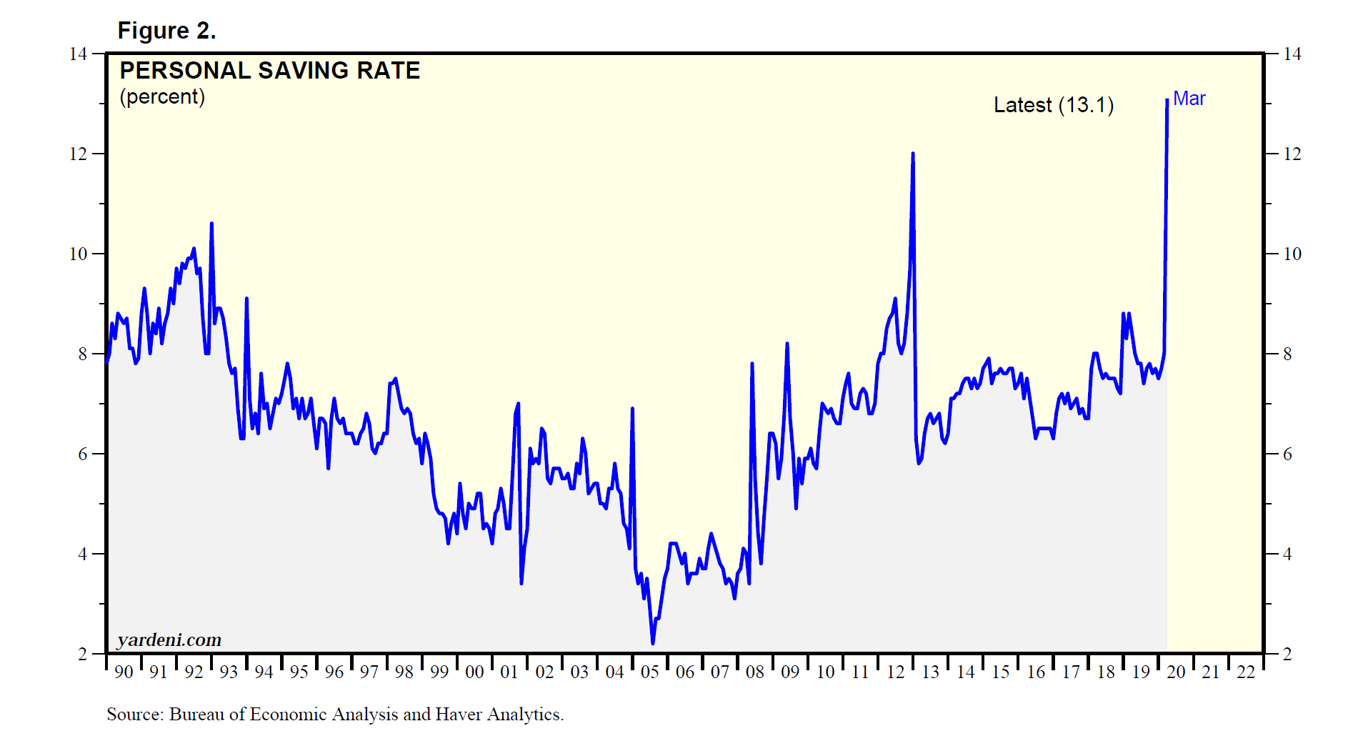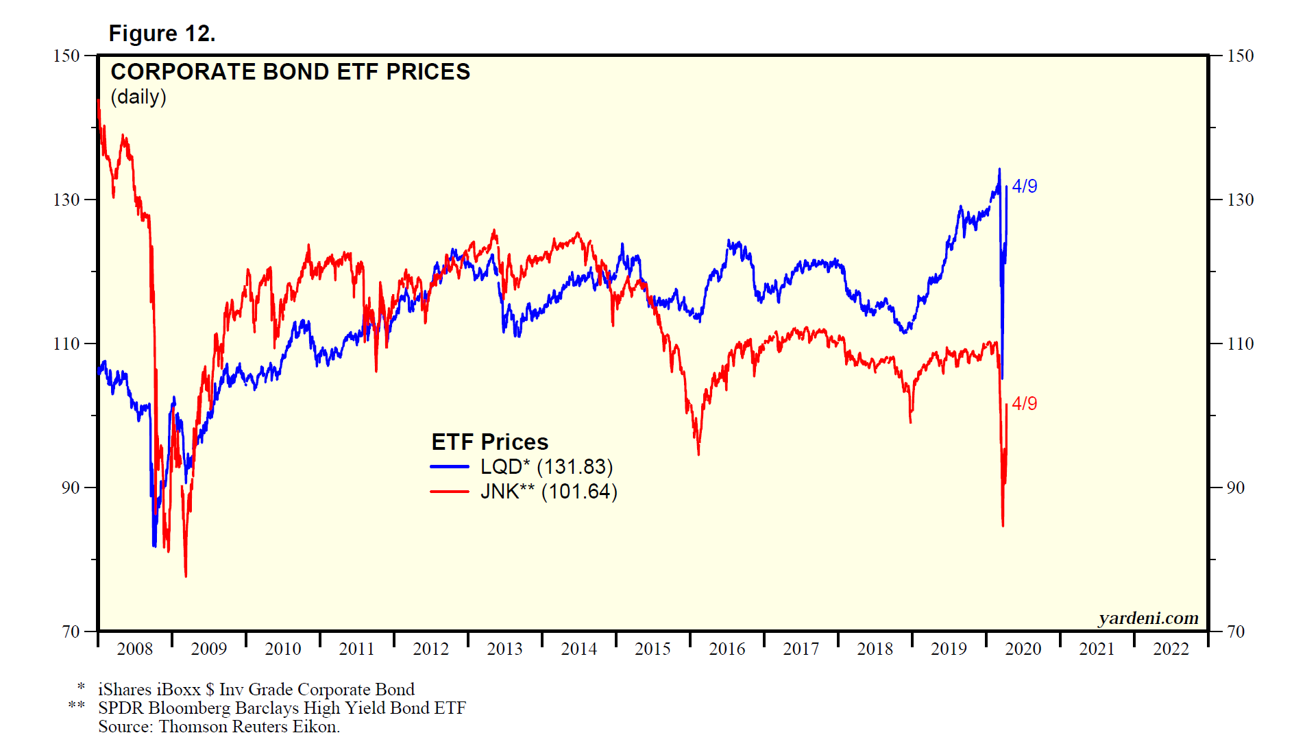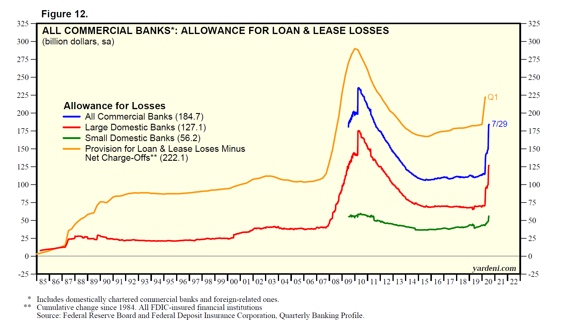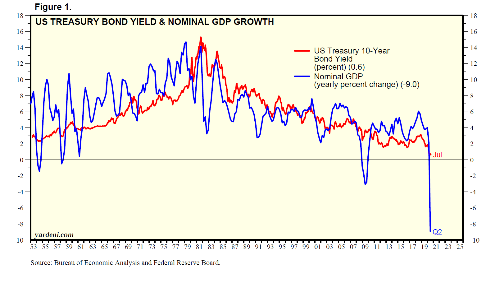 Nonfinancial corporate business debt jumped during Q1 as many companies cashed in their bank lines of credit during March, fearing a credit crunch. When the Fed dramatically eased credit conditions later that month, they scrambled to issue bonds, both to raise cash and to refinance debt at record-low interest rates. Here are some specific figures: