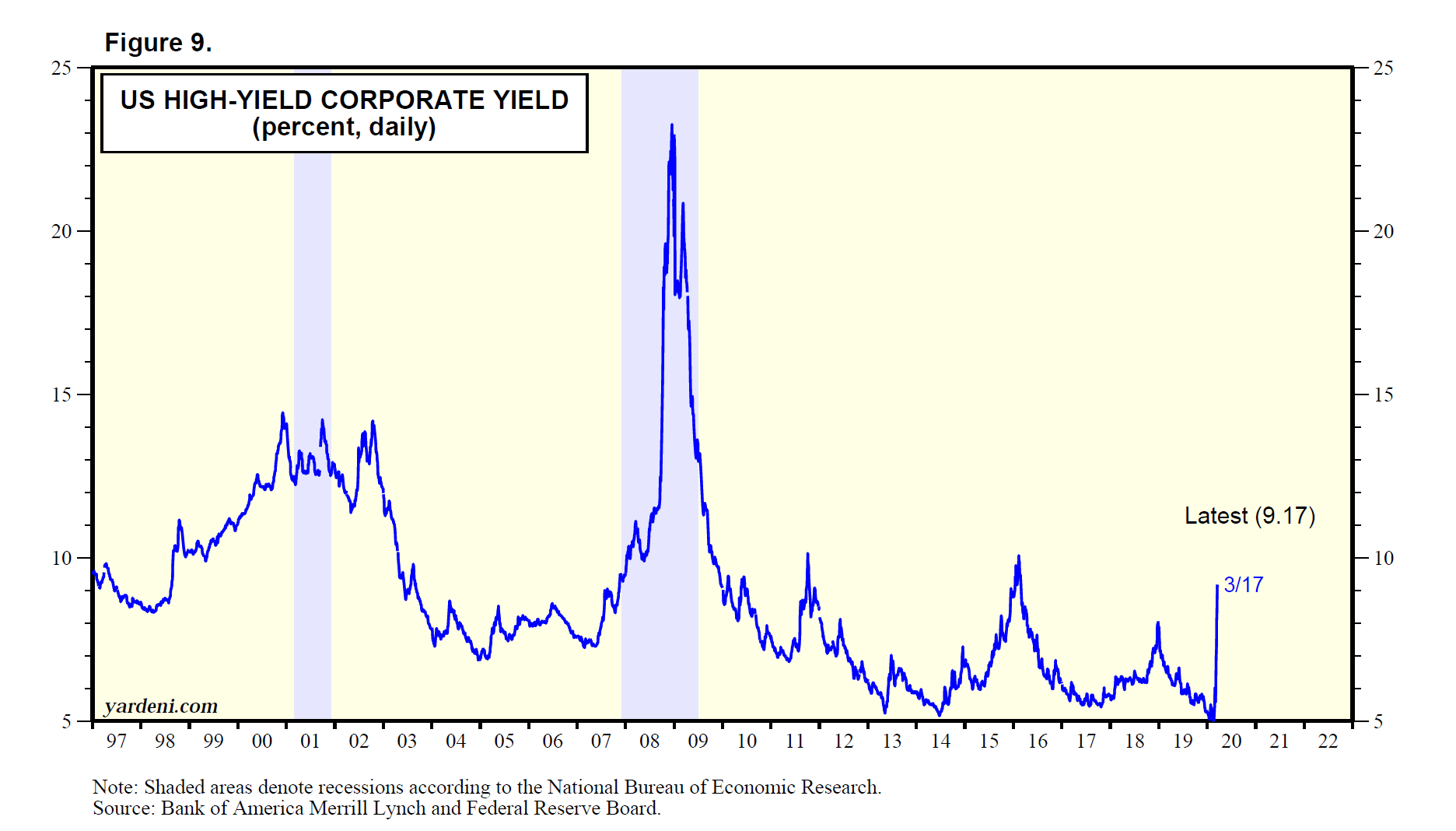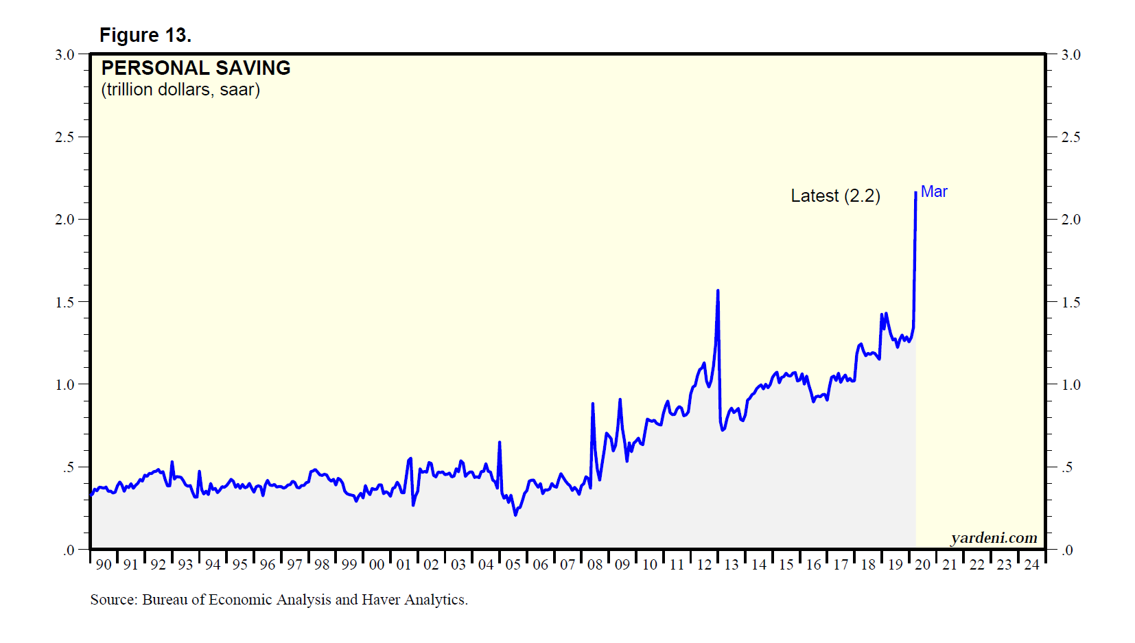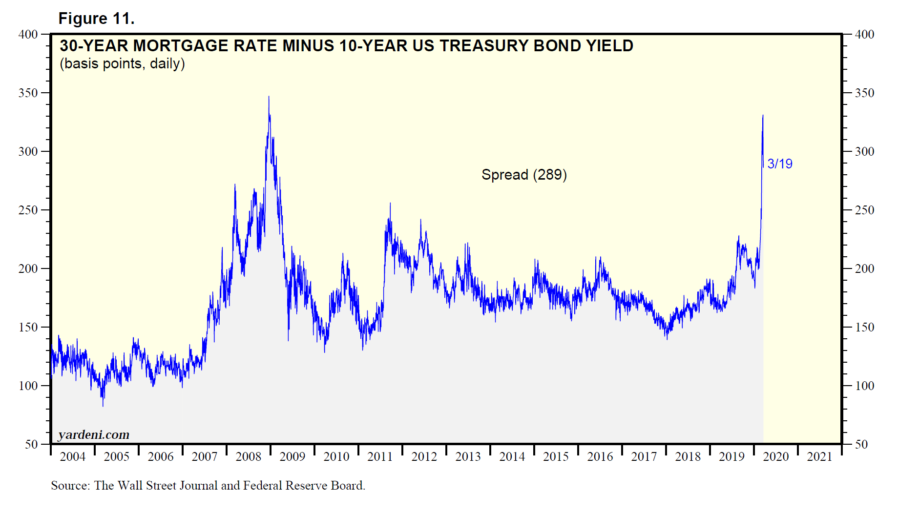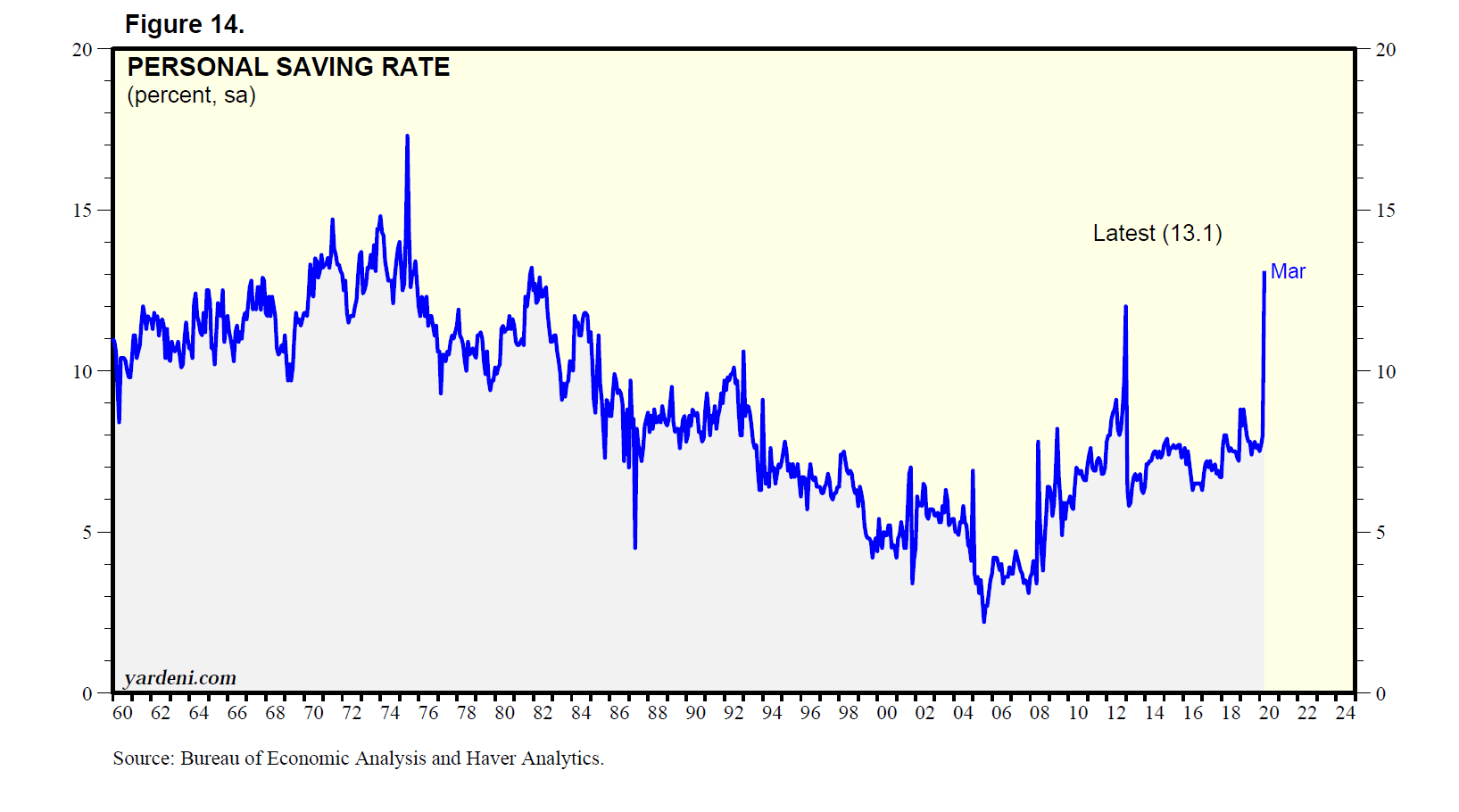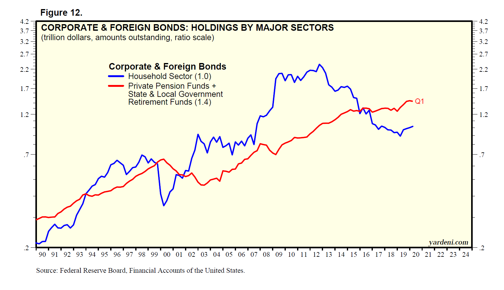 Nonfinancial corporate business debt jumped during Q1 as many companies cashed in their bank lines of credit during March, fearing a credit crunch. When the Fed dramatically eased credit conditions later that month, they scrambled to issue bonds, both to raise cash and to refinance debt at record-low interest rates. Here are some specific figures: