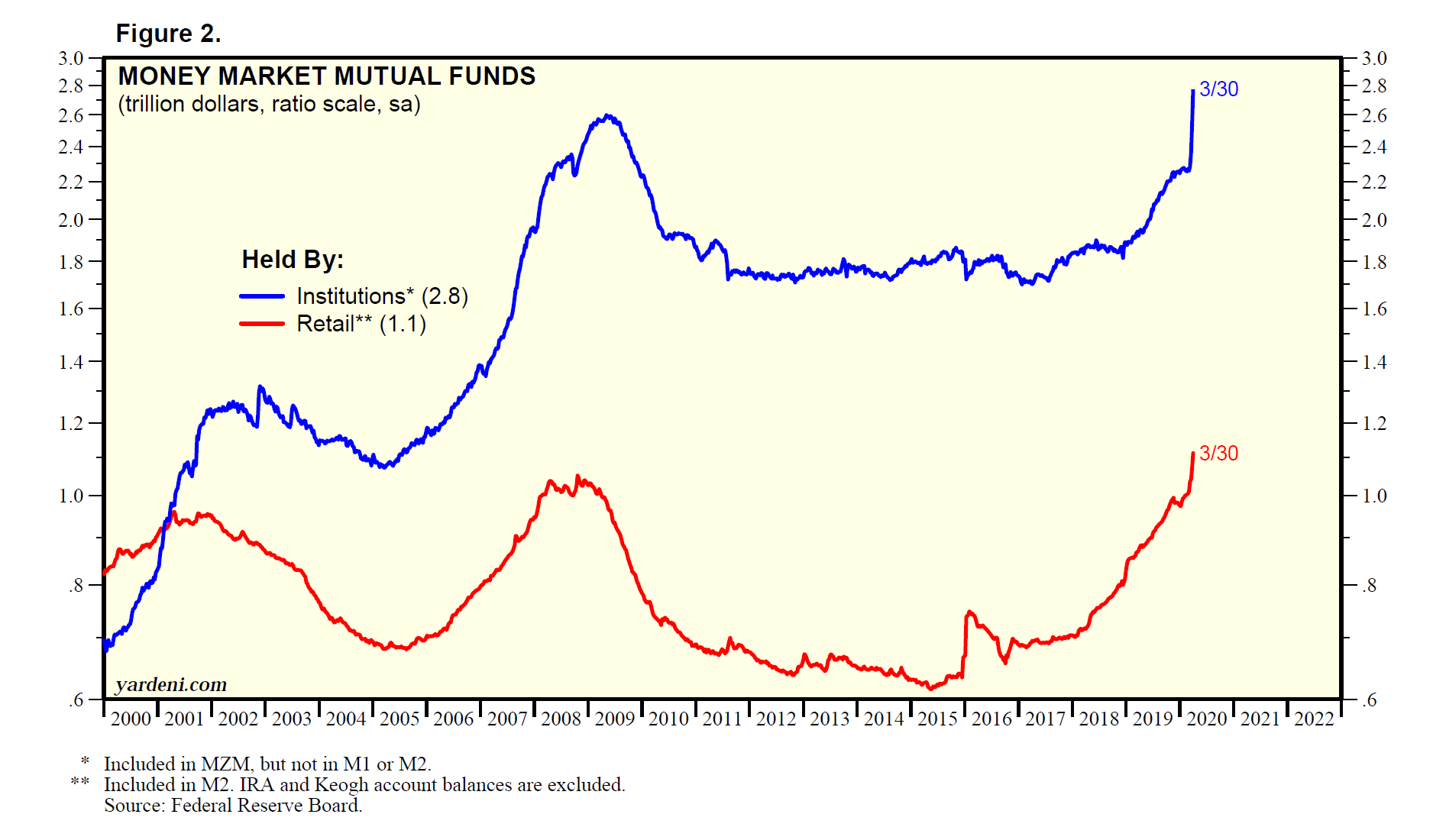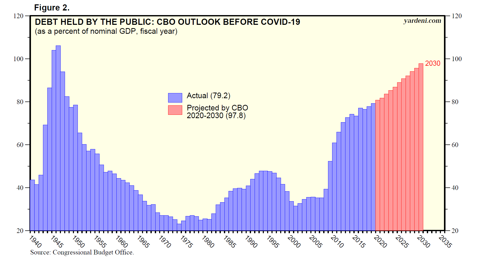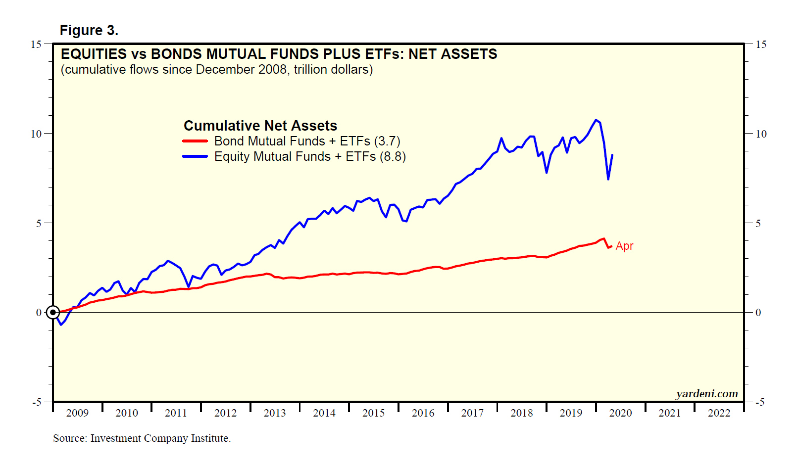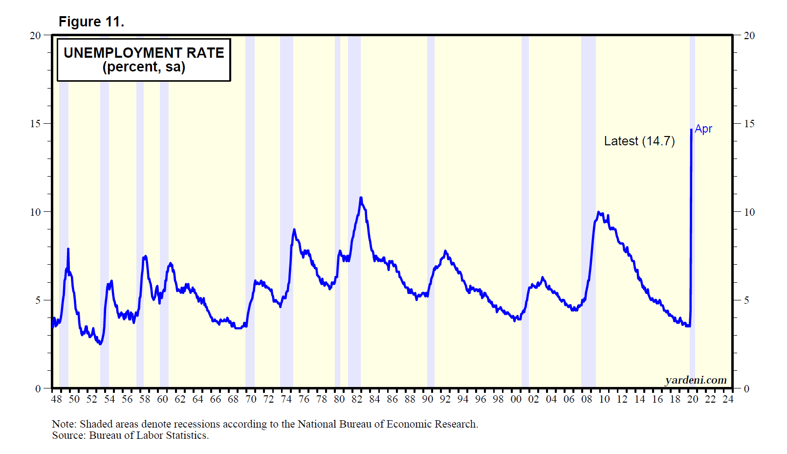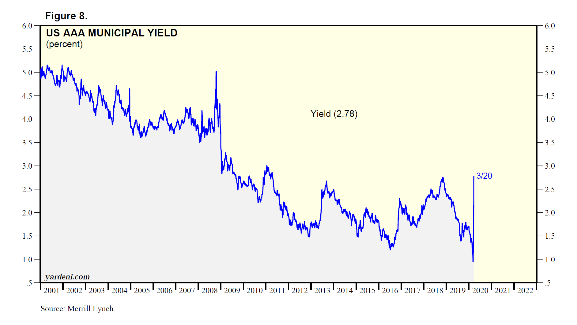 Nonfinancial corporate business debt jumped during Q1 as many companies cashed in their bank lines of credit during March, fearing a credit crunch. When the Fed dramatically eased credit conditions later that month, they scrambled to issue bonds, both to raise cash and to refinance debt at record-low interest rates. Here are some specific figures: