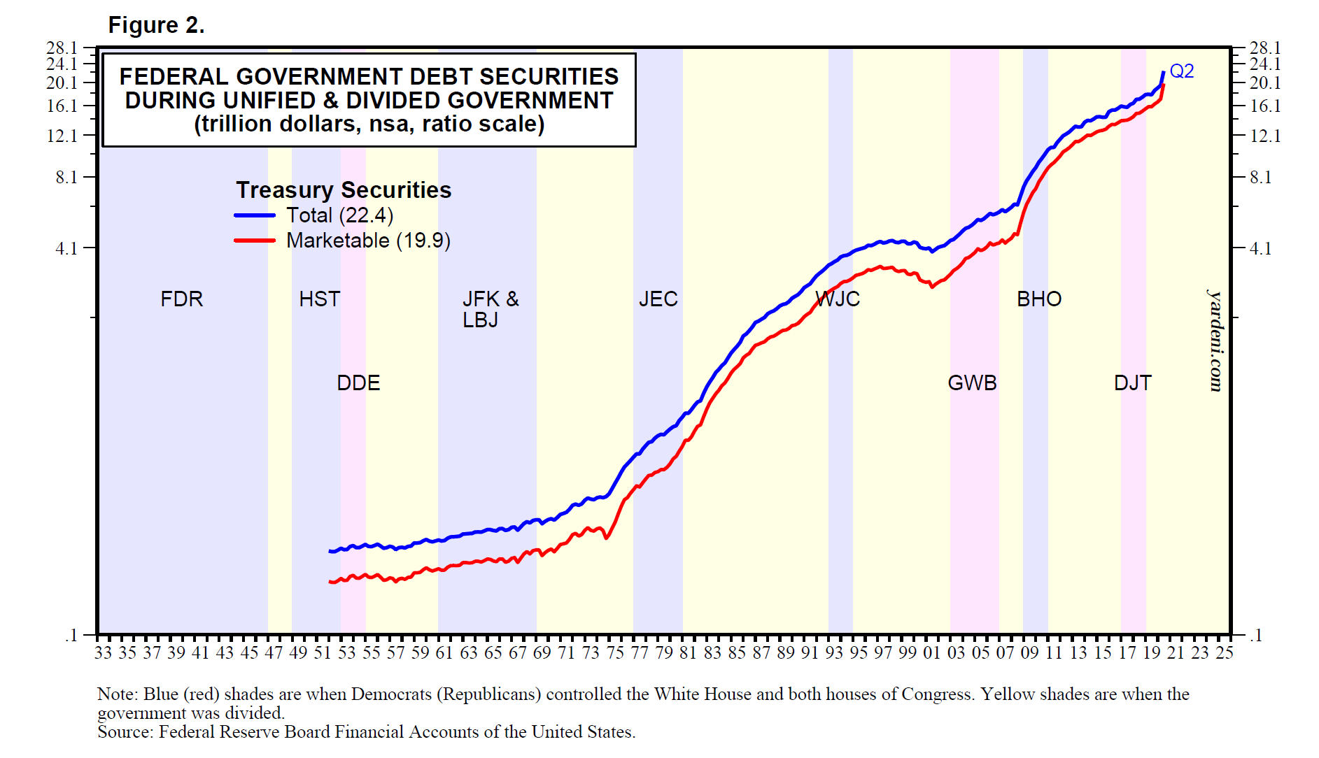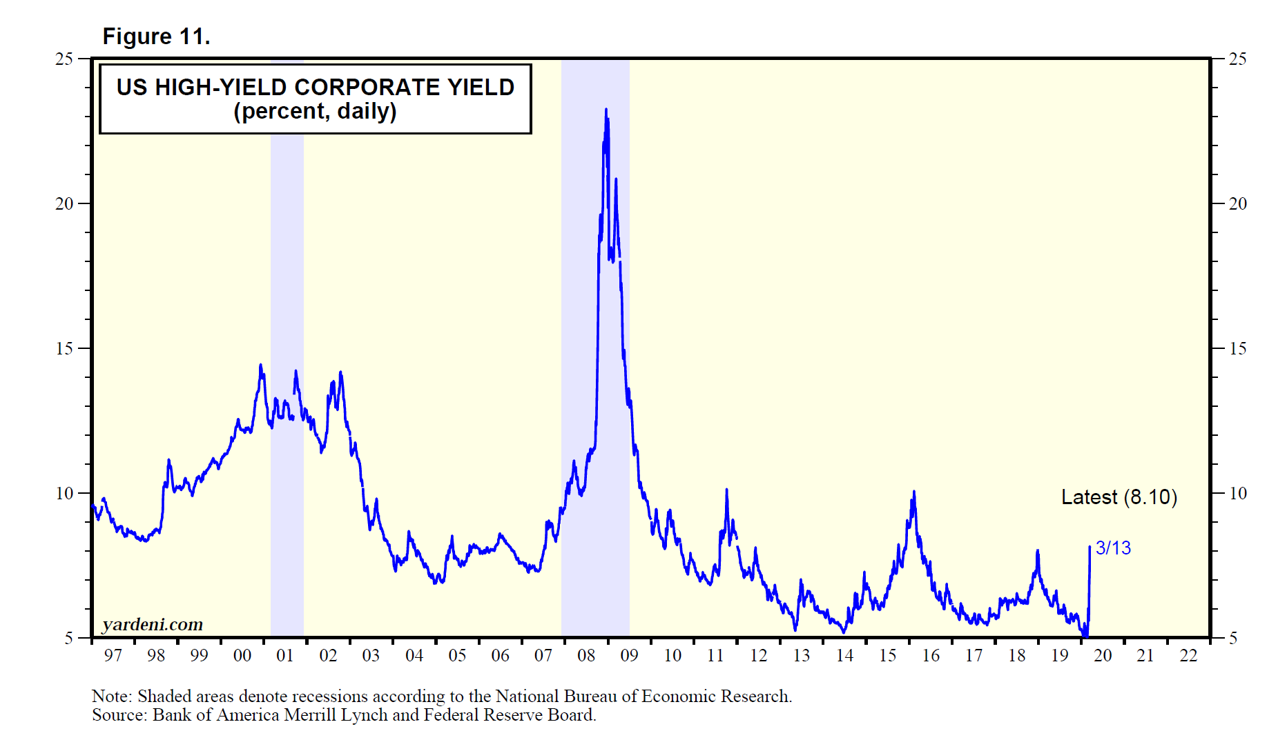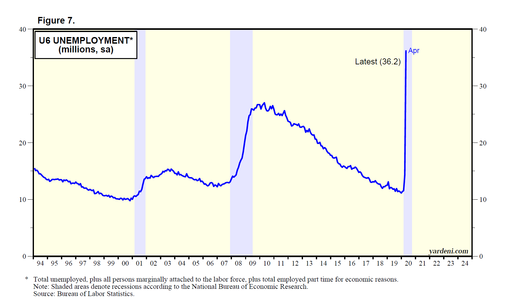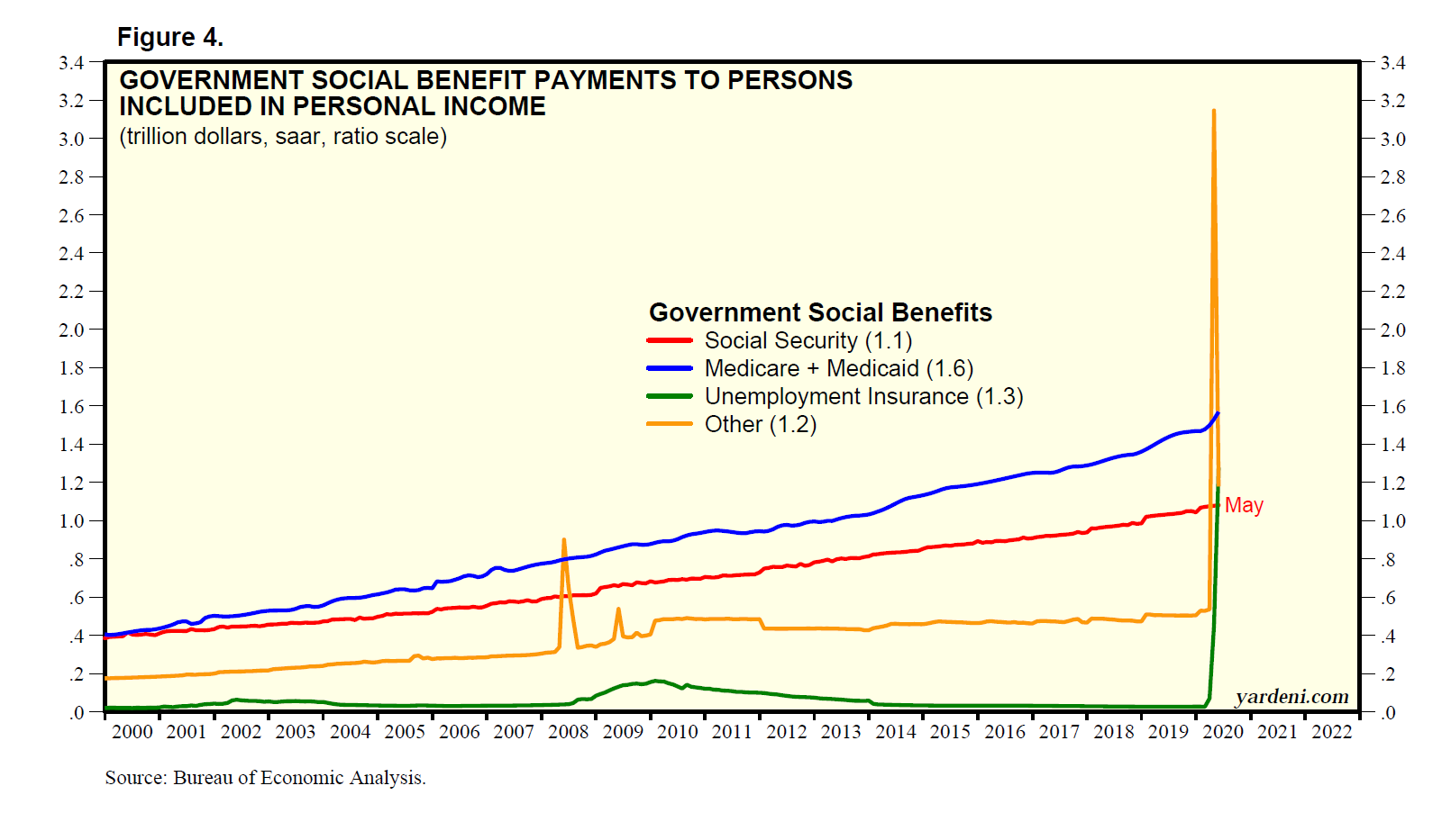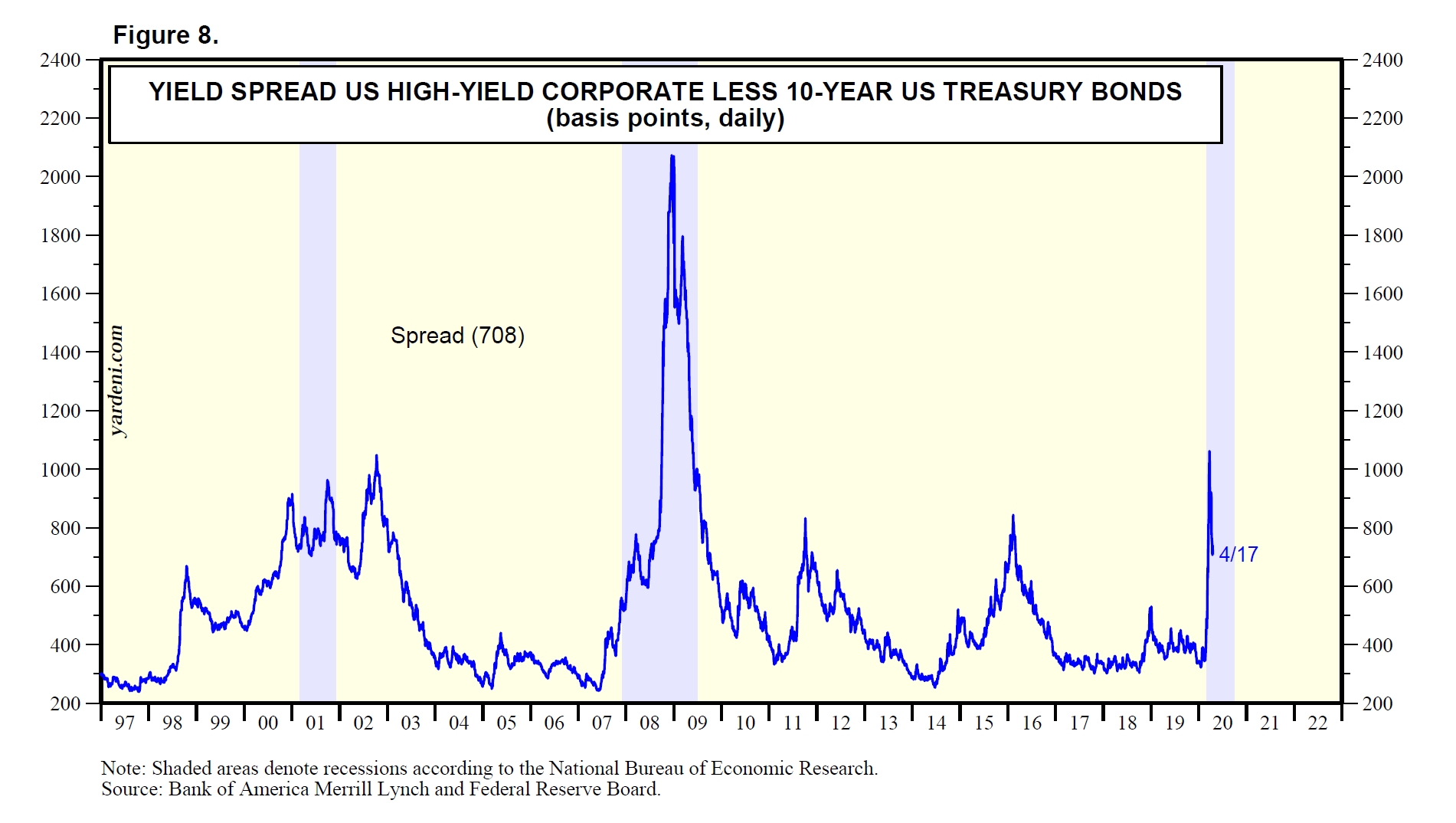Nonfinancial corporate business debt jumped during Q1 as many companies cashed in their bank lines of credit during March, fearing a credit crunch. When the Fed dramatically eased credit conditions later that month, they scrambled to issue bonds, both to raise cash and to refinance debt at record-low interest rates. Here are some specific figures: