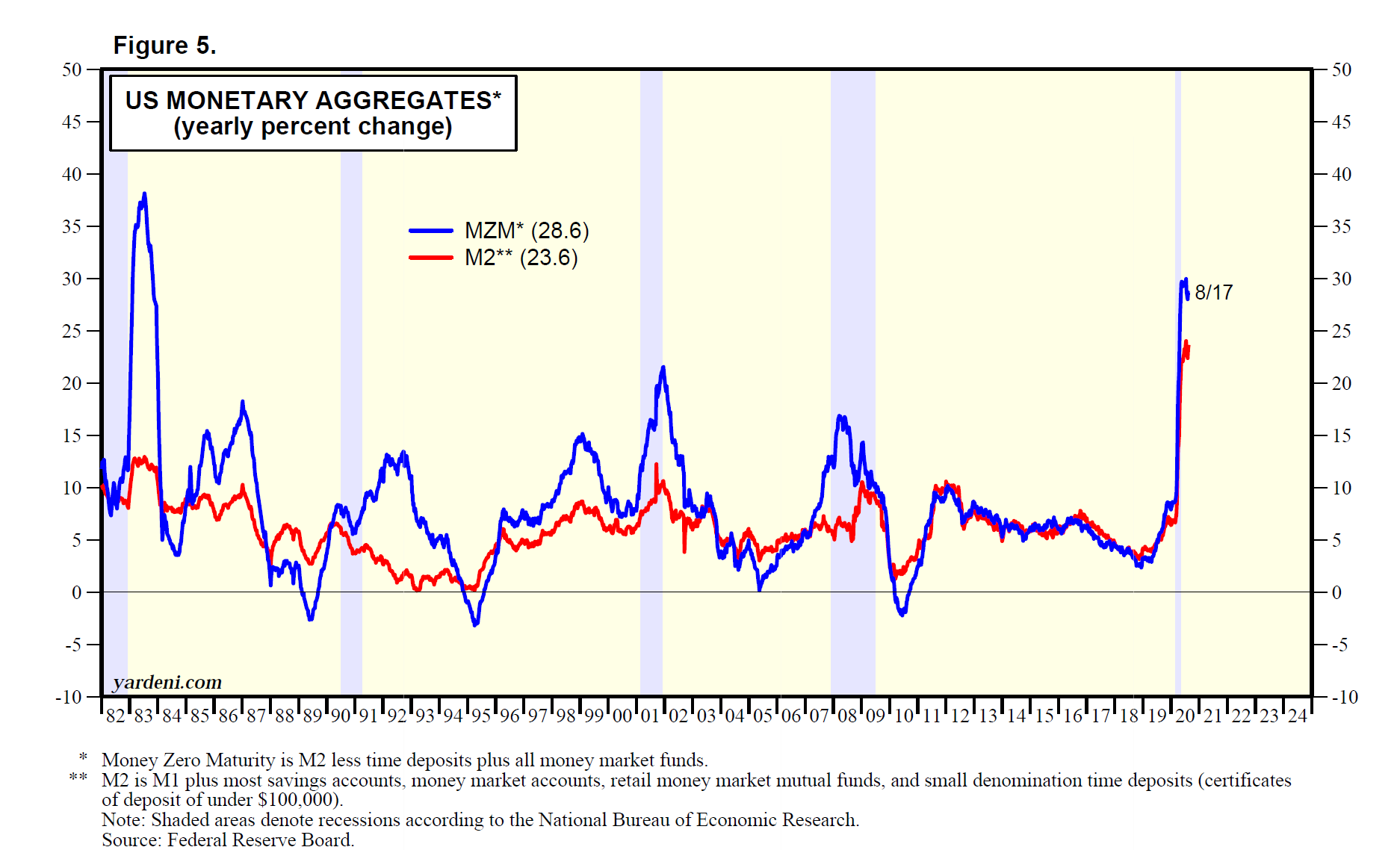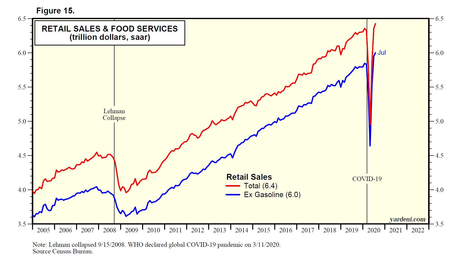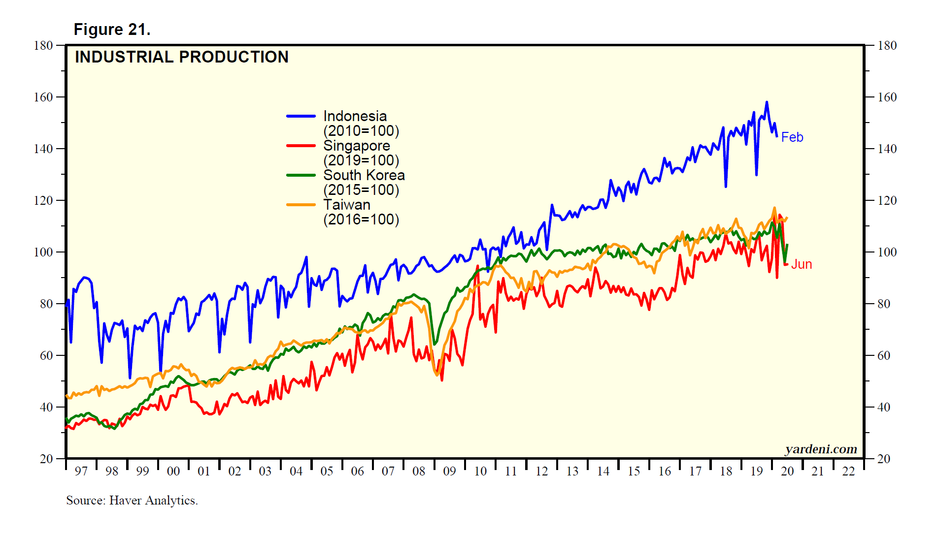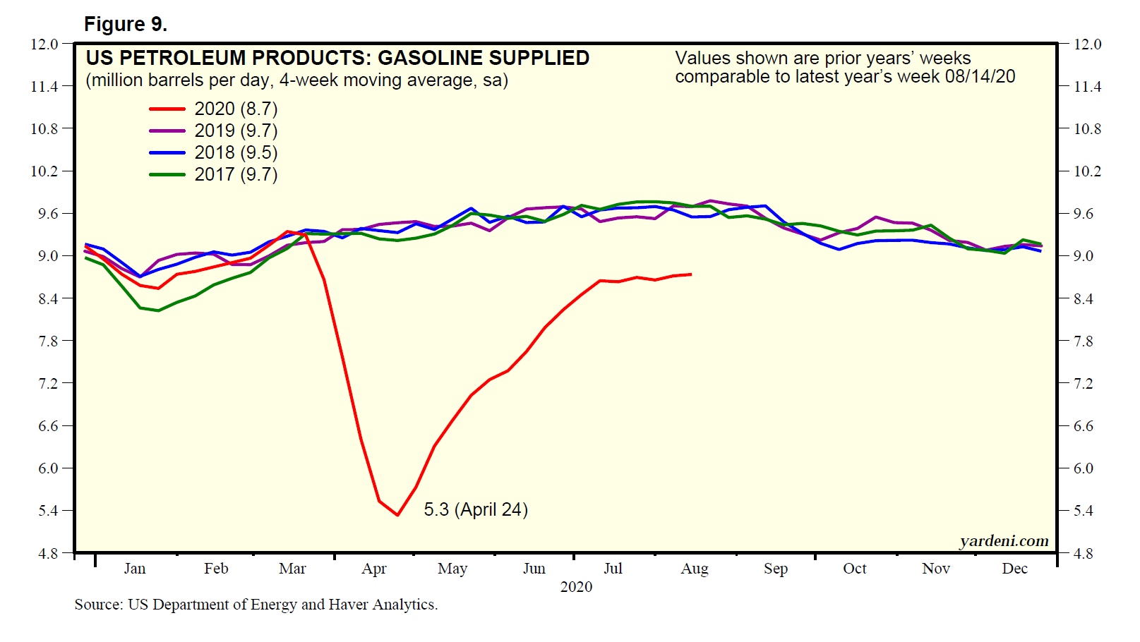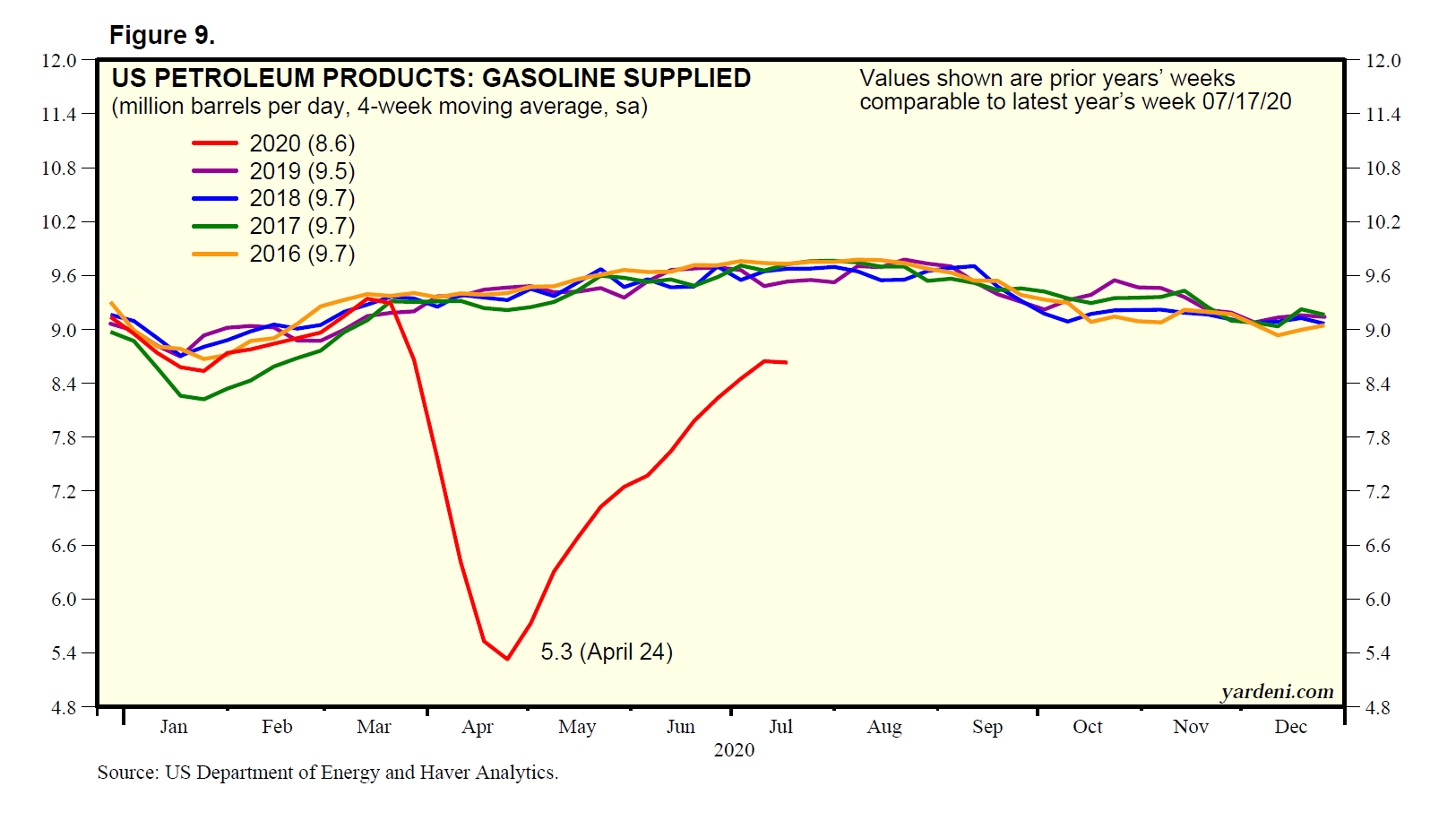 What about stock buybacks? They dropped sharply during Q2-2020 to the slowest pace since Q1-2012 (Fig. 22). In our Topical Study dated May 20, 2019 and titled “Stock Buybacks: The True Story,” Joe and I concluded: