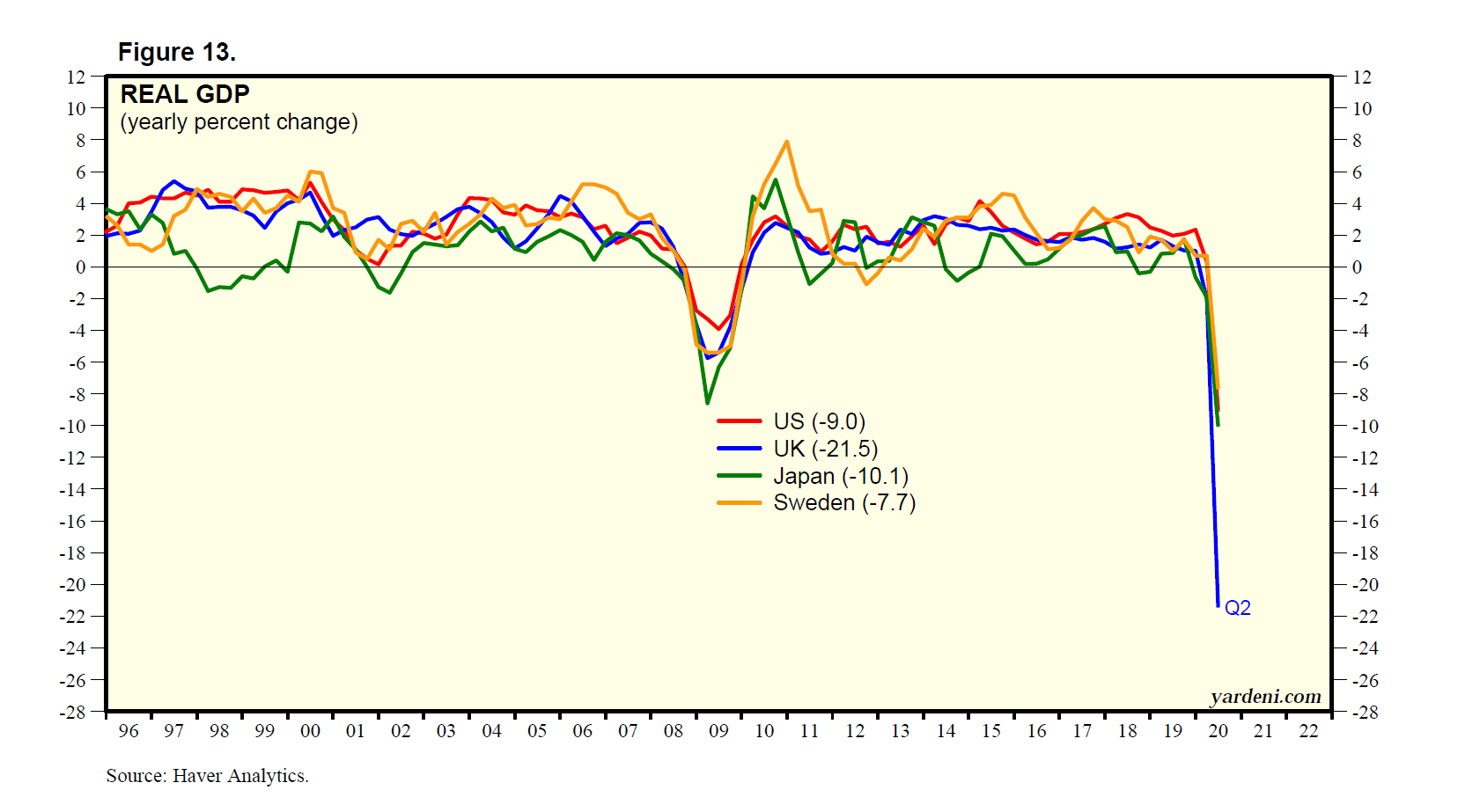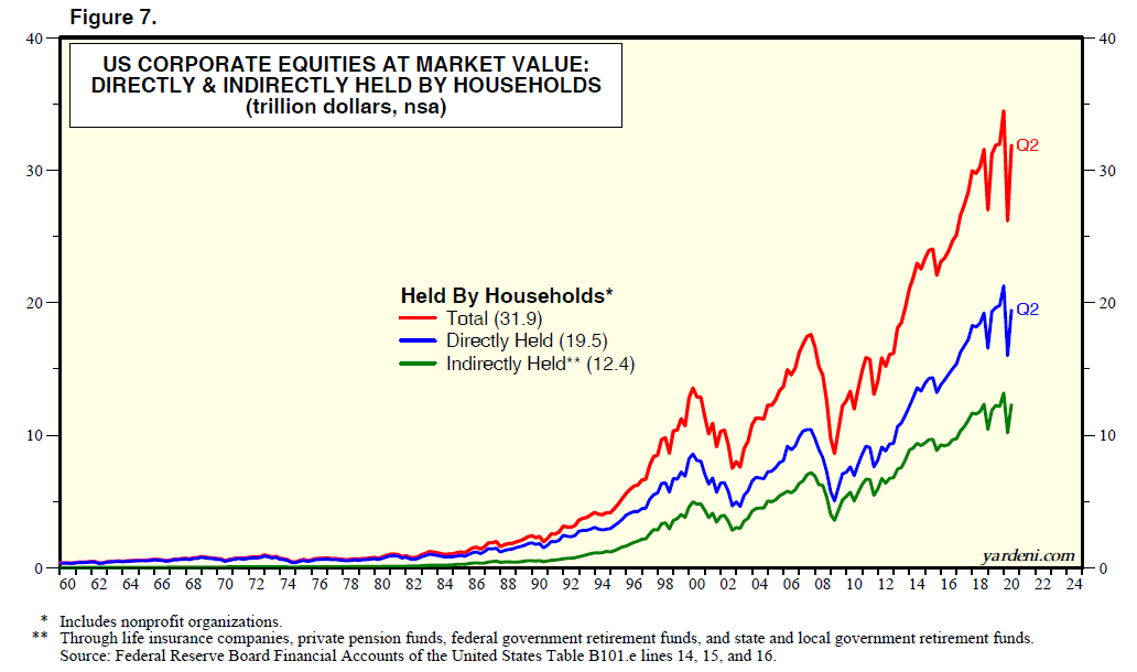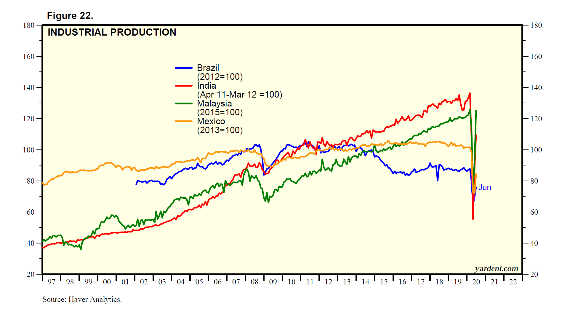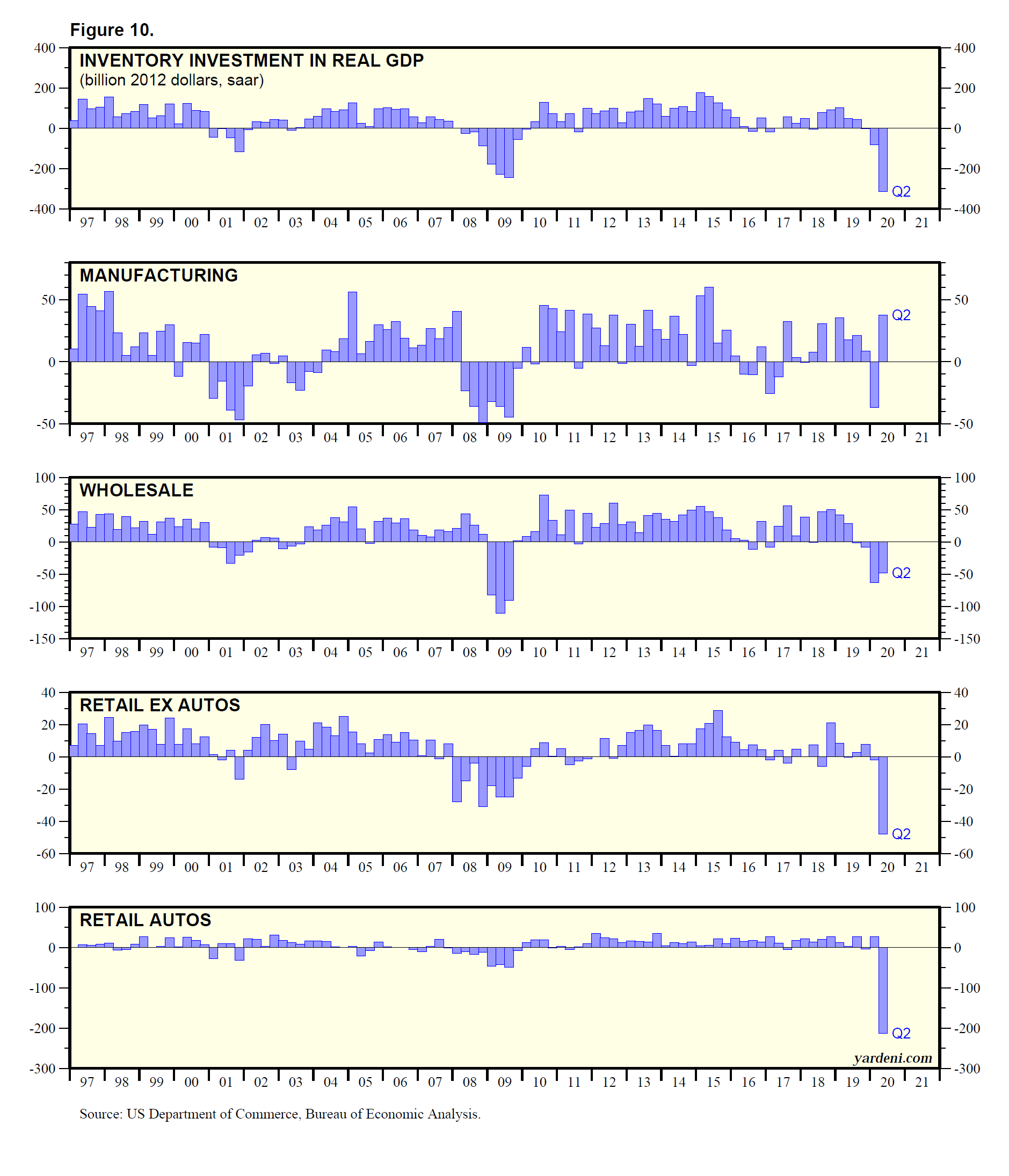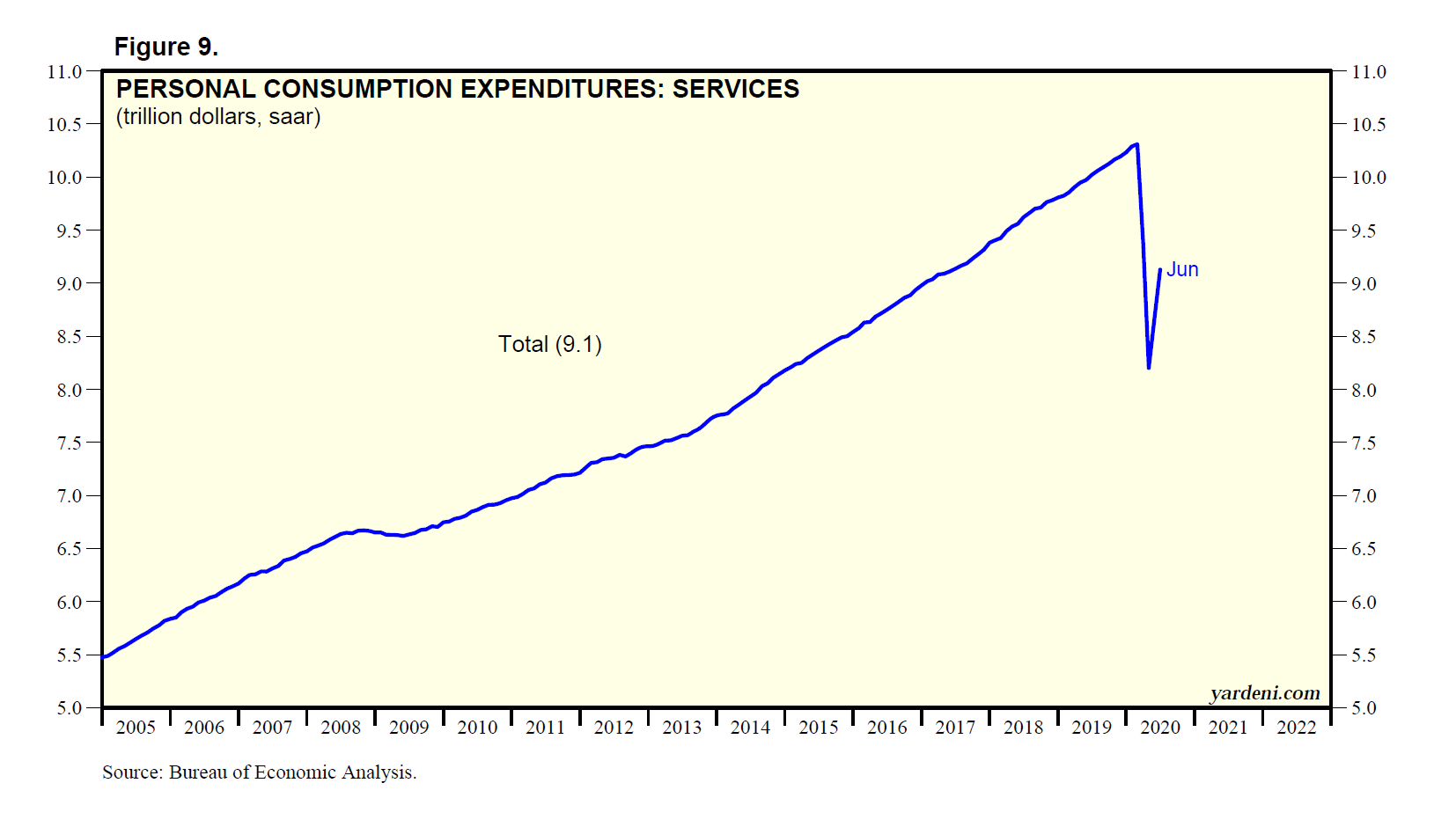 What about stock buybacks? They dropped sharply during Q2-2020 to the slowest pace since Q1-2012 (Fig. 22). In our Topical Study dated May 20, 2019 and titled “Stock Buybacks: The True Story,” Joe and I concluded: