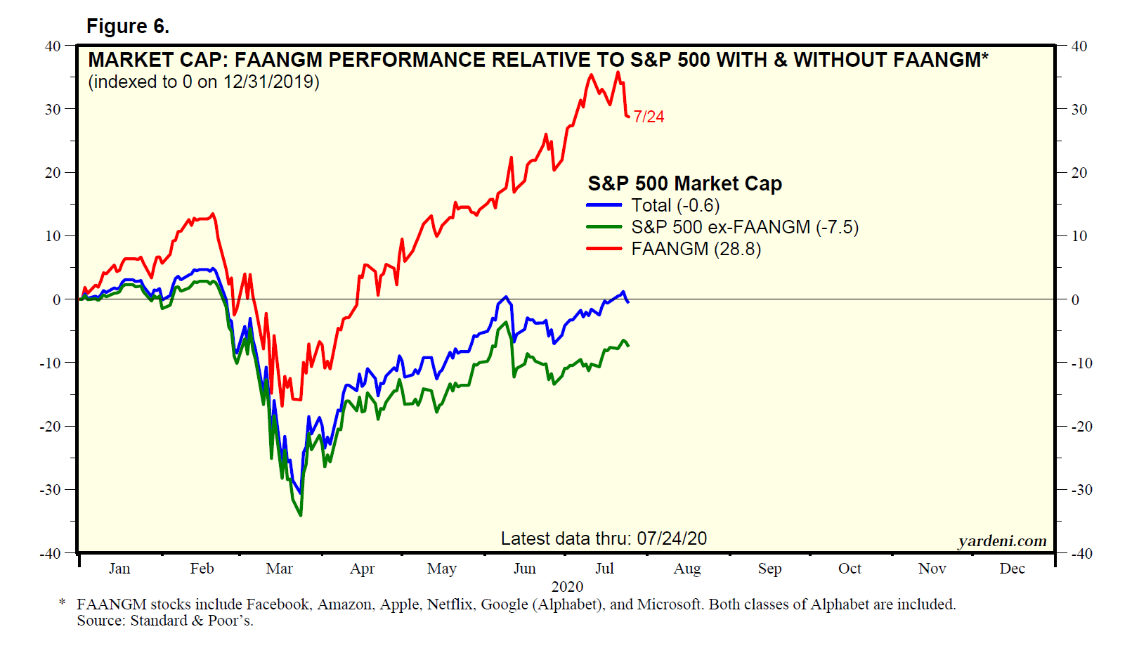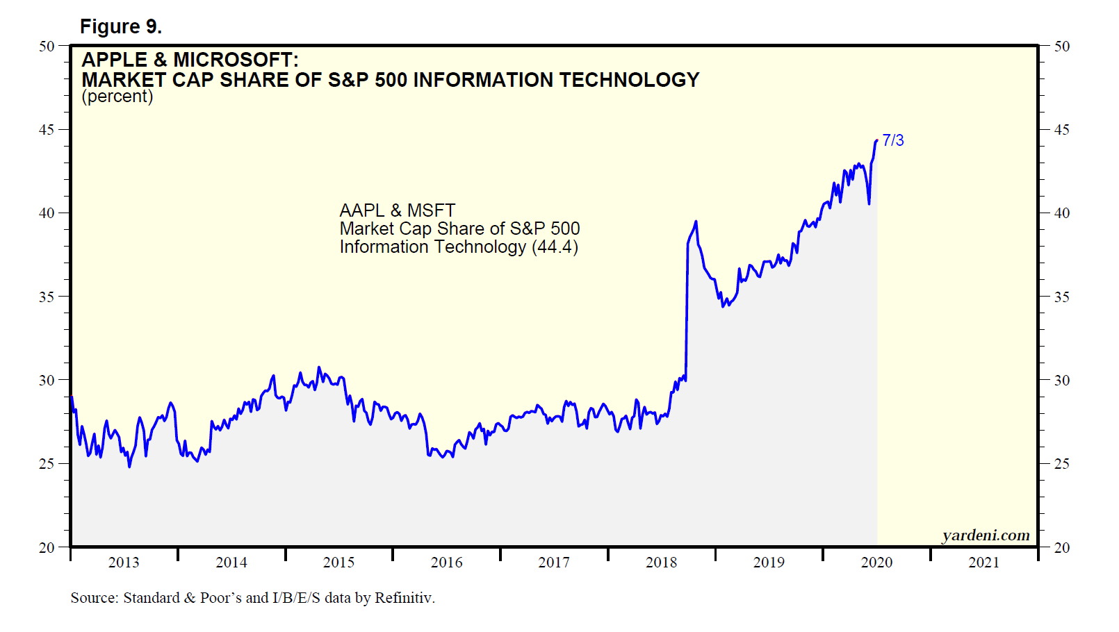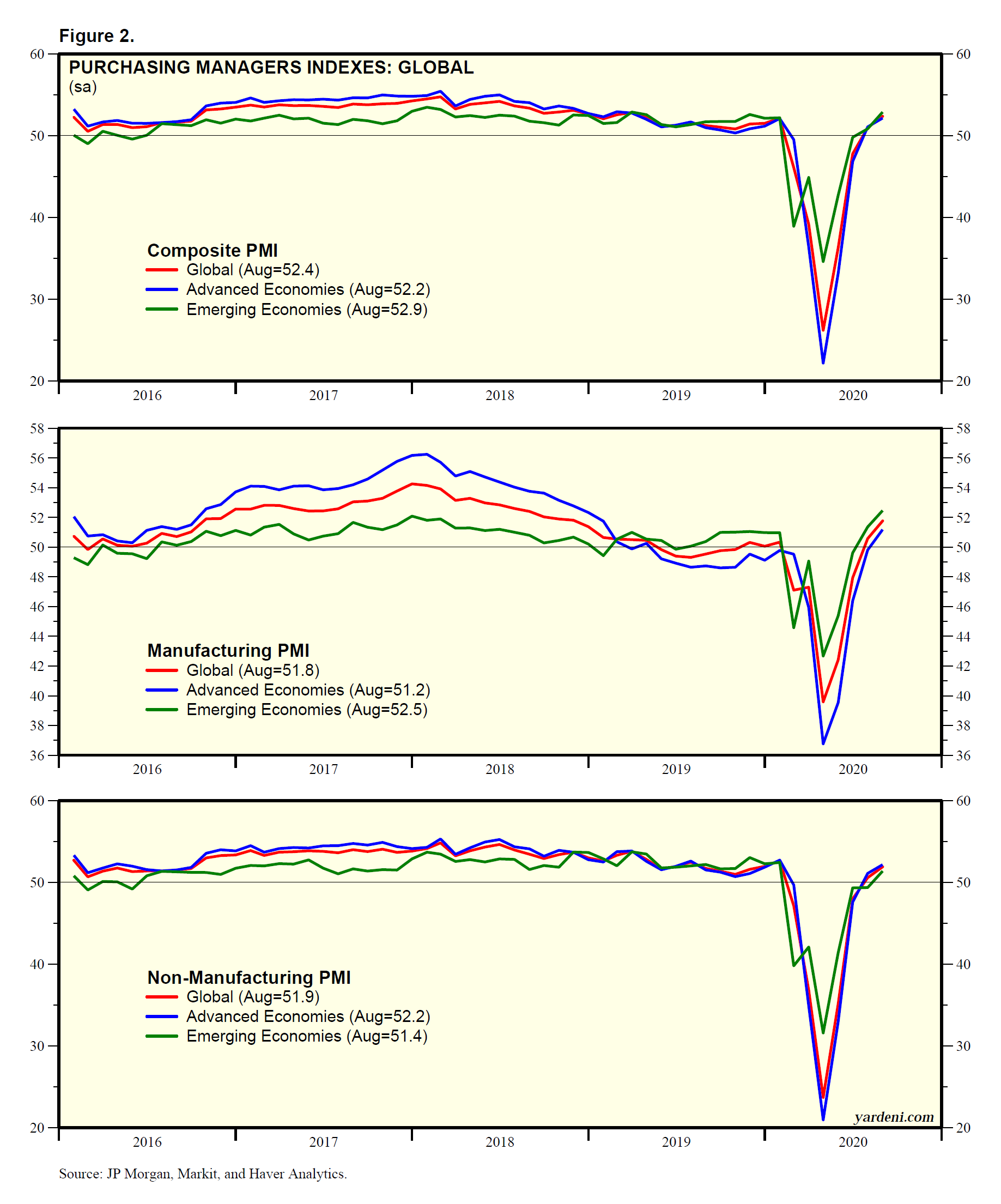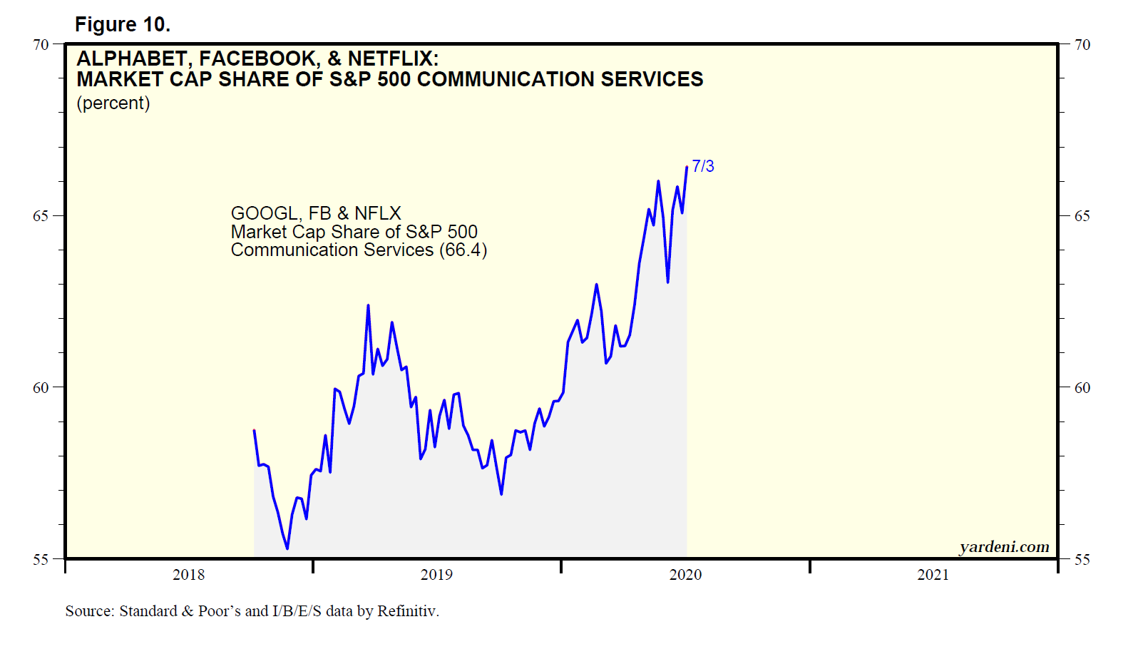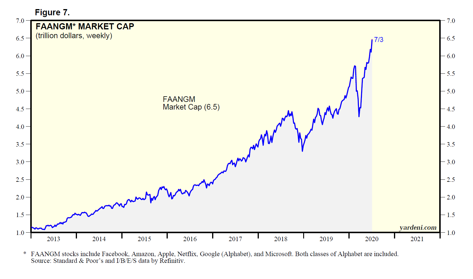 We will become more concerned about the latter scenarios if the market continues to go straight up and investors “party like it’s 1999” all over again, to quote the singer Prince. Following the LTCM crisis, the S&P 500 and the Nasdaq soared 59.6% and 236.7% from the end of August 1998 through March 2000. So far, since the pandemic low on March 23, they are up 63.7% and 80.4% through Friday’s close (Fig. 3).