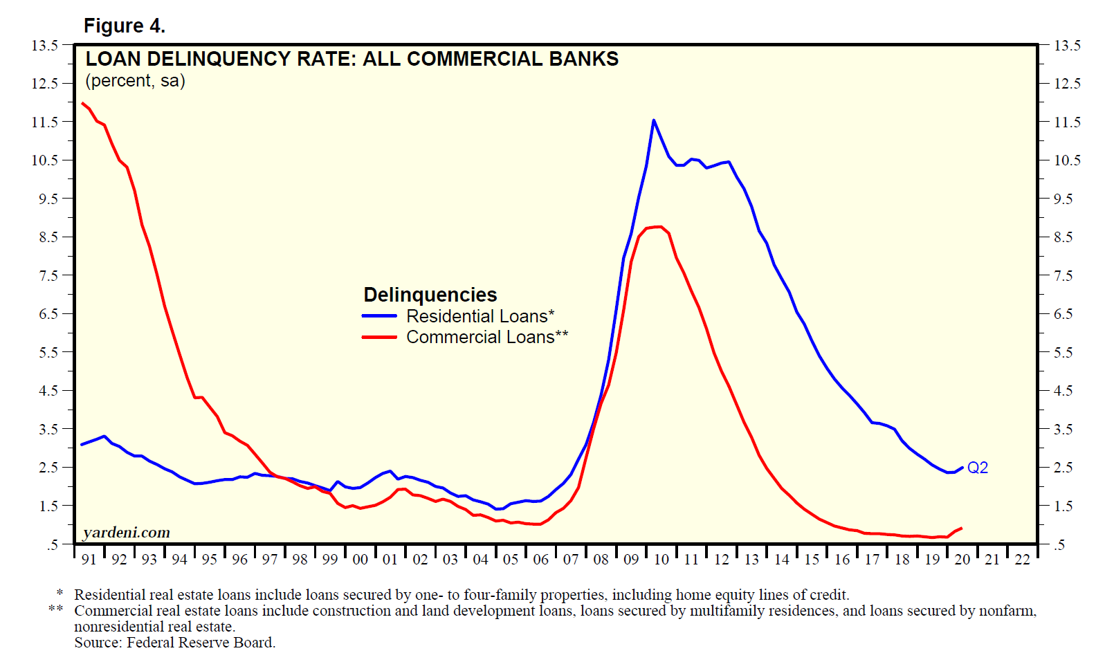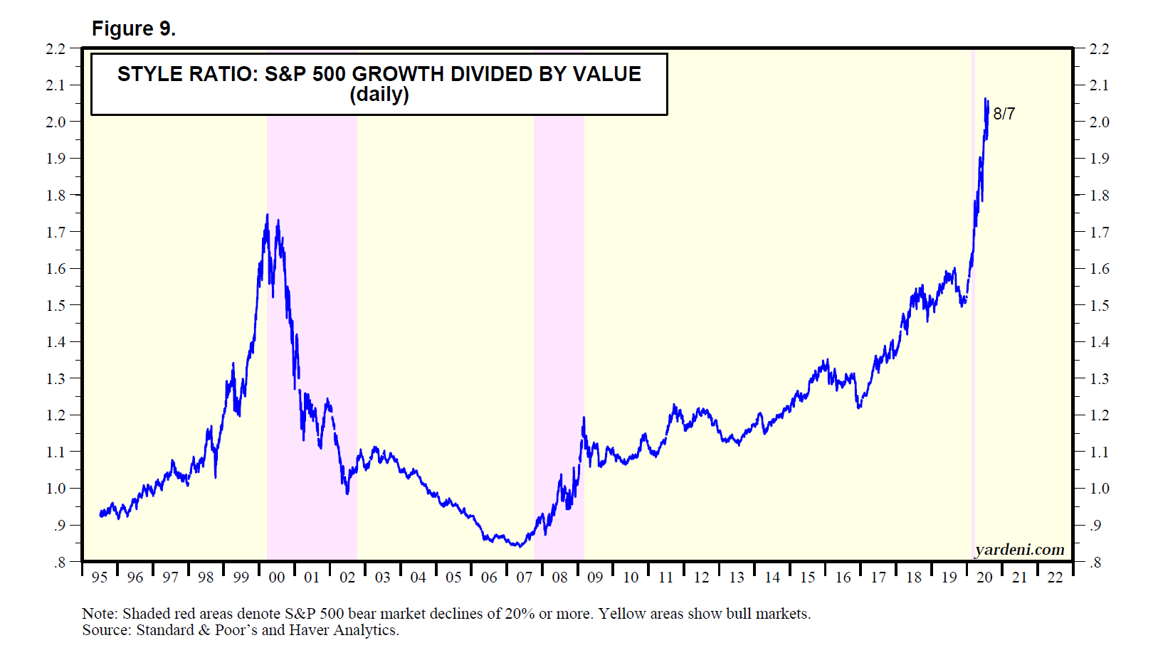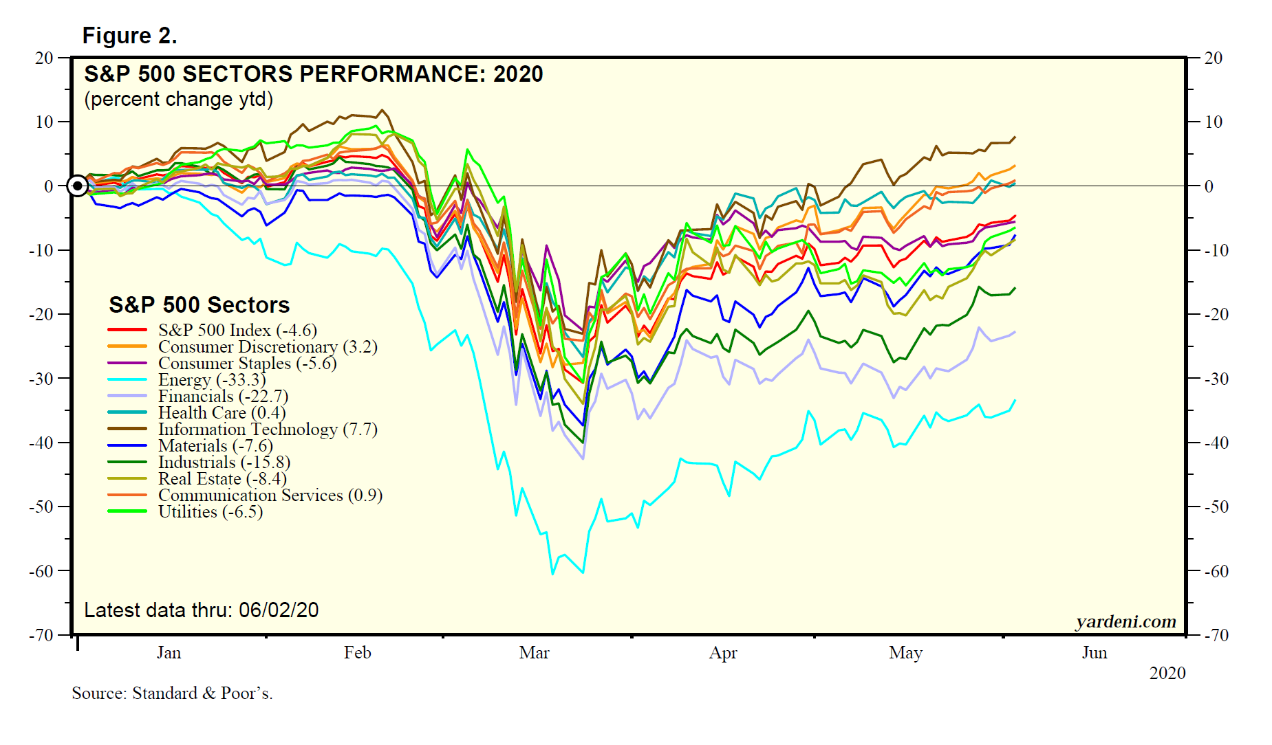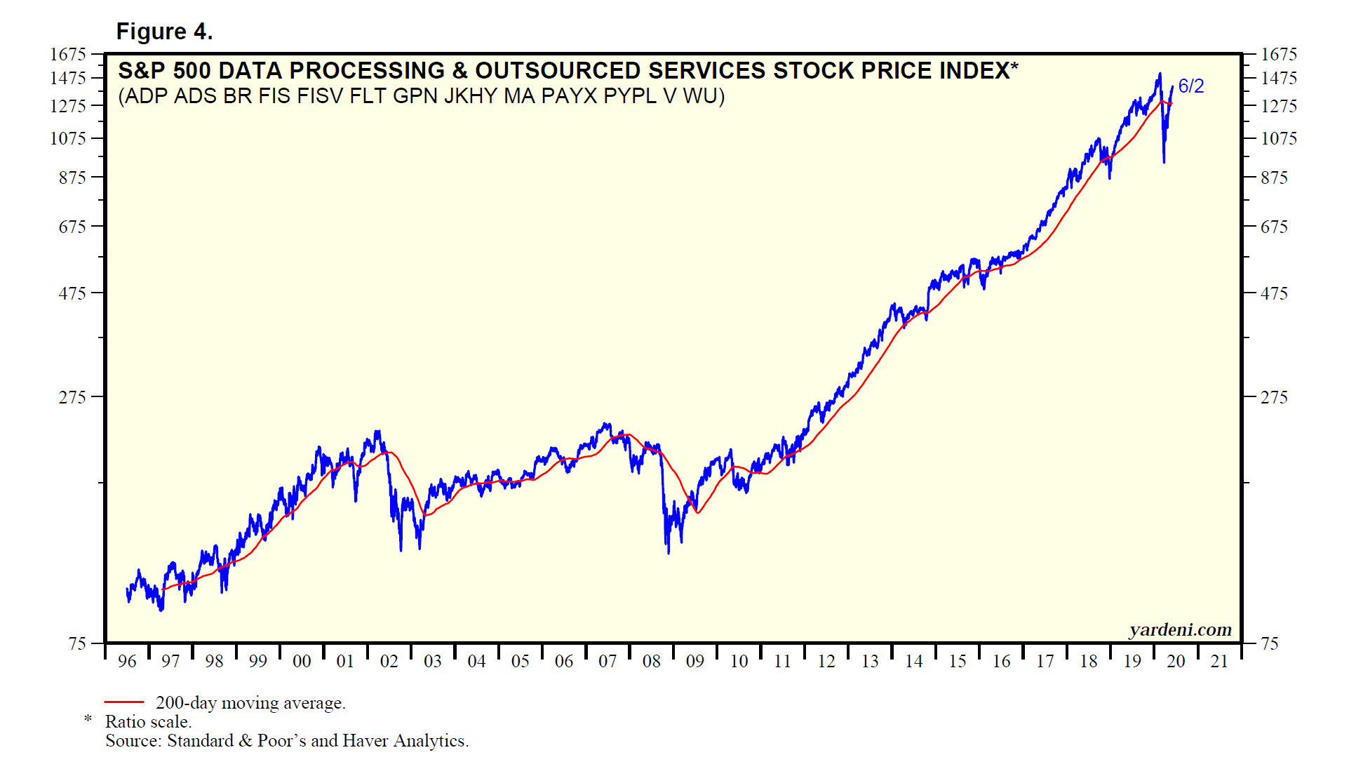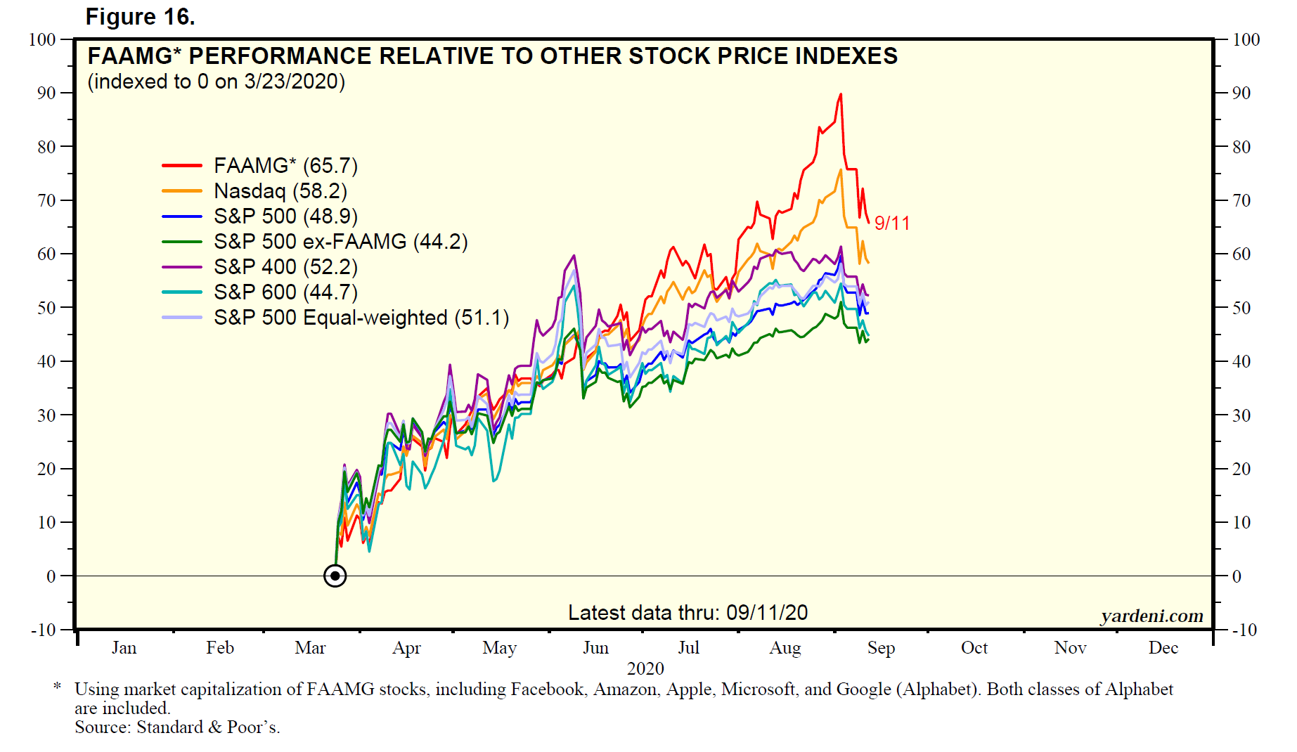 We will become more concerned about the latter scenarios if the market continues to go straight up and investors “party like it’s 1999” all over again, to quote the singer Prince. Following the LTCM crisis, the S&P 500 and the Nasdaq soared 59.6% and 236.7% from the end of August 1998 through March 2000. So far, since the pandemic low on March 23, they are up 63.7% and 80.4% through Friday’s close (Fig. 3).