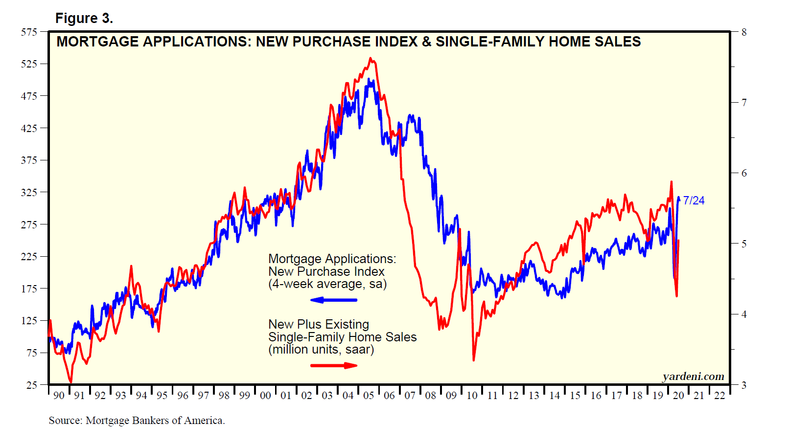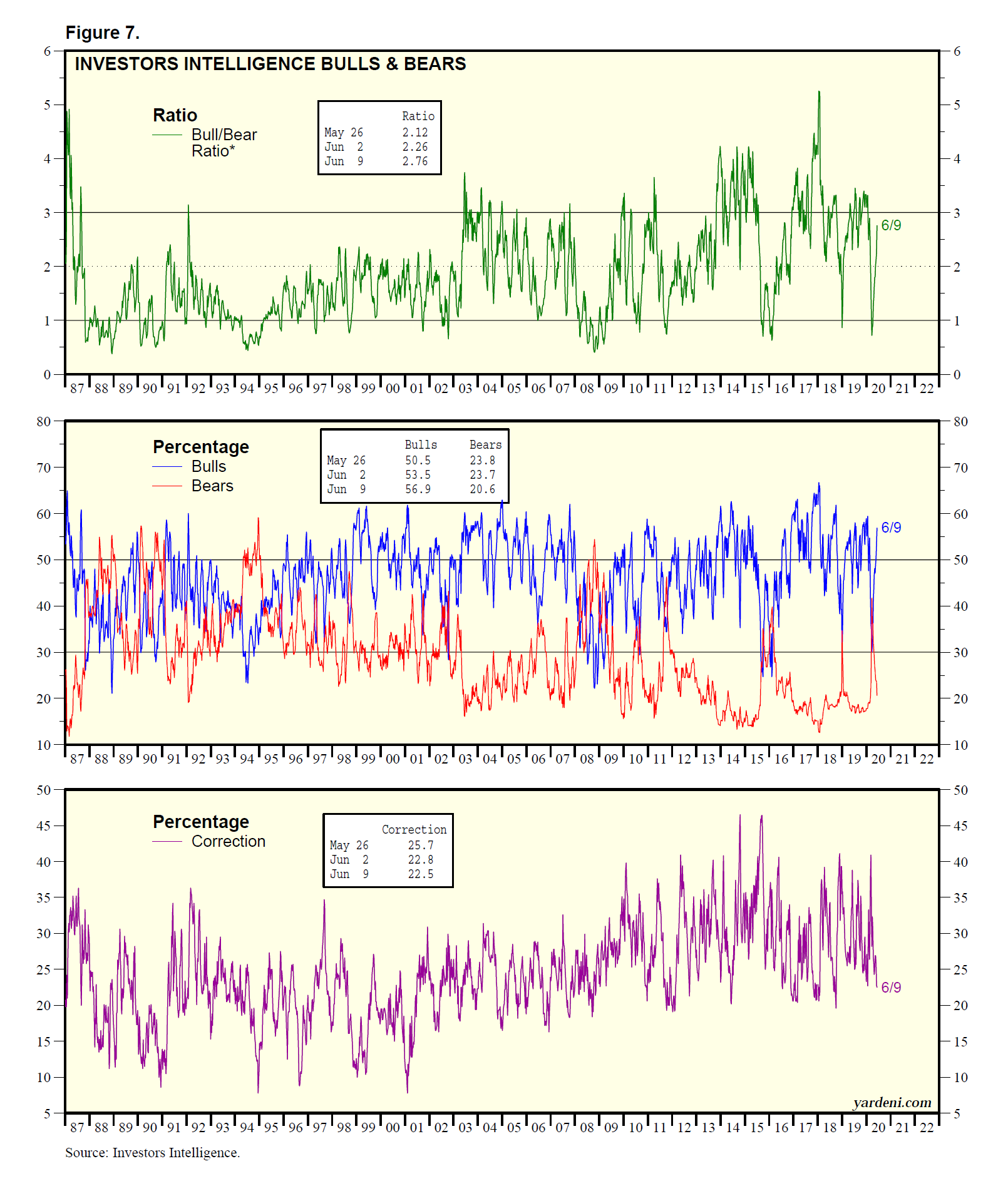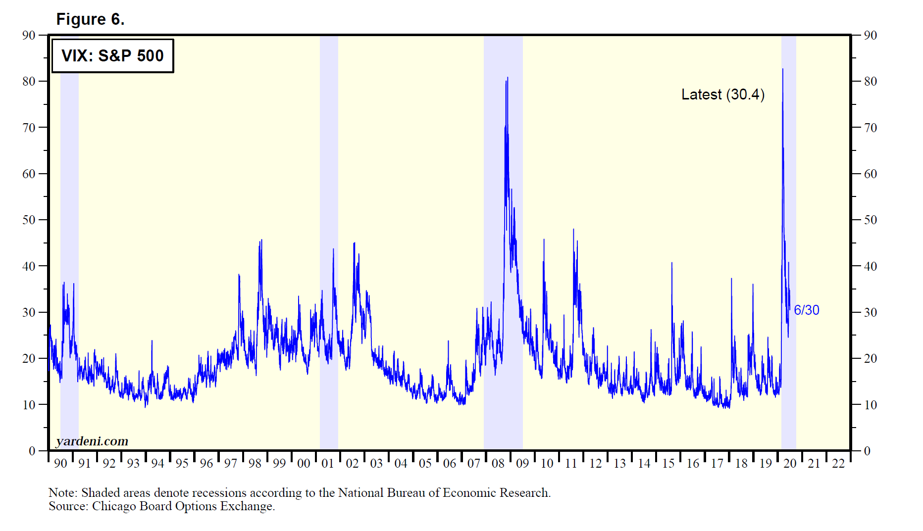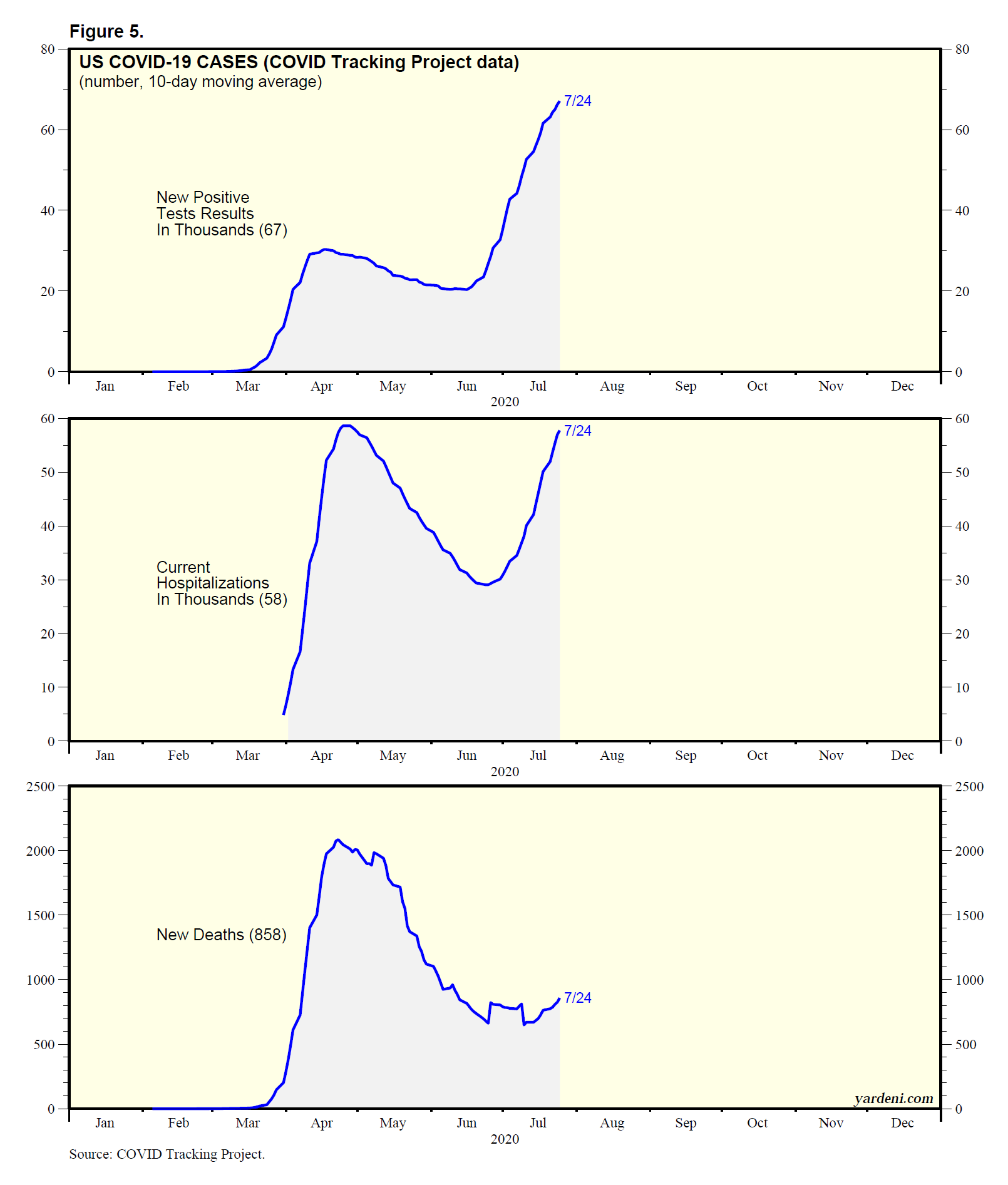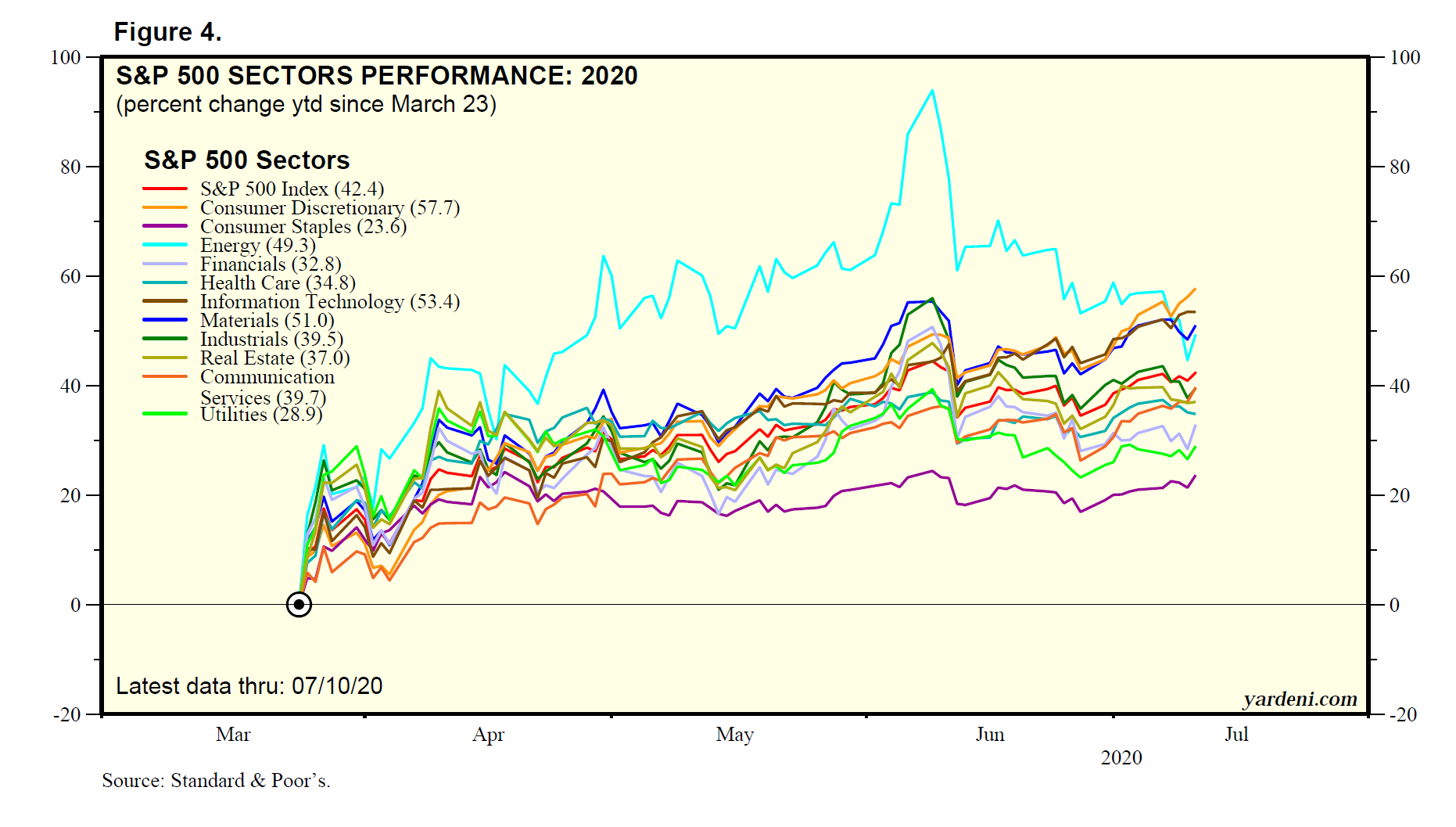 We will become more concerned about the latter scenarios if the market continues to go straight up and investors “party like it’s 1999” all over again, to quote the singer Prince. Following the LTCM crisis, the S&P 500 and the Nasdaq soared 59.6% and 236.7% from the end of August 1998 through March 2000. So far, since the pandemic low on March 23, they are up 63.7% and 80.4% through Friday’s close (Fig. 3).