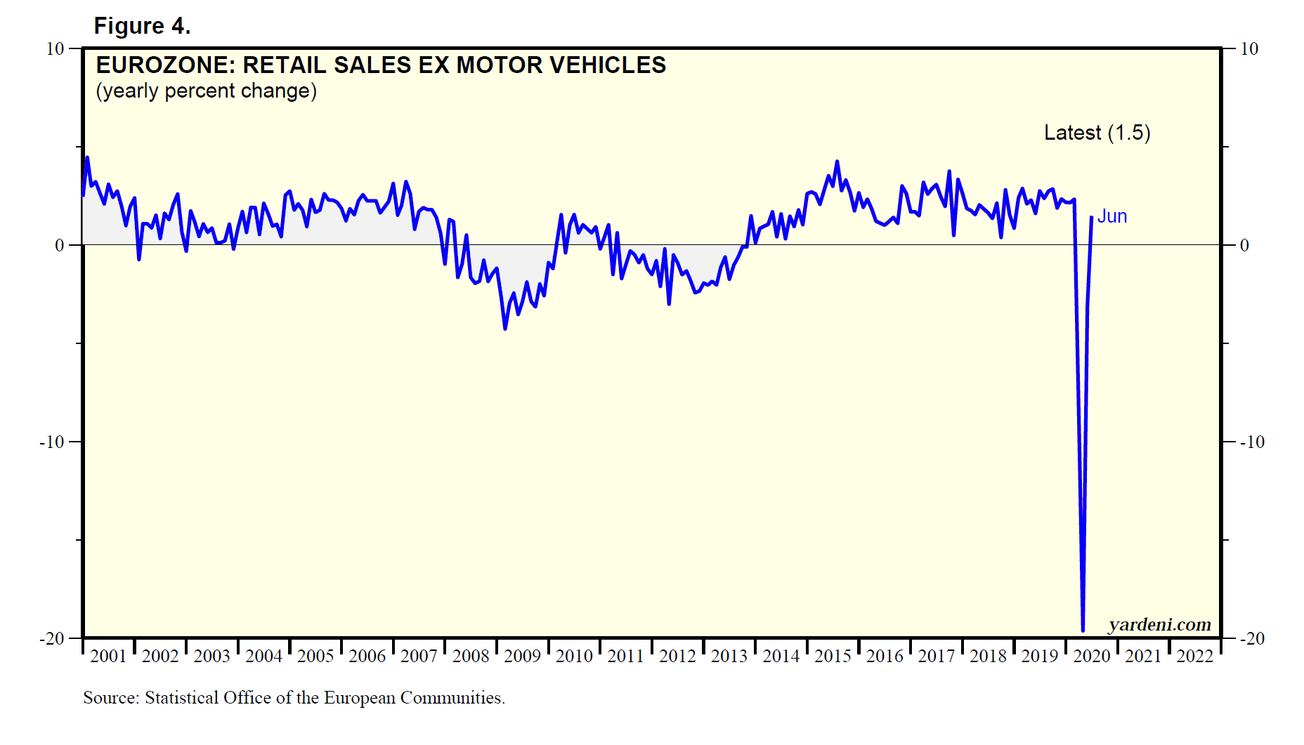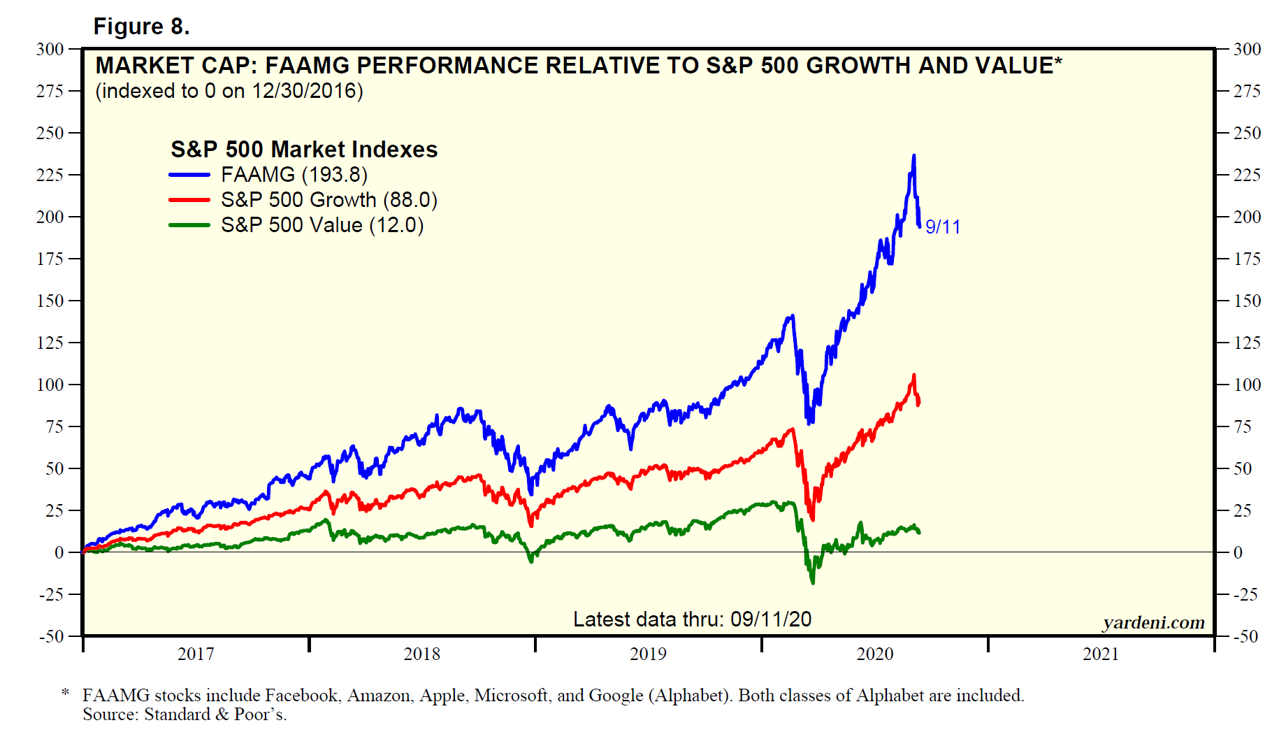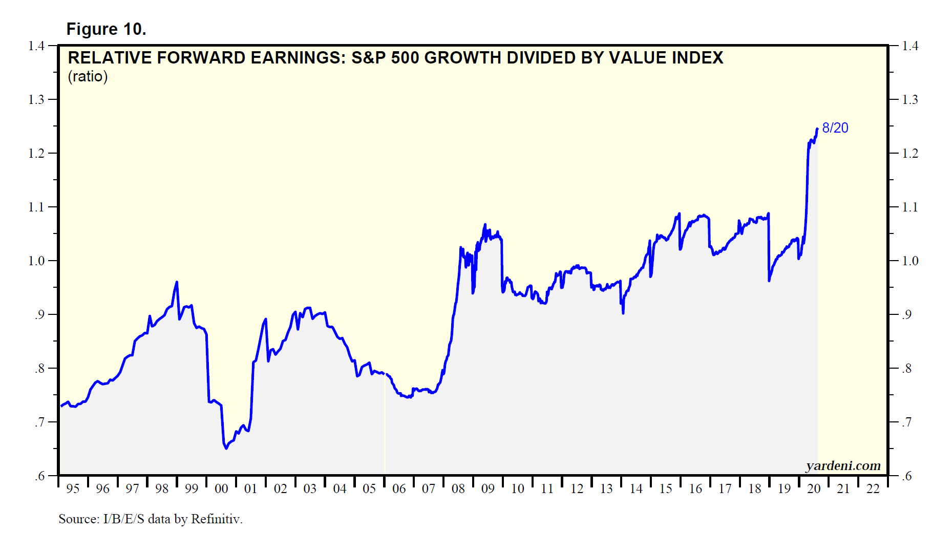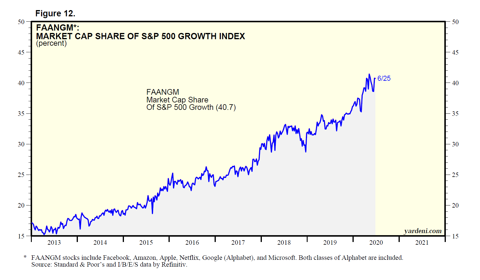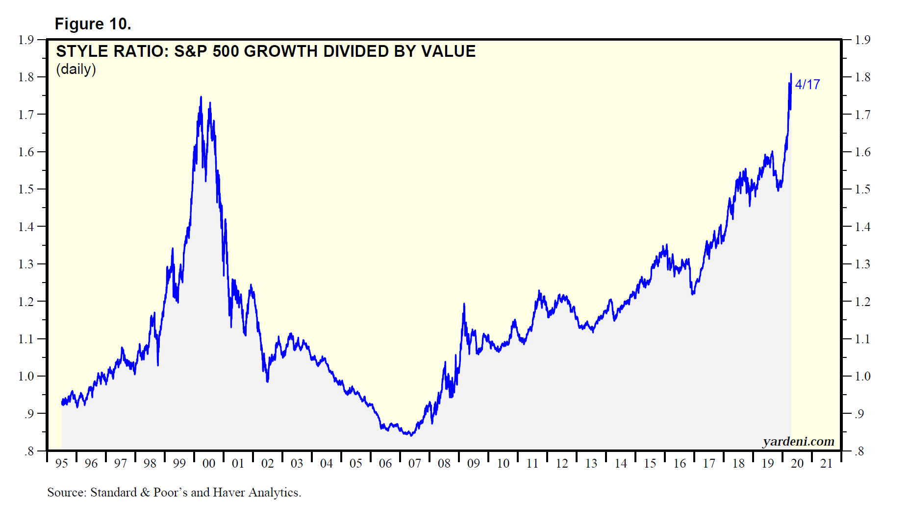 We will become more concerned about the latter scenarios if the market continues to go straight up and investors “party like it’s 1999” all over again, to quote the singer Prince. Following the LTCM crisis, the S&P 500 and the Nasdaq soared 59.6% and 236.7% from the end of August 1998 through March 2000. So far, since the pandemic low on March 23, they are up 63.7% and 80.4% through Friday’s close (Fig. 3).