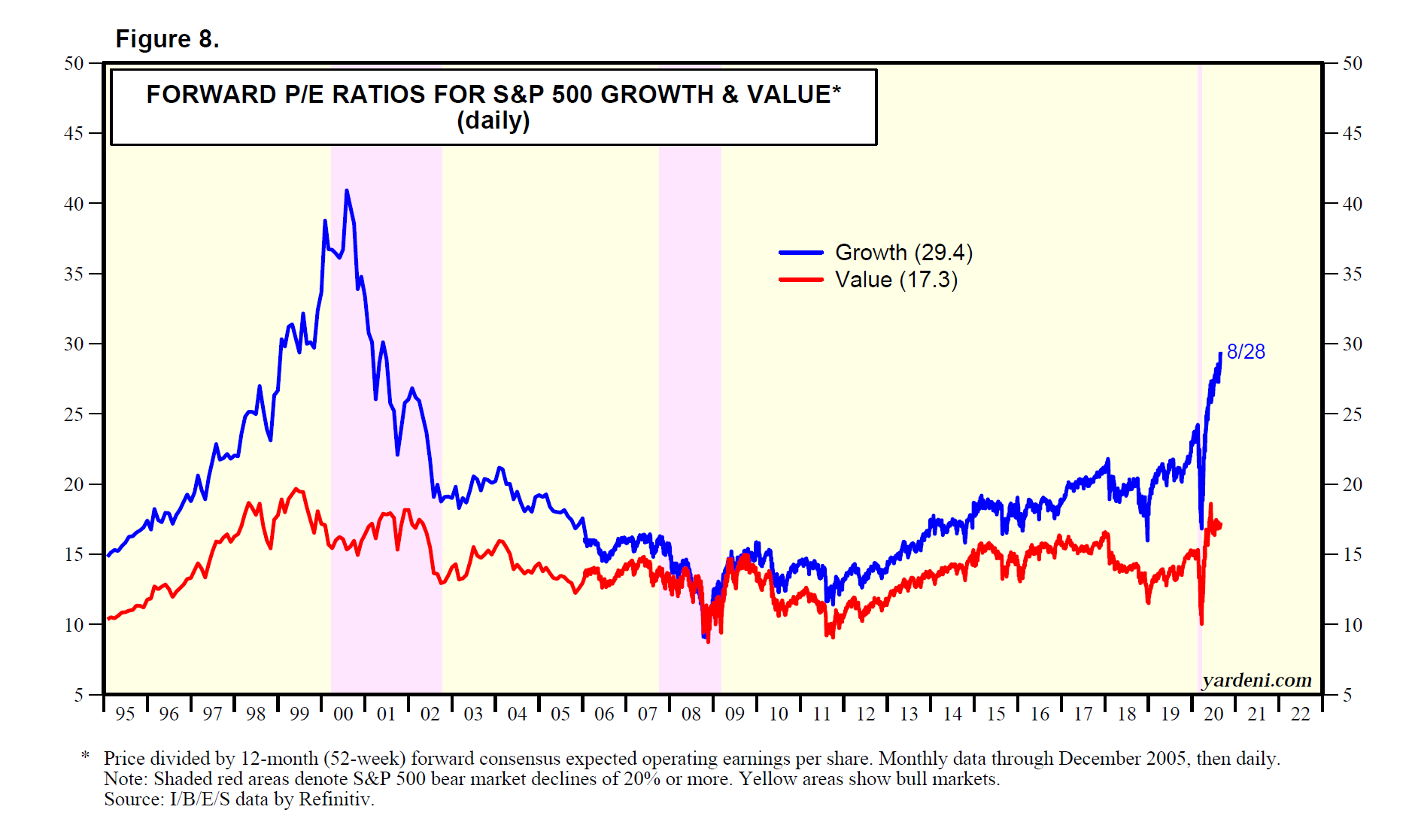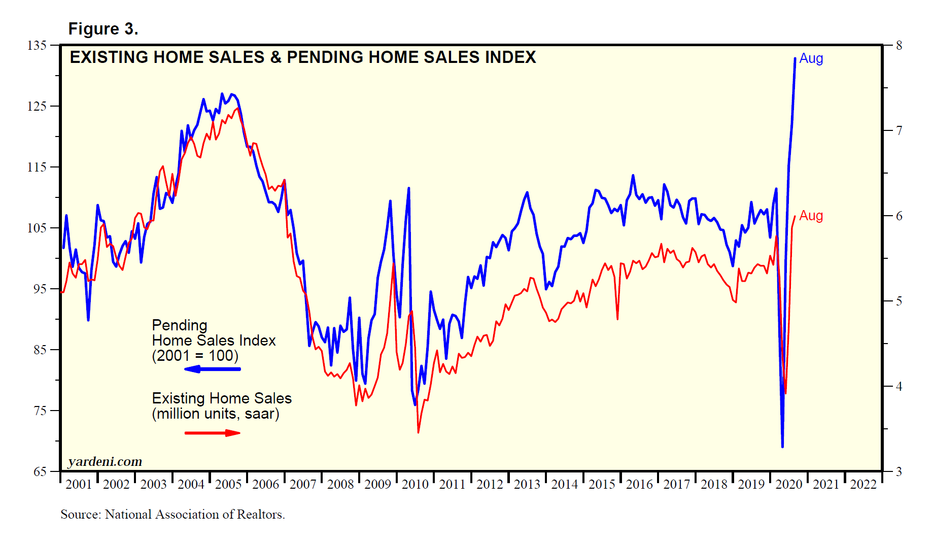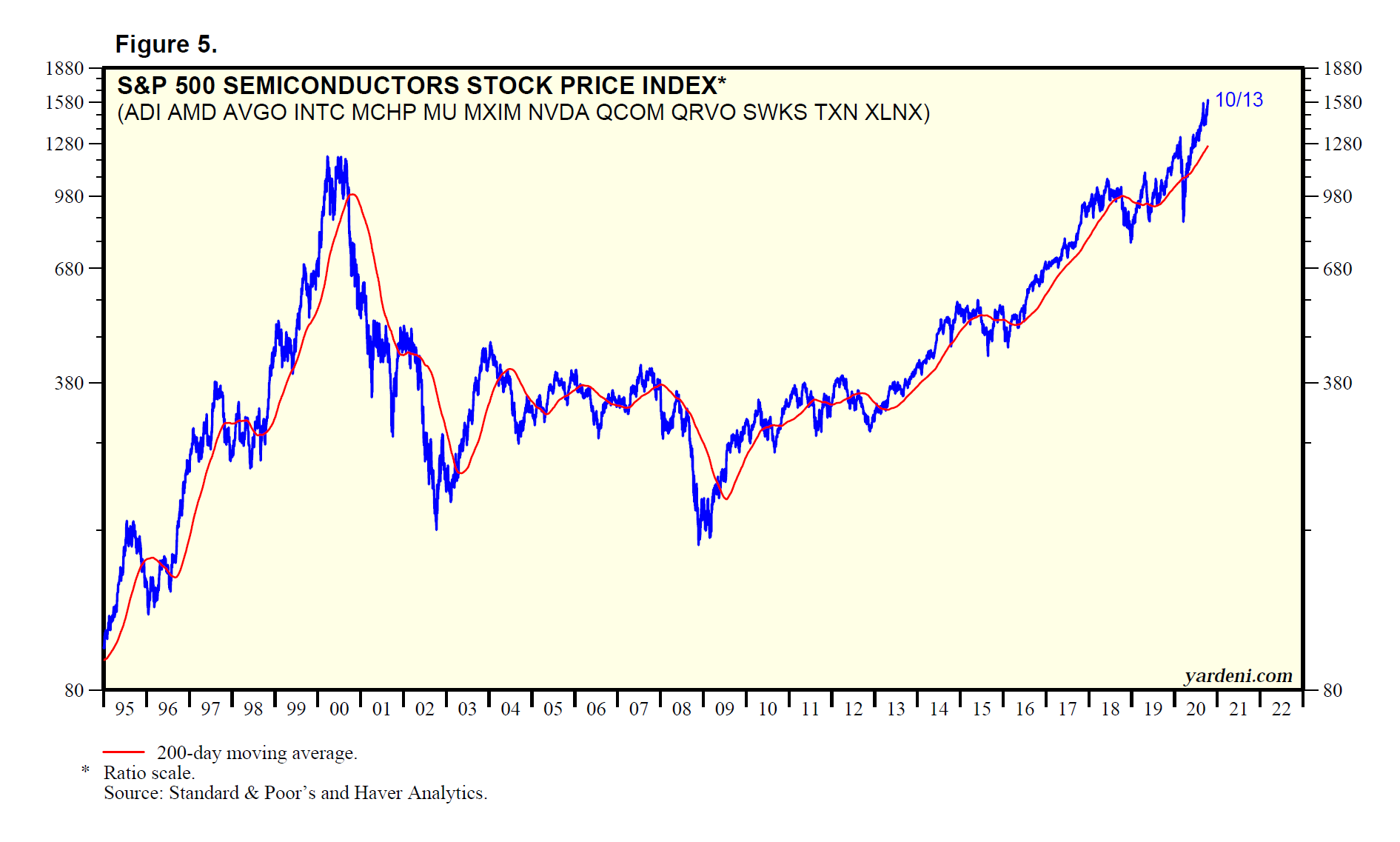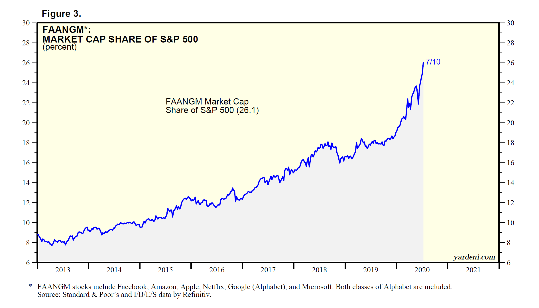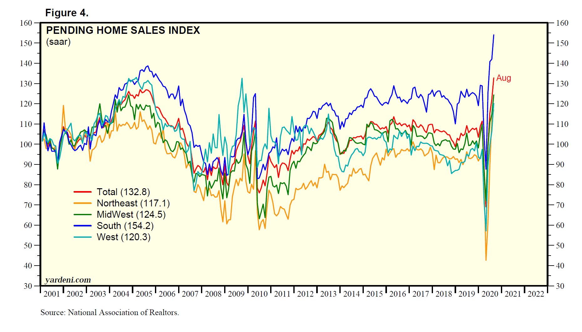 We will become more concerned about the latter scenarios if the market continues to go straight up and investors “party like it’s 1999” all over again, to quote the singer Prince. Following the LTCM crisis, the S&P 500 and the Nasdaq soared 59.6% and 236.7% from the end of August 1998 through March 2000. So far, since the pandemic low on March 23, they are up 63.7% and 80.4% through Friday’s close (Fig. 3).