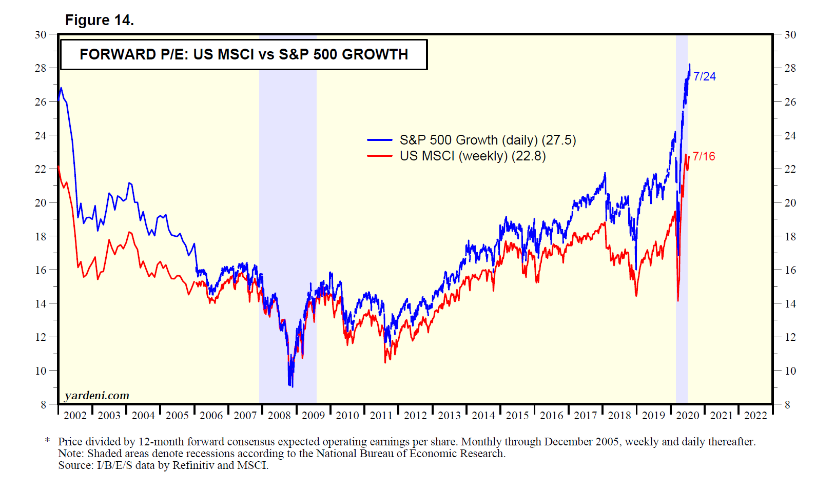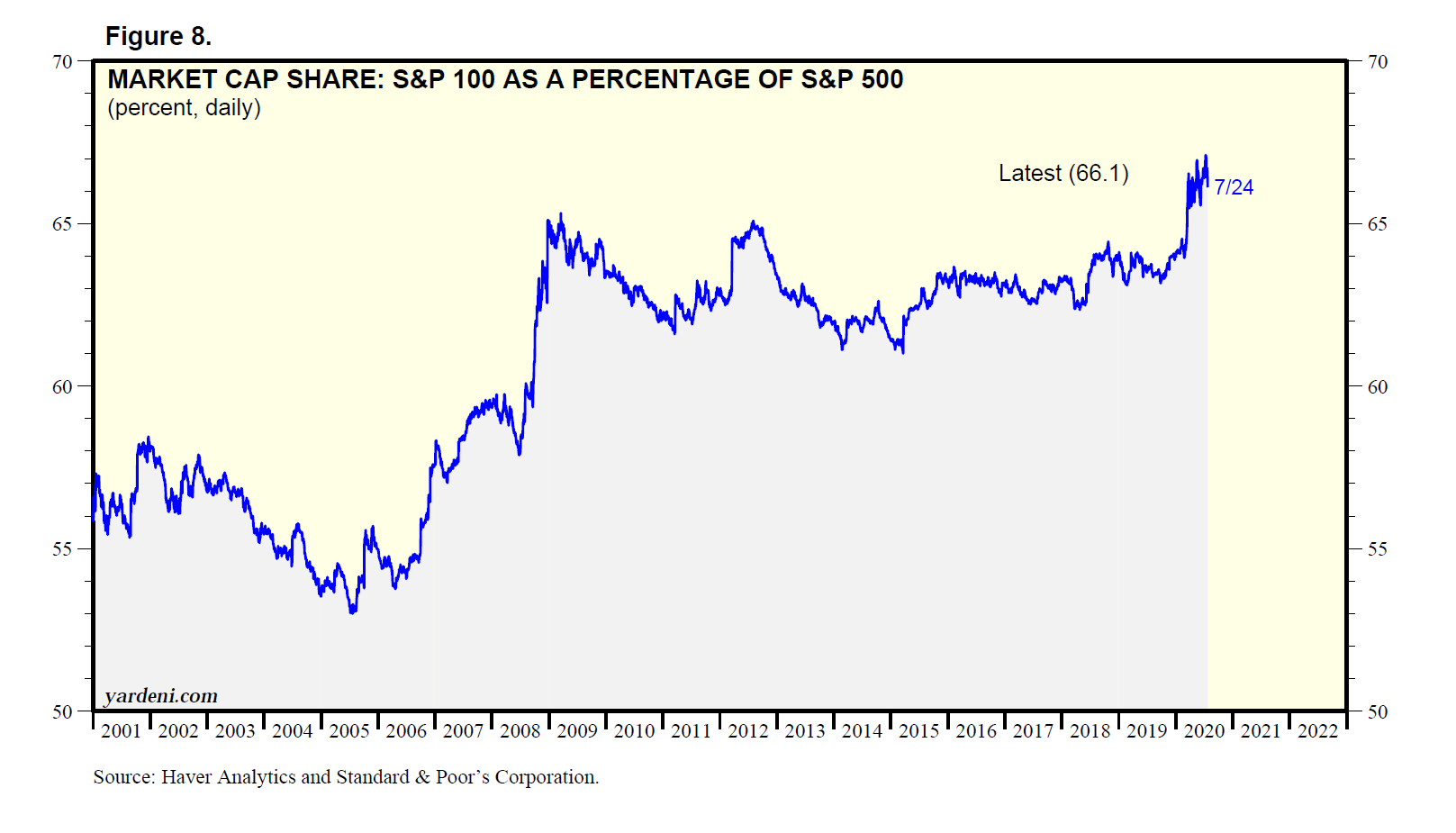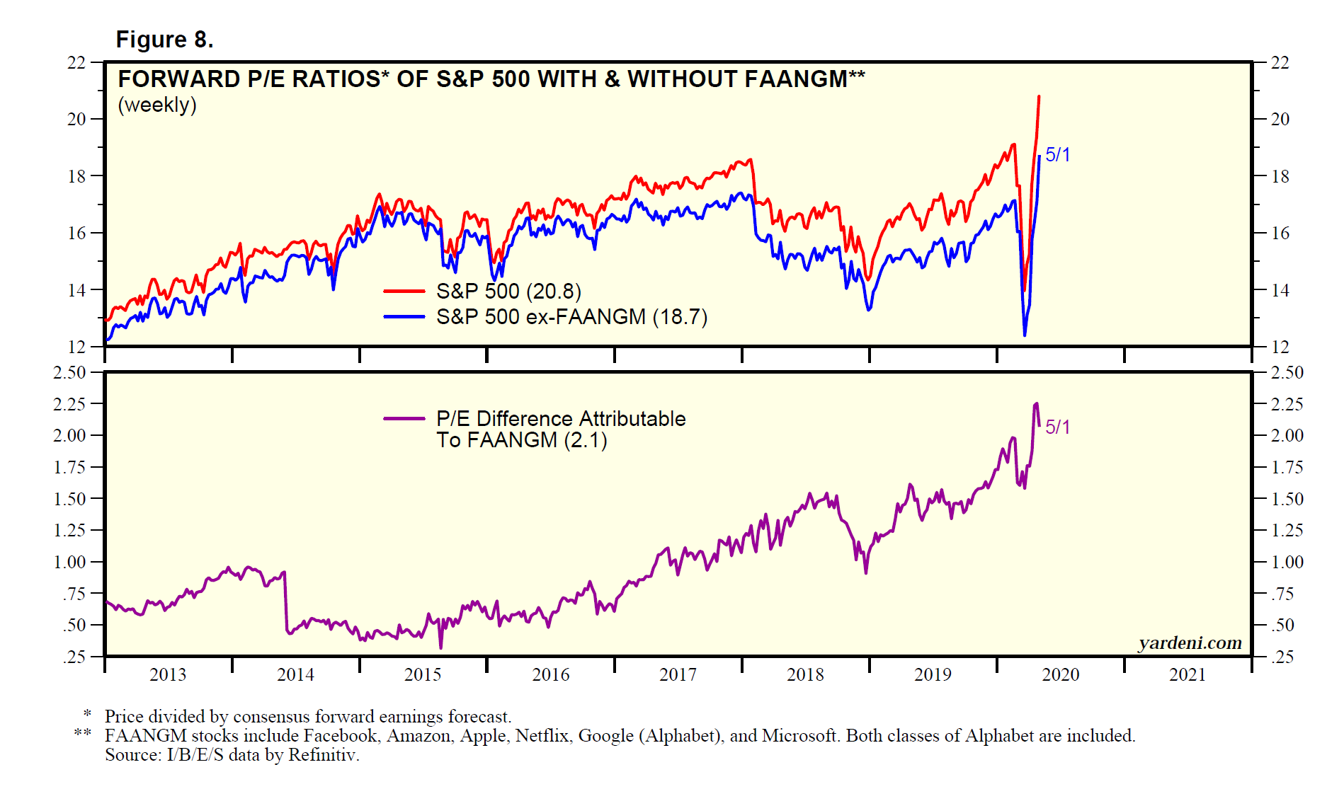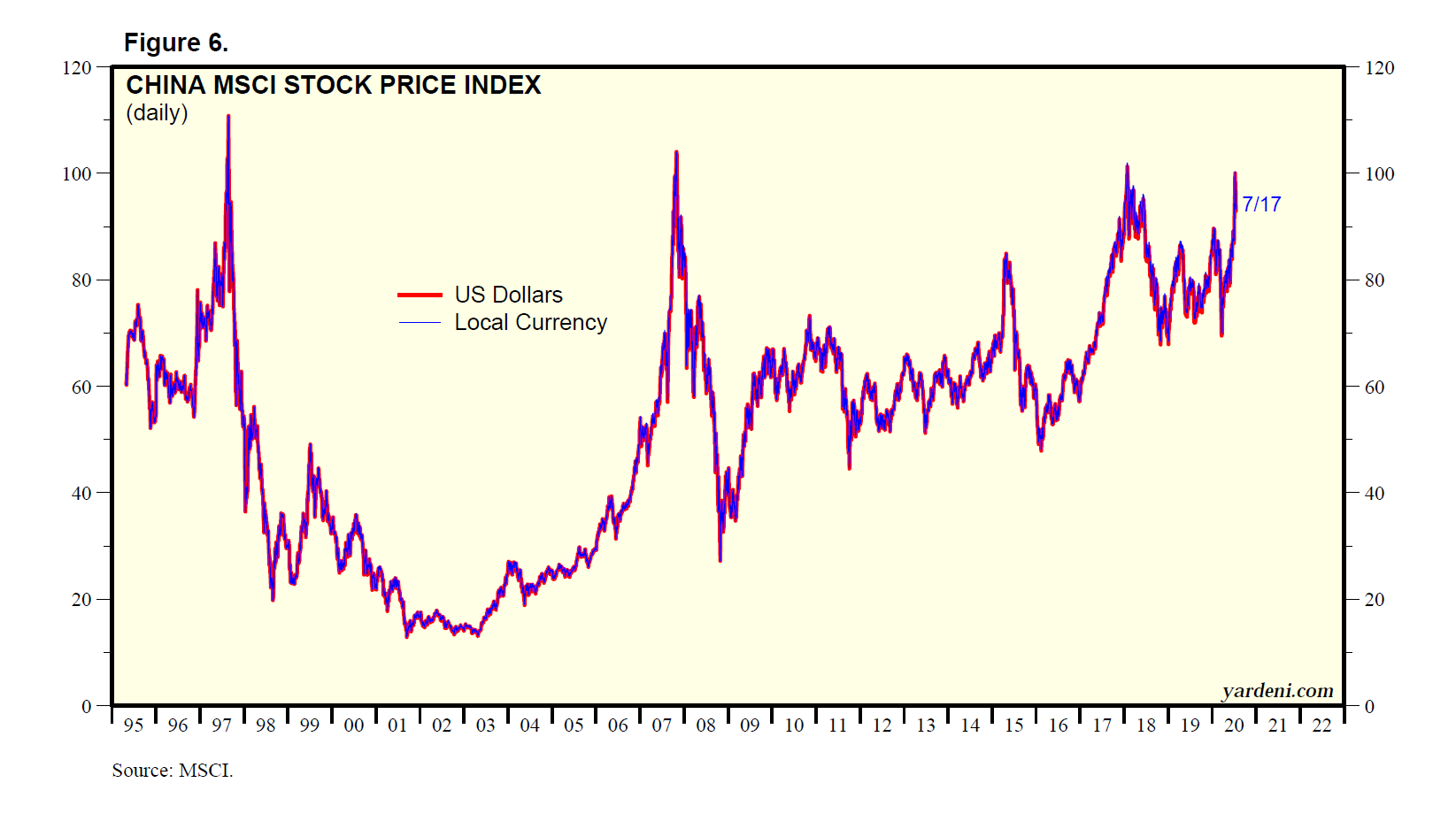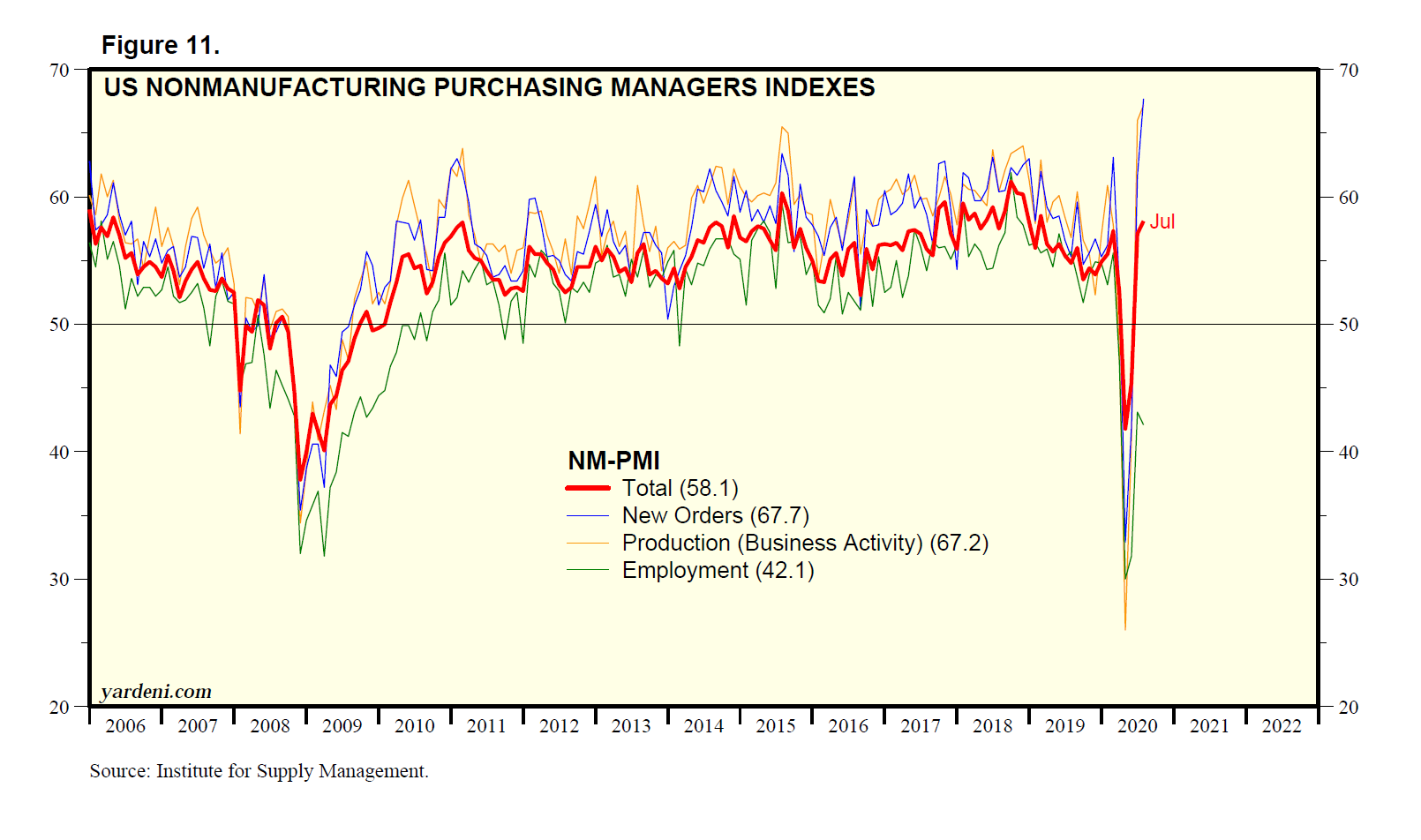We will become more concerned about the latter scenarios if the market continues to go straight up and investors “party like it’s 1999” all over again, to quote the singer Prince. Following the LTCM crisis, the S&P 500 and the Nasdaq soared 59.6% and 236.7% from the end of August 1998 through March 2000. So far, since the pandemic low on March 23, they are up 63.7% and 80.4% through Friday’s close (Fig. 3).