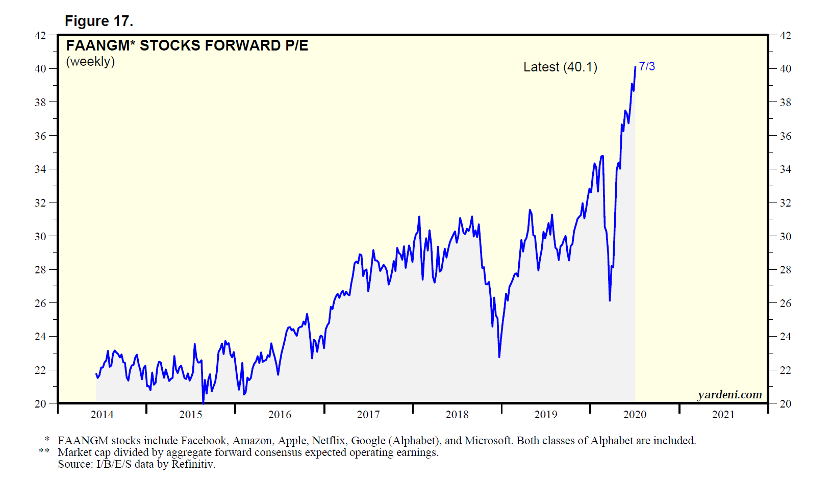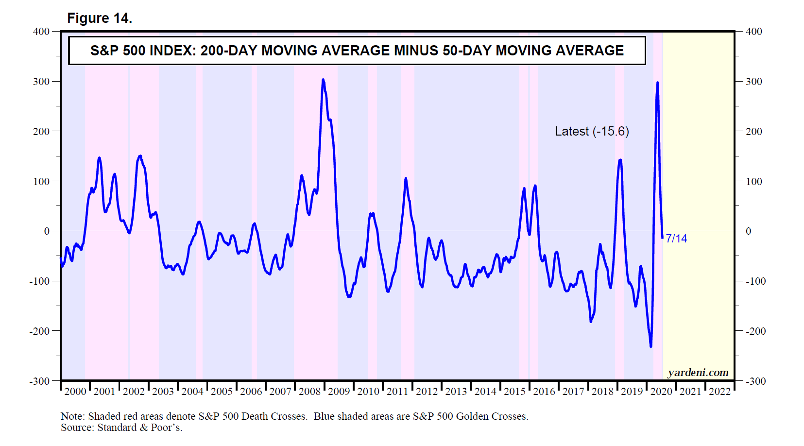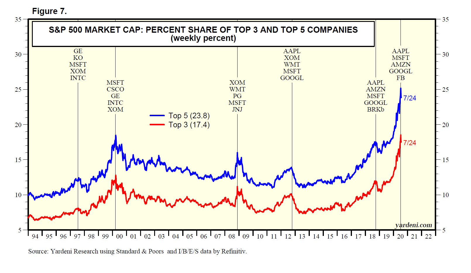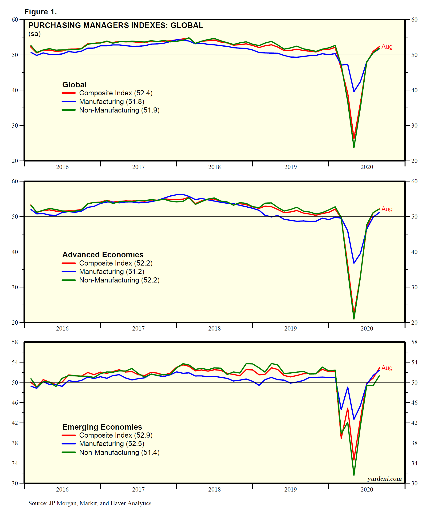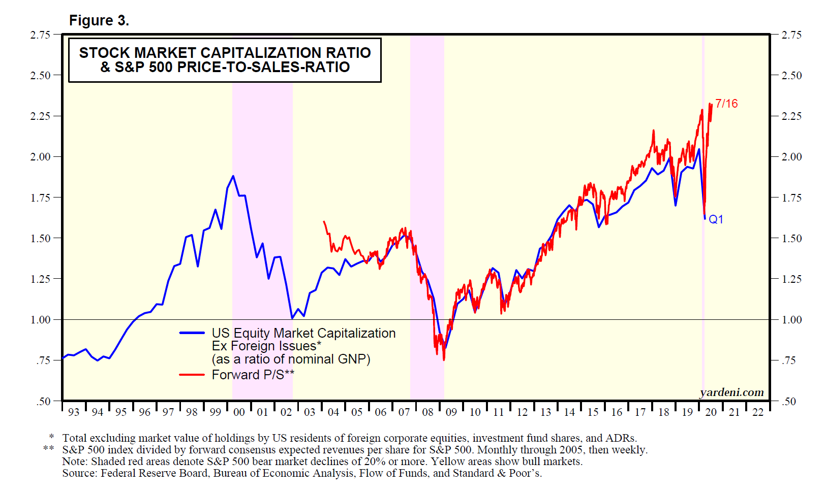 We will become more concerned about the latter scenarios if the market continues to go straight up and investors “party like it’s 1999” all over again, to quote the singer Prince. Following the LTCM crisis, the S&P 500 and the Nasdaq soared 59.6% and 236.7% from the end of August 1998 through March 2000. So far, since the pandemic low on March 23, they are up 63.7% and 80.4% through Friday’s close (Fig. 3).
