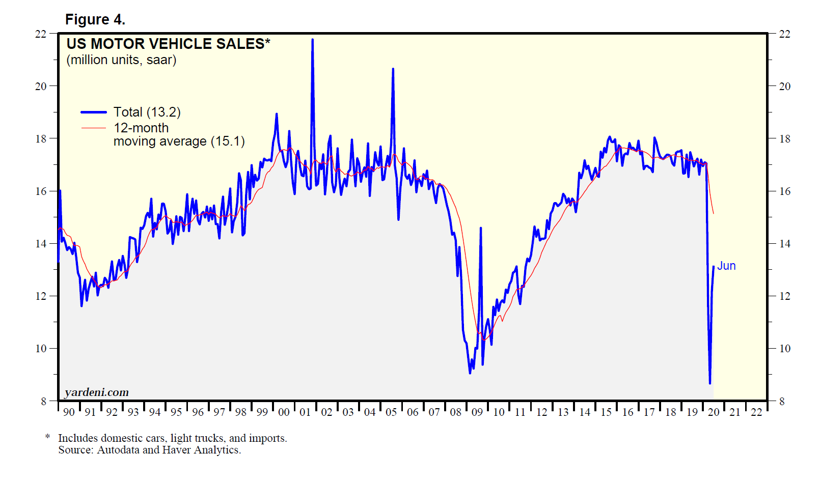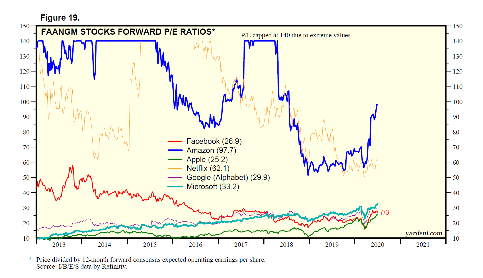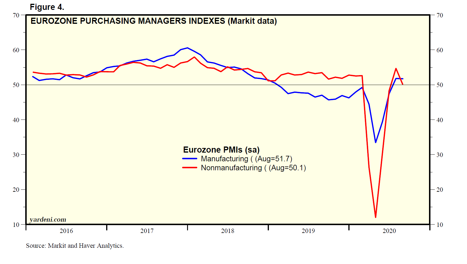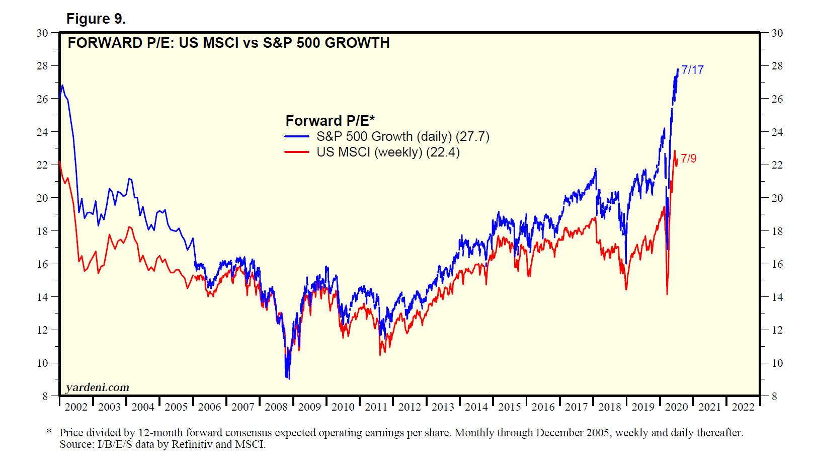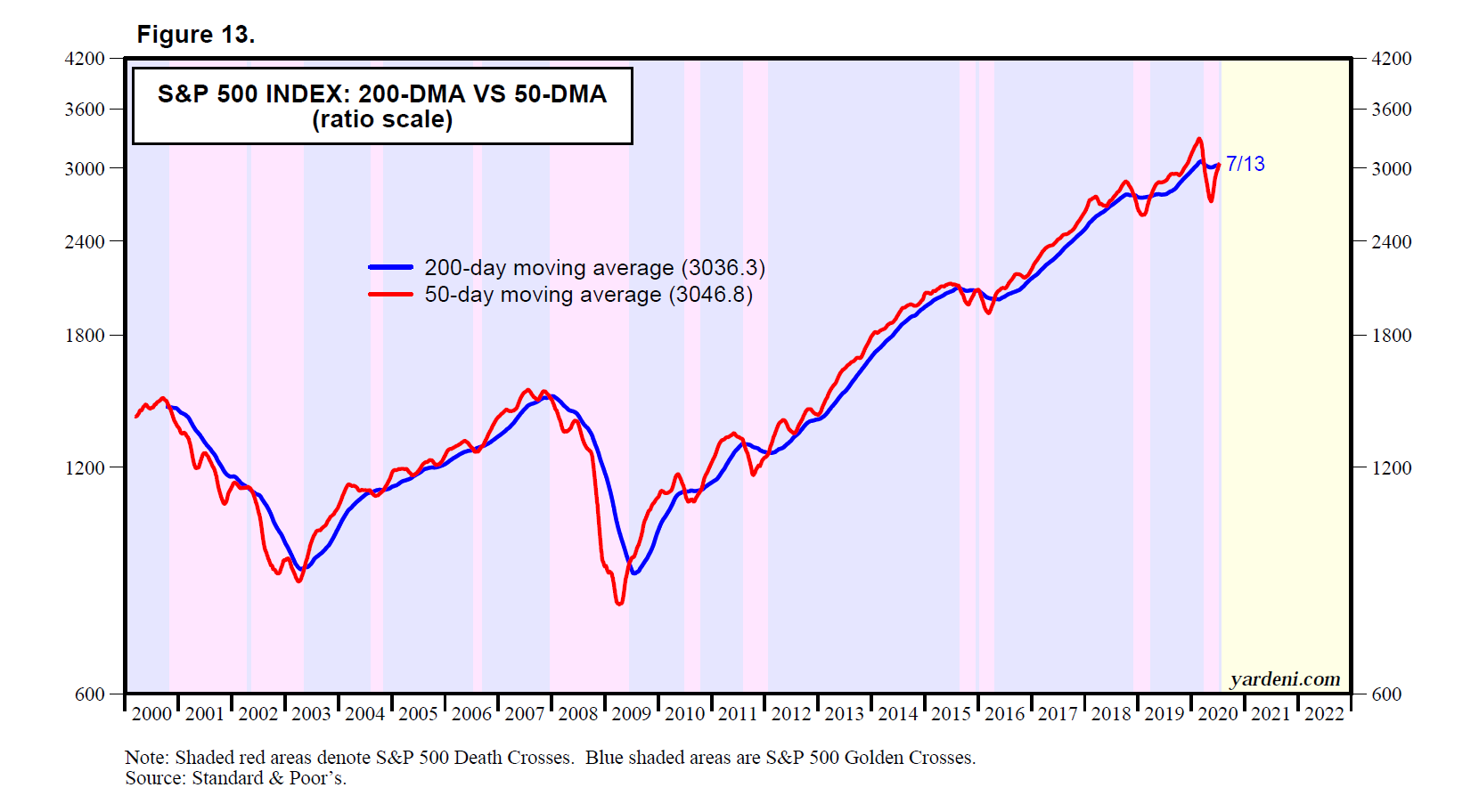 We will become more concerned about the latter scenarios if the market continues to go straight up and investors “party like it’s 1999” all over again, to quote the singer Prince. Following the LTCM crisis, the S&P 500 and the Nasdaq soared 59.6% and 236.7% from the end of August 1998 through March 2000. So far, since the pandemic low on March 23, they are up 63.7% and 80.4% through Friday’s close (Fig. 3).