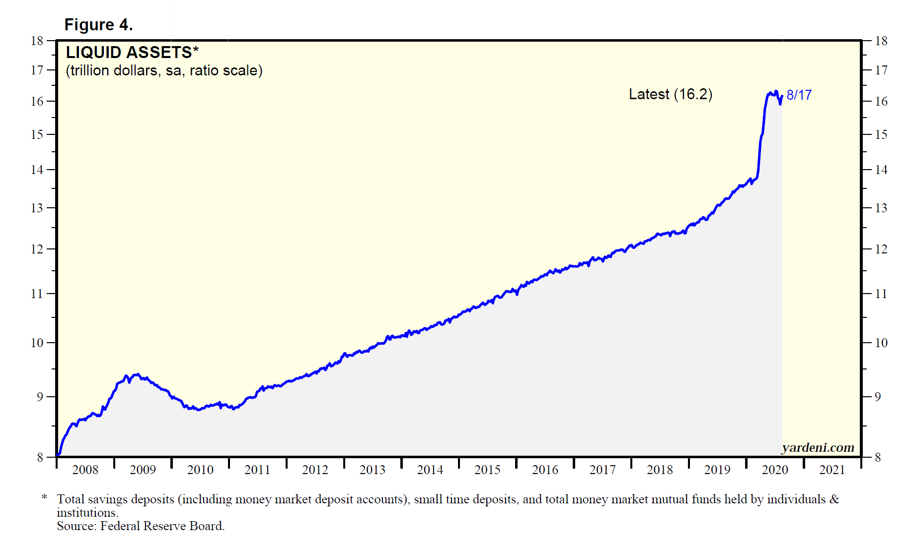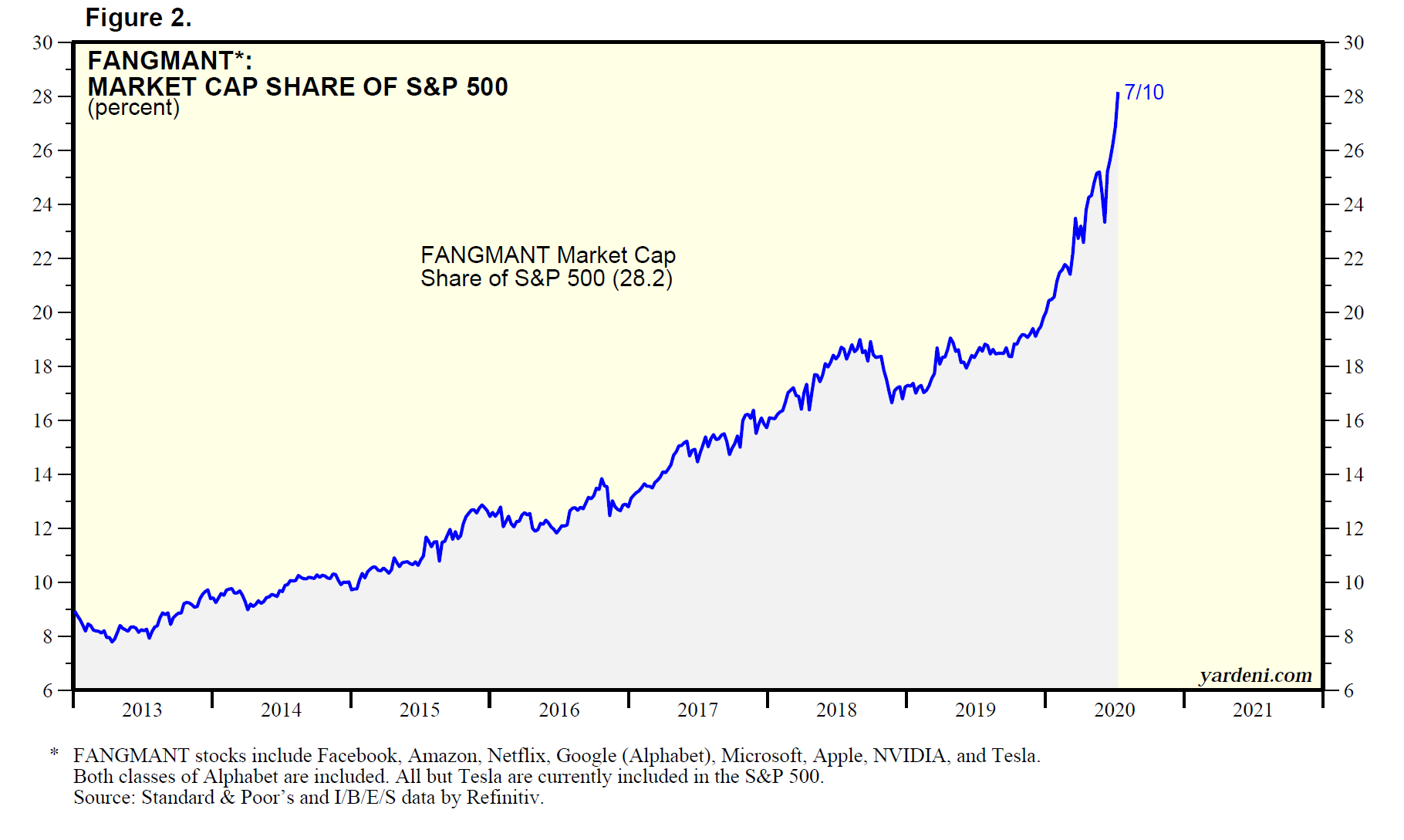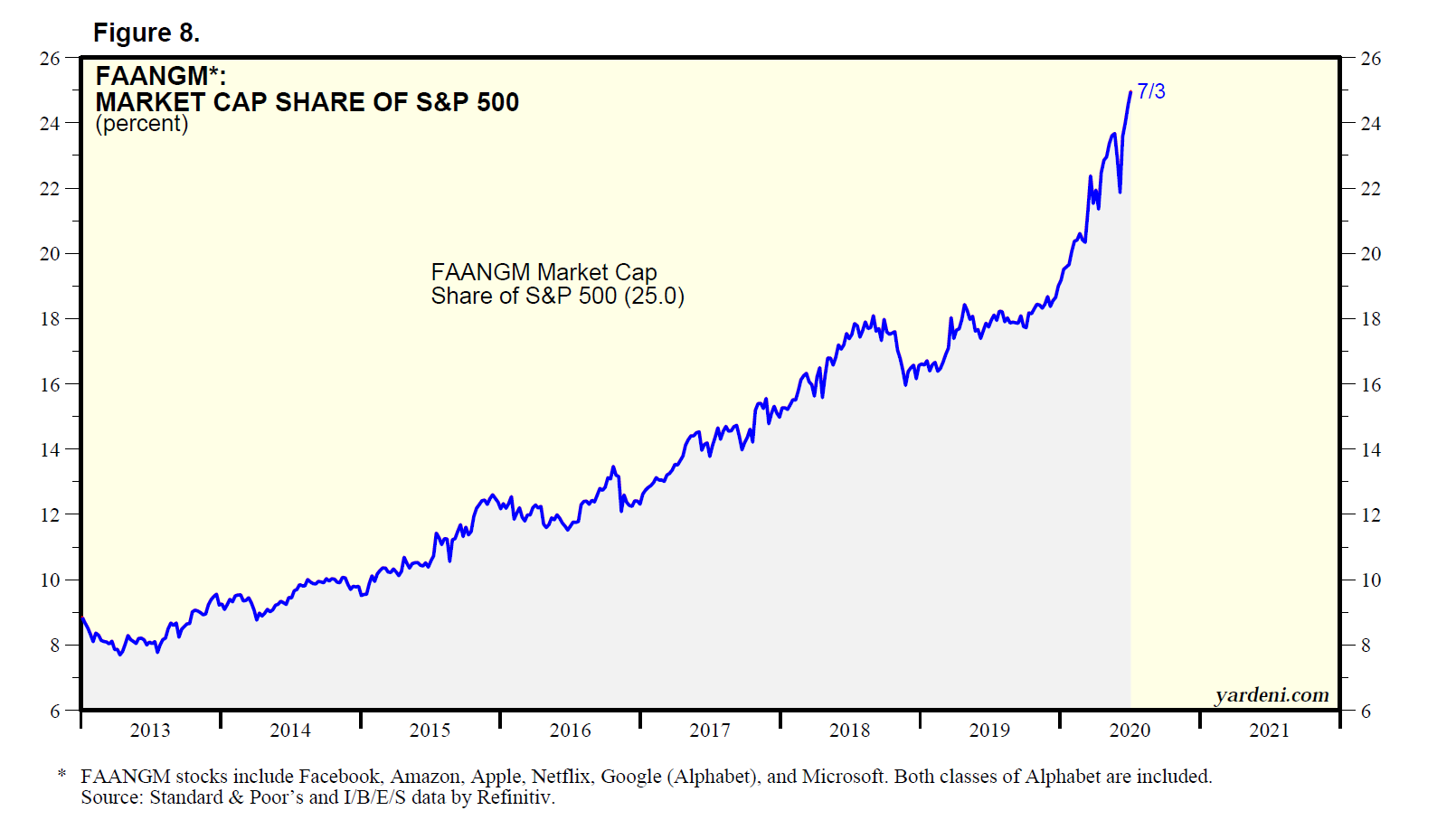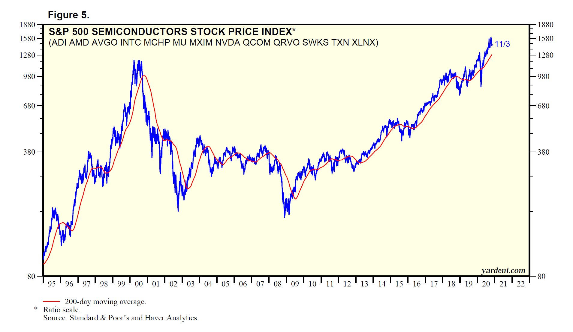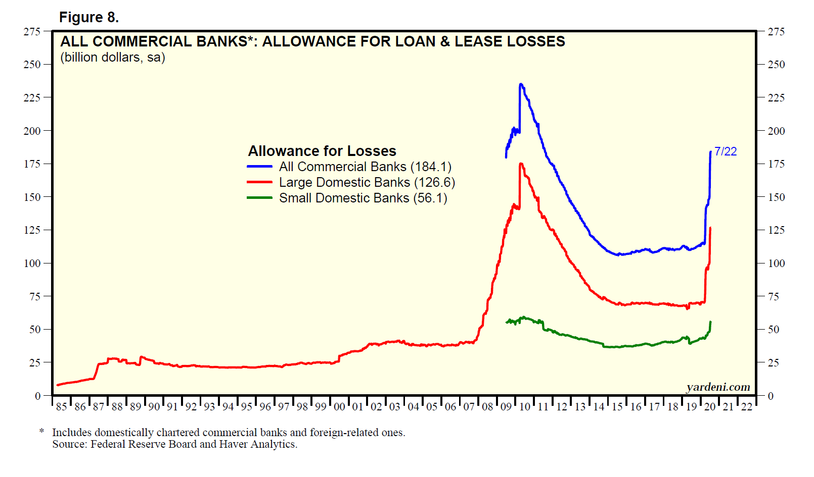 We will become more concerned about the latter scenarios if the market continues to go straight up and investors “party like it’s 1999” all over again, to quote the singer Prince. Following the LTCM crisis, the S&P 500 and the Nasdaq soared 59.6% and 236.7% from the end of August 1998 through March 2000. So far, since the pandemic low on March 23, they are up 63.7% and 80.4% through Friday’s close (Fig. 3).